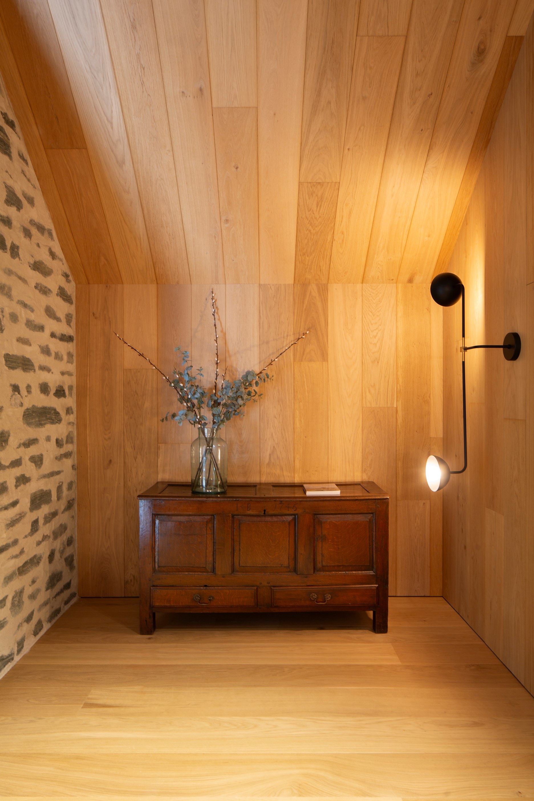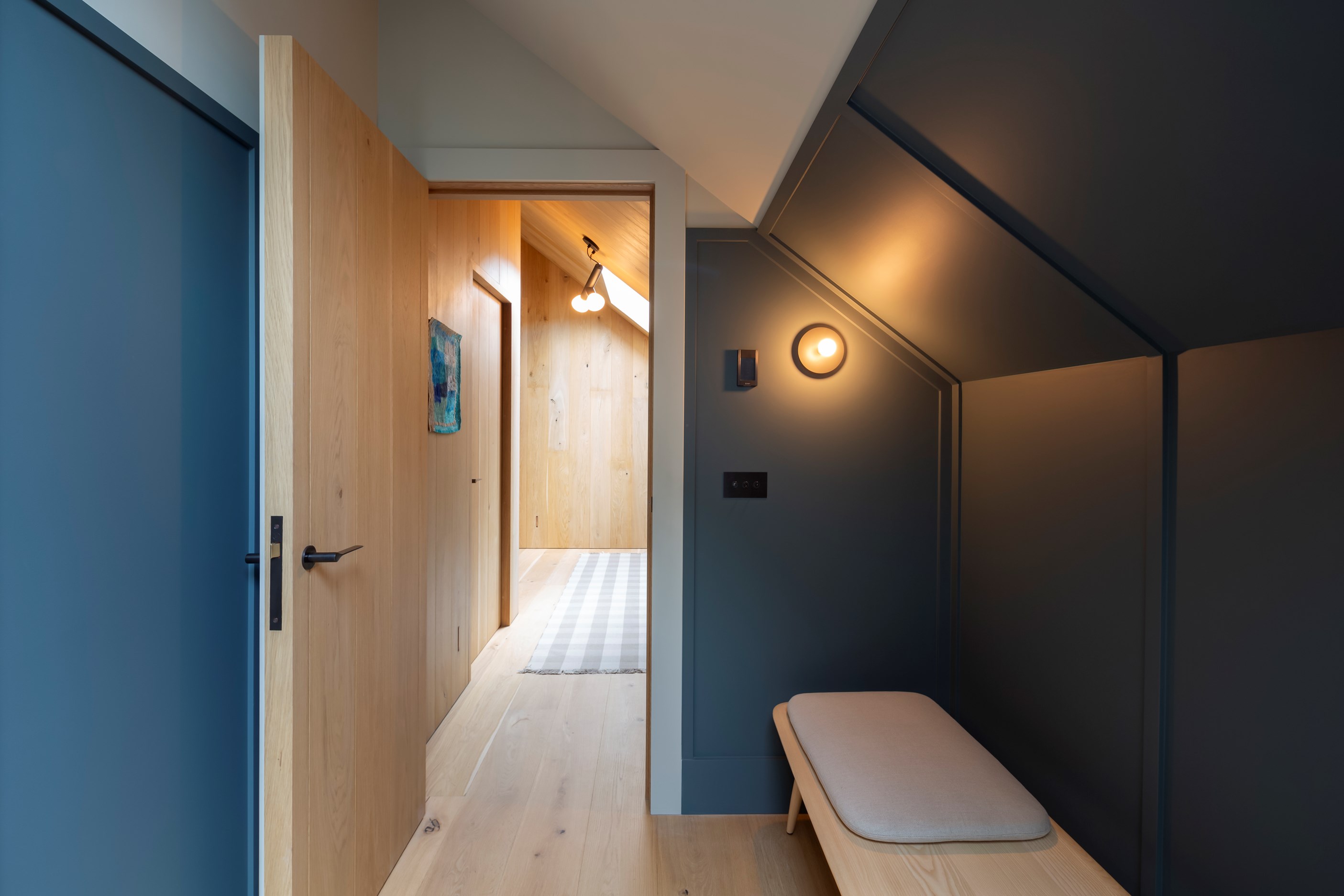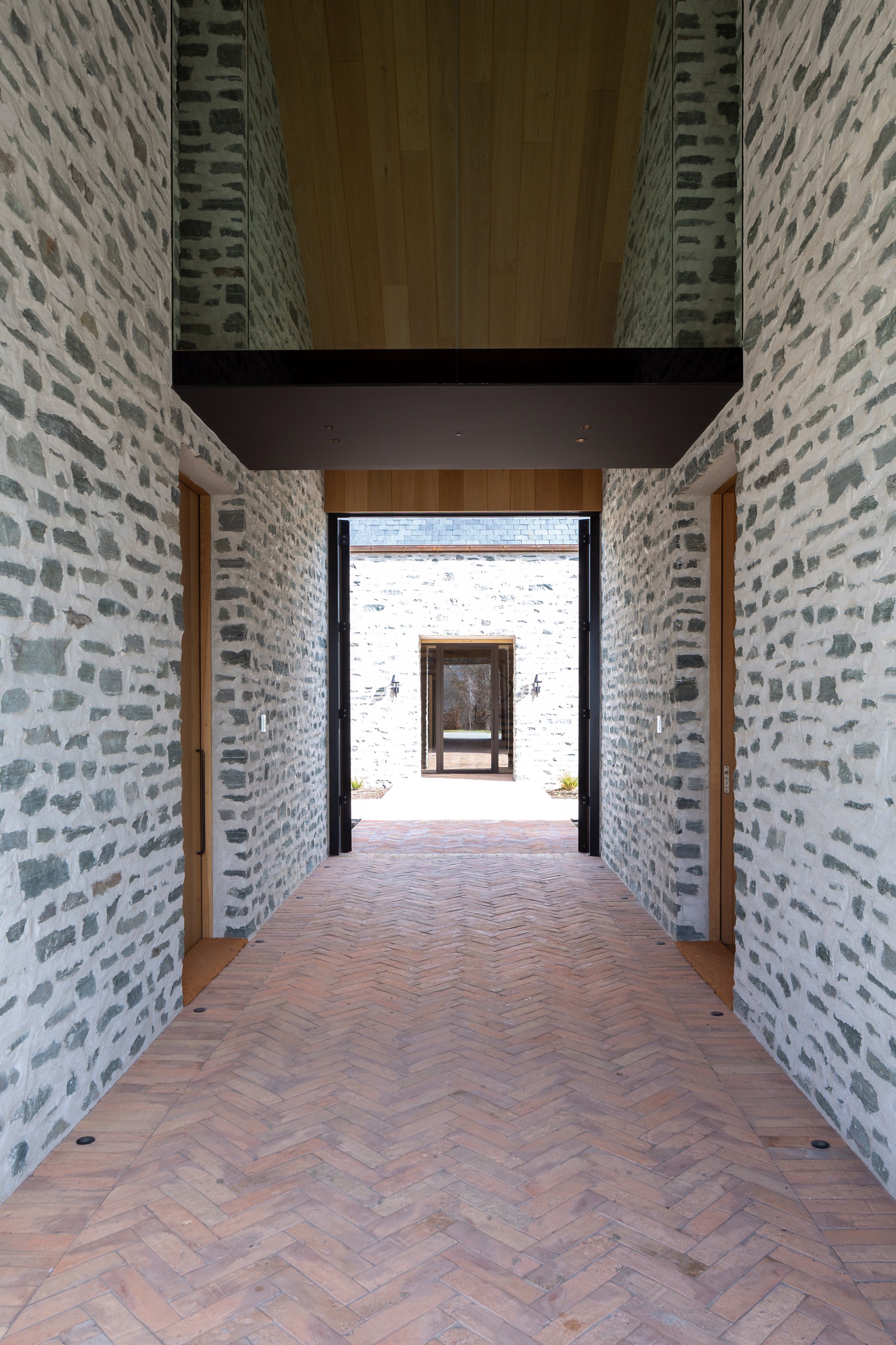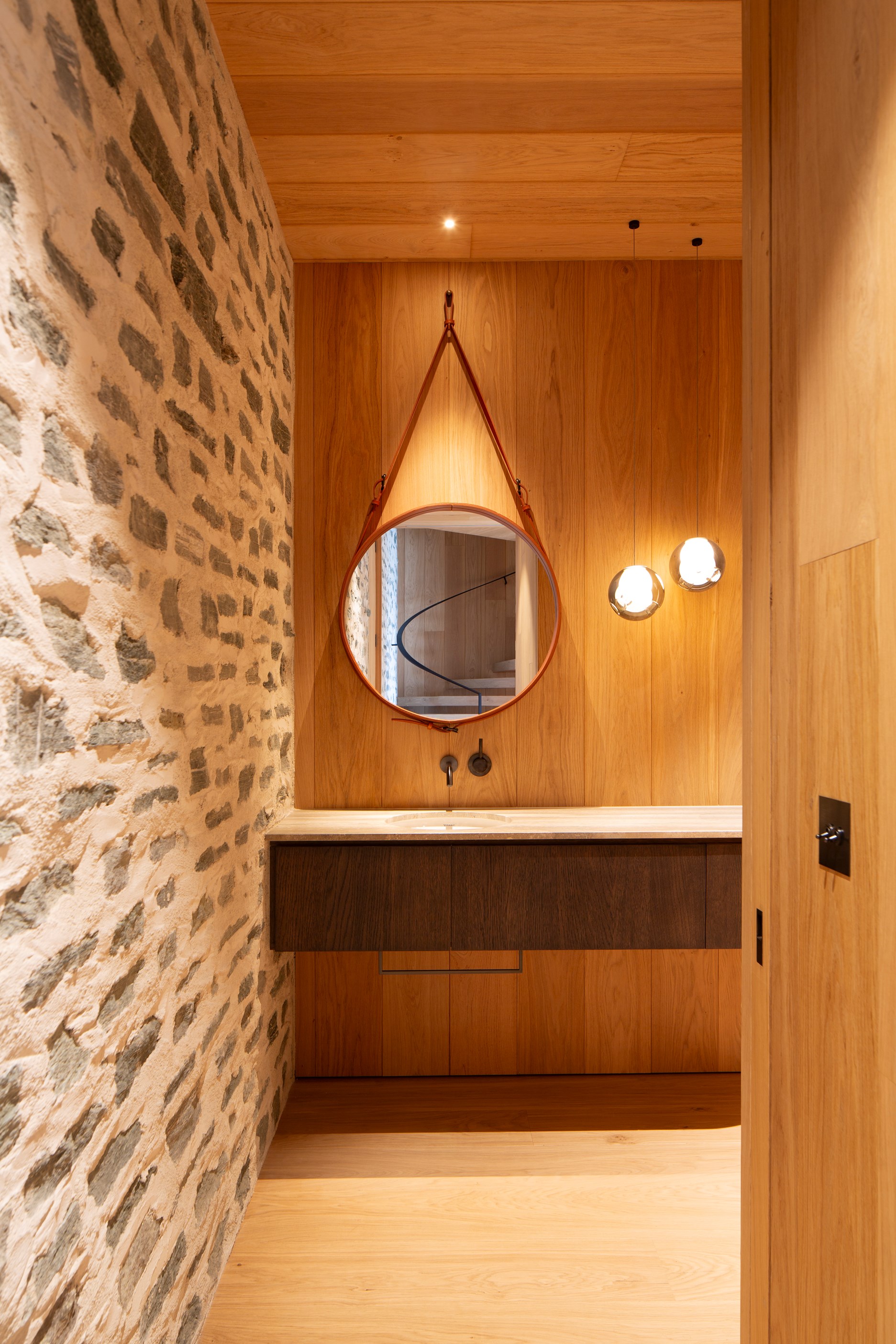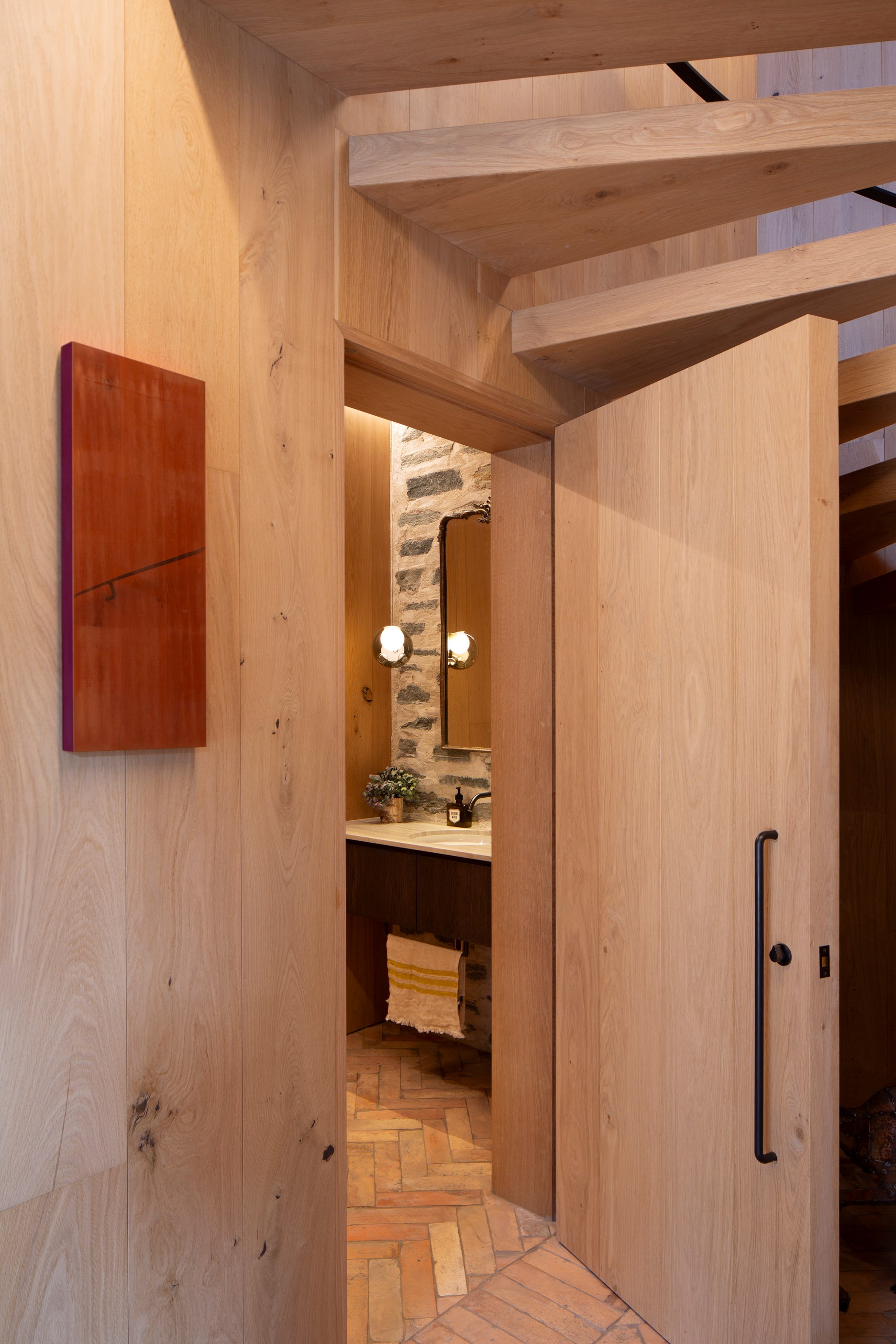 The simple barn form never looked so good. This Patterson Associates Architects-designed holiday home speaks the Central Otago language of stone and timber. The vernacular of The Gatehouse is expressed in two barn-like structures, one clad in local schist, the other in timber – wholly appropriate for a property on a former sheep station. The brief was to deliver a flexible home for family and guests, which is not as simple as it sounds. Sometimes it has to accommodate lots of people in various stages of their lives; at others, it has to be comfortable for just two. Flexibility was key to the configuration. Still,there was plenty of room to work with – 661sqm, in fact. The timber, slightly smaller of the two pavillions sits on the street side of the site and has bedrooms, bathrooms, a kitchen, living spaces and a garage. Across the courtyard and linked by a gallery is the stone pavillion, with bedrooms, a large open-plan kitchen, dining and living area.
