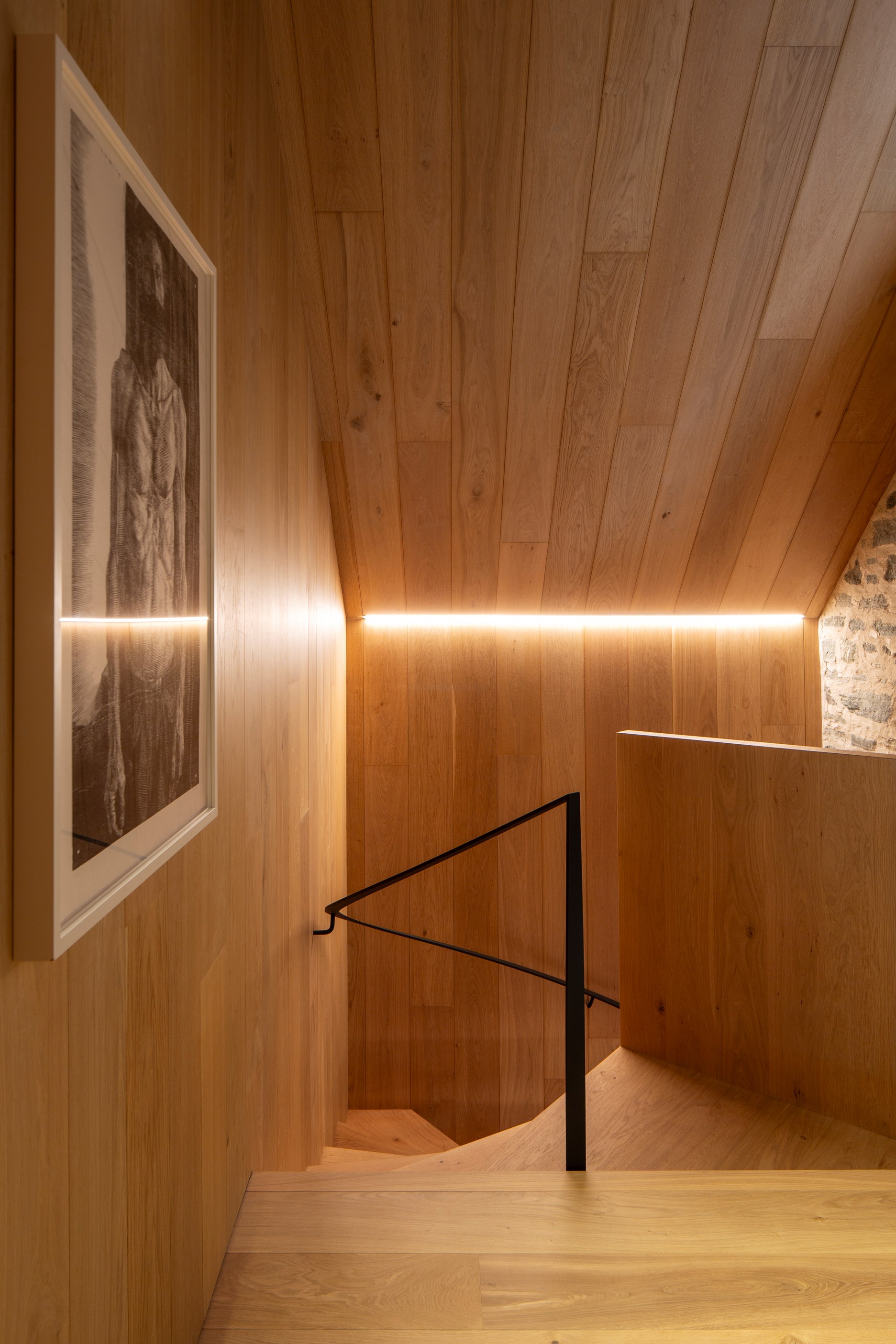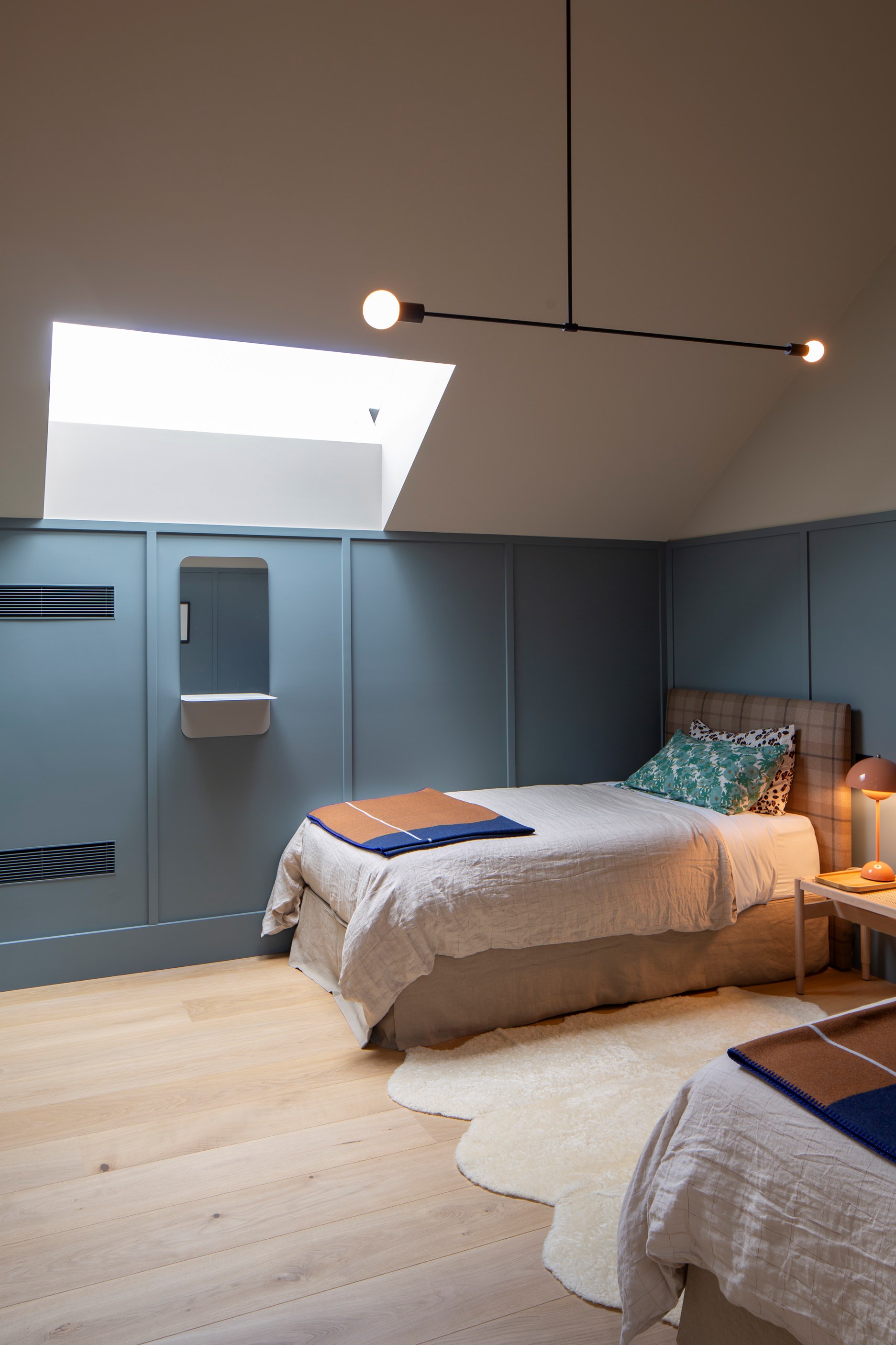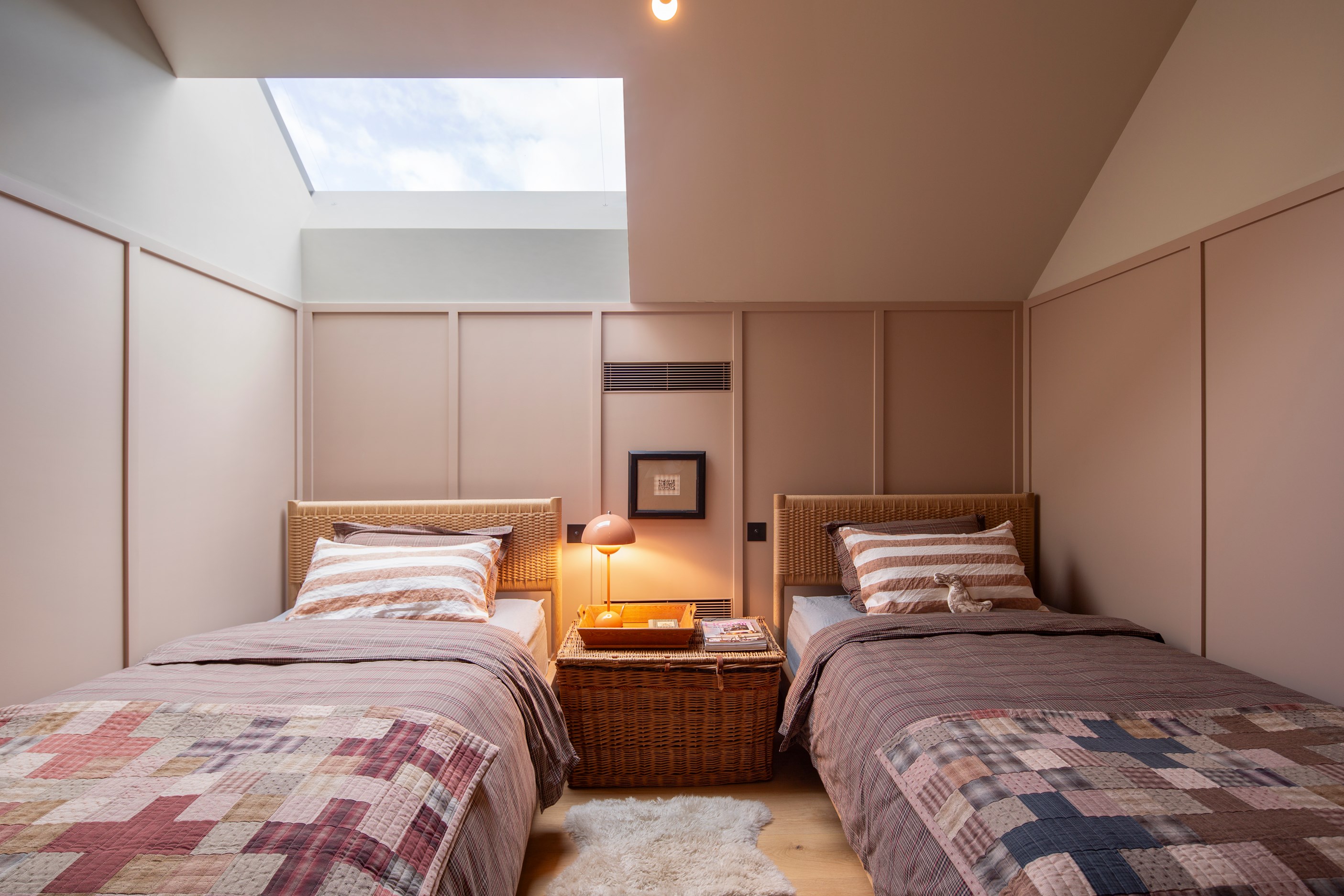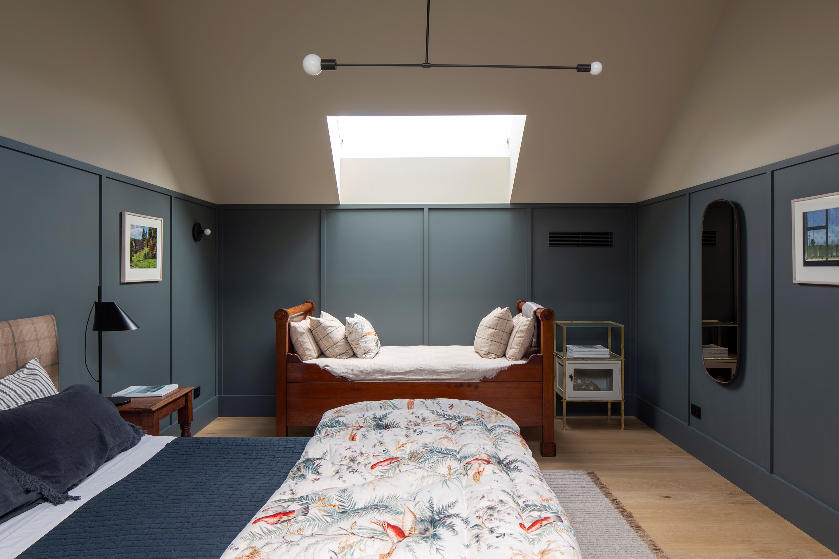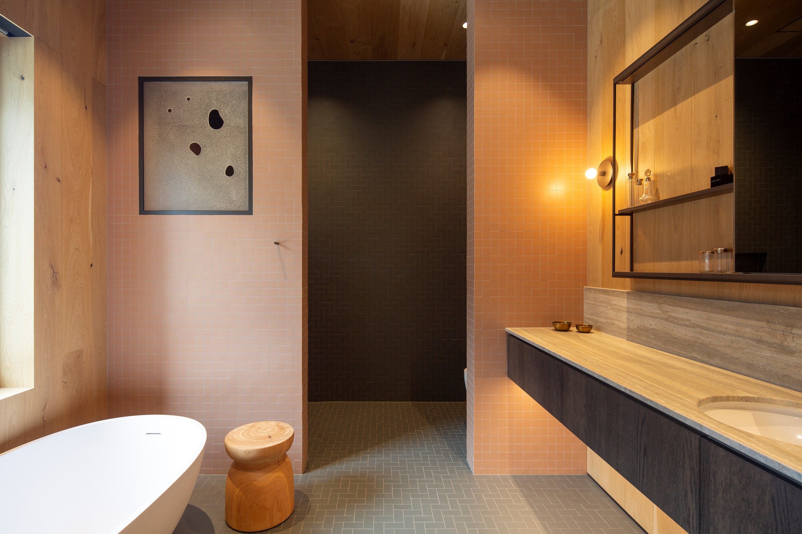 The simple barn form never looked so good. This Patterson Associates Architects-designed holiday home speaks the Central Otago language of stone and timber. The vernacular of The Gatehouse is expressed in two barn-like structures, one clad in local schist, the other in timber – wholly appropriate for a property on a former sheep station. The brief was to deliver a flexible home for family and guests, which is not as simple as it sounds. Sometimes it has to accommodate lots of people in various stages of their lives; at others, it has to be comfortable for just two. Flexibility was key to the configuration. Still,there was plenty of room to work with – 661sqm, in fact. The timber, slightly smaller of the two pavillions sits on the street side of the site and has bedrooms, bathrooms, a kitchen, living spaces and a garage. Across the courtyard and linked by a gallery is the stone pavillion, with bedrooms, a large open-plan kitchen, dining and living area.