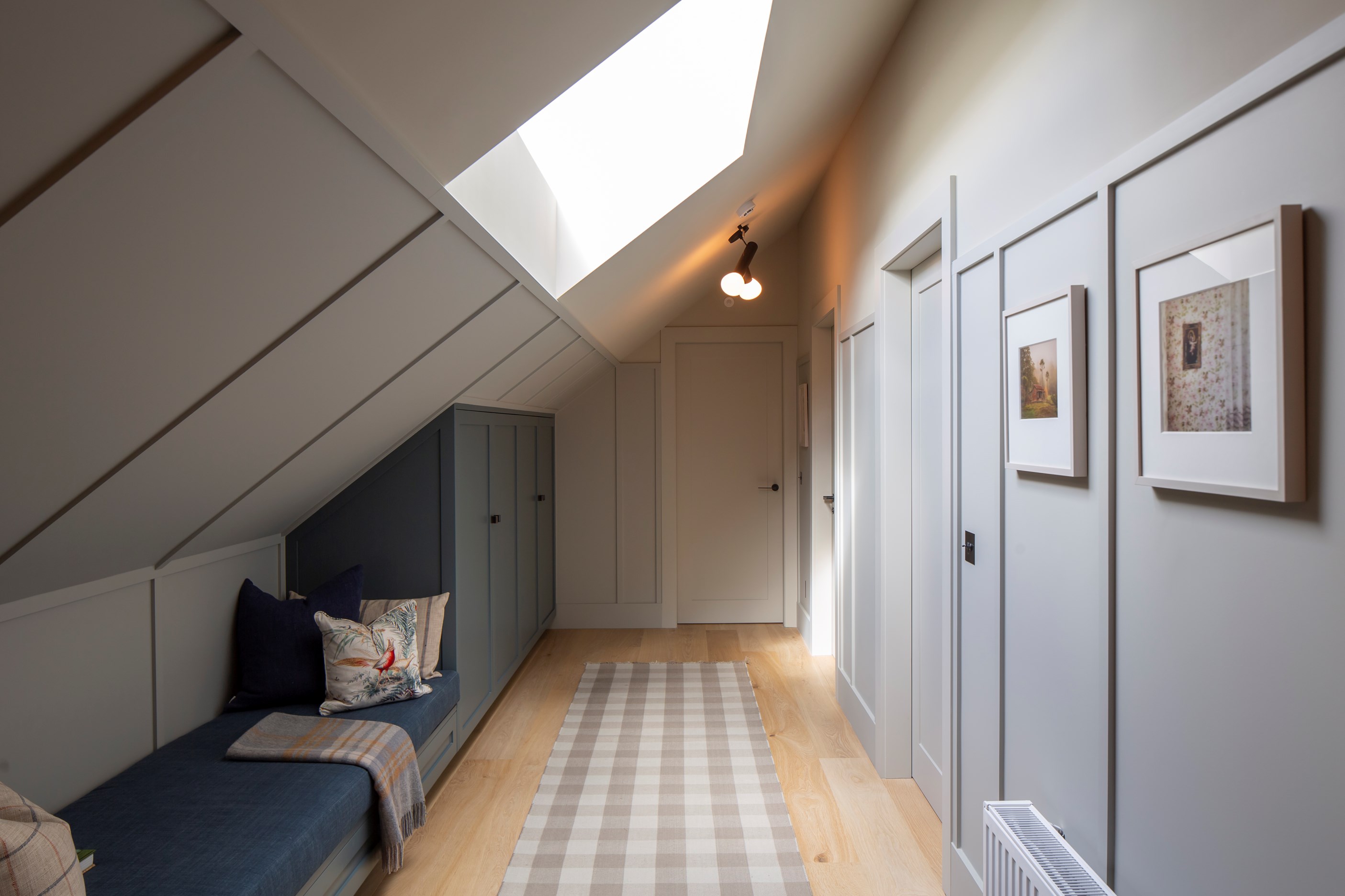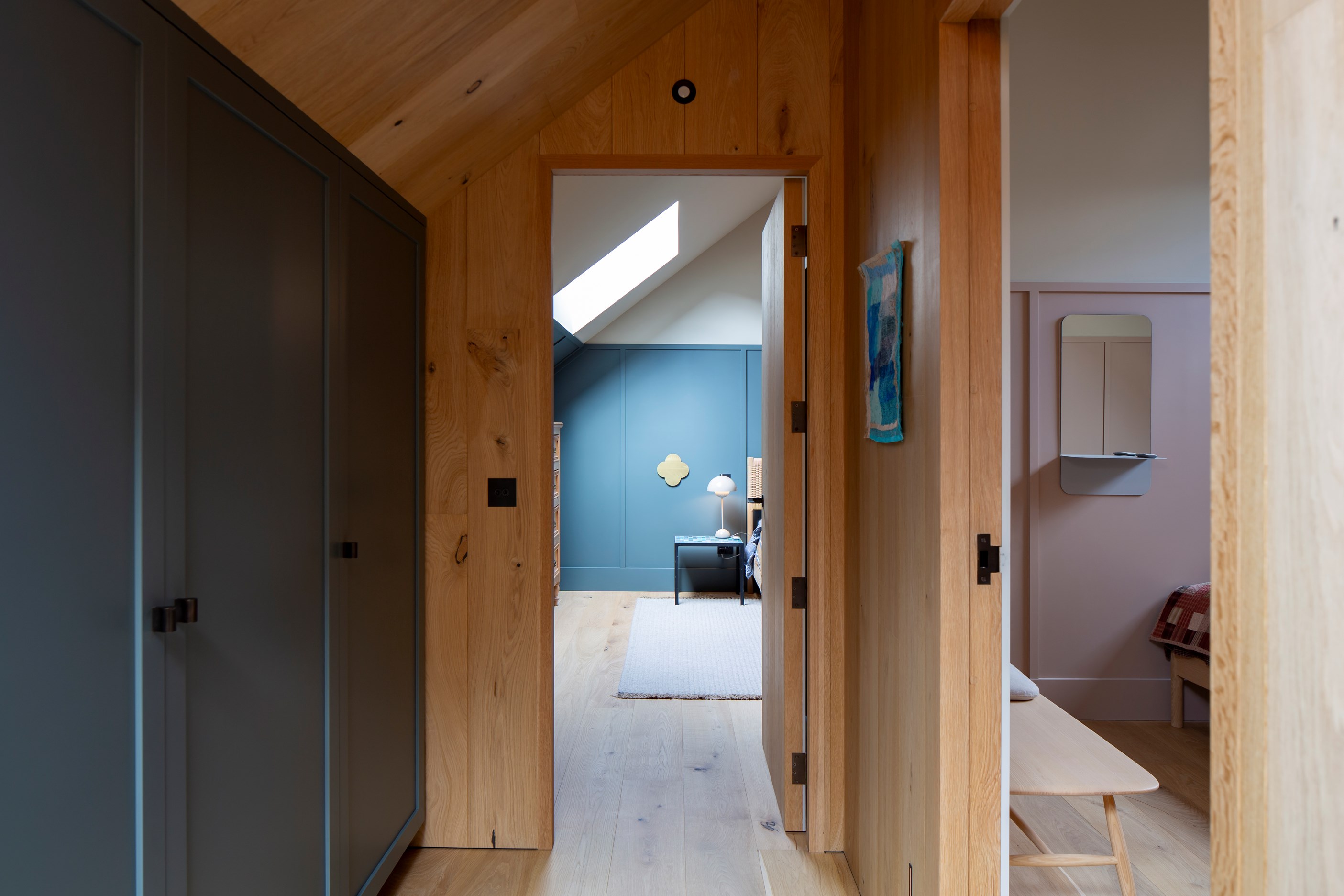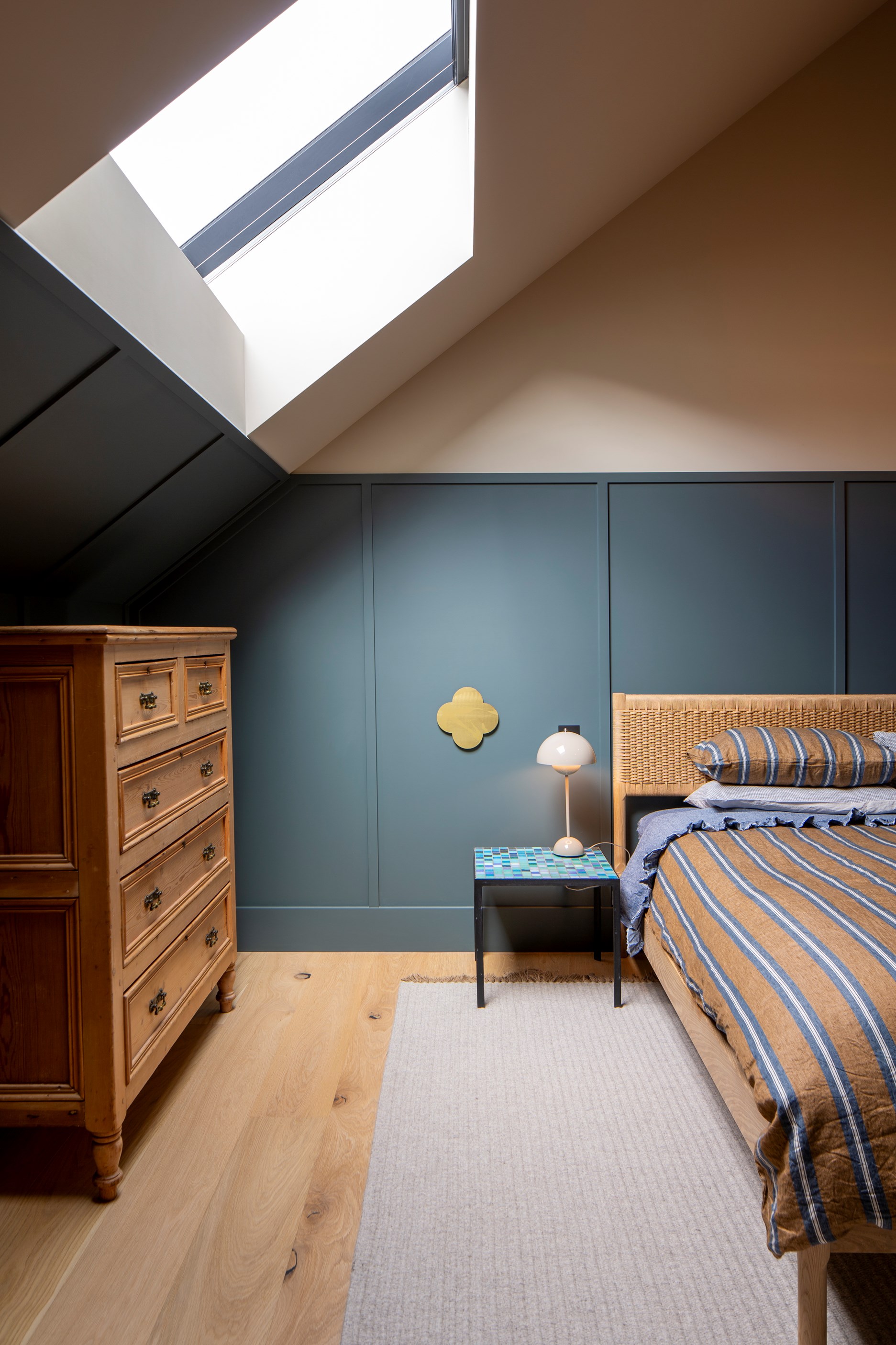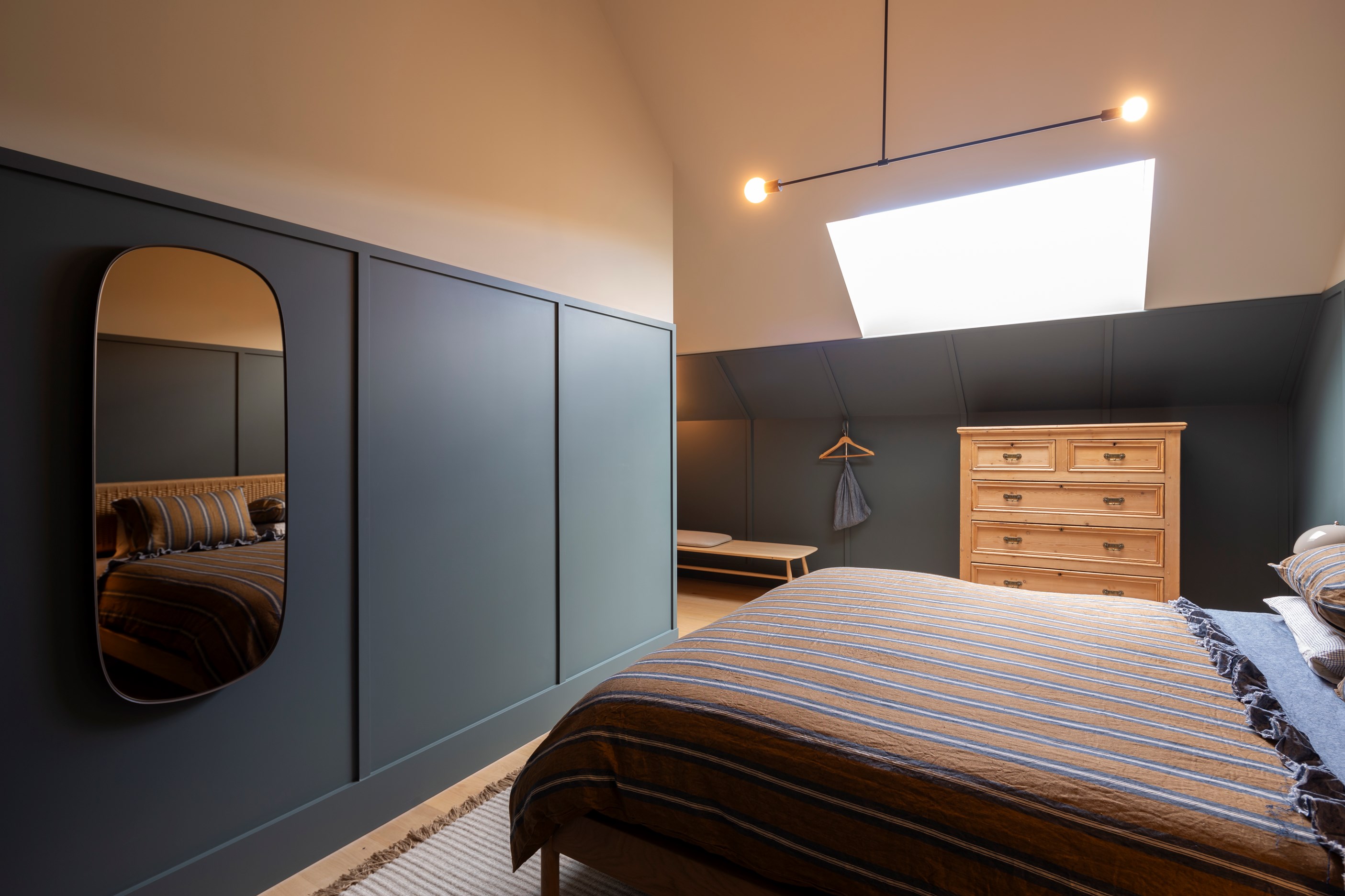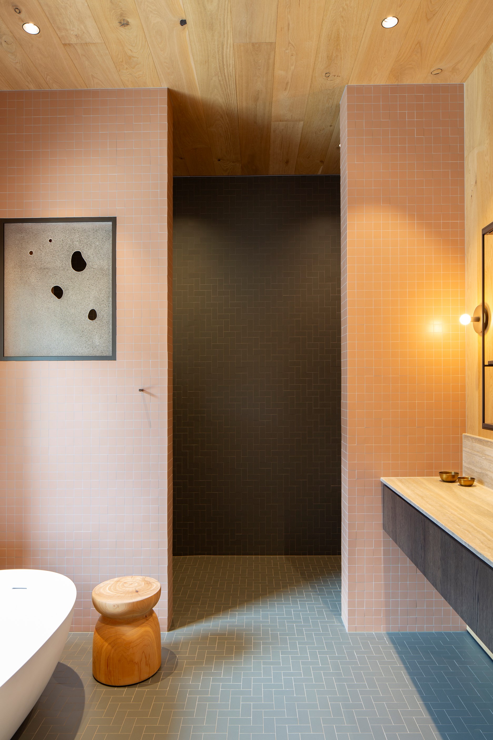 The simple barn form never looked so good. This Patterson Associates Architects-designed holiday home speaks the Central Otago language of stone and timber. The vernacular of The Gatehouse is expressed in two barn-like structures, one clad in local schist, the other in timber – wholly appropriate for a property on a former sheep station. The brief was to deliver a flexible home for family and guests, which is not as simple as it sounds. Sometimes it has to accommodate lots of people in various stages of their lives; at others, it has to be comfortable for just two. Flexibility was key to the configuration. Still,there was plenty of room to work with – 661sqm, in fact. The timber, slightly smaller of the two pavillions sits on the street side of the site and has bedrooms, bathrooms, a kitchen, living spaces and a garage. Across the courtyard and linked by a gallery is the stone pavillion, with bedrooms, a large open-plan kitchen, dining and living area.