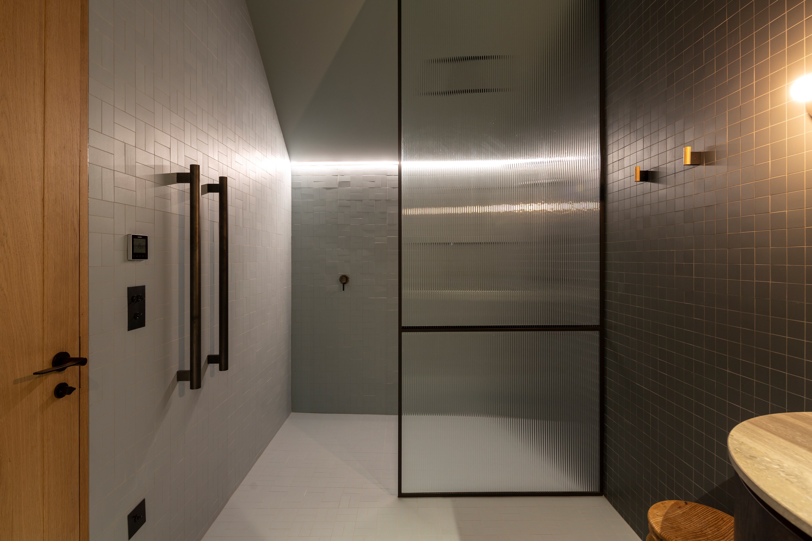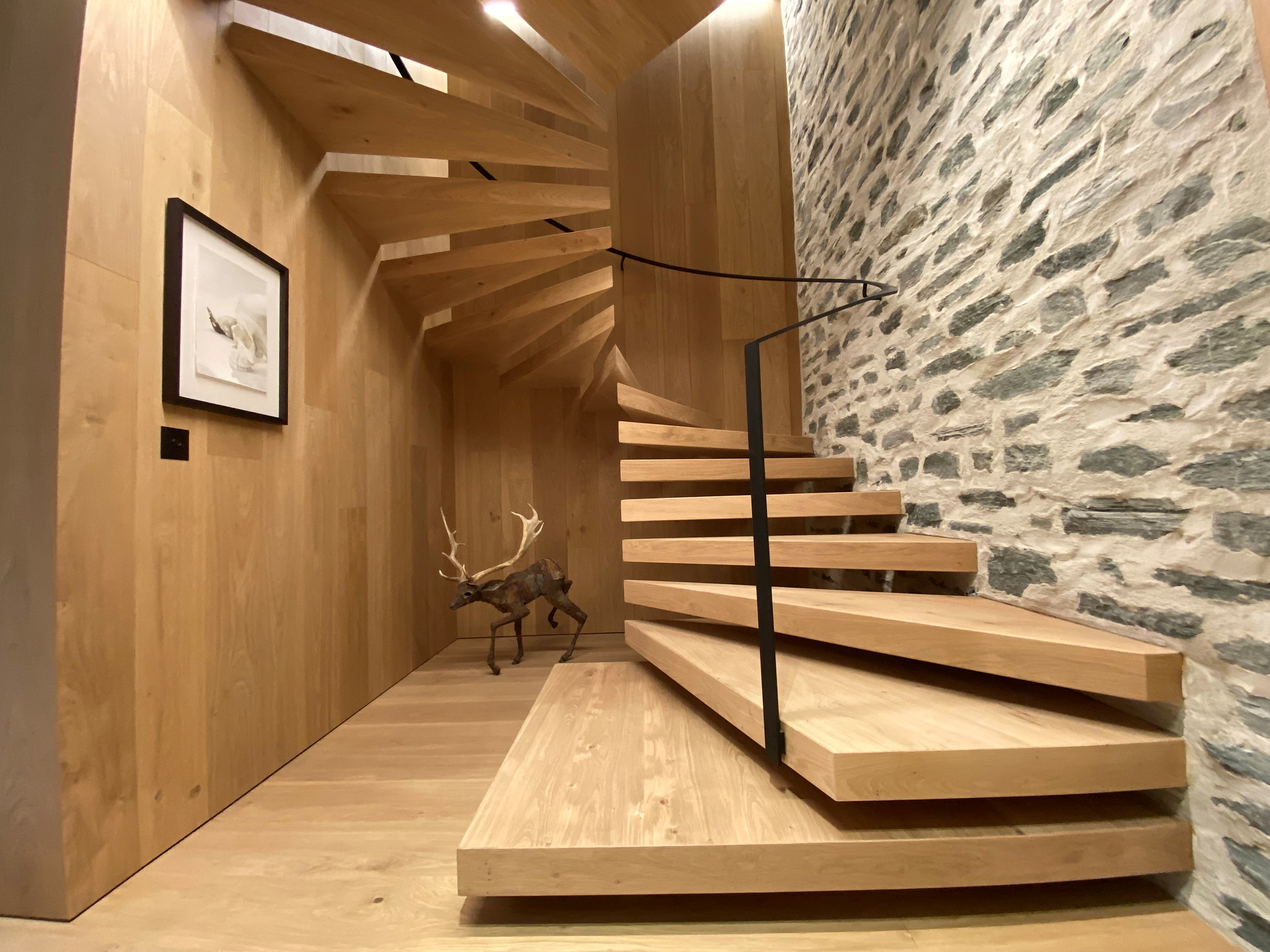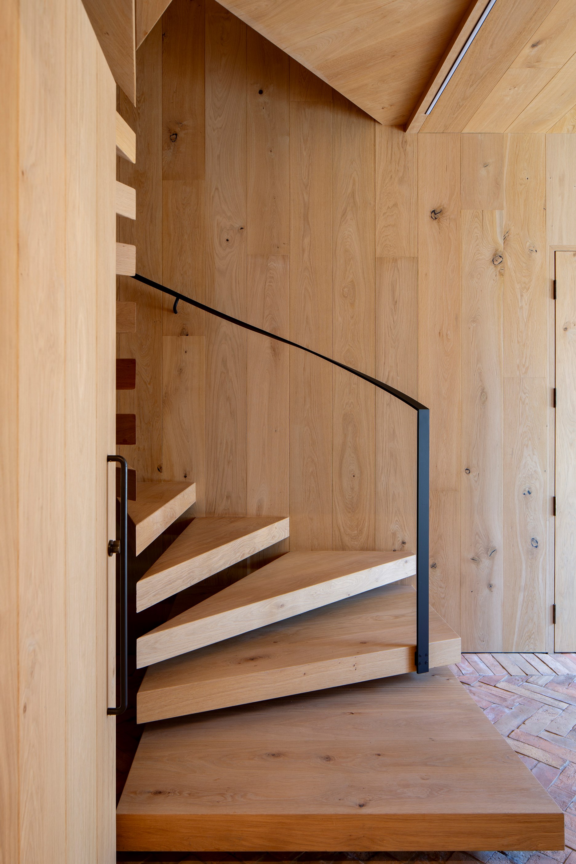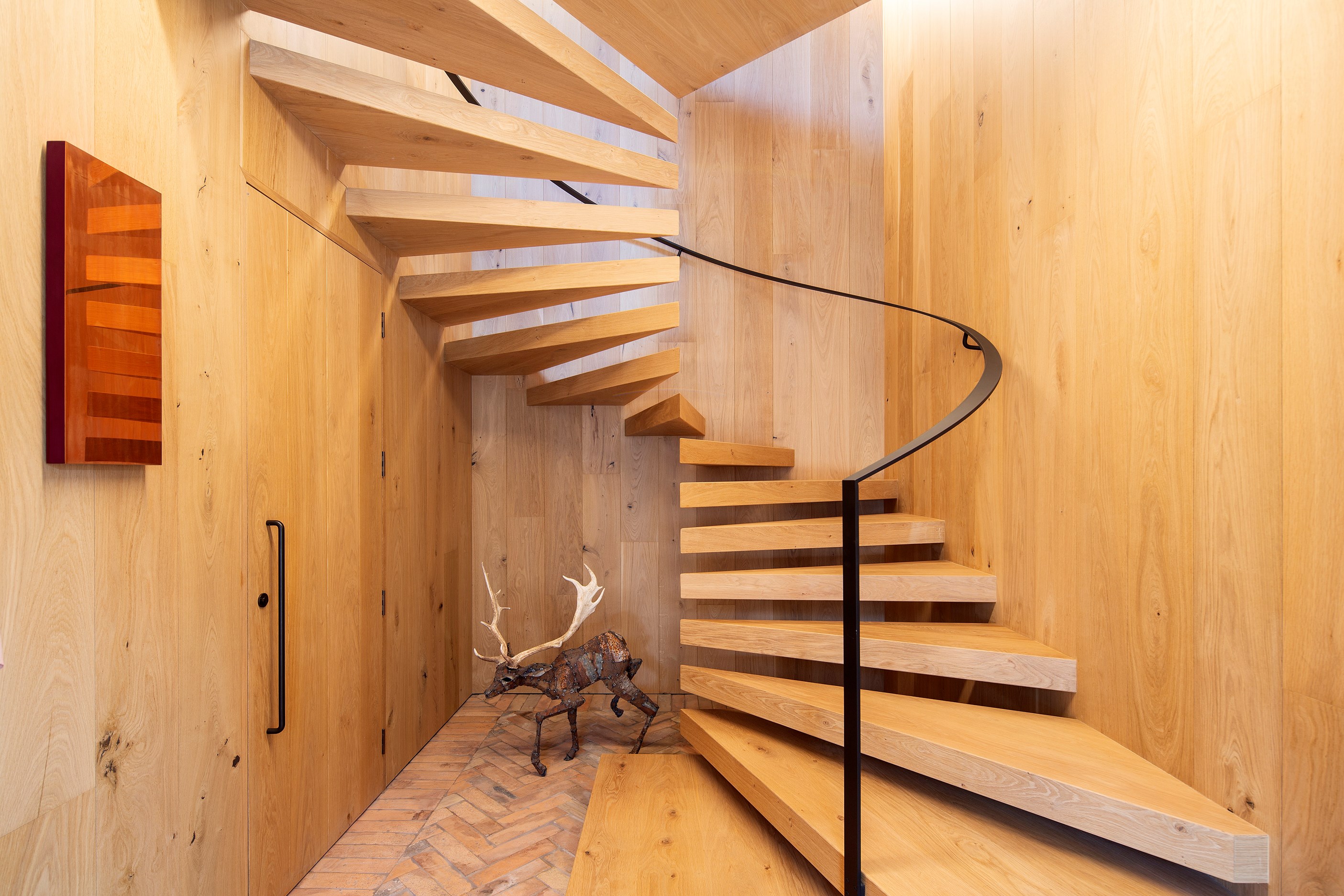 A key feature of the five-bedroom, four-bathroom home is a portcullis – an architectural feature enclosing an outdoor room typically found at the entry to castles. This is visually exciting but also brings a sense of protection and privacy. Meticulously crafted details abound, from the two curving timber staircases to floating fireplaces, a loggia with skylights, and internal schist and wood detailing. A tennis court simply adds to the luxury.