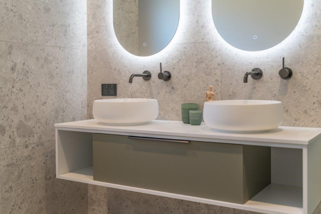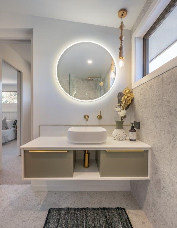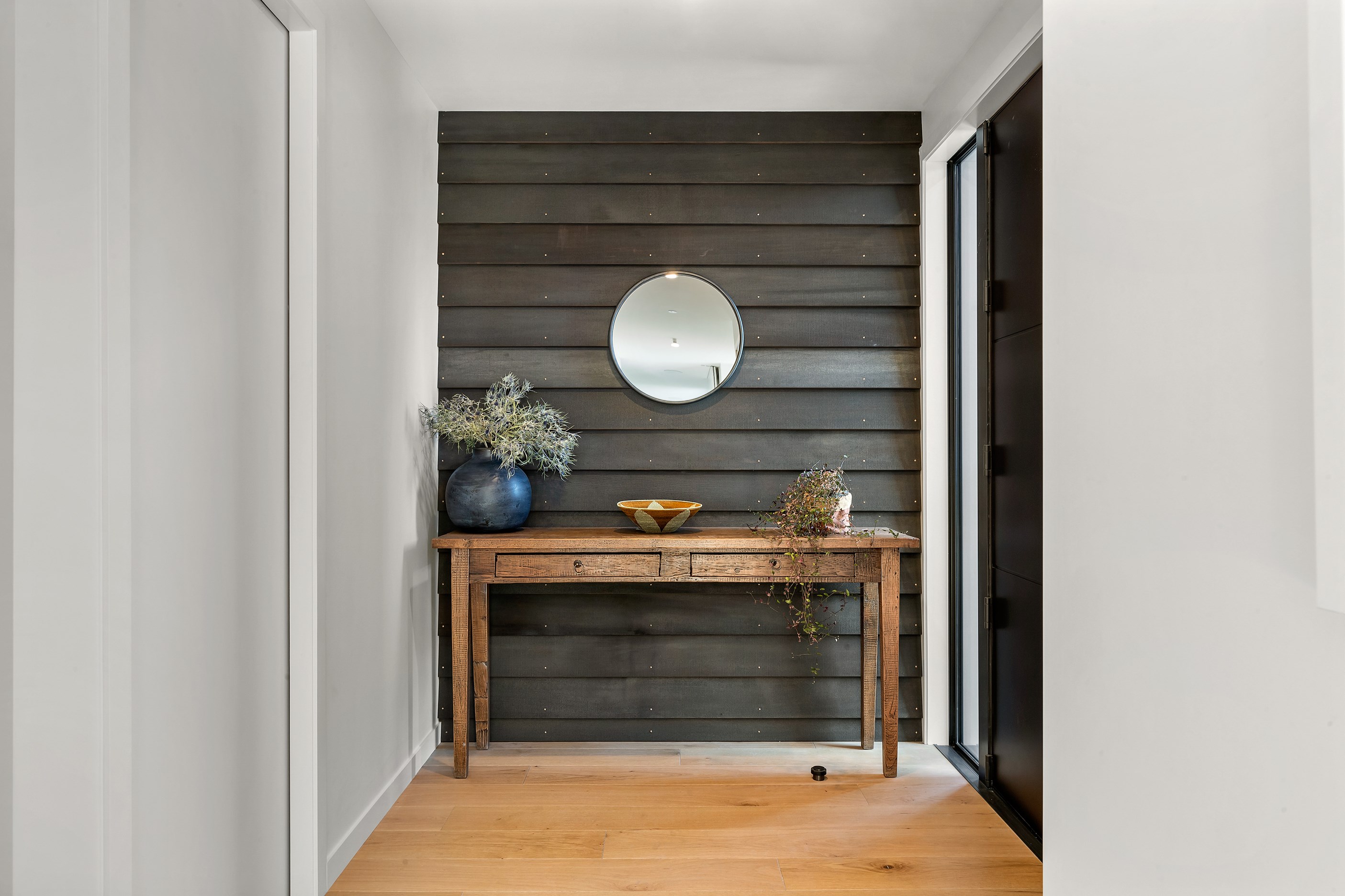 Grand schist columns, Cerano plaster and cedar timber with copper corner soakers on the exterior of this home, give a strong hint of the quality and craftsmanship to come in the interior. On the ground floor are three spacious bedrooms (including one with walk-in robe), a generous media space with a built-in bar and large stacker sliding doors, a fantastic example of indoor-outdoor flow and the ultimate entertainment area. There’s a fully tiled bathroom with luxe bathtub, an over-height double garage, complete with shelving for all the toys, custom laundry joinery and attic storage with stair access.
