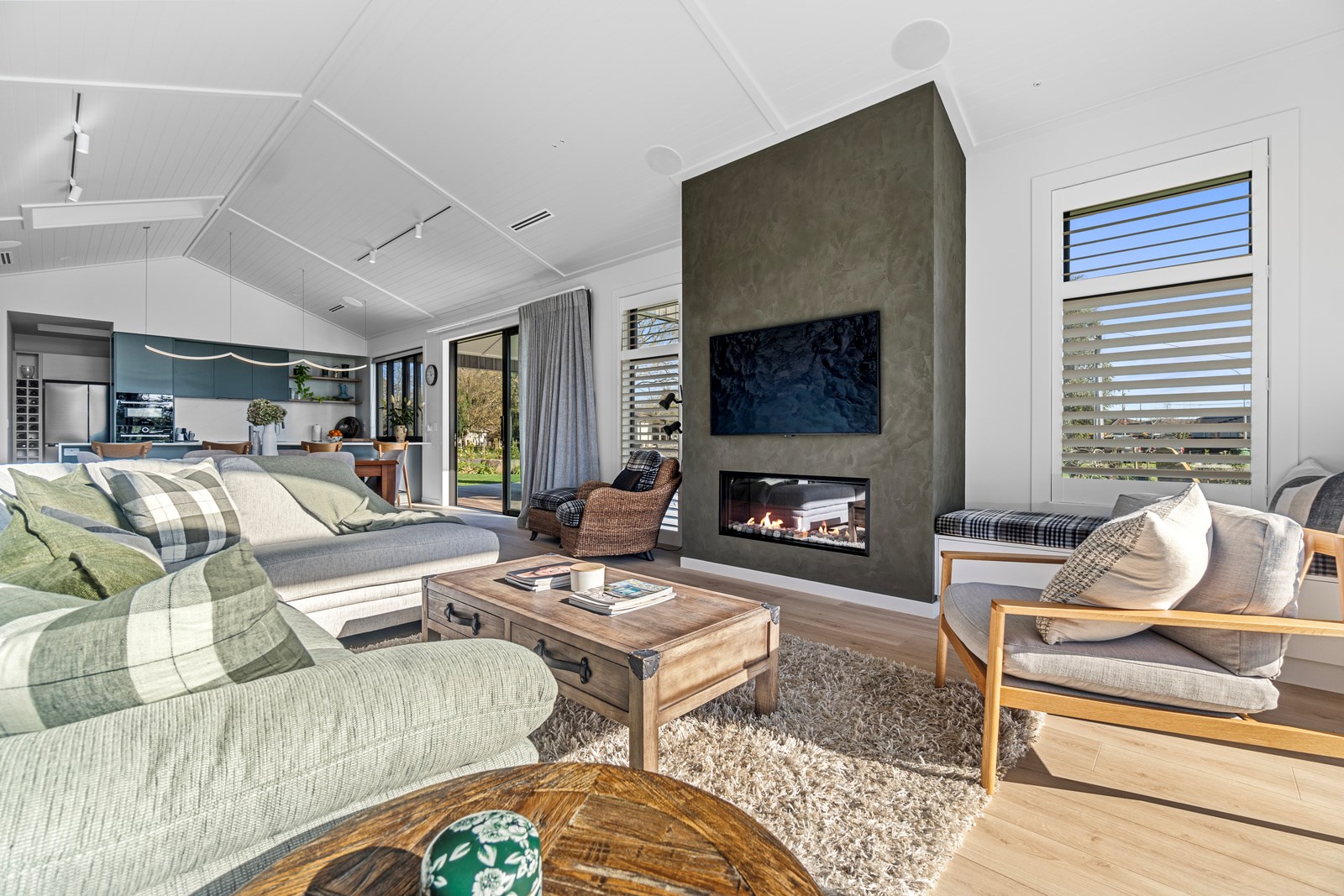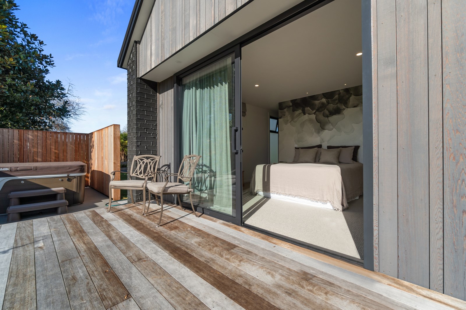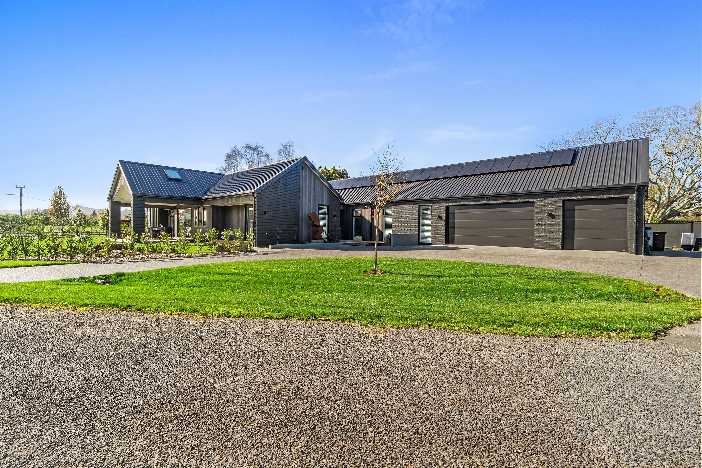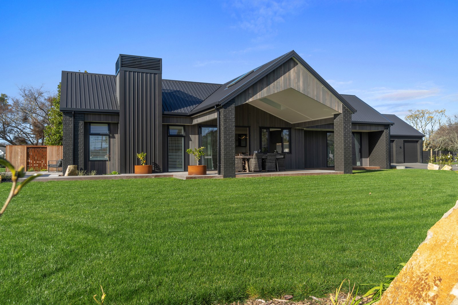 Relaxed retirement living doesn’t get any better than this. The three-bedroom home was custom designed for its owners who also wanted it be comfortable, practical and eco-friendly – without scrimping on style. It’s clear Linecrest Homes has delivered the lot with skill and care. It starts with the exterior of the two linked gabled wings, which are clad in combination of mixed-width vertical cedar and painted black brick with uneven mortar adding texture. It’s long, dark and handsome. A local interior designer helped shape the decor inside the 308sqm home. The cohesive palette was inspired by the blues and greens of nature. You’ll see this influence in bathroom tiles, kitchen cabinetry, wallpaper features, wall hues and more. Light pours in through skylights, clerestory windows and sliders that open to no fewer than three decks. One, a portico, flows from the open-plan kitchen, dining and living space so the owners can enjoy the home’s north-facing aspect year round.