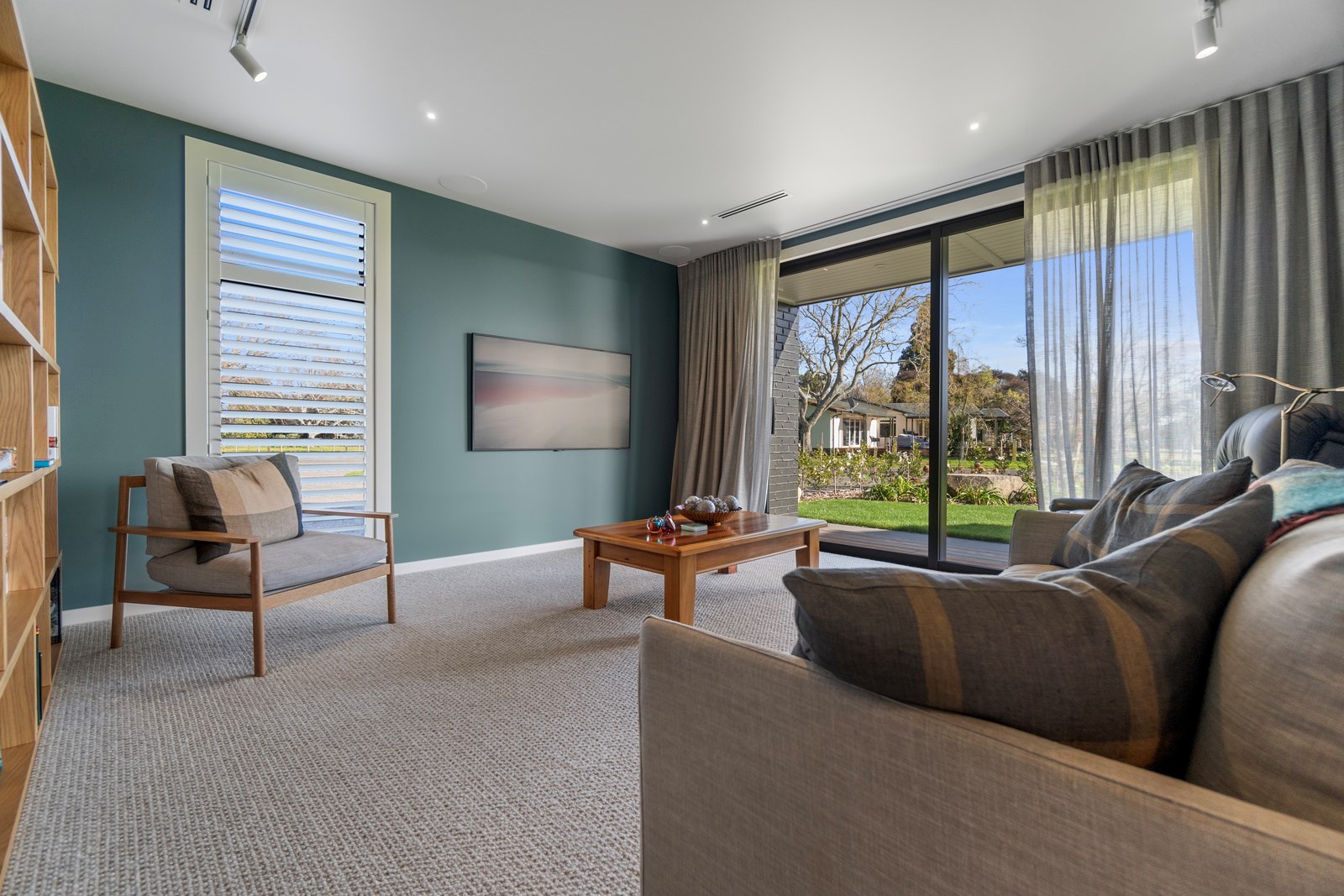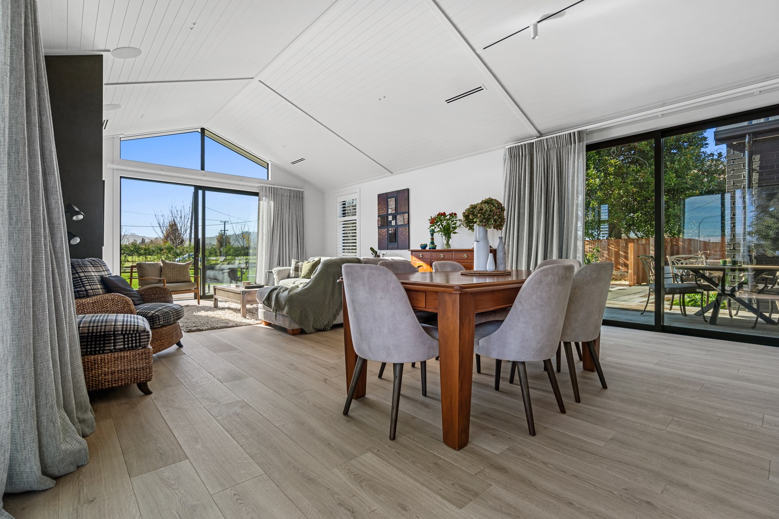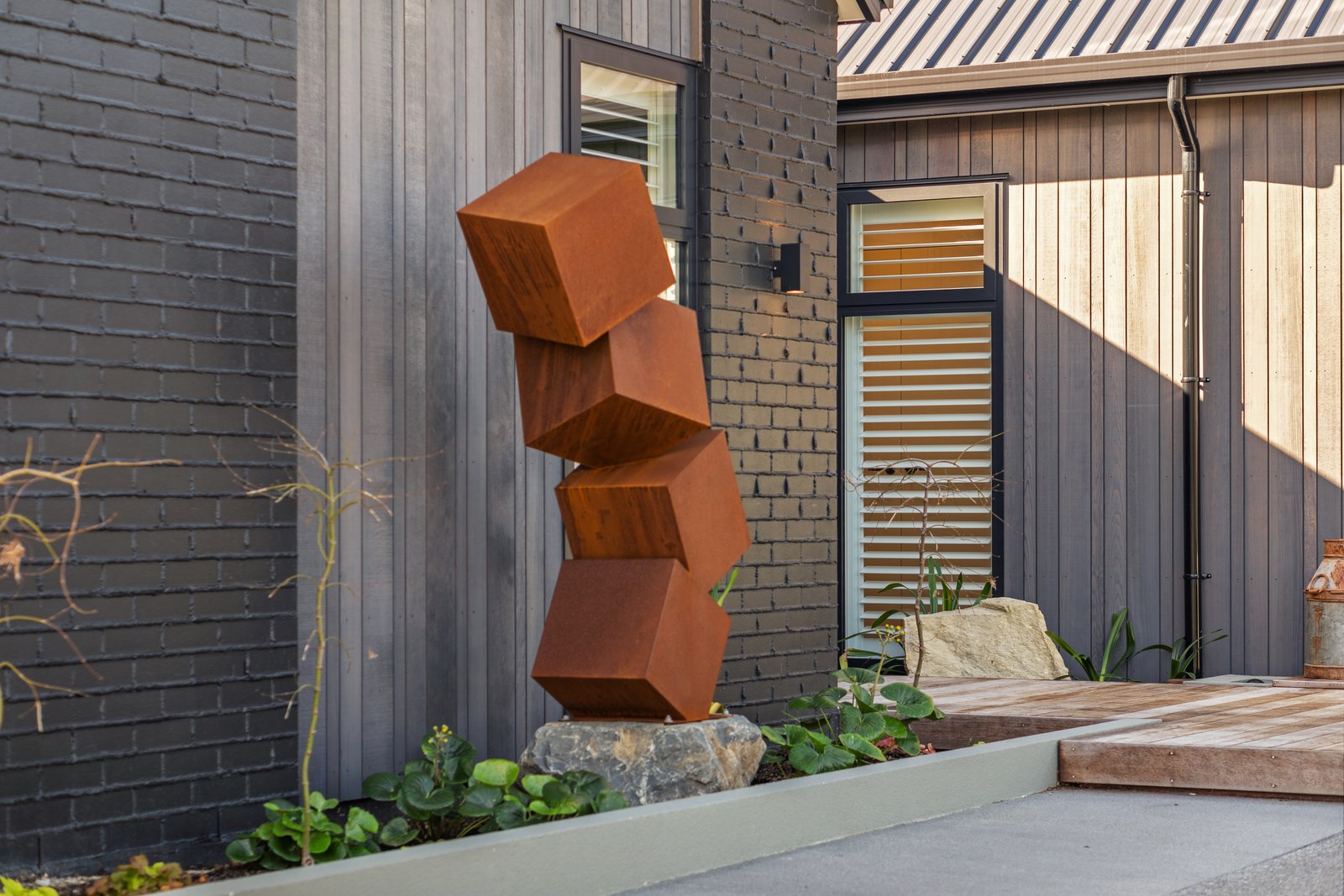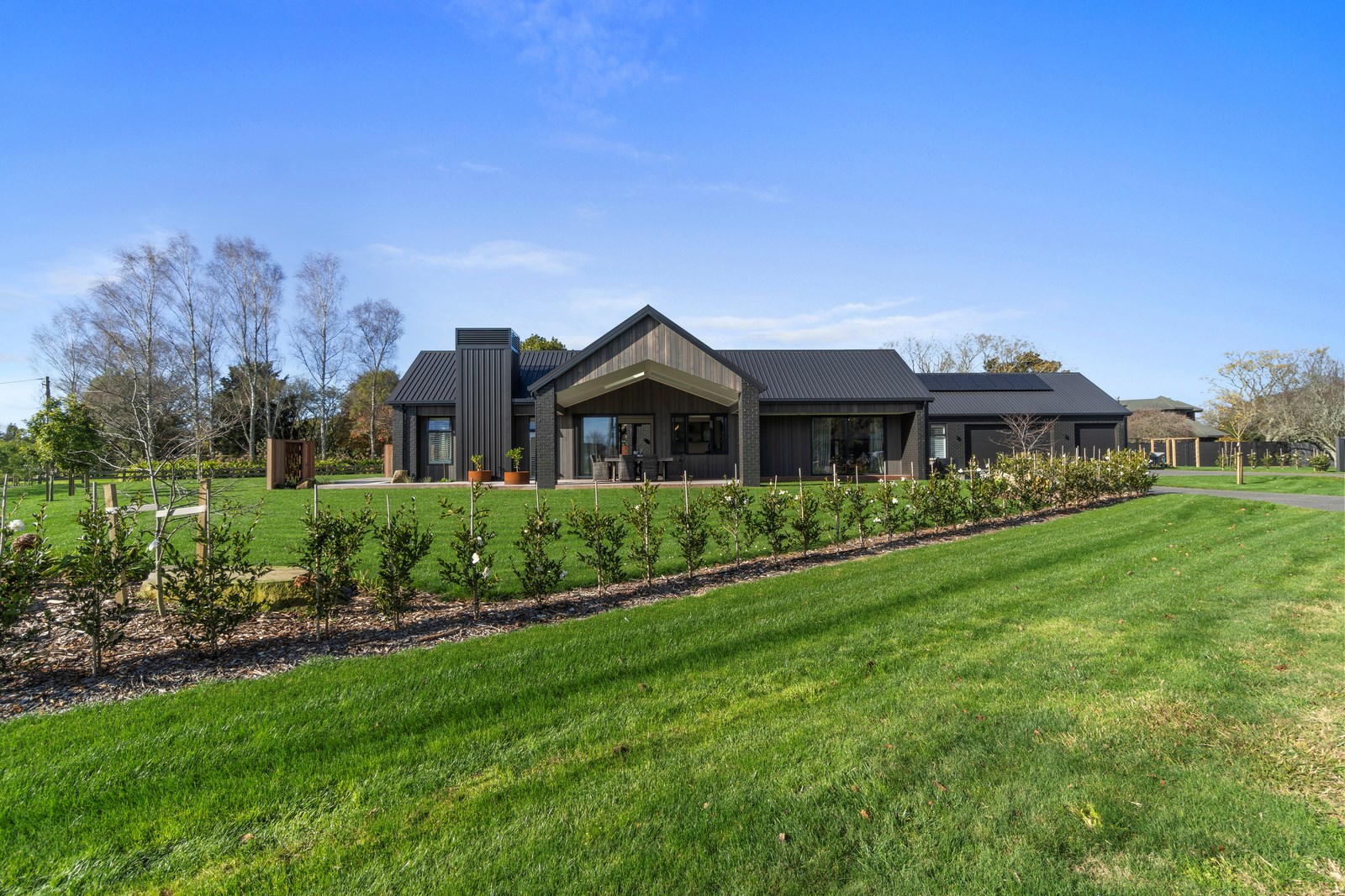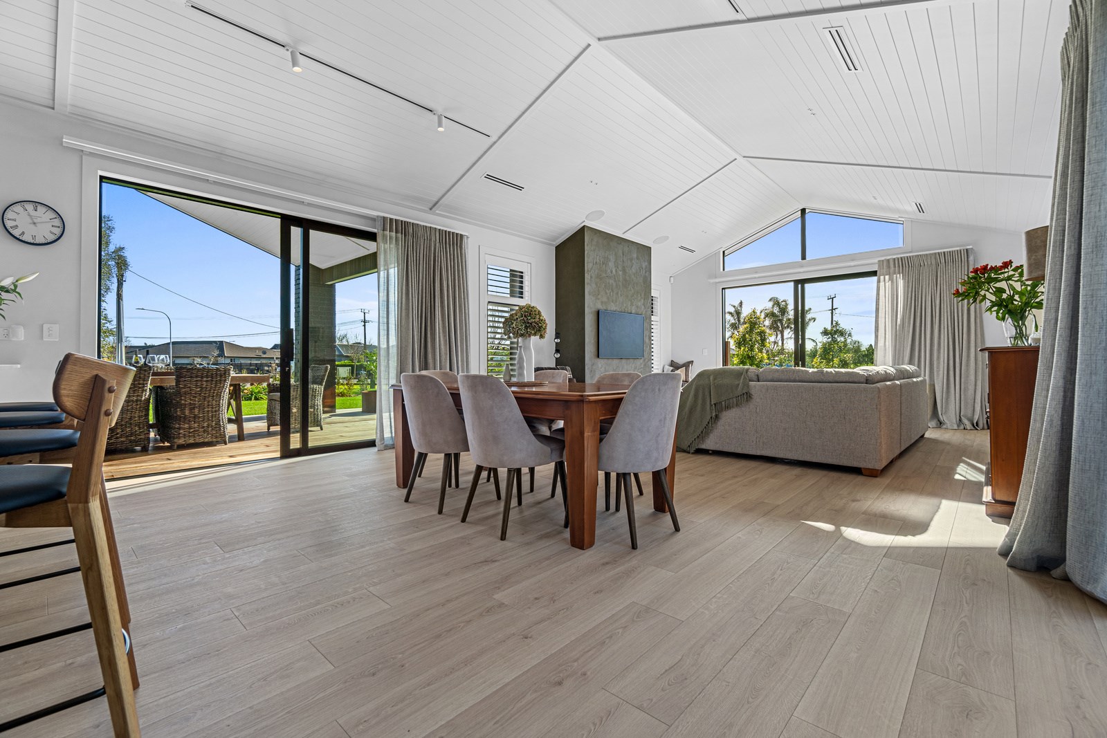 Relaxed retirement living doesn’t get any better than this. The three-bedroom home was custom designed for its owners who also wanted it be comfortable, practical and eco-friendly – without scrimping on style. It’s clear Linecrest Homes has delivered the lot with skill and care. It starts with the exterior of the two linked gabled wings, which are clad in combination of mixed-width vertical cedar and painted black brick with uneven mortar adding texture. It’s long, dark and handsome. A local interior designer helped shape the decor inside the 308sqm home. The cohesive palette was inspired by the blues and greens of nature. You’ll see this influence in bathroom tiles, kitchen cabinetry, wallpaper features, wall hues and more. Light pours in through skylights, clerestory windows and sliders that open to no fewer than three decks. One, a portico, flows from the open-plan kitchen, dining and living space so the owners can enjoy the home’s north-facing aspect year round.