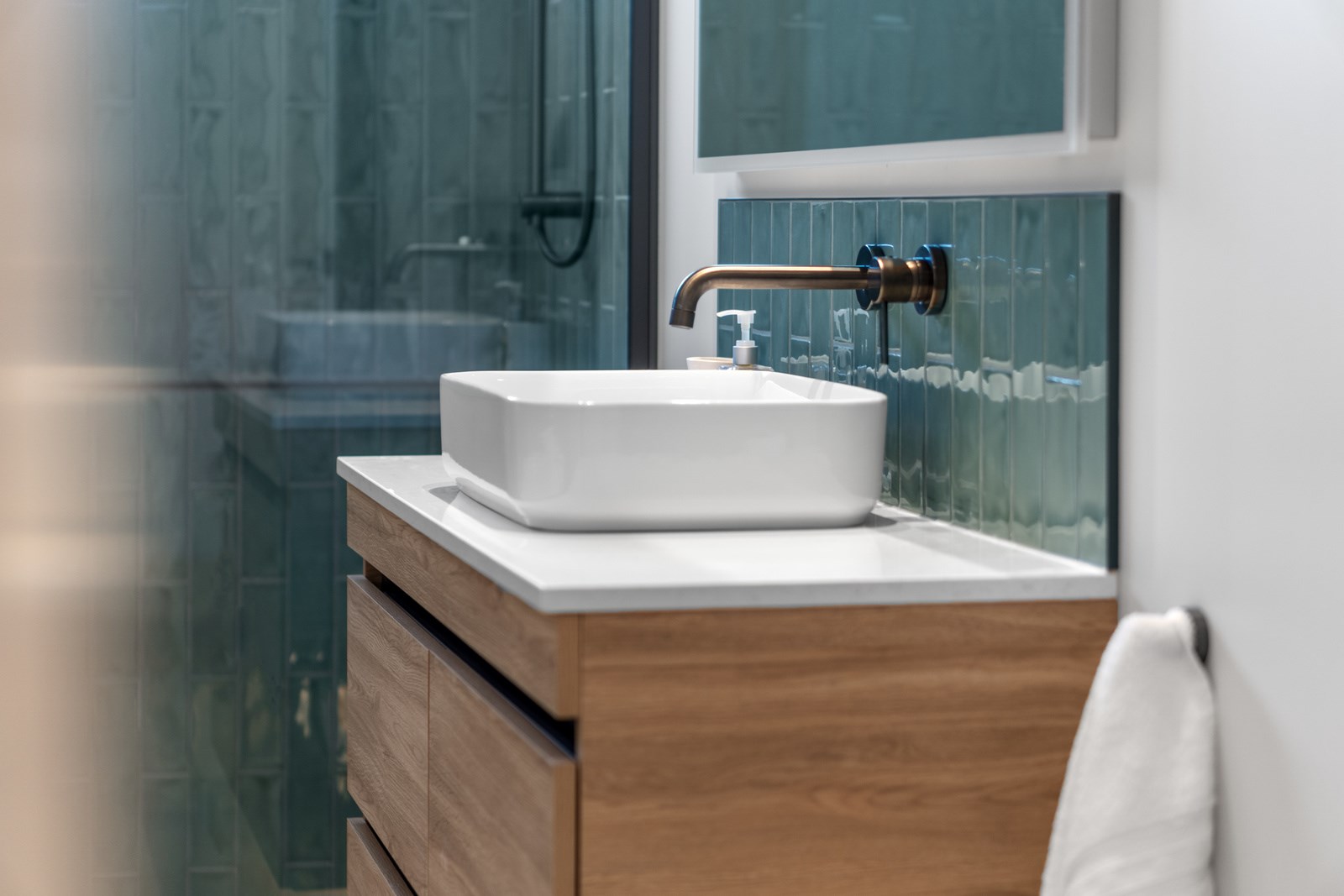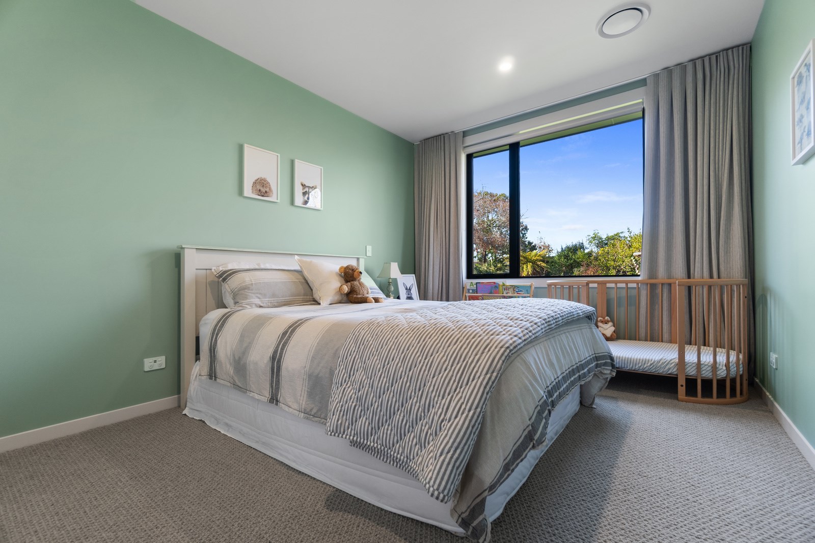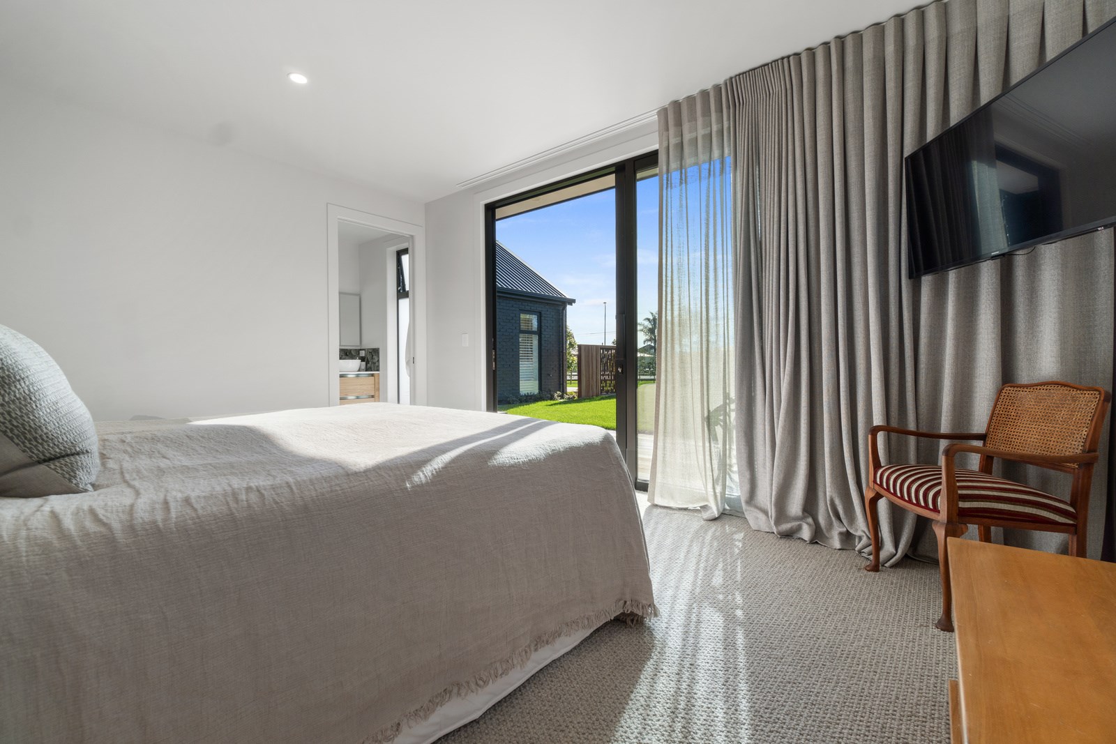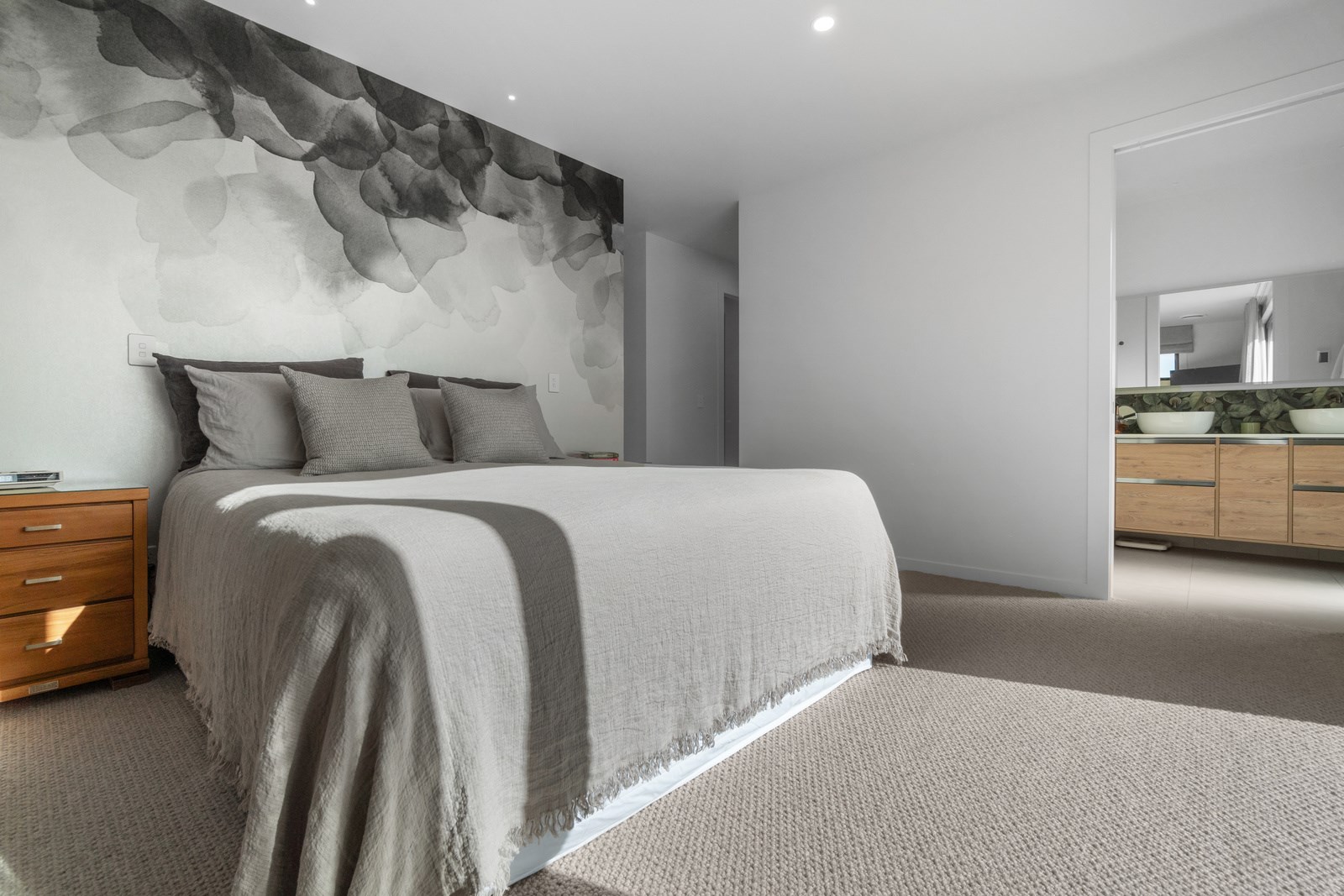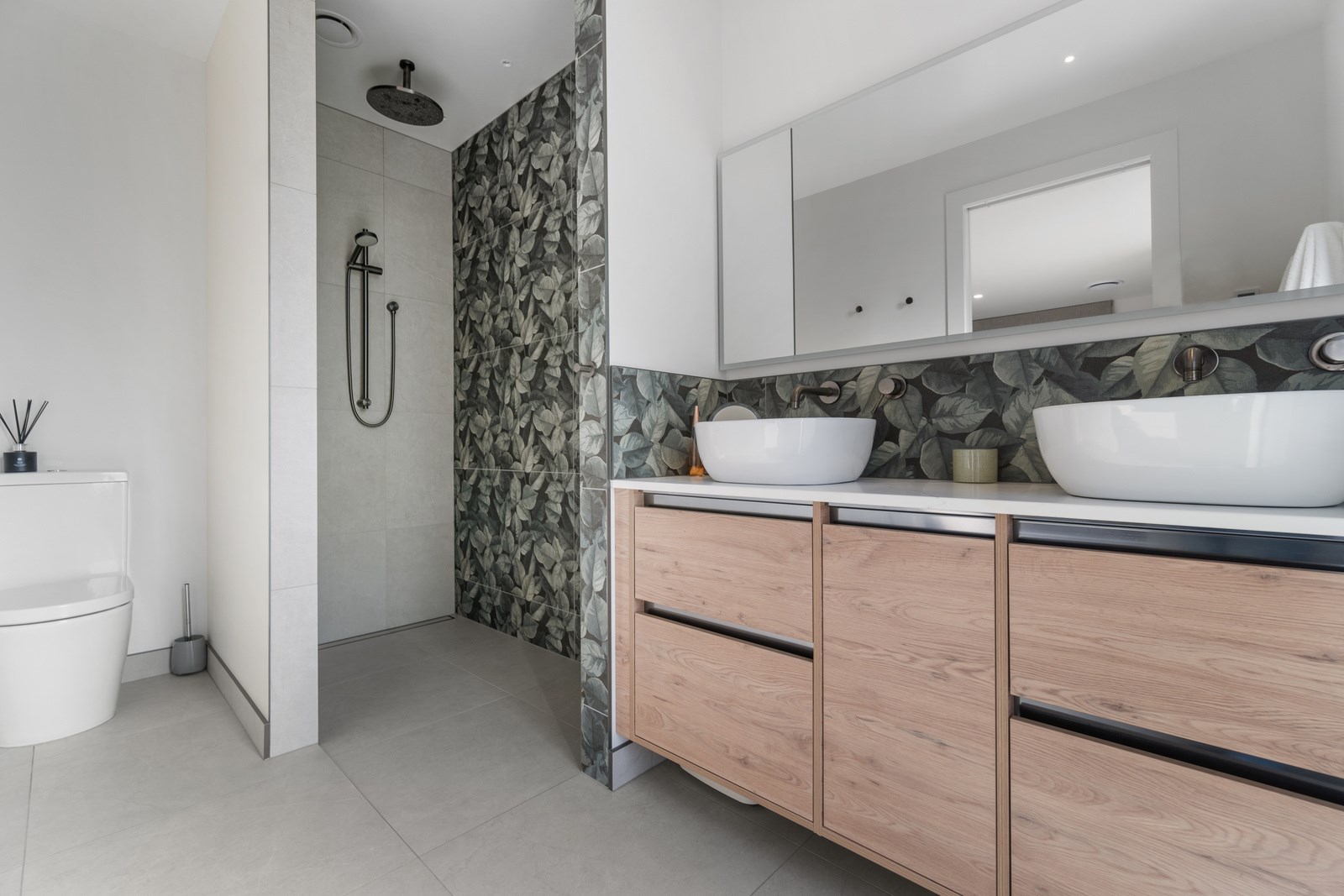 Relaxed retirement living doesn’t get any better than this. The three-bedroom home was custom designed for its owners who also wanted it be comfortable, practical and eco-friendly – without scrimping on style. It’s clear Linecrest Homes has delivered the lot with skill and care. It starts with the exterior of the two linked gabled wings, which are clad in combination of mixed-width vertical cedar and painted black brick with uneven mortar adding texture. It’s long, dark and handsome. A local interior designer helped shape the decor inside the 308sqm home. The cohesive palette was inspired by the blues and greens of nature. You’ll see this influence in bathroom tiles, kitchen cabinetry, wallpaper features, wall hues and more. Light pours in through skylights, clerestory windows and sliders that open to no fewer than three decks. One, a portico, flows from the open-plan kitchen, dining and living space so the owners can enjoy the home’s north-facing aspect year round.