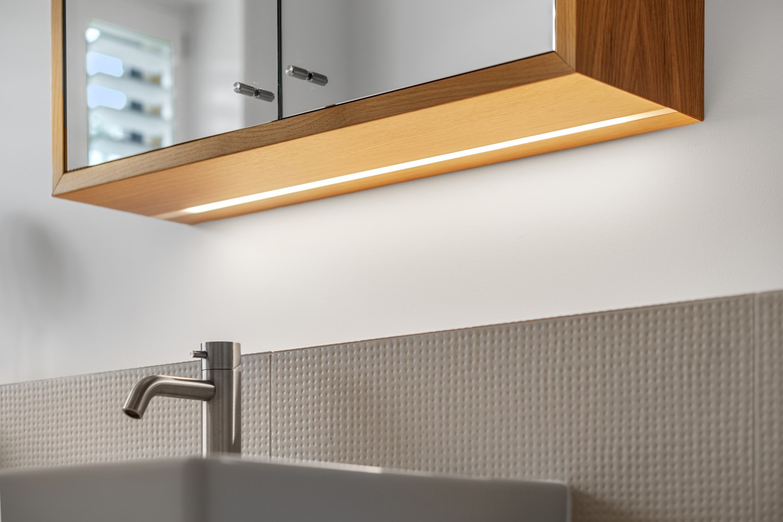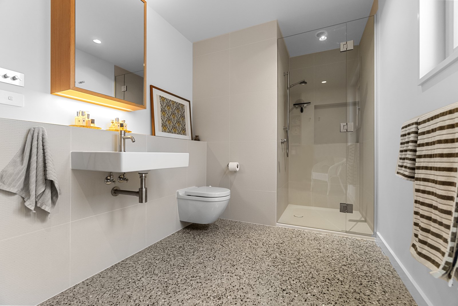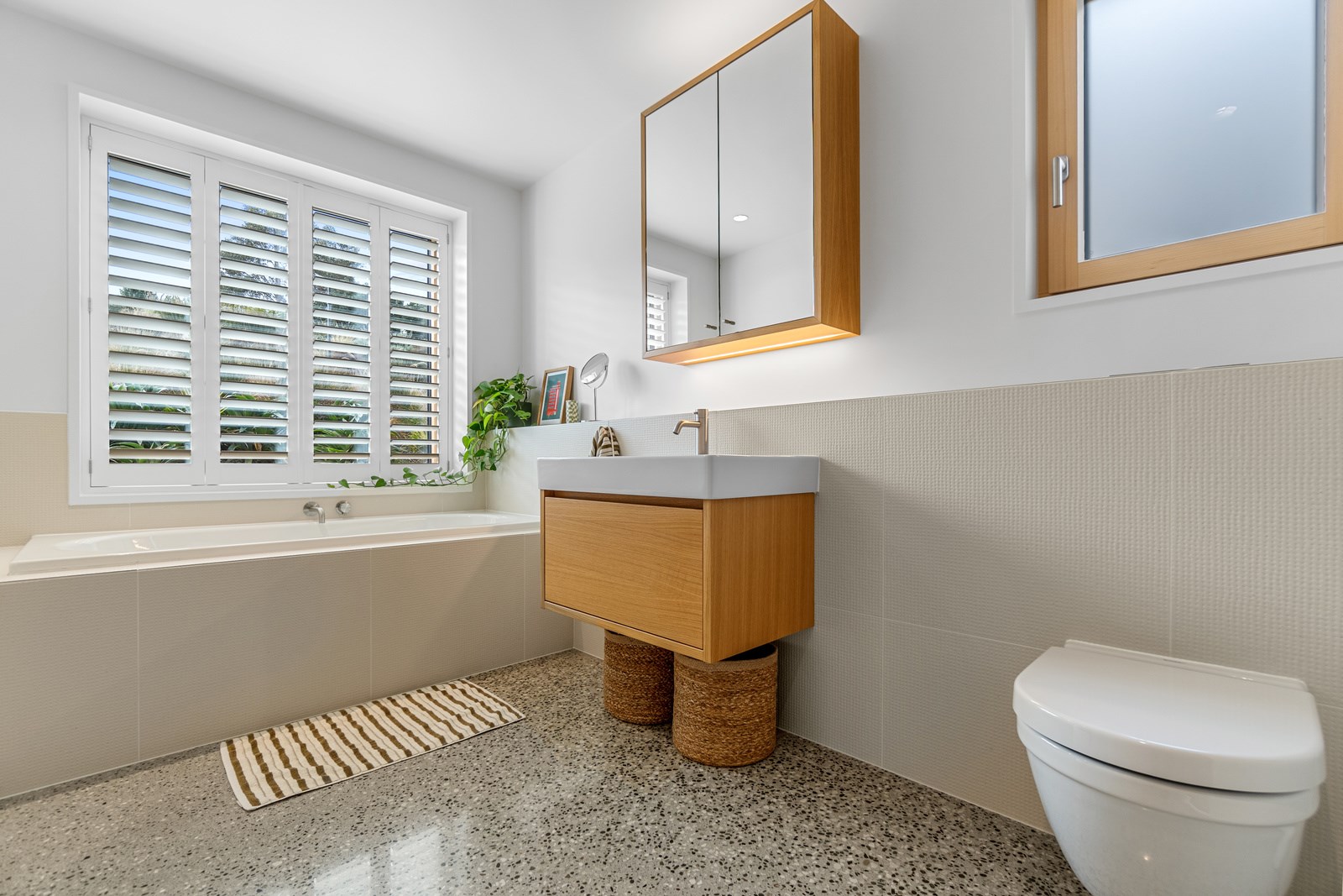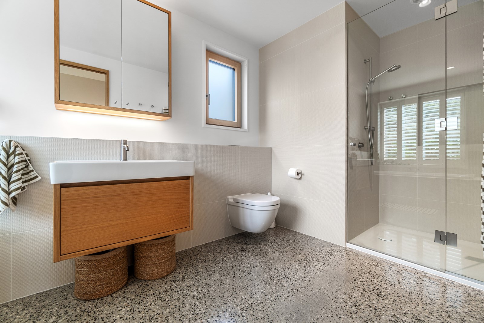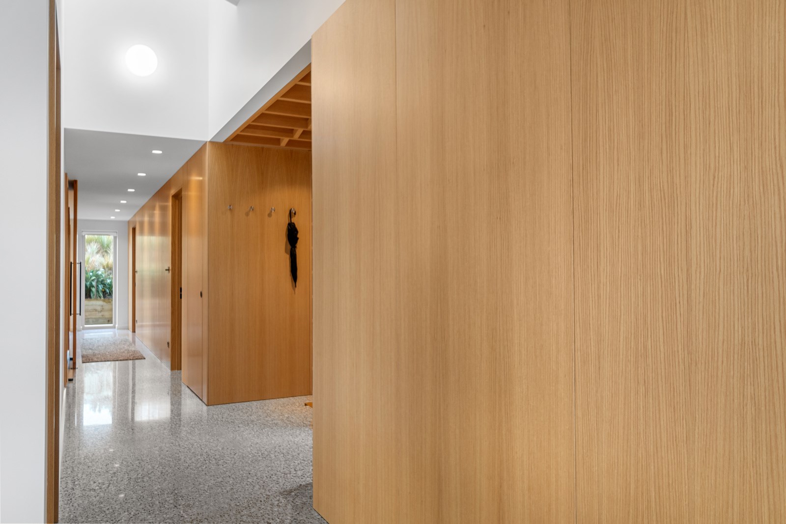 Years of planning went into this 221sqm three-bedroom home, named Āhuru, and it shows. The architect-designed, recently certified, Passive House above Raglan Harbour is a showcase of energy efficiency, sustainability, craftsmanship, bespoke details and fresh, pared-back style. Once the owners had decided on their plans, the project was put in the hands of Brown Construction, who have the regional eHaus licence. The team concentrate on high-performance builds that step lightly on the land. This project required detailed methods and adherence to Passive House design and building principles. Solar energy, gathered from 24 panels and stored by a Tesla Powerwall, runs energy-efficient appliances to assist in maintaining a constant indoor temperature.