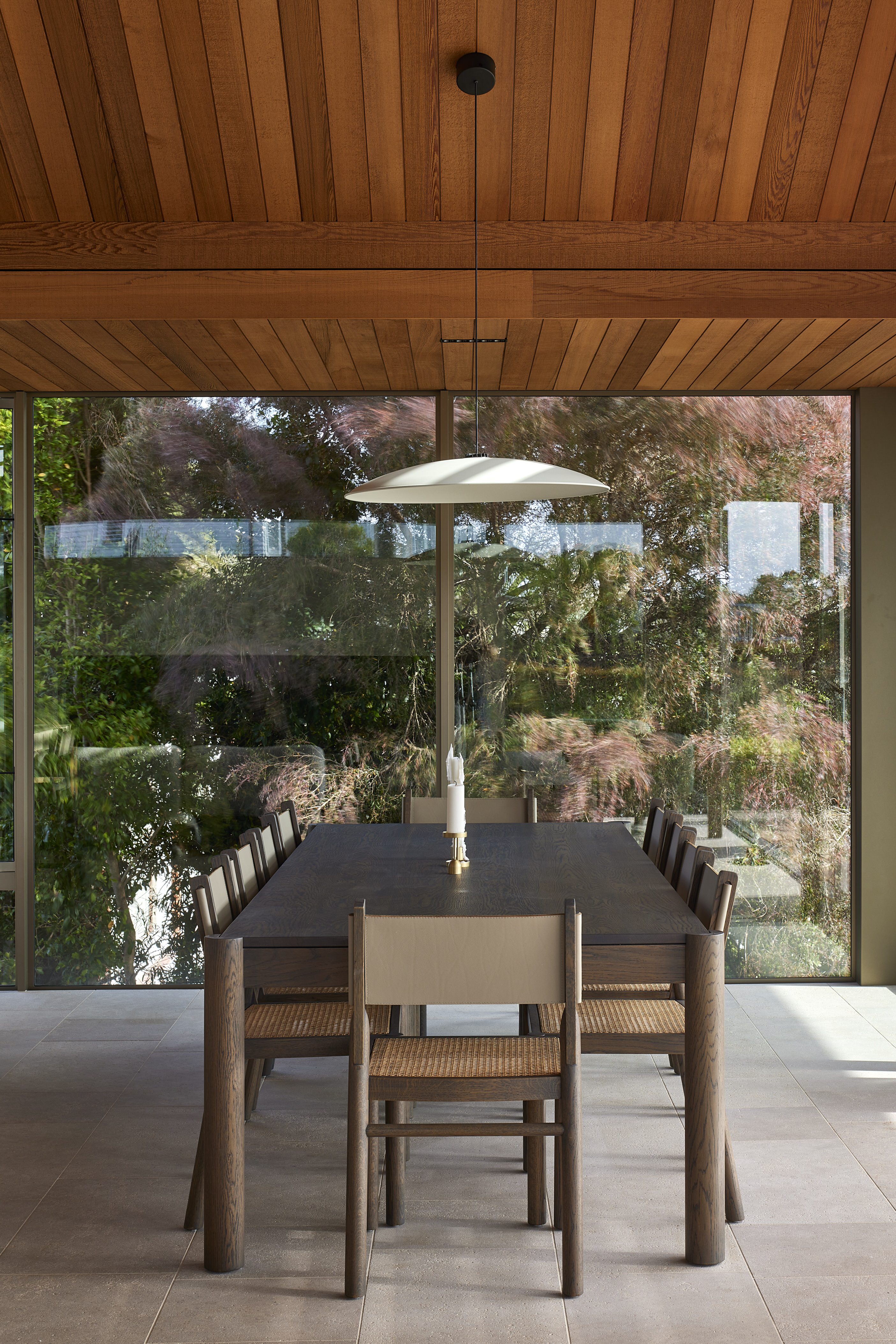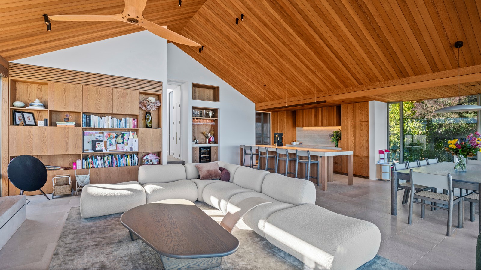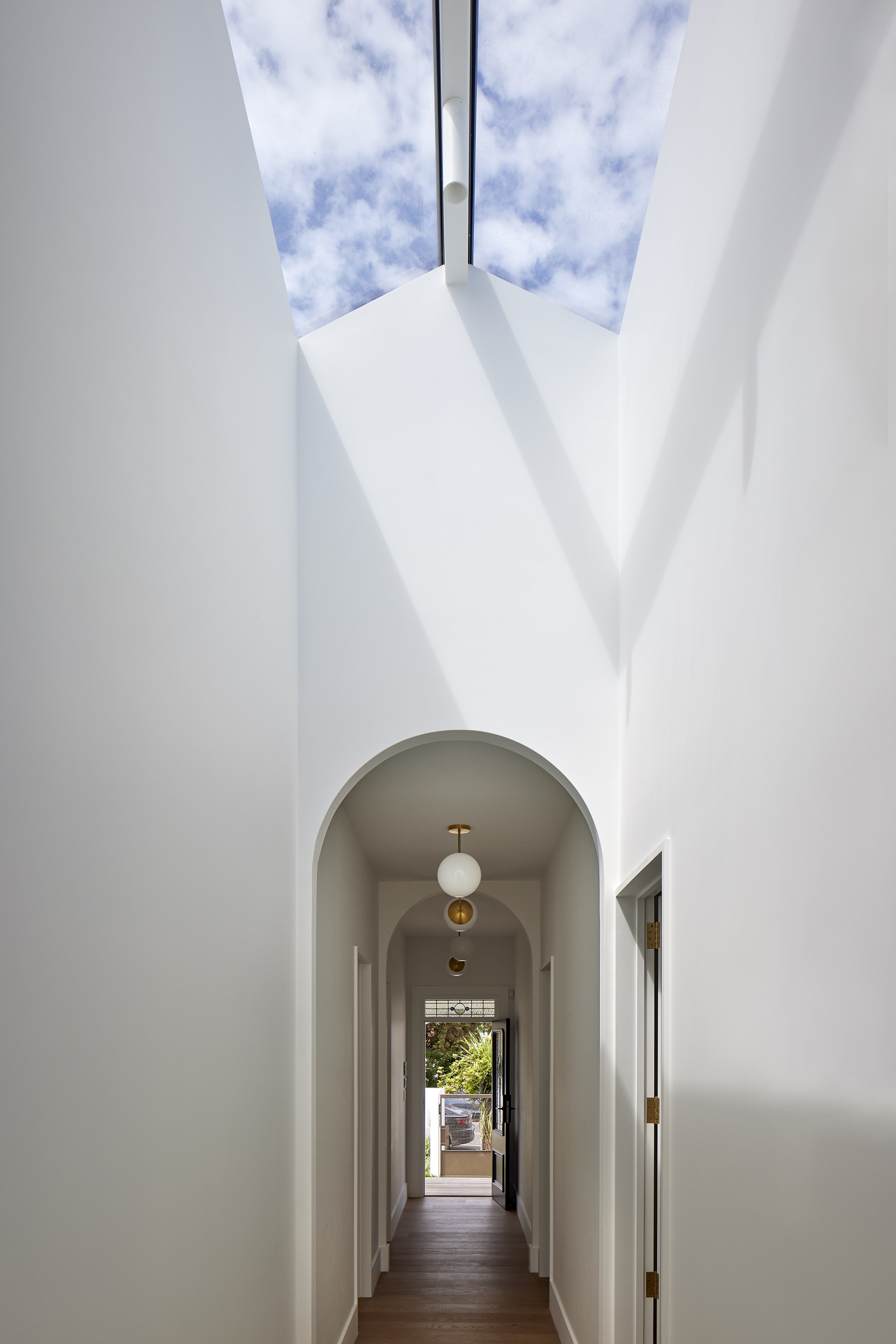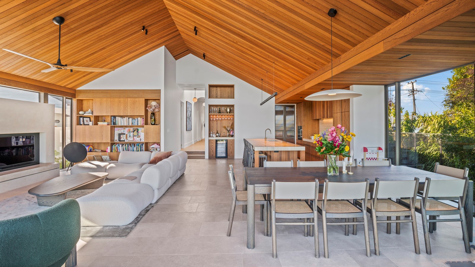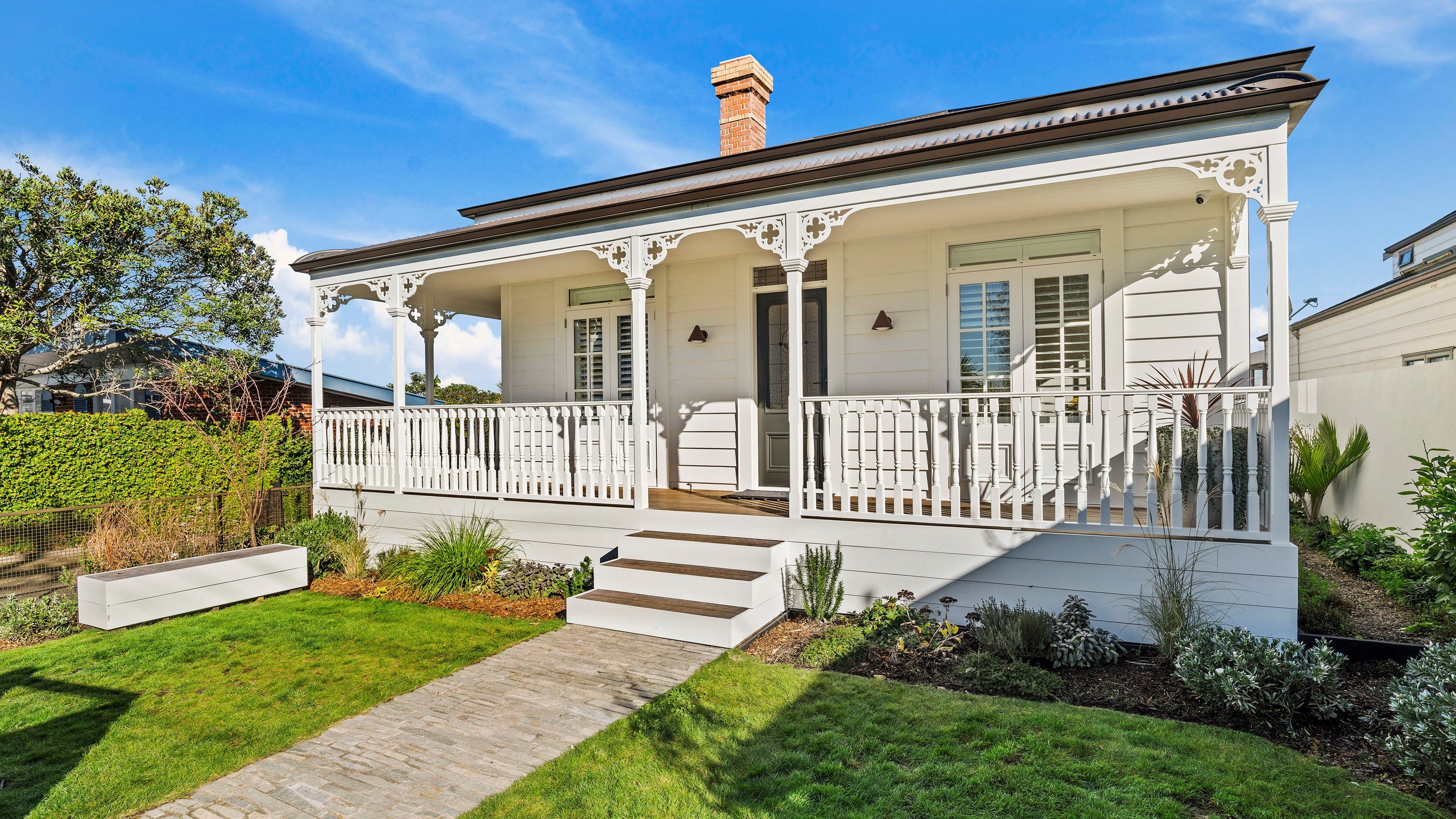 Heritage villa at the front, modern seaside retreat at the back. Expertly fused, they constitute something cohesive and special. This renovation and extension has enhanced the charm and elegance of the villa while crafting an addition with raked cedar ceilings and walls of glass that take in wide harbour views. The living spills onto a west-facing hardwood deck with barbecue for alfresco dining and relaxing. Below is a swimming pool. Talk about a luxury sanctuary in the suburbs. Inside, a milky palette provides continuity between old and new, and illuminated arches usher residents through to the sparkling new extension.