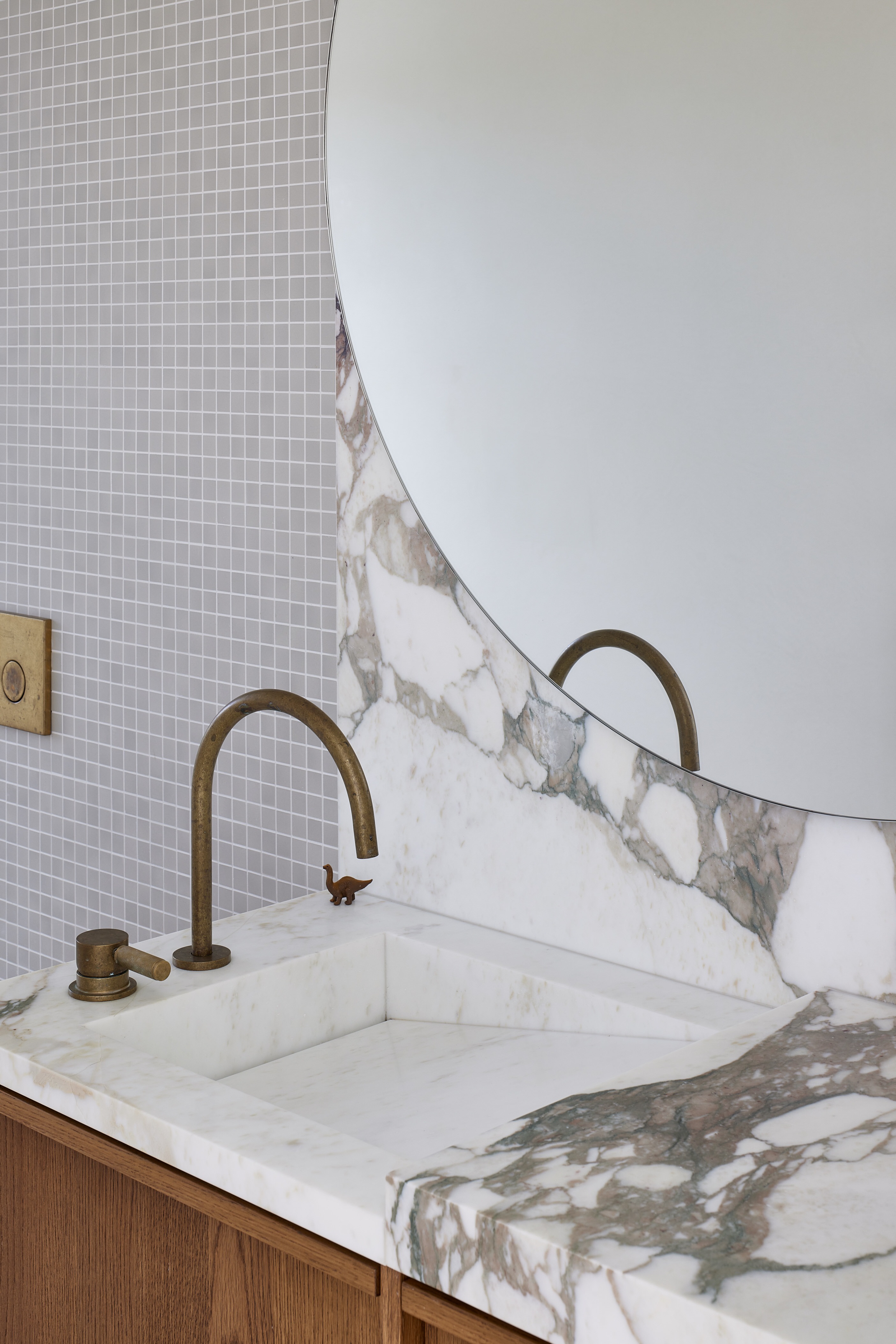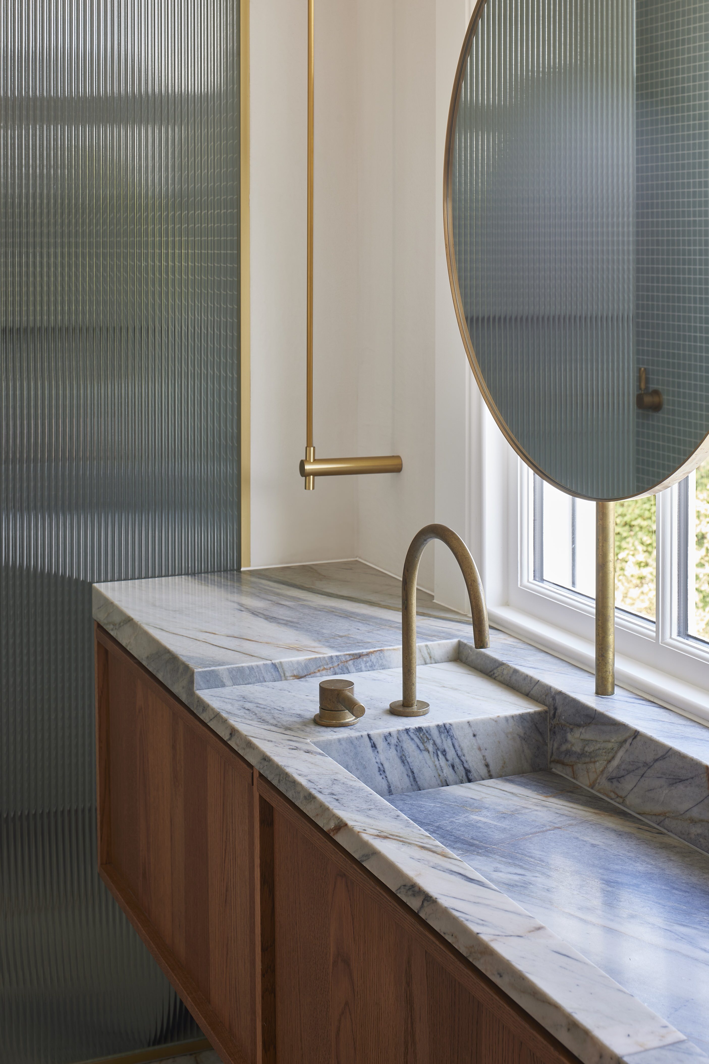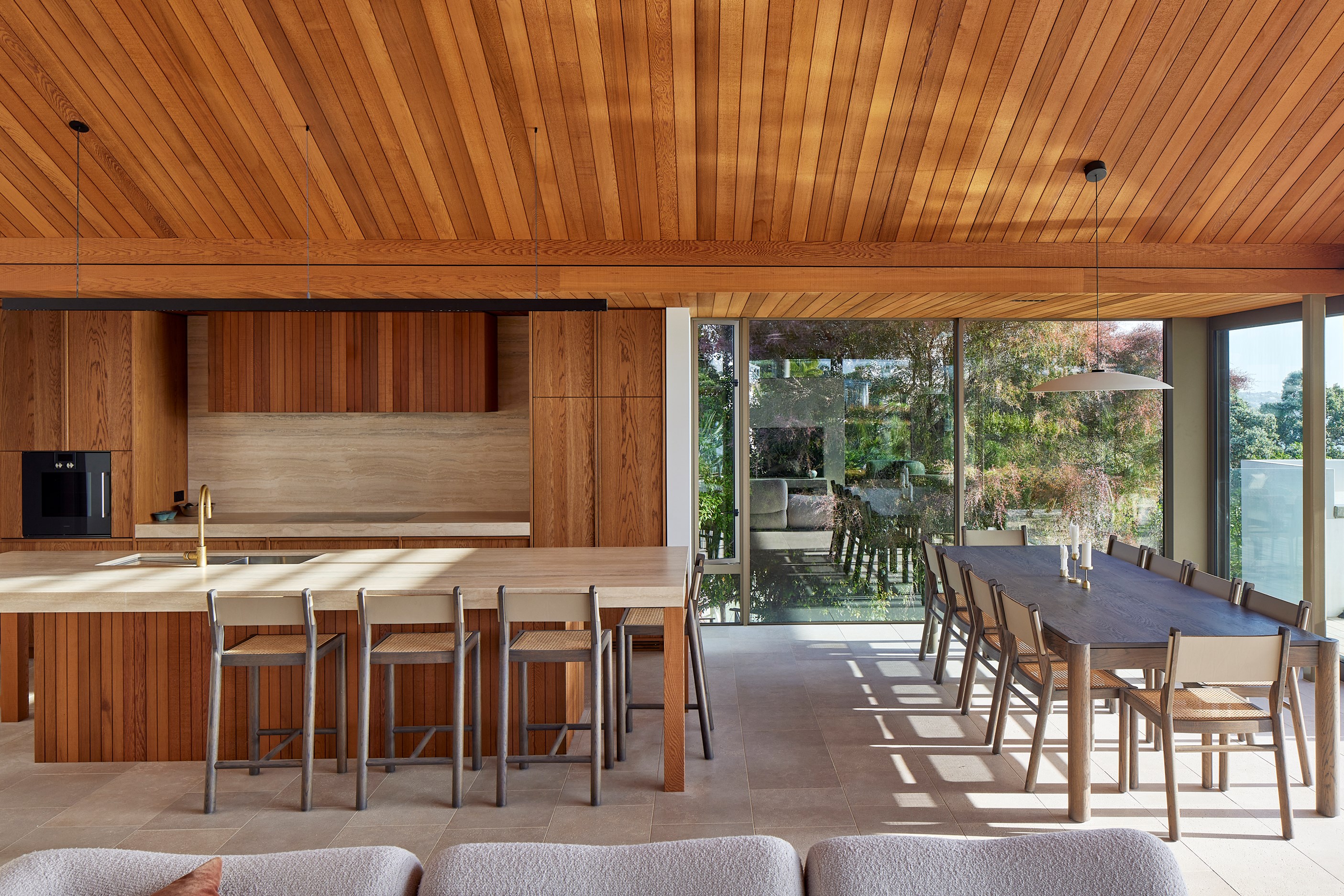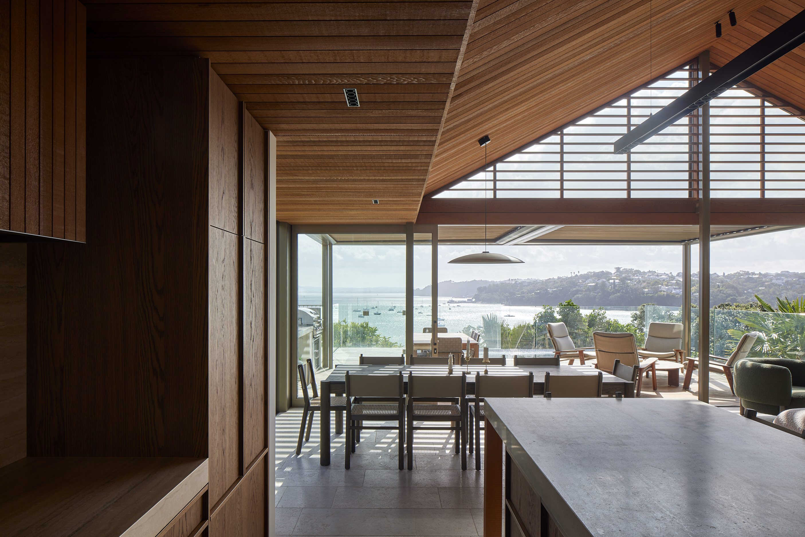Heritage villa at the front, modern seaside retreat at the back. Expertly fused, they constitute something cohesive and special. This renovation and extension has enhanced the charm and elegance of the villa while crafting an addition with raked cedar ceilings and walls of glass that take in wide harbour views. The living spills onto a west-facing hardwood deck with barbecue for alfresco dining and relaxing. Below is a swimming pool. Talk about a luxury sanctuary in the suburbs. Inside, a milky palette provides continuity between old and new, and illuminated arches usher residents through to the sparkling new extension.