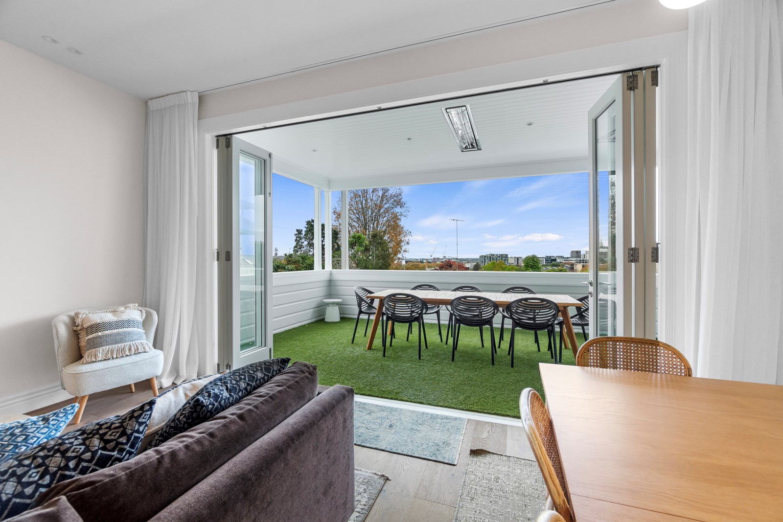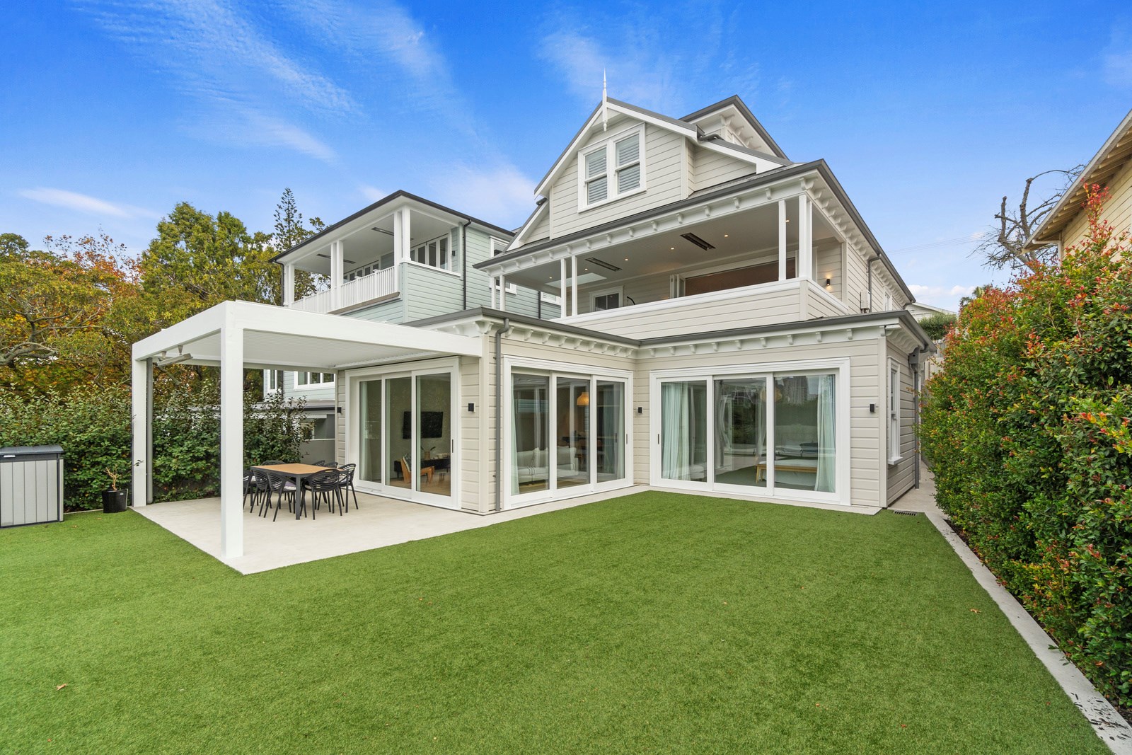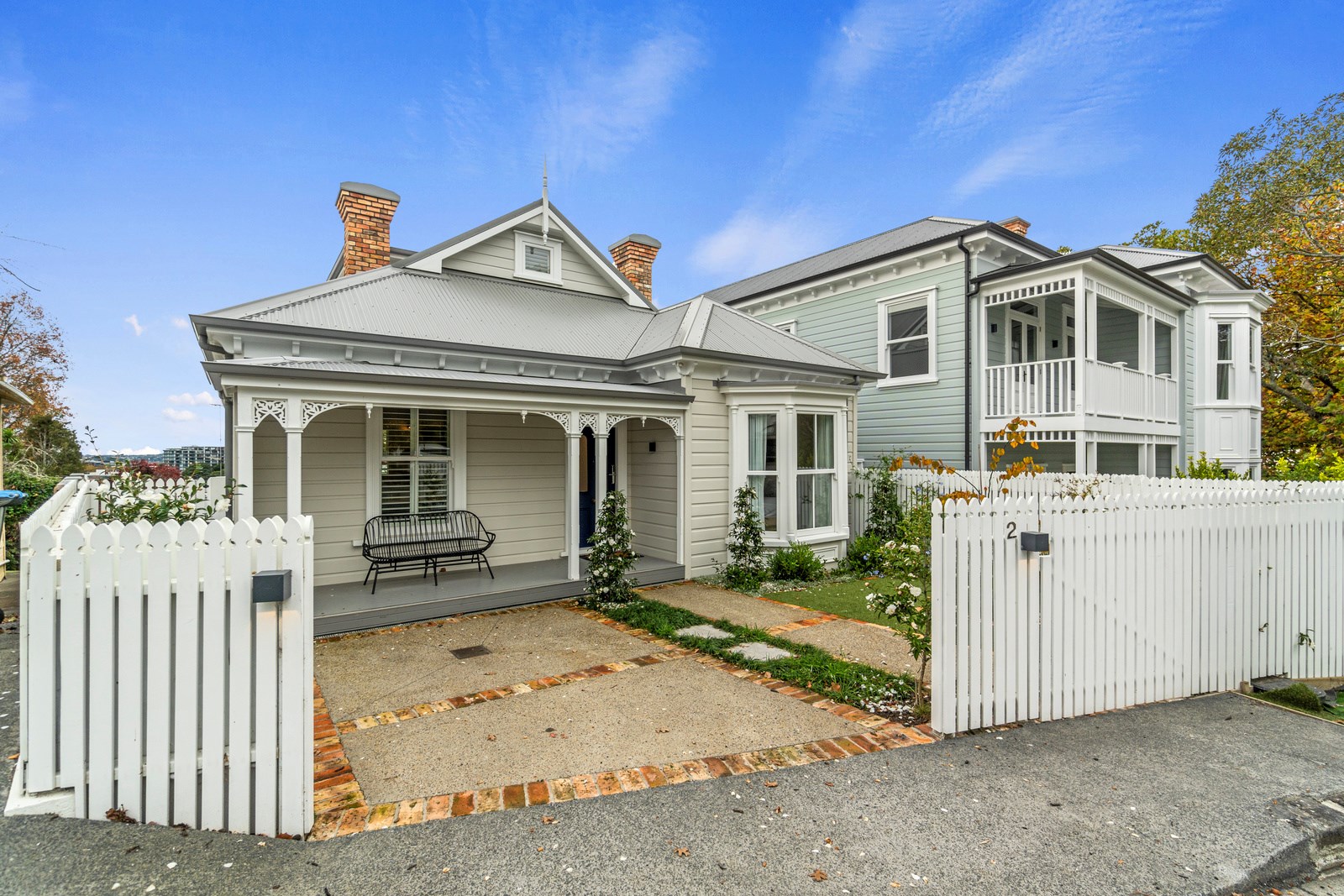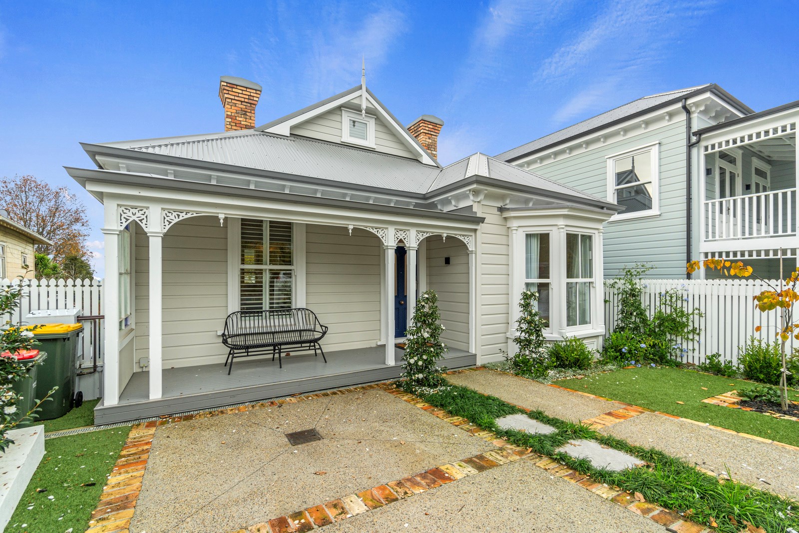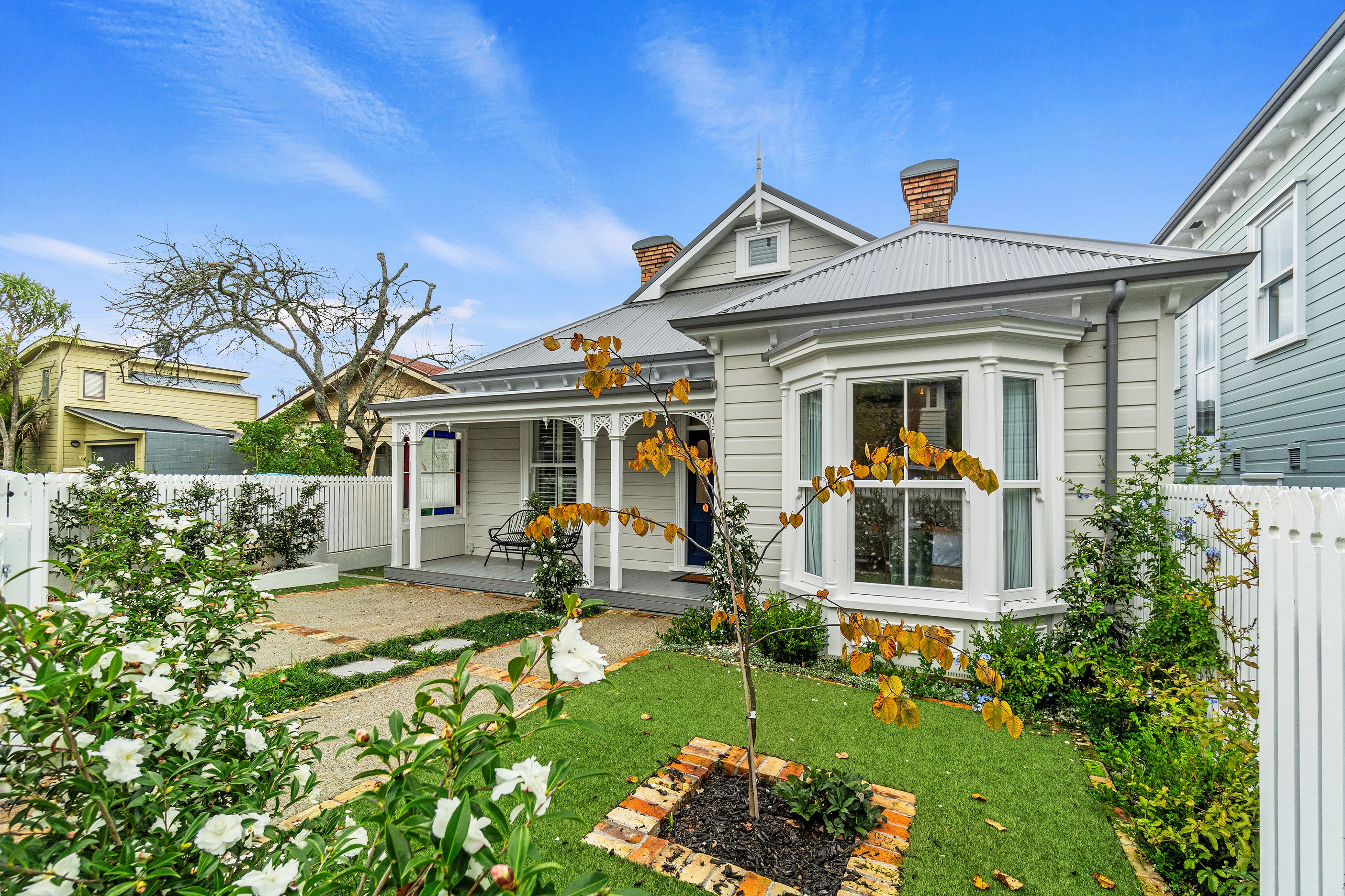 This architecturally designed home in Freemans Bay is one of two side-by-side villas that Lewis Build began working on simultaneously. Each has three bedrooms and two bathrooms, with the entire top level designated as a main suite with sweeping views of the city and Sky Tower. It was important to the builders that the special character of the villa was adhered to where possible, including retaining the original fretwork and creating replica chimneys. The renovation took the home from a single-level to a three-storey property, adding a level above and below, and sliding it backwards from its original footprint. The home has hydronic underfloor heating throughout, and beautiful Millboard decking from Forte.