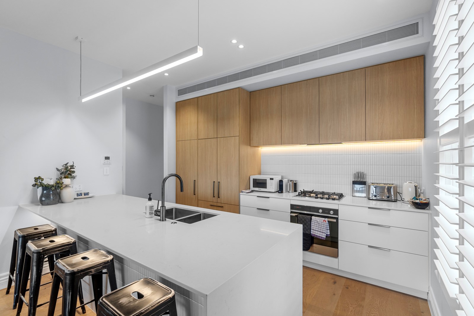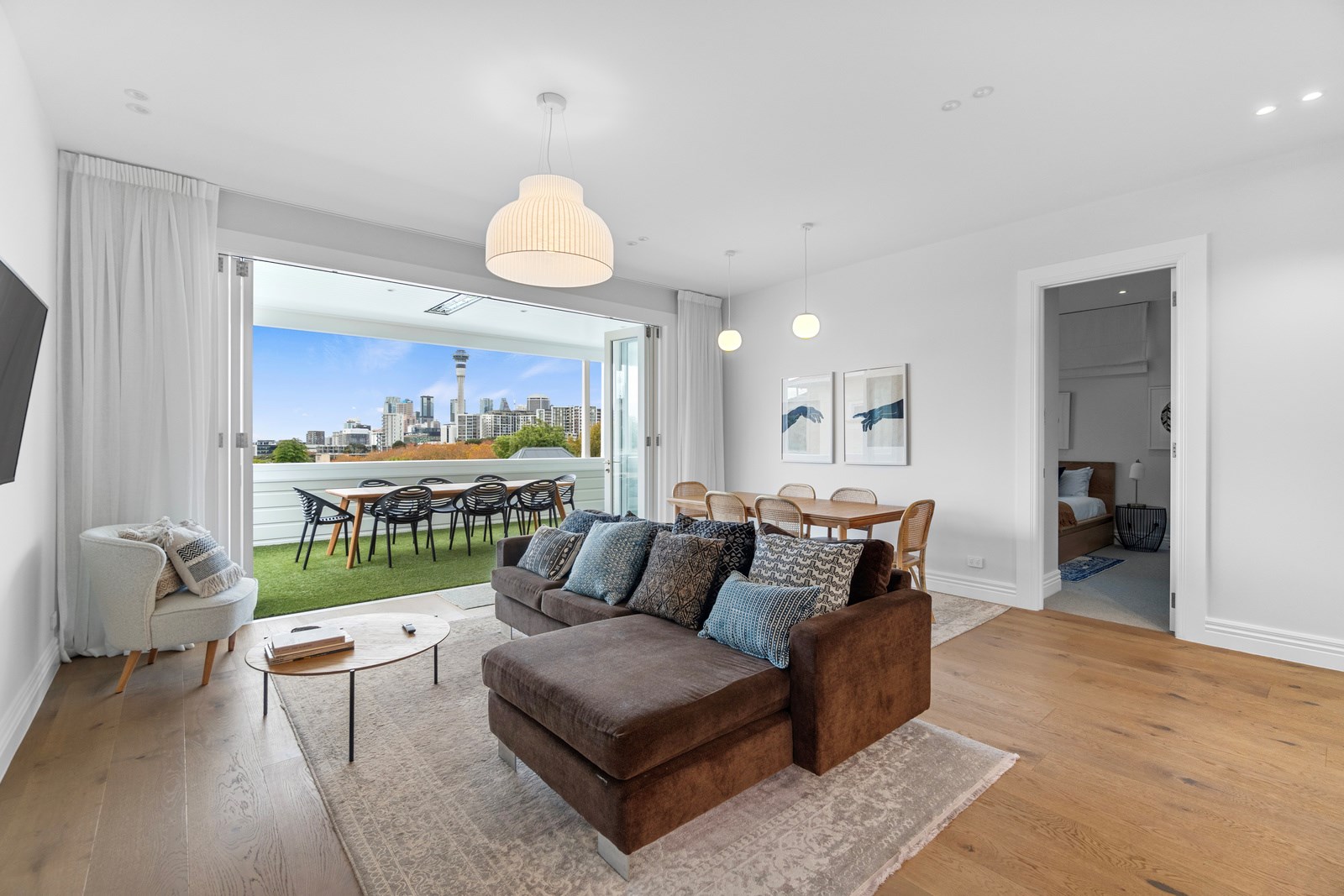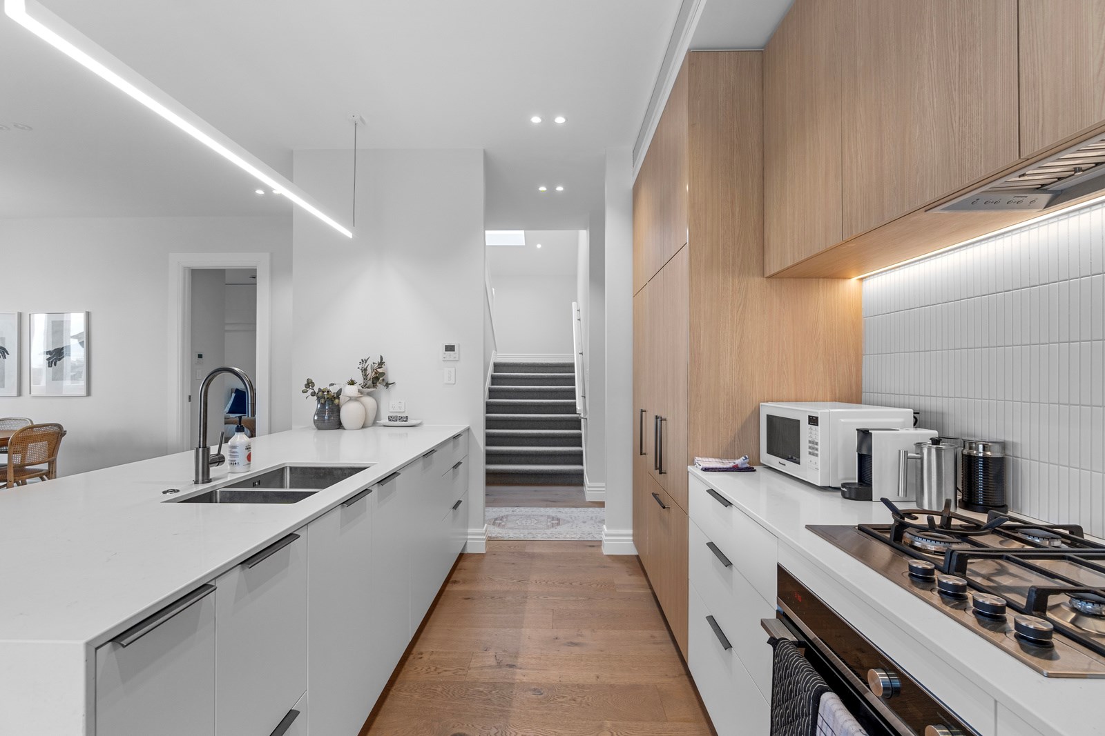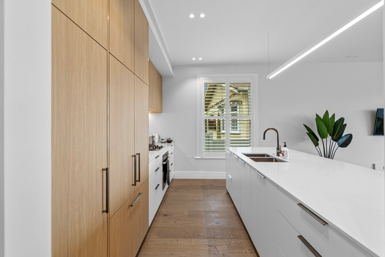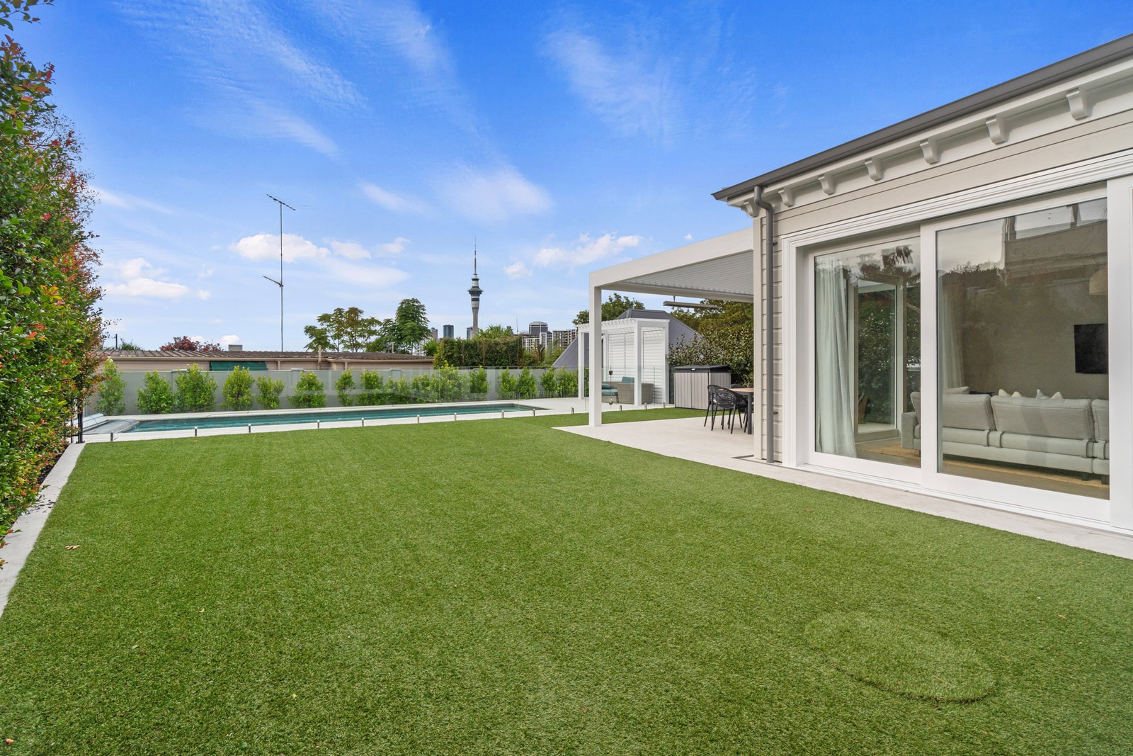 This architecturally designed home in Freemans Bay is one of two side-by-side villas that Lewis Build began working on simultaneously. Each has three bedrooms and two bathrooms, with the entire top level designated as a main suite with sweeping views of the city and Sky Tower. It was important to the builders that the special character of the villa was adhered to where possible, including retaining the original fretwork and creating replica chimneys. The renovation took the home from a single-level to a three-storey property, adding a level above and below, and sliding it backwards from its original footprint. The home has hydronic underfloor heating throughout, and beautiful Millboard decking from Forte.