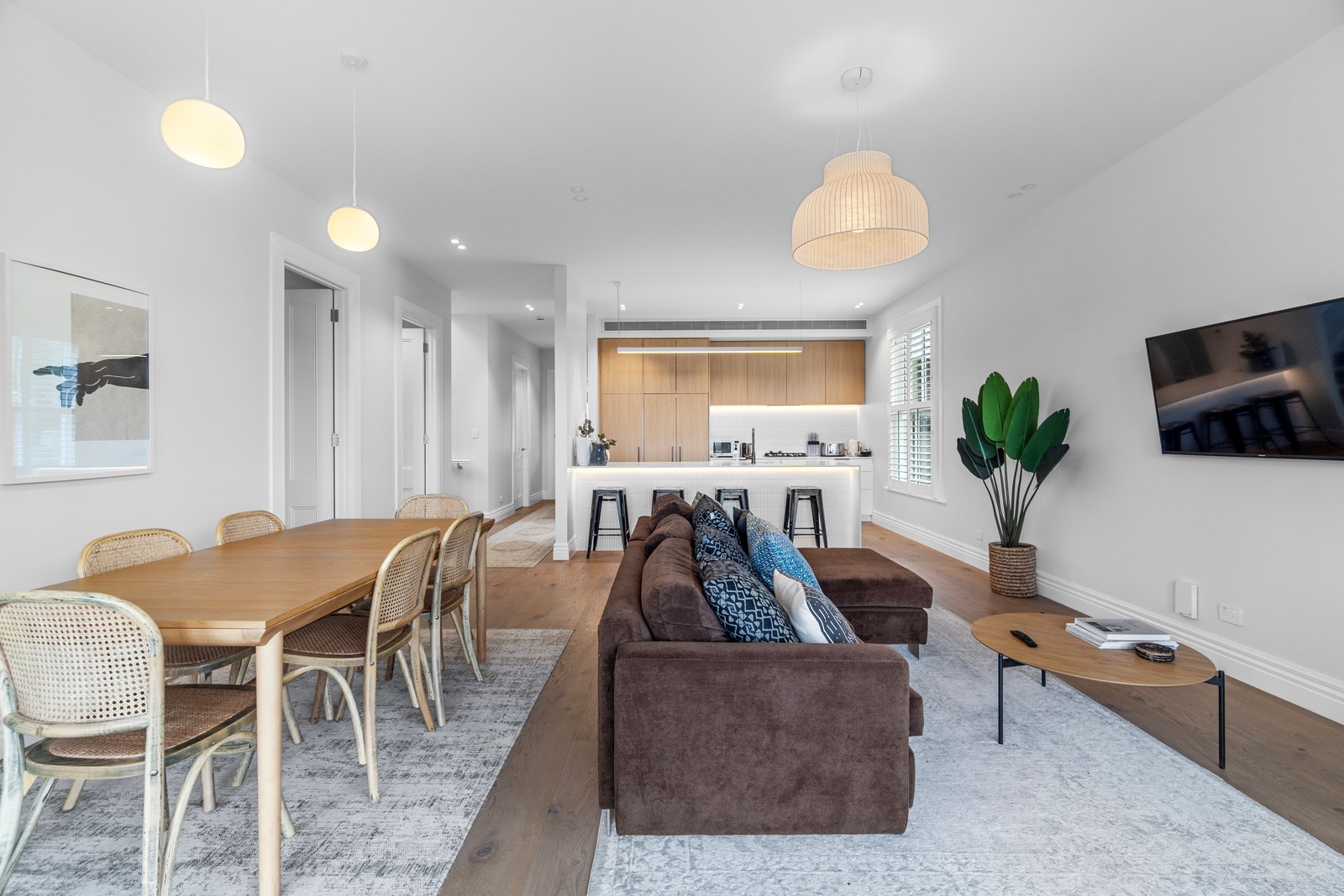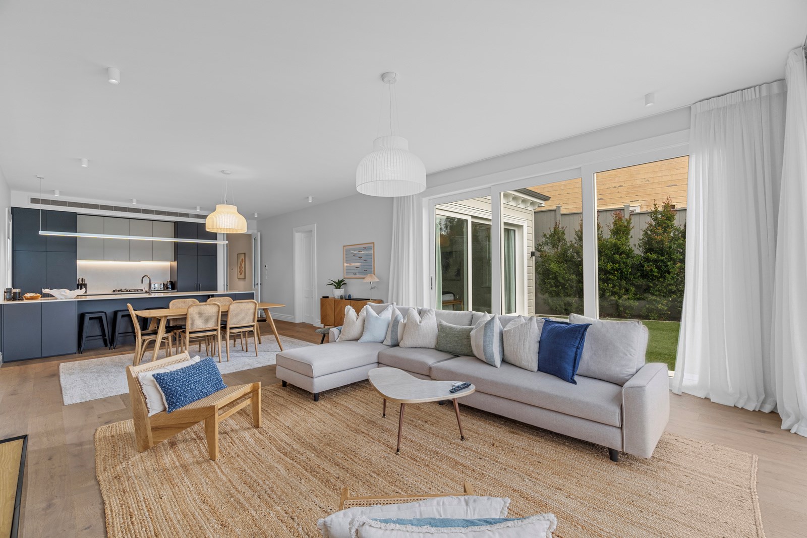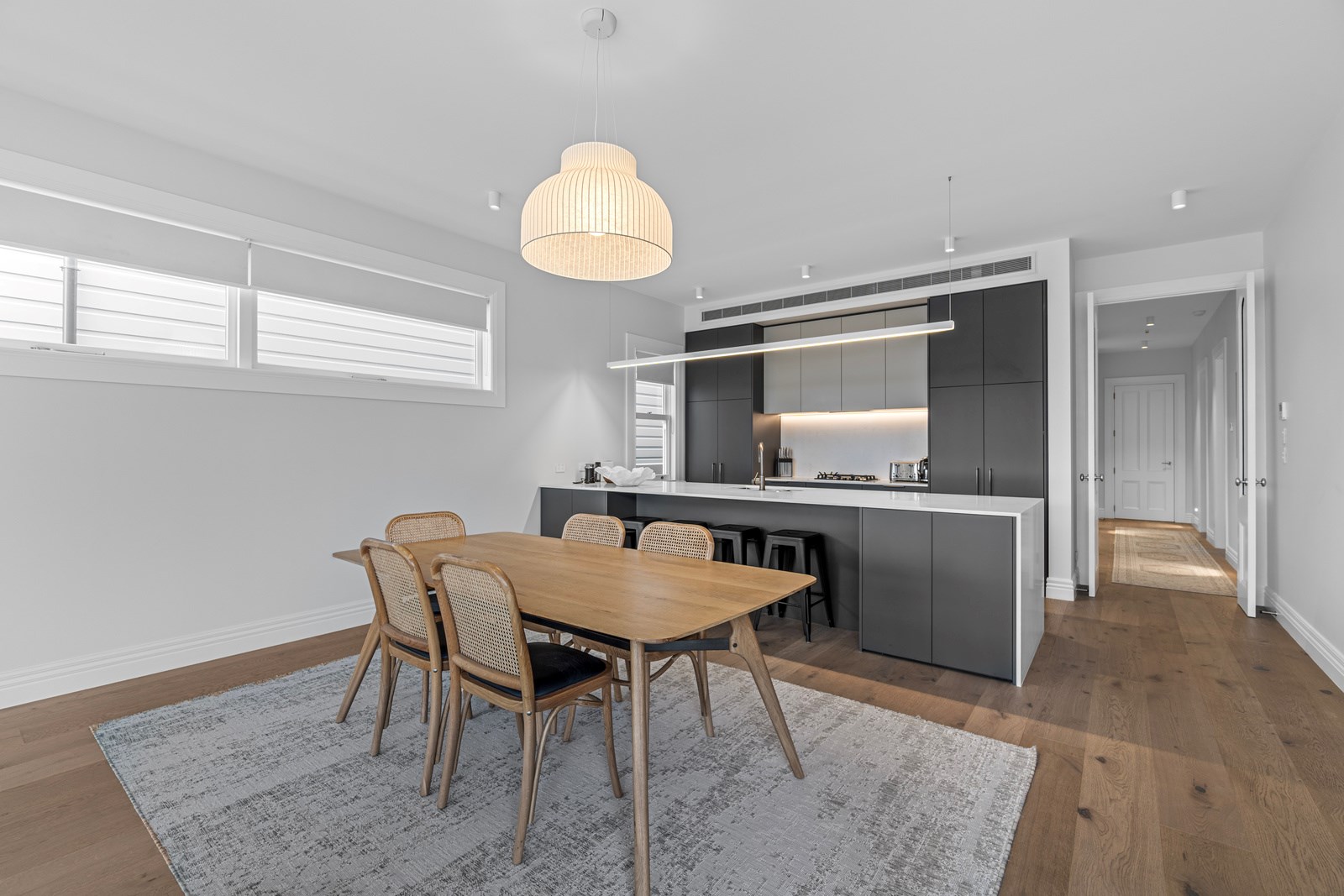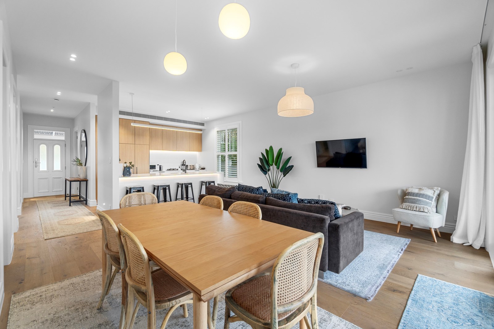 The rear of the property features an outdoor entertainment area with louvres from Aurae, a pergola with seating and a large 10m, fully heated and covered pool for the ultimate in any-weather get-togethers and lazy weekend afternoons. The large, flat lawn provides even more room for growing families to move. Fabulous French doors, light and airy spaces and a very modern designer kitchen contribute to its luxurious ambience. This modern take on colonial elegance will provide a spacious retreat for generations to come – as will its equally charming sister property next door.