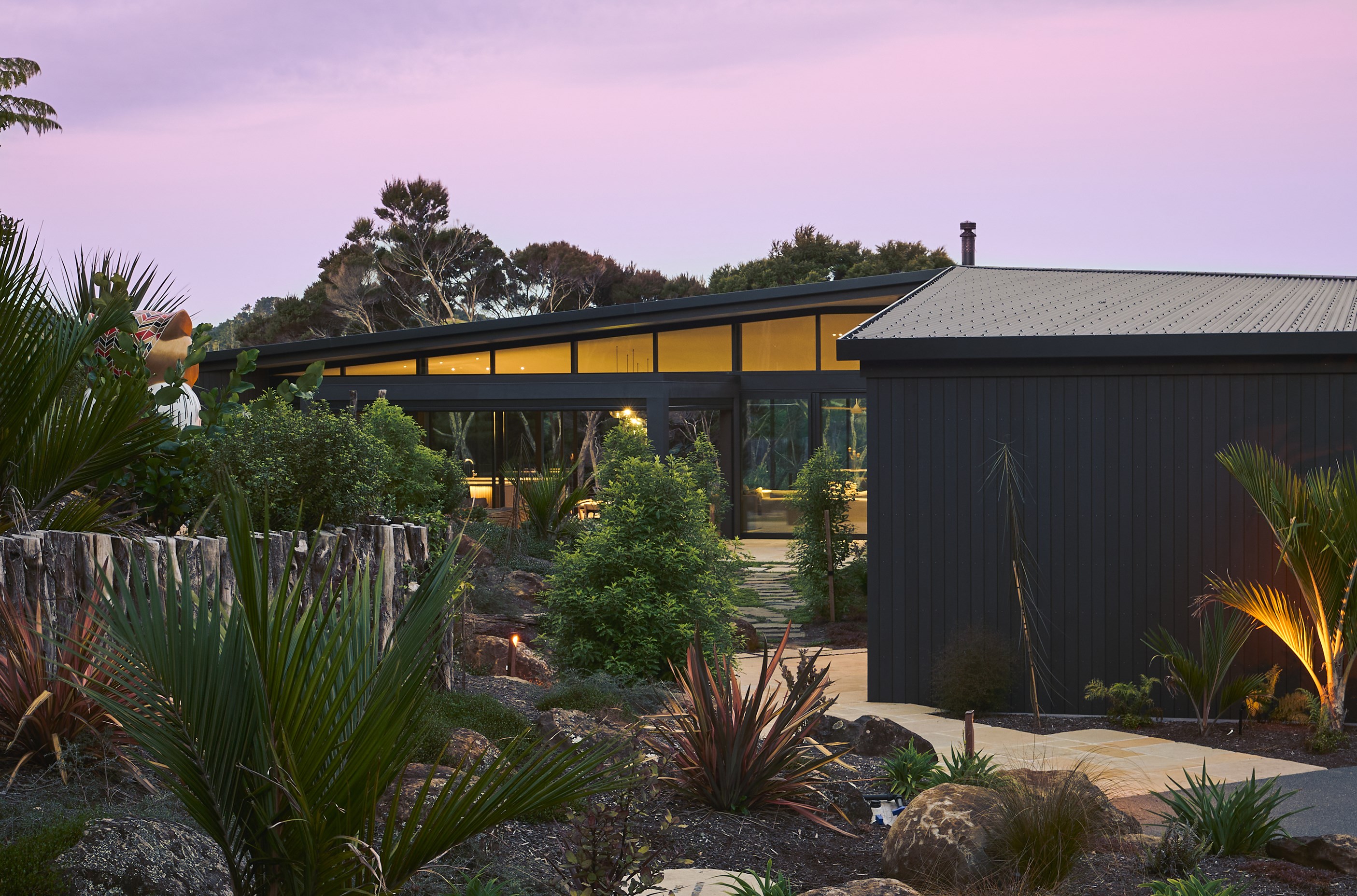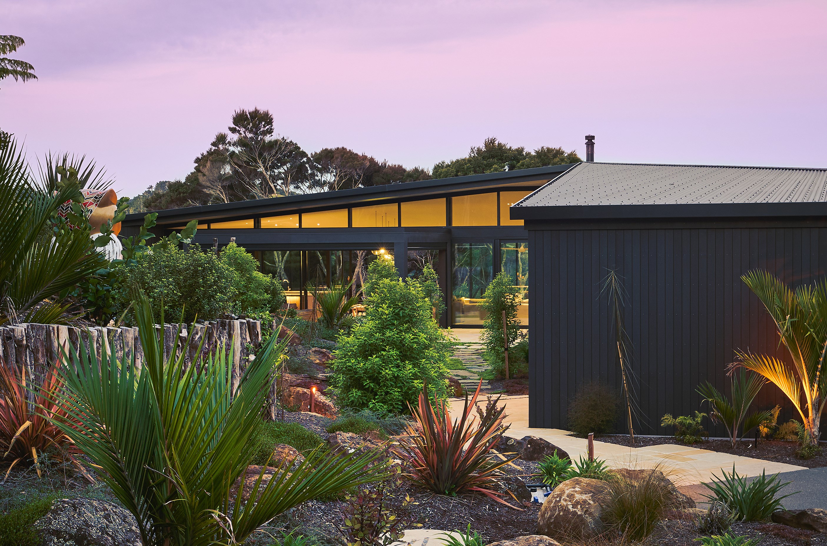 When inspiring architecture and scrupulous carpentry come together, magic is made. In one wing, you'll find the long communal living space with the streamlined two-island kitchen, scullery and hobby room. Below is the cellar and plant room that contains a battery to store power generated by solar panels. In the other wing, the three bedrooms that include a dreamy main suite with ensuite and dressing room, a library, laundry, bathroom and double garage with workshop.