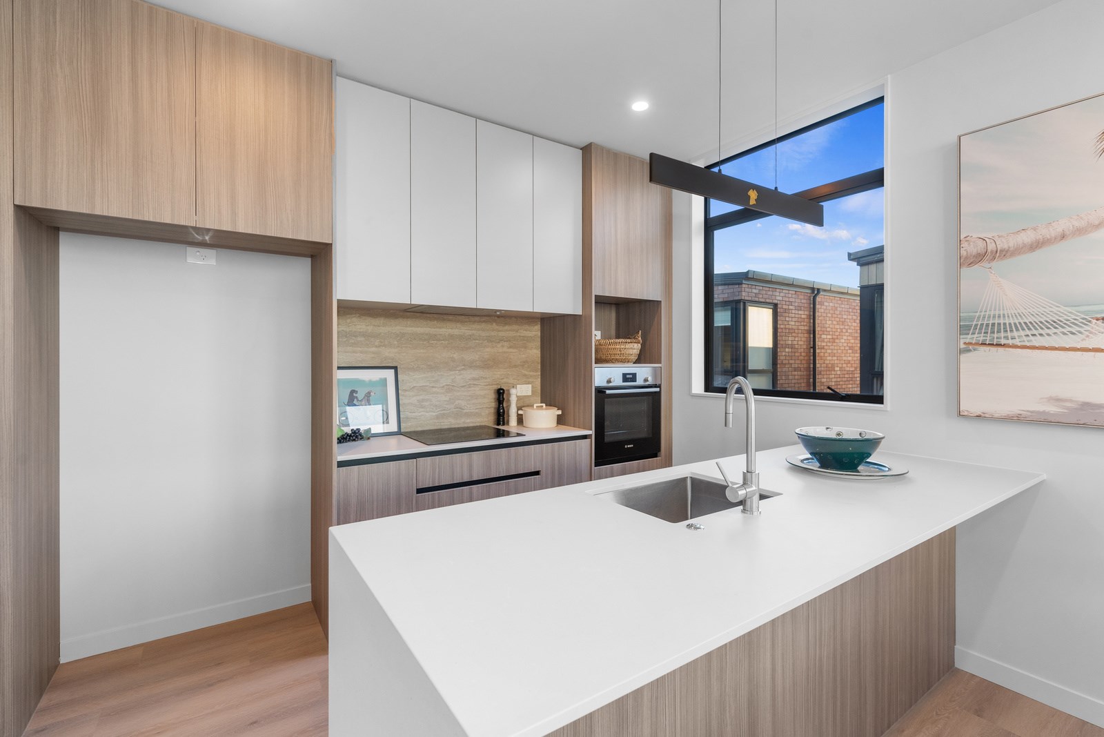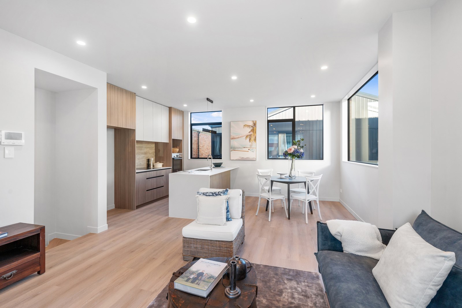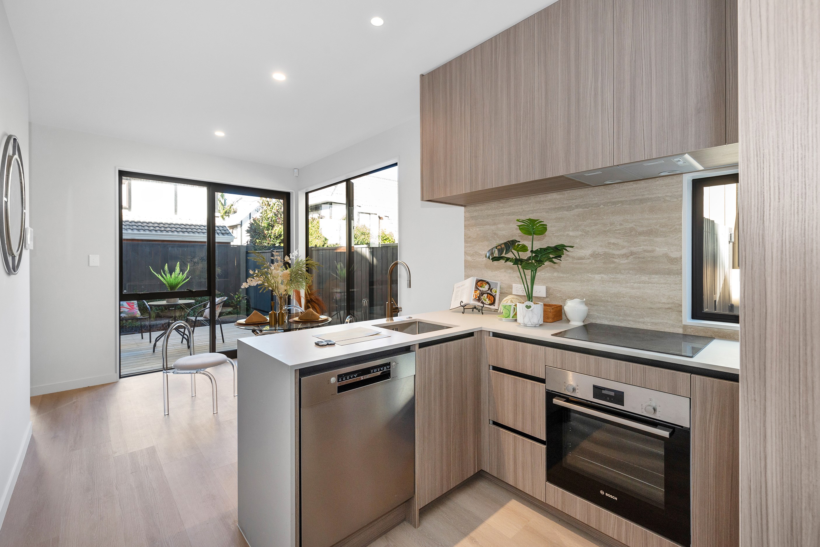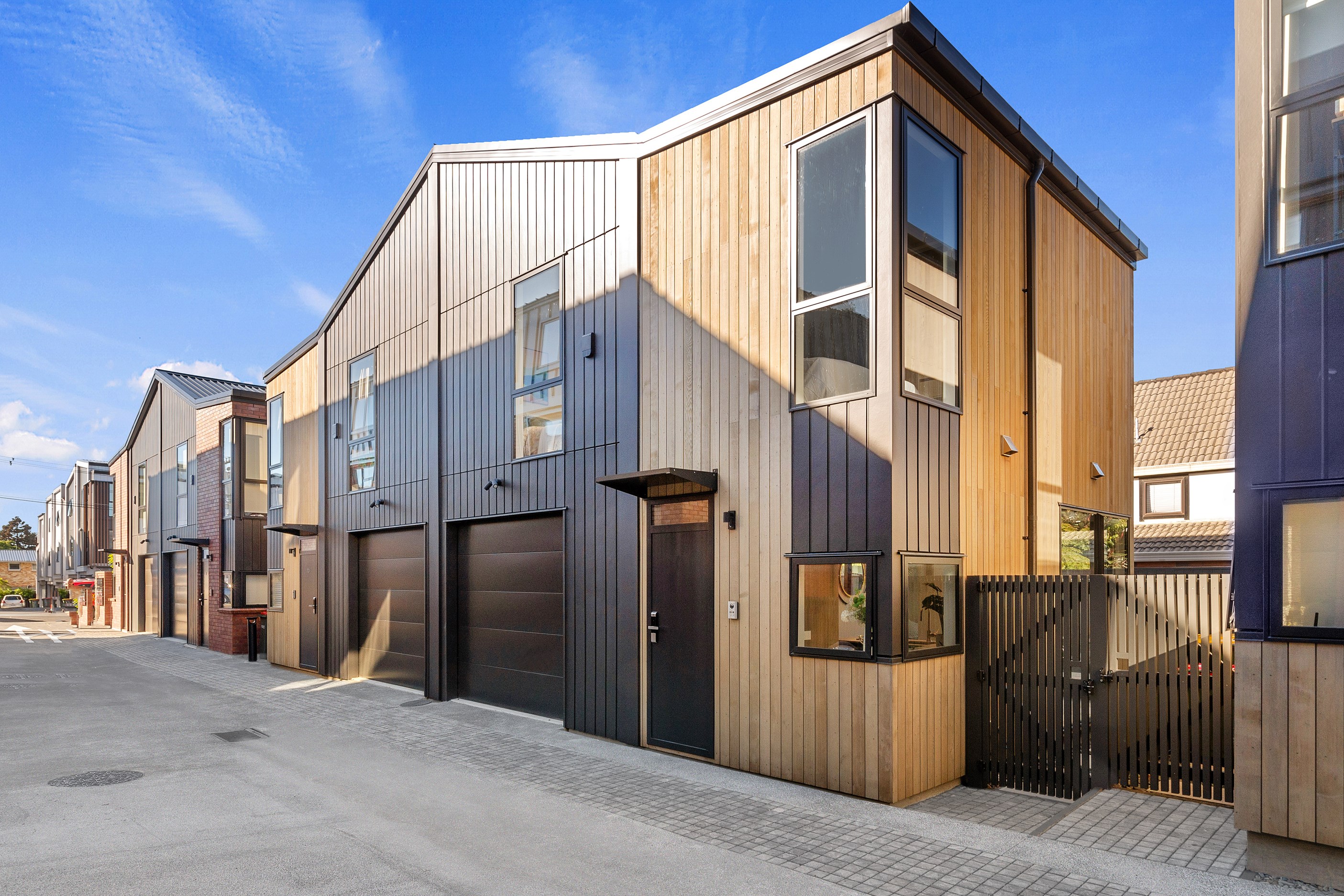 An easy, lock-up-and-leave lifestyle awaits the residents of this boutique development in one of Auckland’s most sought-after suburbs. This collection of 13 stylish terrace townhouses, by BCG Construction, thoughtfully caters for different lifestyles, and provides a safe and secure community of neighbours. The development is divided into two distinct typologies across five blocks. Type A’s three-level floor plans are suited to families and larger groups, with four bedrooms, three bathrooms, a spacious living area and an internal garage.