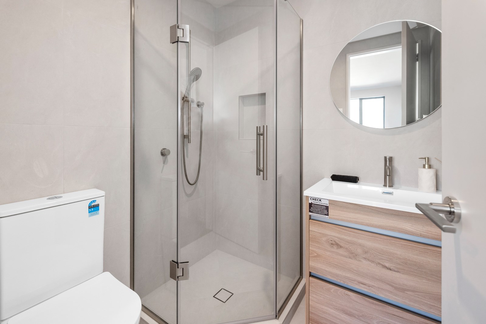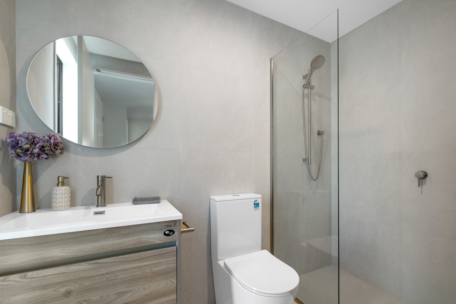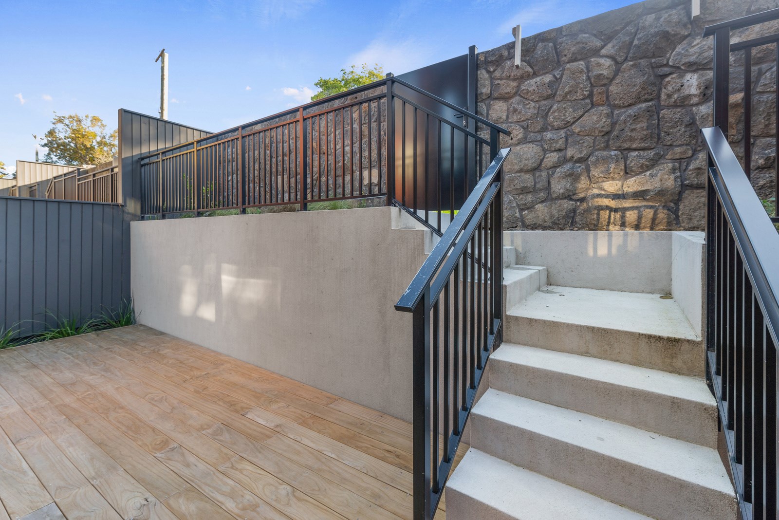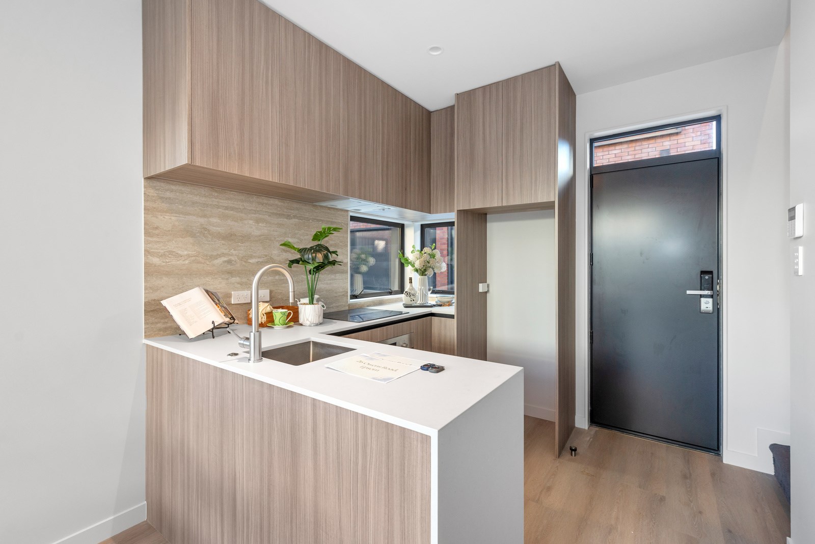 Type B homes are on two levels, with three bedrooms and two bathrooms. The selection of external materials was based on their quality, and to integrate seamlessly with the surrounding volcanic-rock walls. This enhances the development’s standing by utilising material that harmonises with the environment, such as the distinctive red brick, a stand-out feature that complements the black and timber exterior. The Scandi-style kitchens boast Bosch ovens and natural accents. They connect with the light and inviting living and dining spaces that open onto sunny balconies, just the right size for soaking up the sun. Refined interior materials – particularly those used in the tasteful kitchens and modern bathrooms – resonate with the building’s sense of luxury.