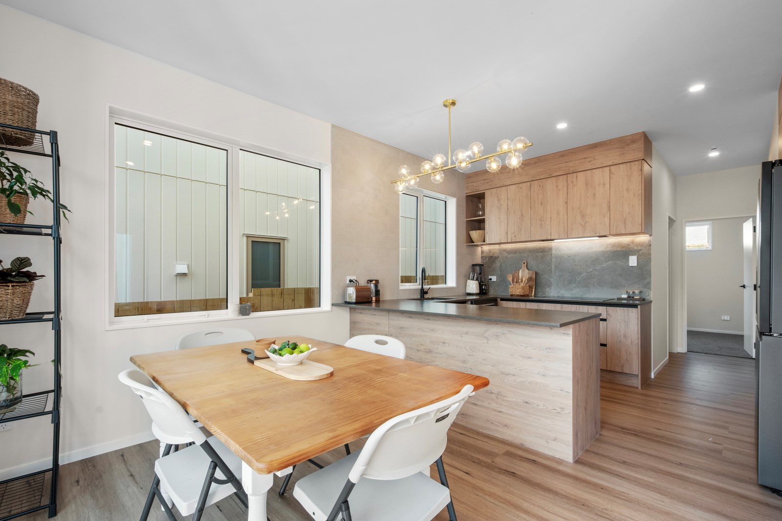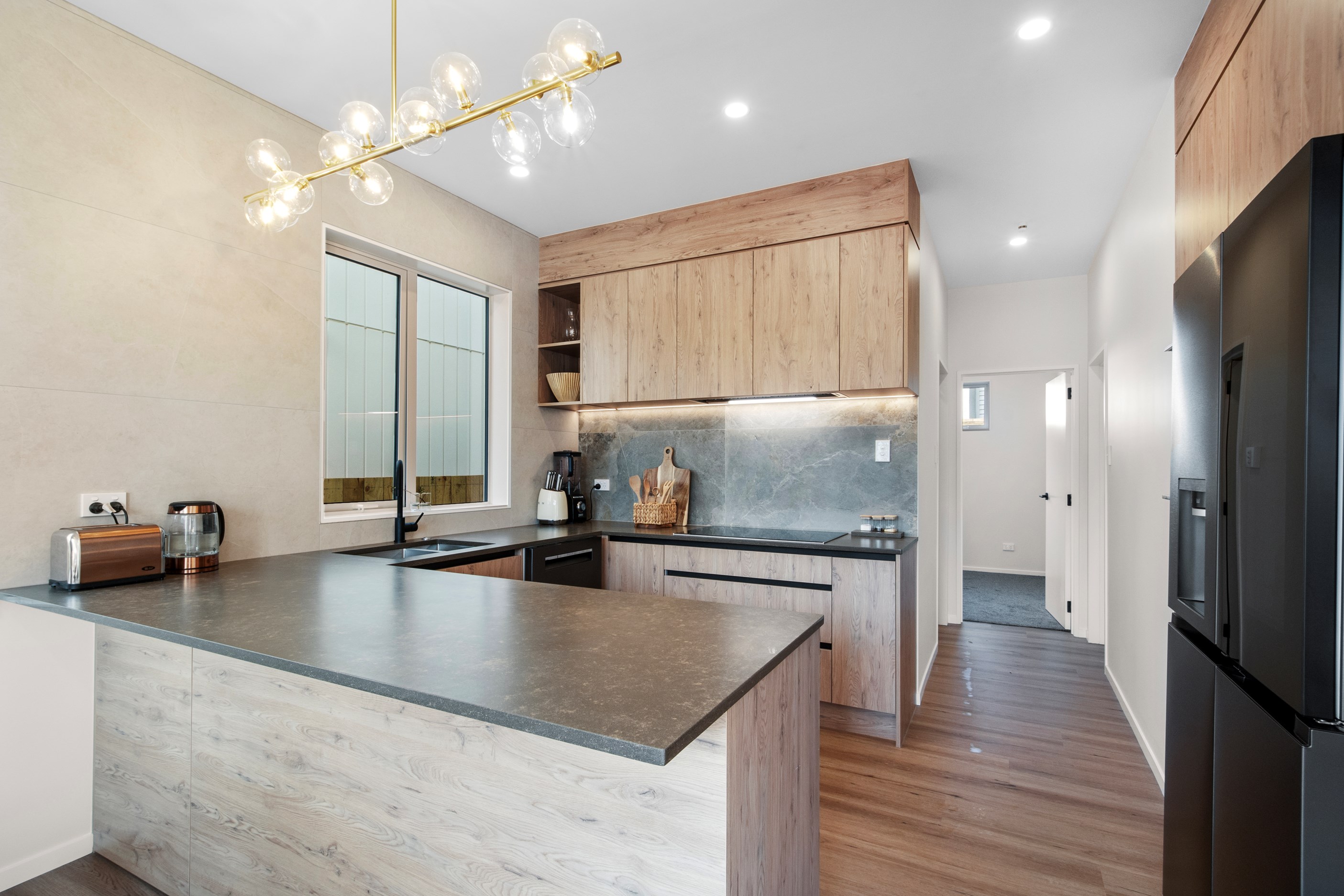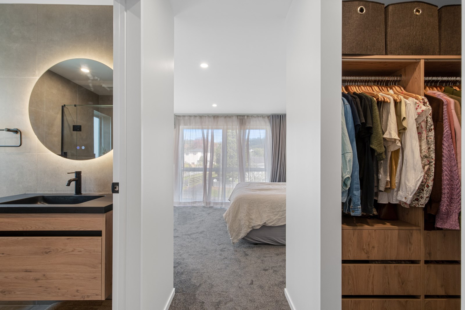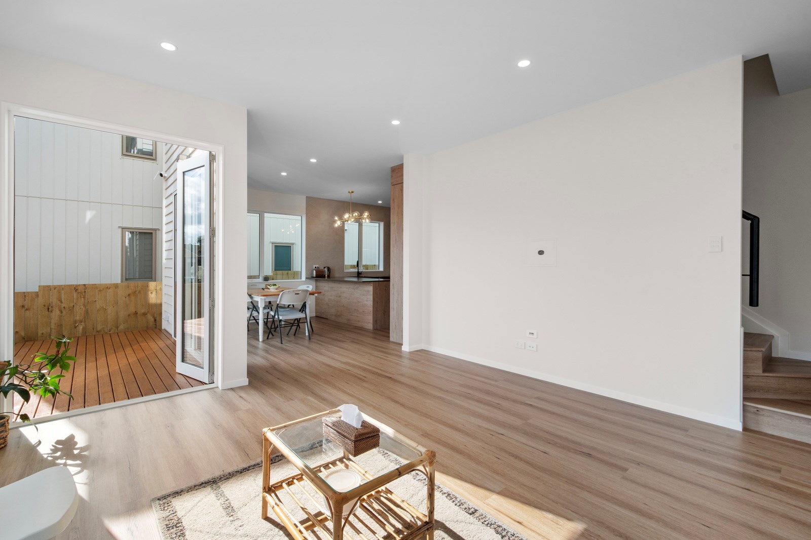 Take a floorplan that offers four bedrooms and three bathrooms, add an exterior with smart bevel-back horizontal weatherboard and vertical cedar cladding, and include beautifully executed details, and what have you got? This 188sqm home that also has a hardwood deck that stretches the width of the property has everything needed for modern family living, plus more. It’s hard to go past the open-plan space with stylish kitchen in muted tones that merges into a dining space and, around the corner, a living room. Both have wide sliders that, when open to the north-facing decks, transform into indoor-outdoor havens for relaxing and entertaining. You’ll also find a bedroom, bathroom and double garage on this level.
