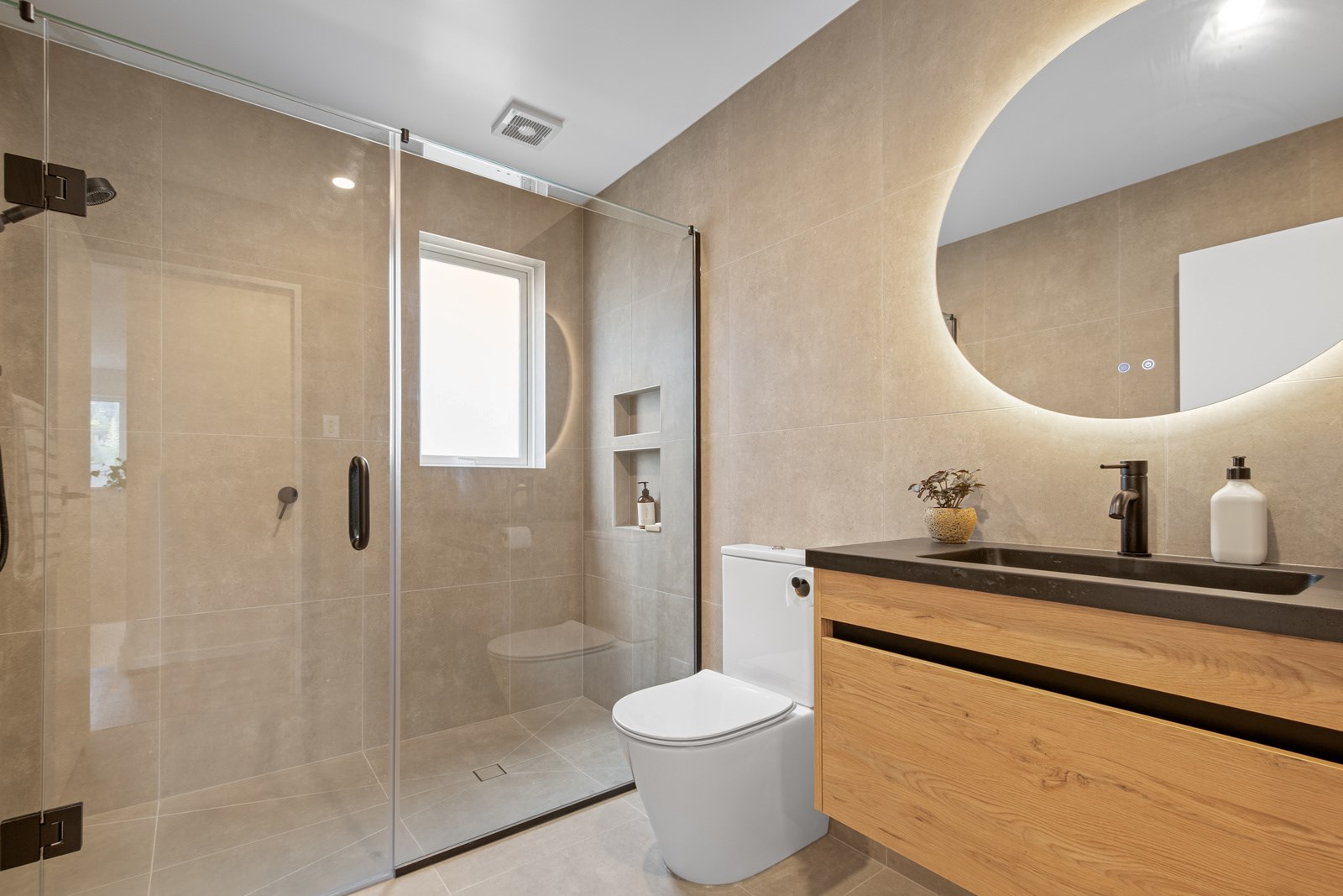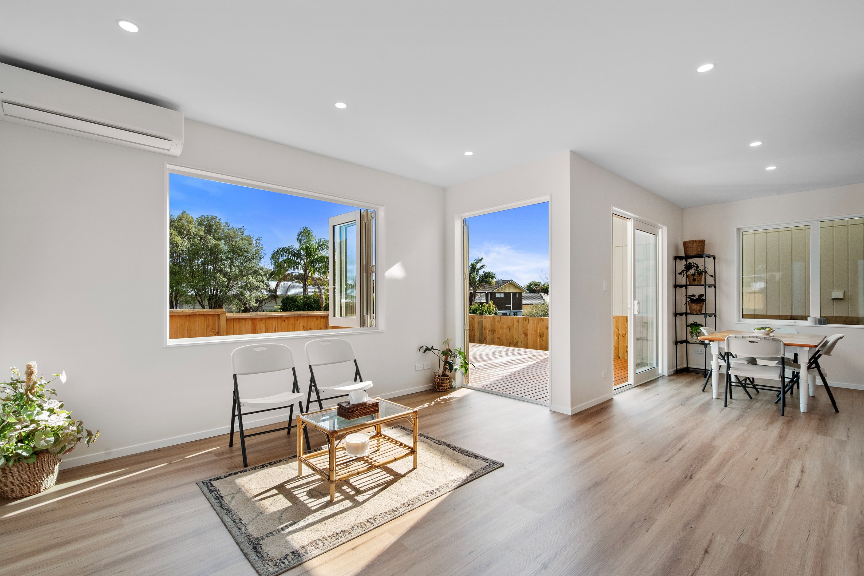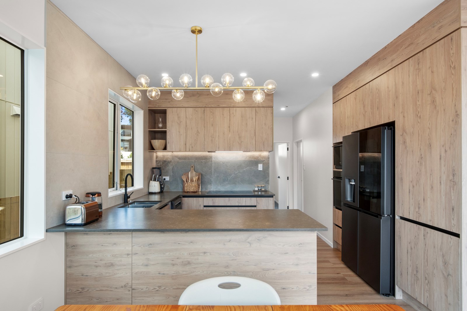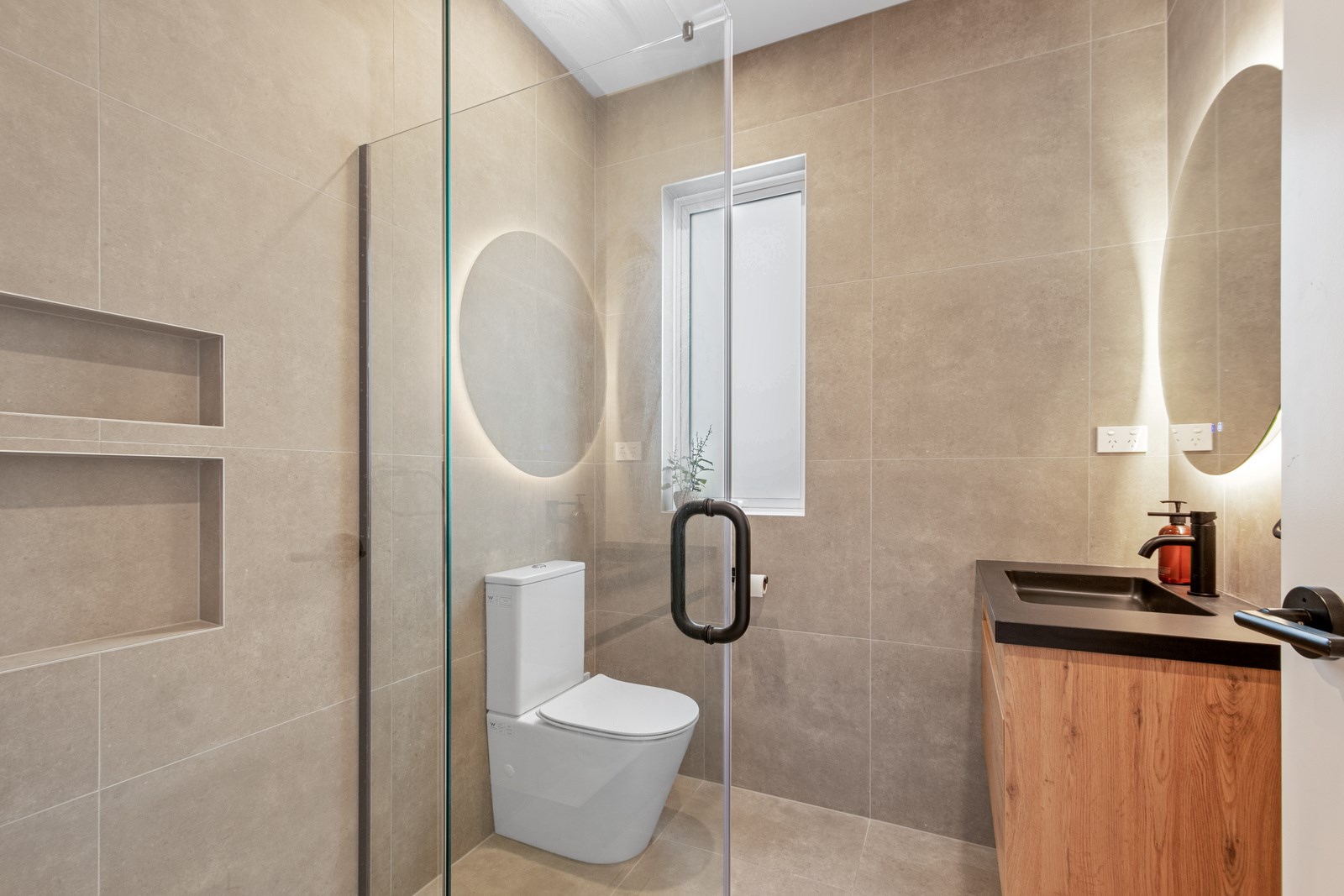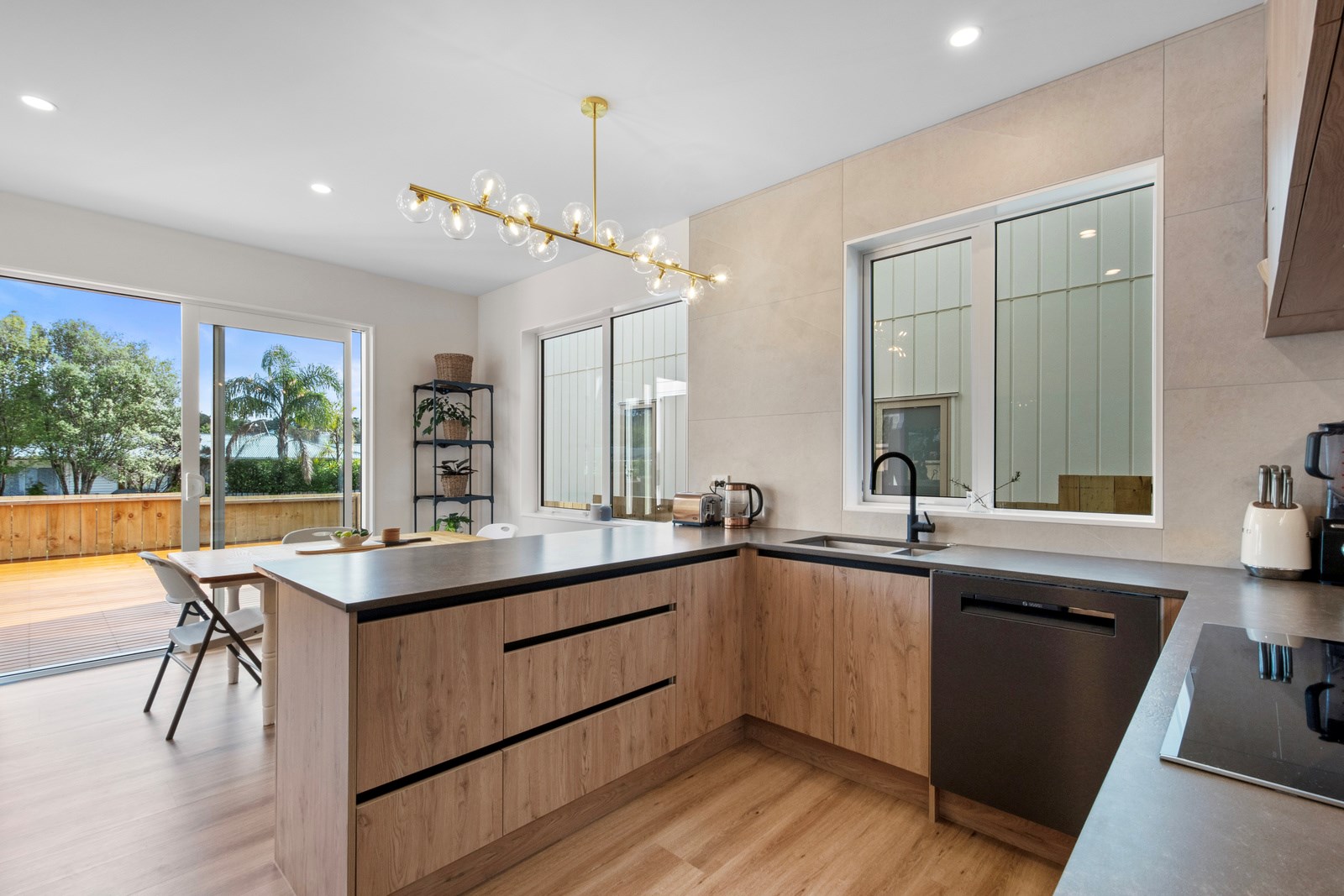 Take a floorplan that offers four bedrooms and three bathrooms, add an exterior with smart bevel-back horizontal weatherboard and vertical cedar cladding, and include beautifully executed details, and what have you got? This 188sqm home that also has a hardwood deck that stretches the width of the property has everything needed for modern family living, plus more. It’s hard to go past the open-plan space with stylish kitchen in muted tones that merges into a dining space and, around the corner, a living room. Both have wide sliders that, when open to the north-facing decks, transform into indoor-outdoor havens for relaxing and entertaining. You’ll also find a bedroom, bathroom and double garage on this level.