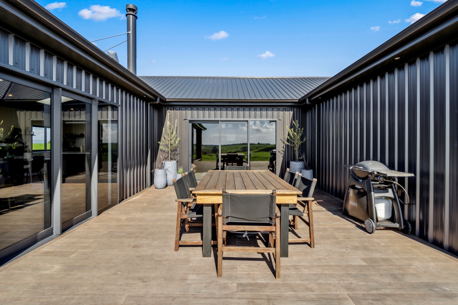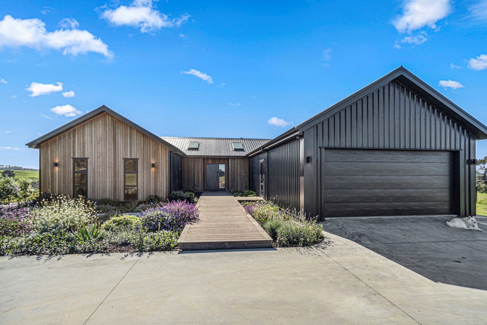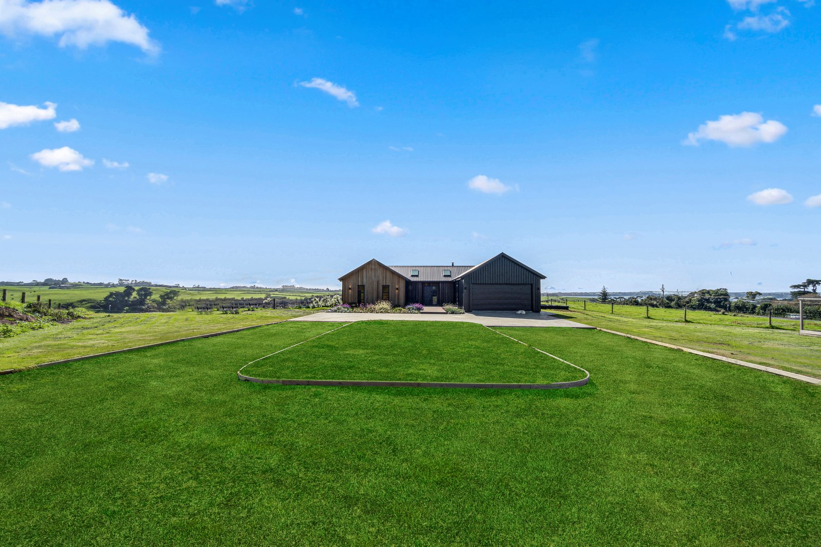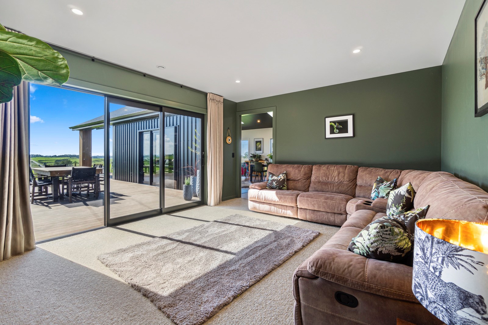 If this homestead were a movie, three parties would play starring roles: the father of one of the clients, the clients themselves and Versatile Homes and Buildings. Dad designed it, daughter made many of the decisions while son-in-law worked on the farm, and Versatile built it. It’s a heavenly result, as evidence by the night- sky raked ceiling in the open-plan kitchen, dining and living space, which is punctured with lights – like twinkling stars. The outlook from this space is just as good. Extensive use of glass means the couple can take in the views from almost anywhere they stand. The H-shaped 278sqm property overlooks a landscape of green pastures that run down to the sea.