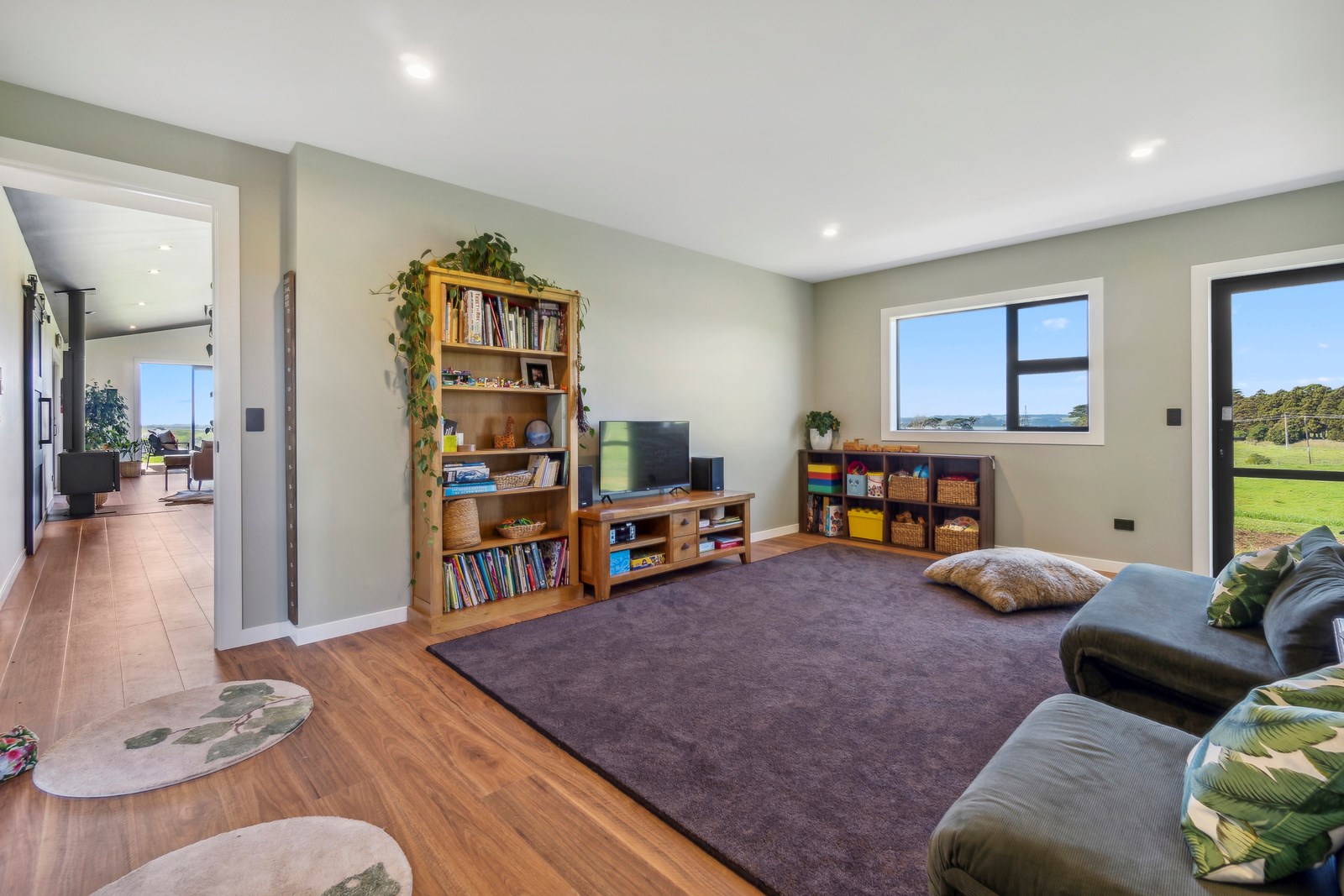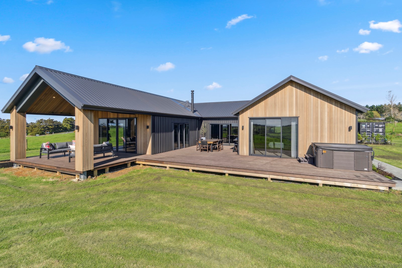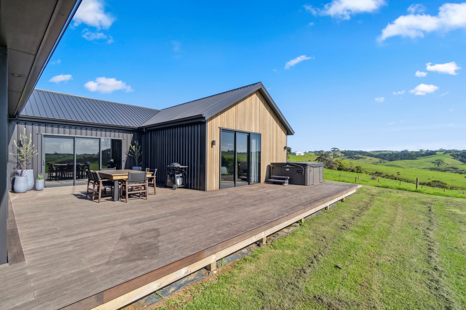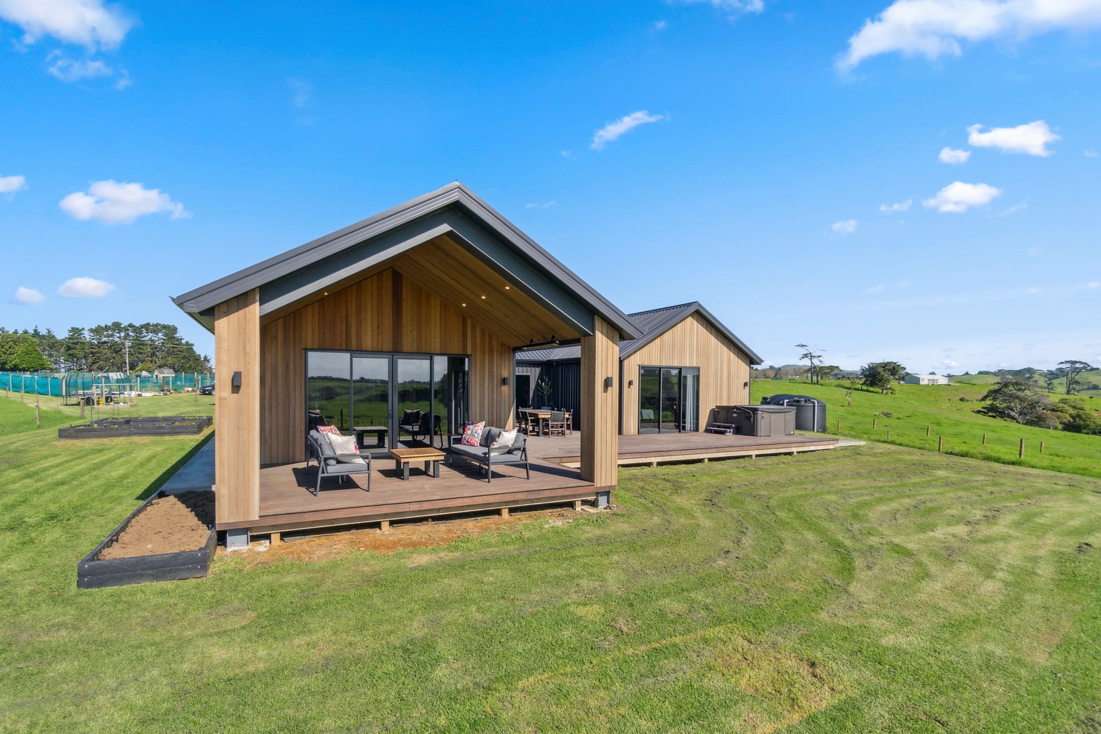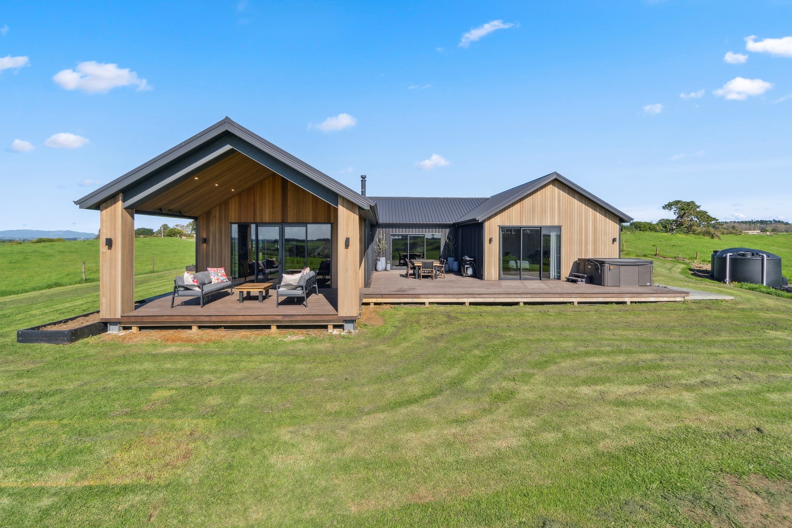 If this homestead were a movie, three parties would play starring roles: the father of one of the clients, the clients themselves and Versatile Homes and Buildings. Dad designed it, daughter made many of the decisions while son-in-law worked on the farm, and Versatile built it. It’s a heavenly result, as evidence by the night- sky raked ceiling in the open-plan kitchen, dining and living space, which is punctured with lights – like twinkling stars. The outlook from this space is just as good. Extensive use of glass means the couple can take in the views from almost anywhere they stand. The H-shaped 278sqm property overlooks a landscape of green pastures that run down to the sea.