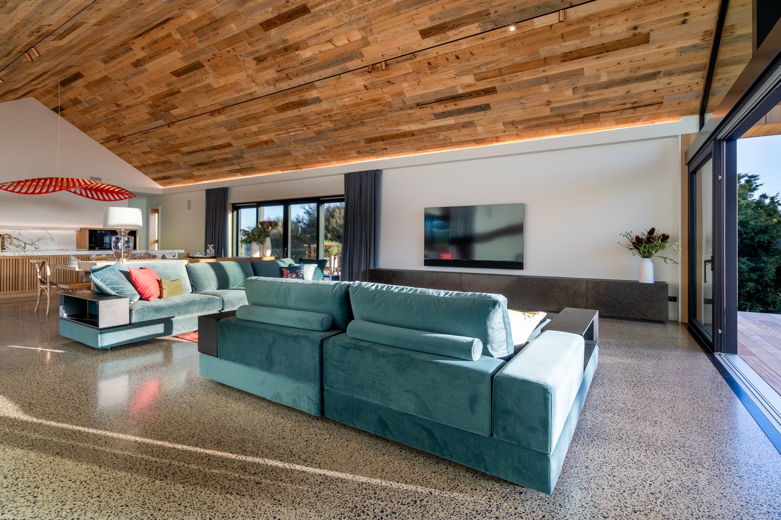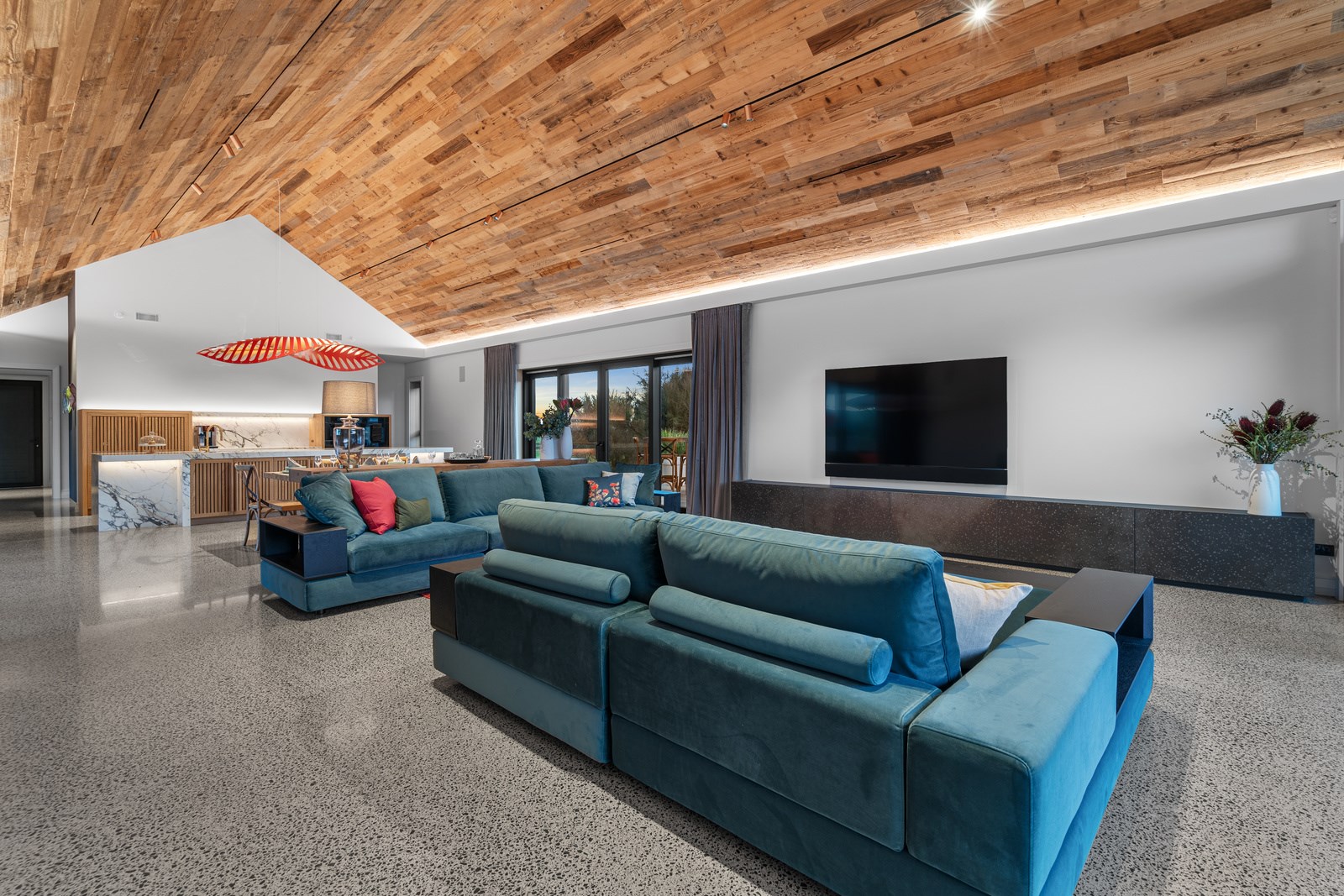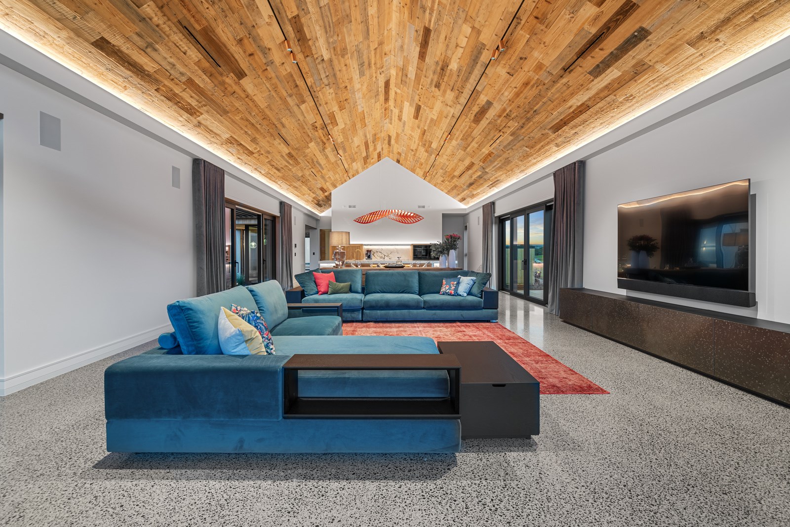 The owner wanted a sustainable home based on high-performance passive construction principles, and Harrison Lane delivered. More than 80 per cent of the home’s energy is produced by an 8.2kW solar array with storage. Materials were chosen for their sustainability and energy efficiency, such as the insulated concrete floor and PVC window system. Extensive smart home technology controls every part of the home’s environment.