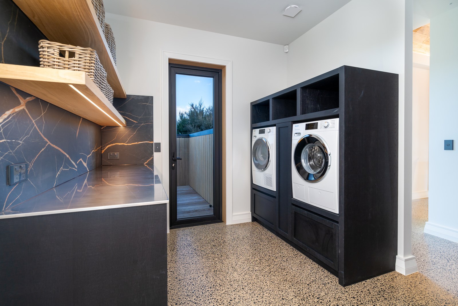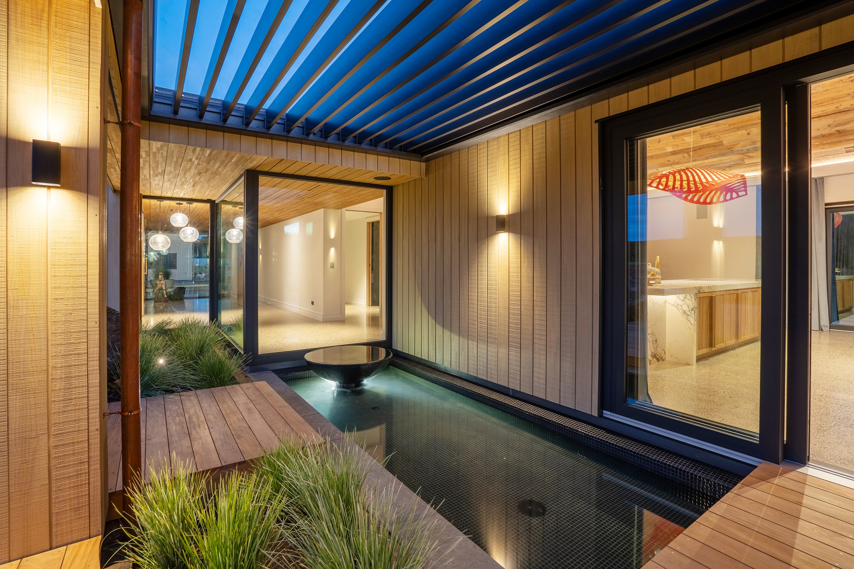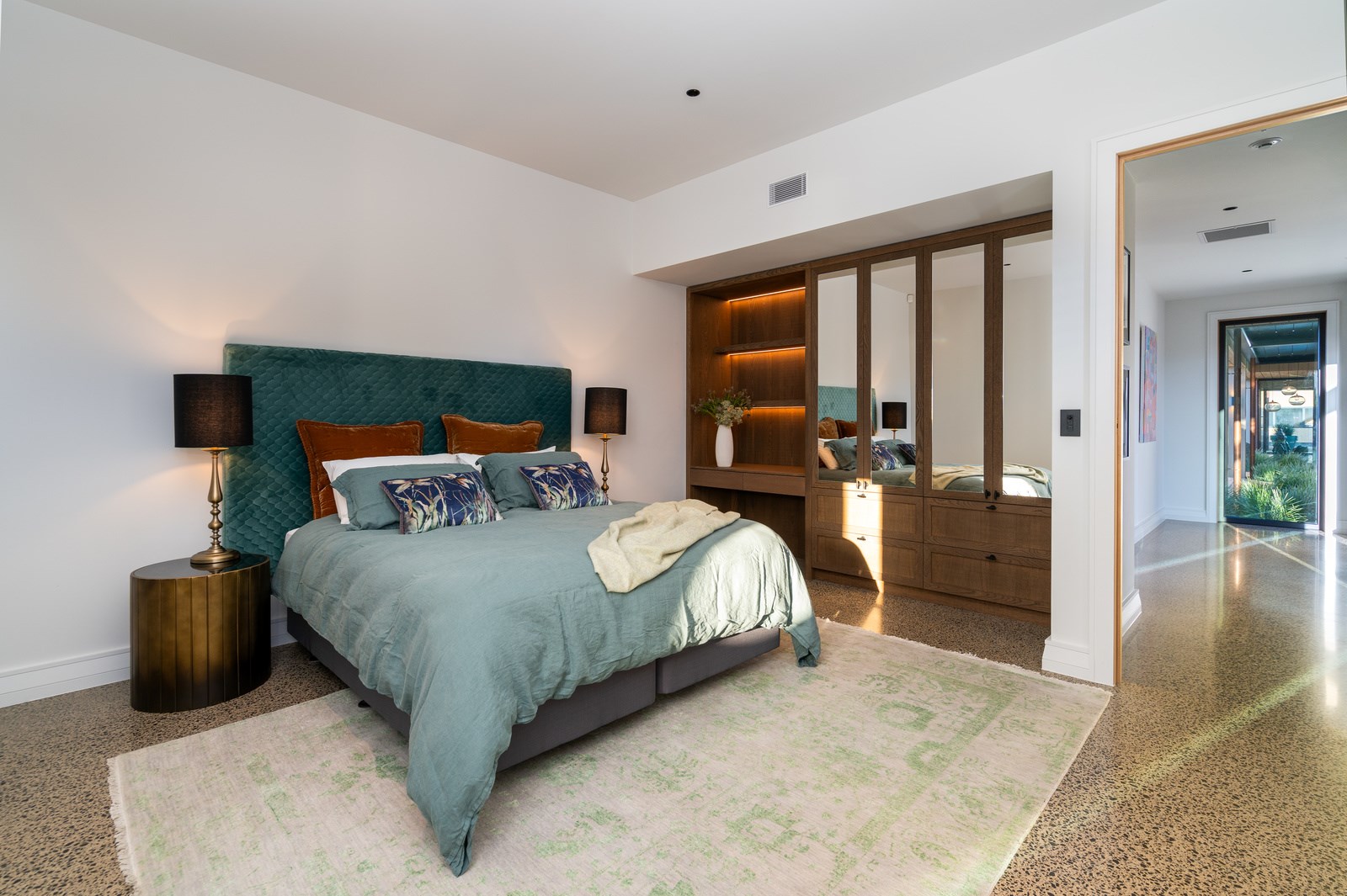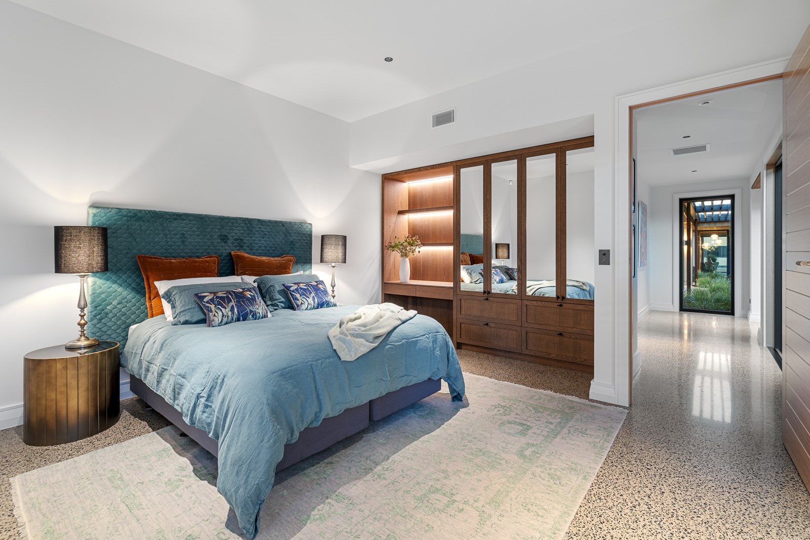 The owner wanted a sustainable home based on high-performance passive construction principles, and Harrison Lane delivered. More than 80 per cent of the home’s energy is produced by an 8.2kW solar array with storage. Materials were chosen for their sustainability and energy efficiency, such as the insulated concrete floor and PVC window system. Extensive smart home technology controls every part of the home’s environment.