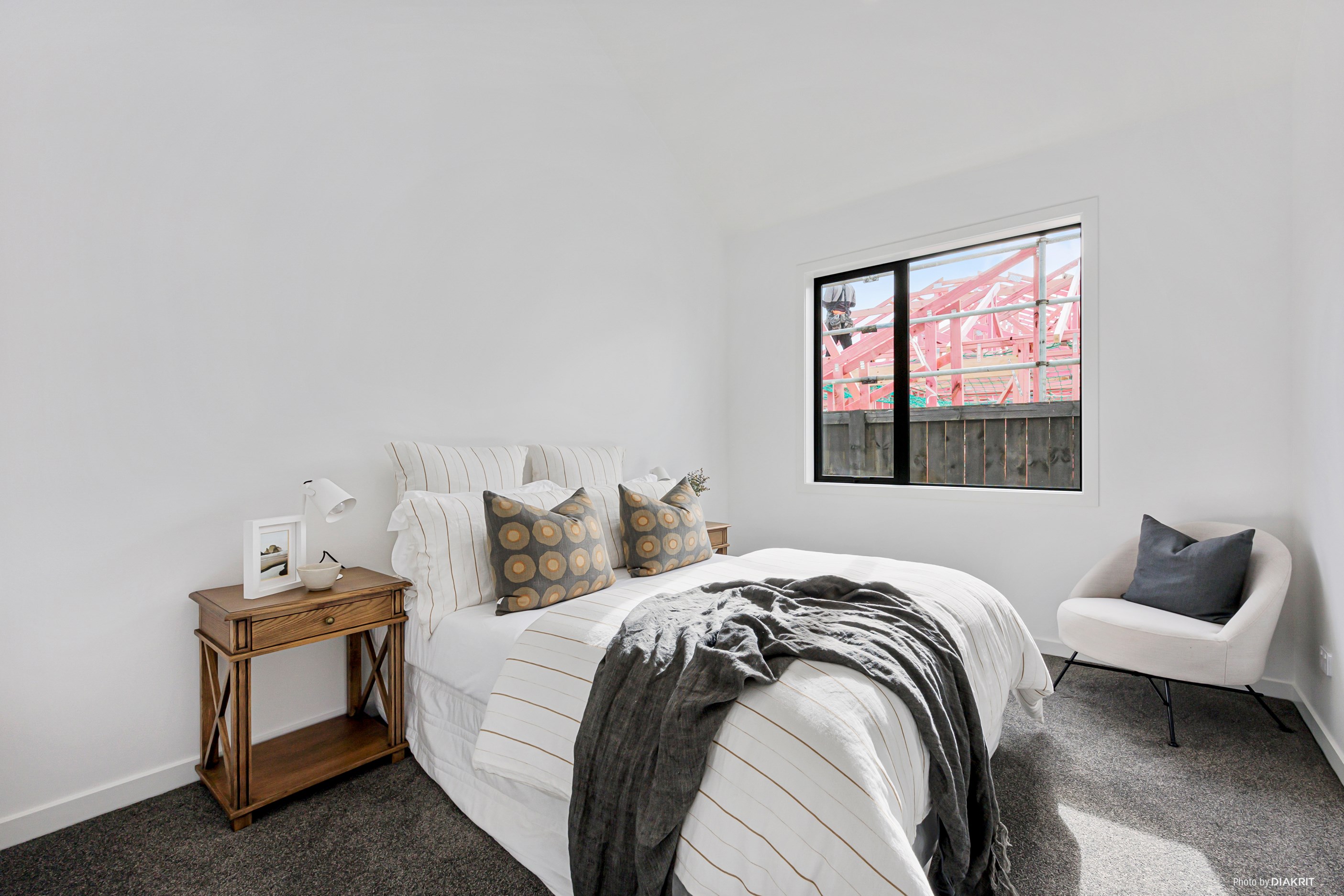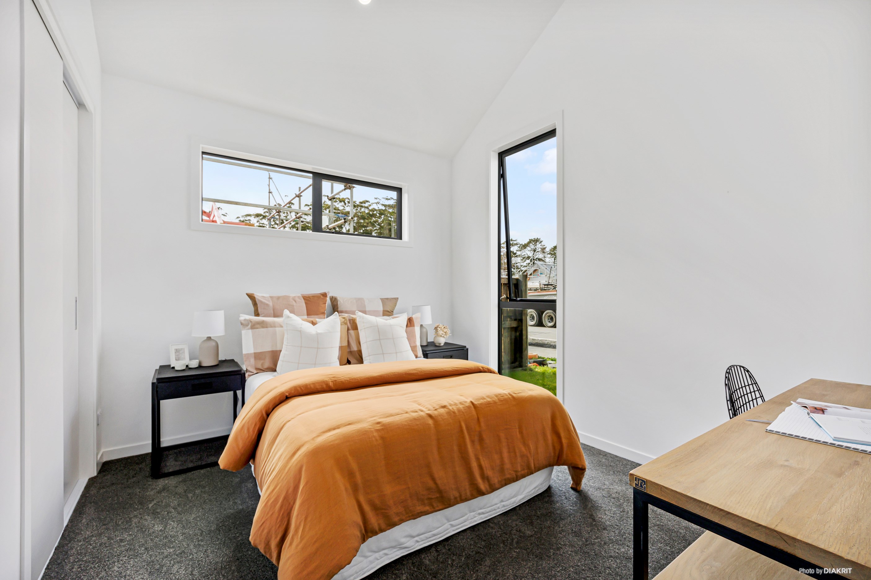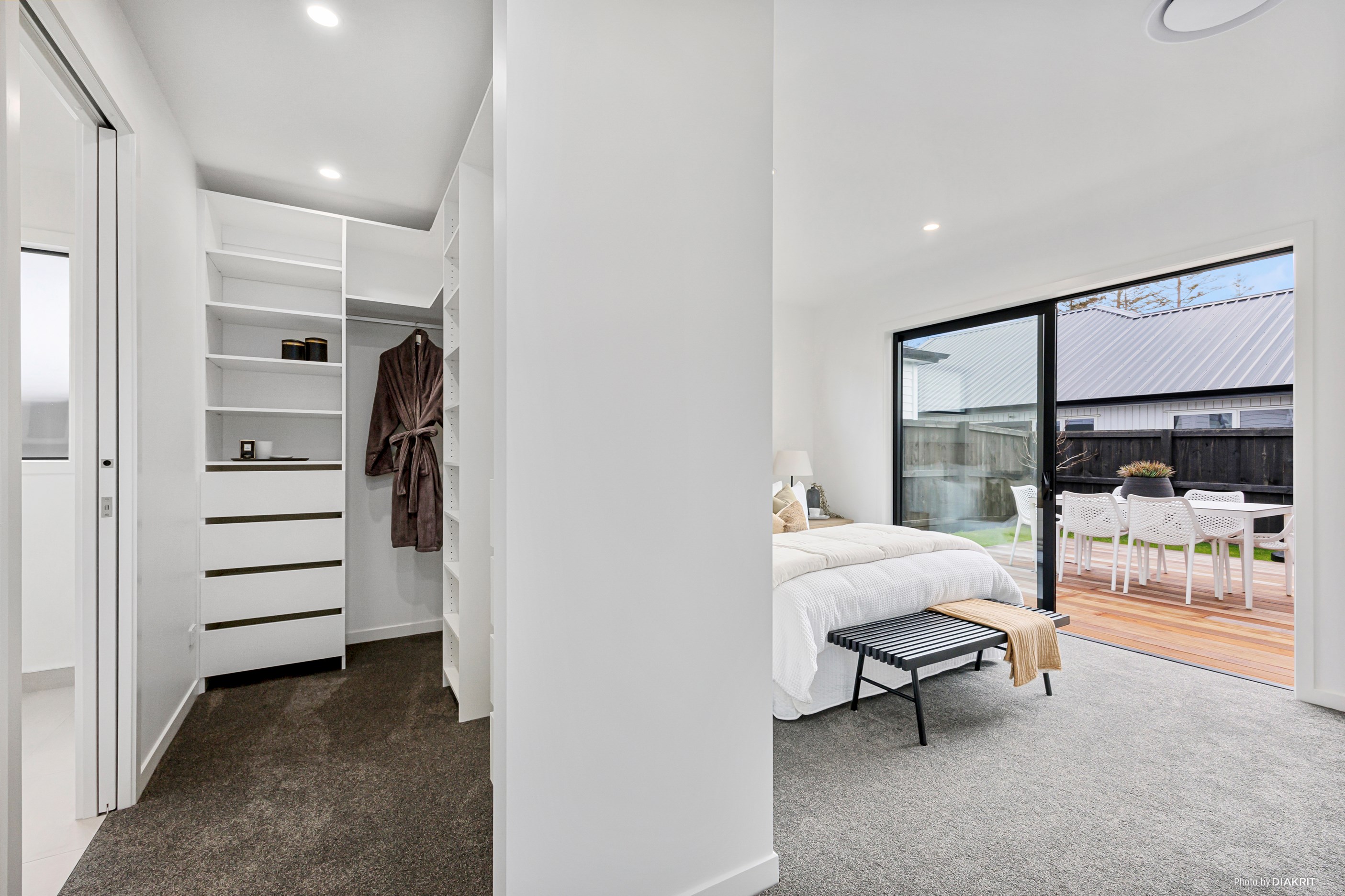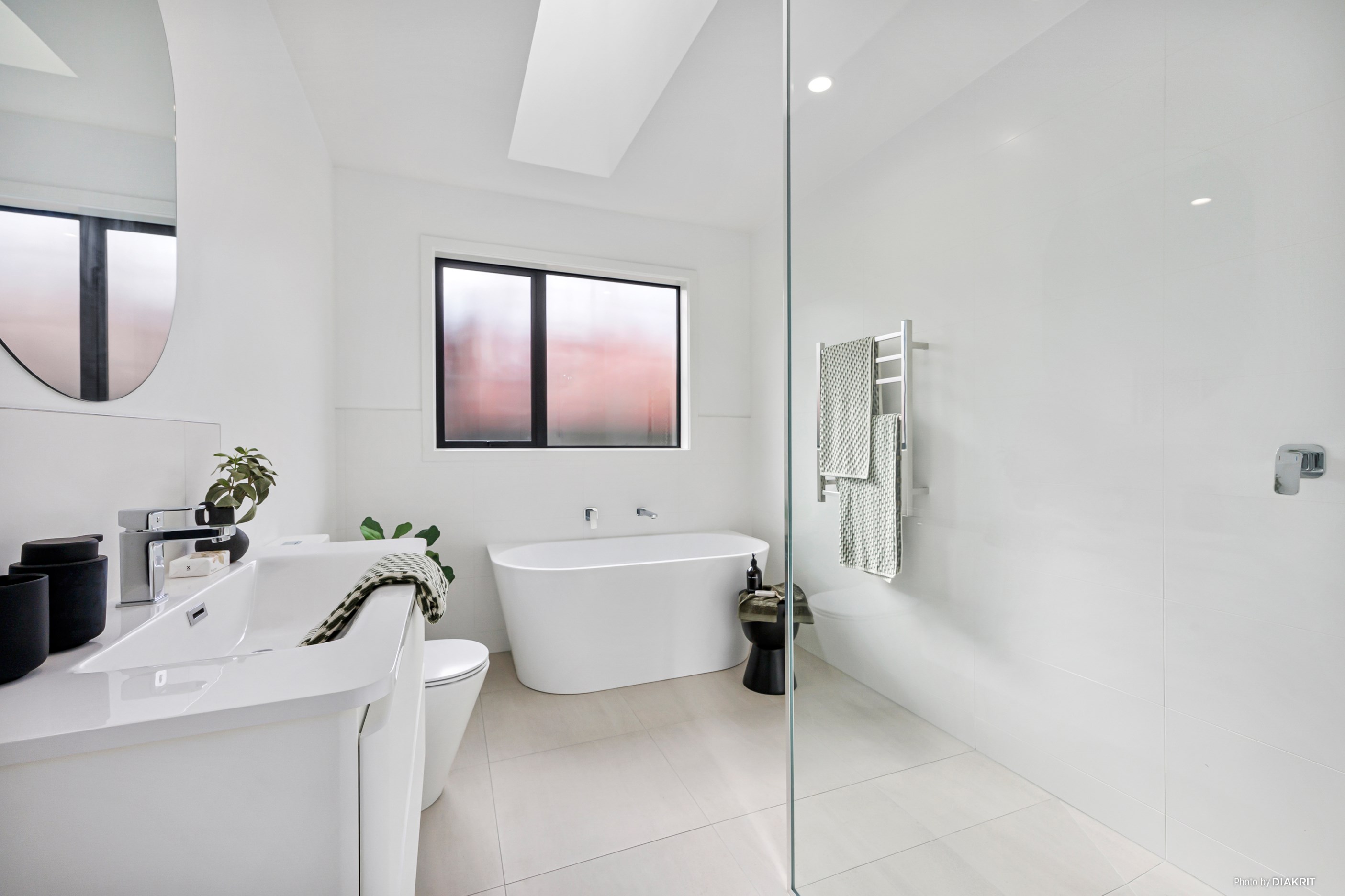 Sliders that run along two walls invite in natural light that further illuminates the airy space. These doors open directly onto north-facing timber decking encouraging alfresco dining and entertaining. The main bedroom, with walk-in wardrobe and ensuite, also has sliding doors onto a deck. Morning coffee and bagels, anyone? There’s a bathroom with a standalone bath and skylight, oversized single-car garage and separate laundry with a full-height linen cupboard and lots of shelving. It’s all polished and supremely practical.