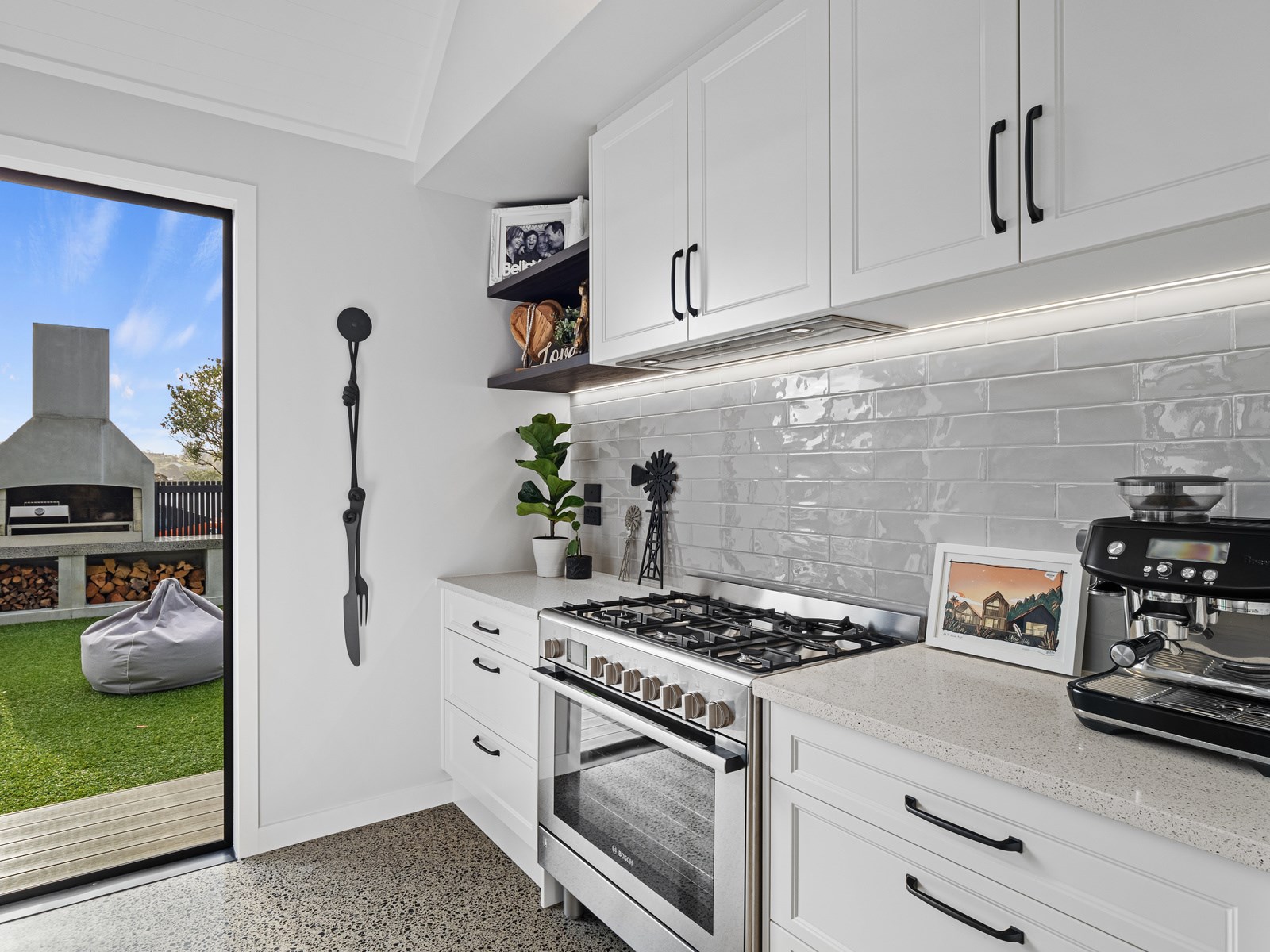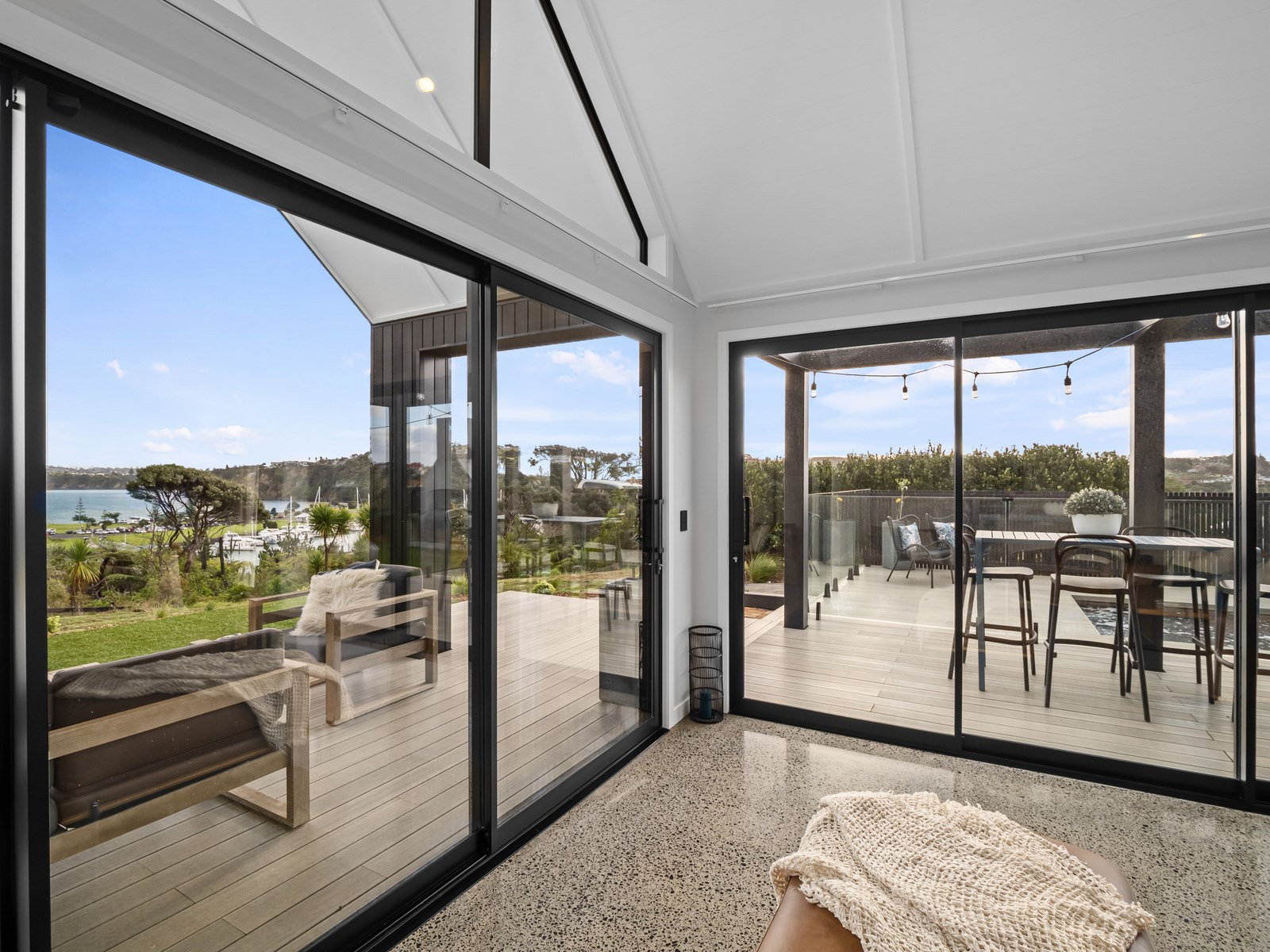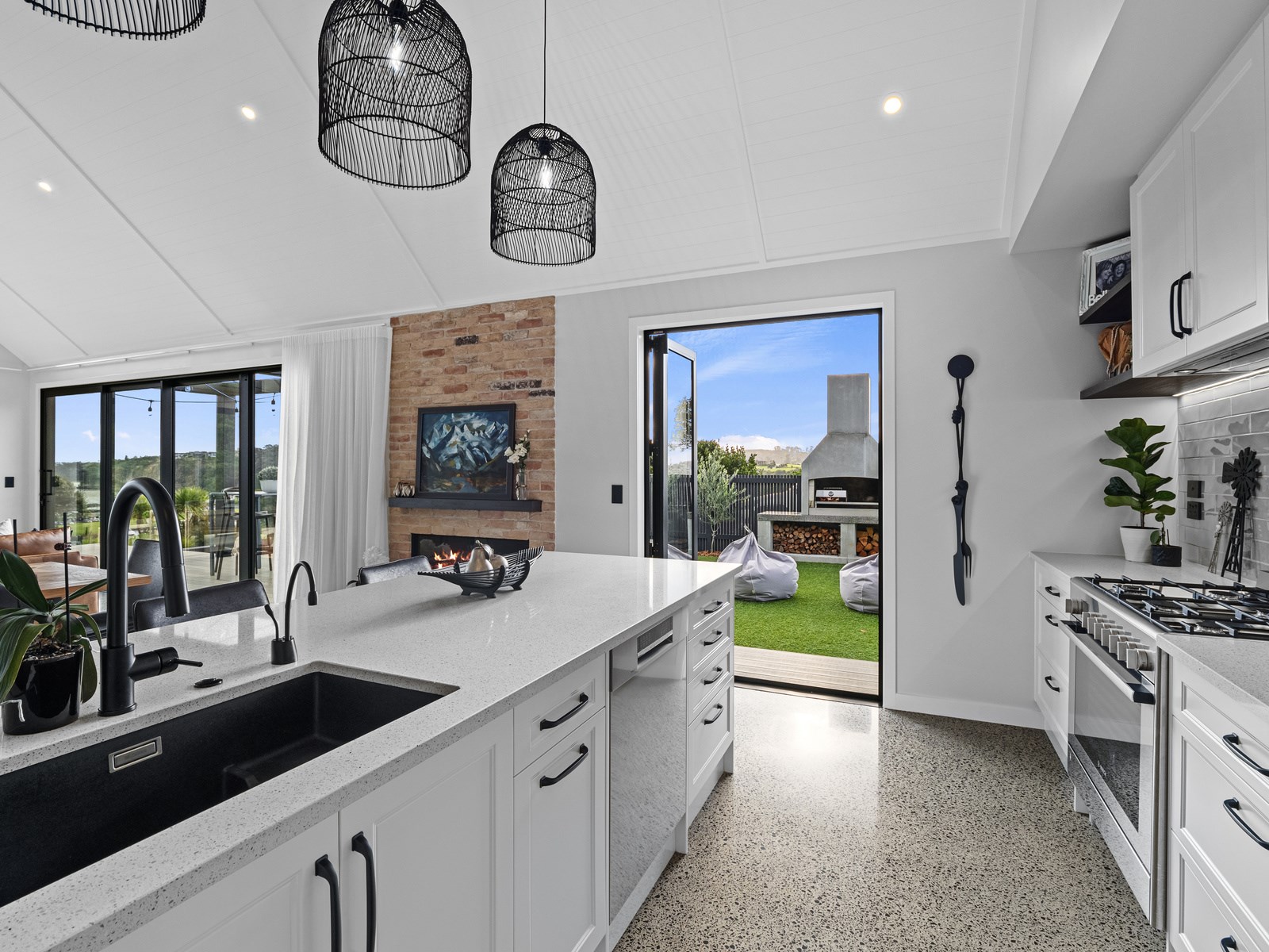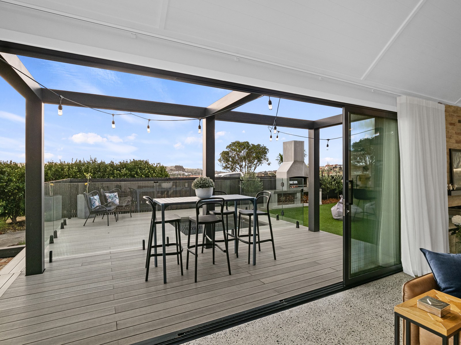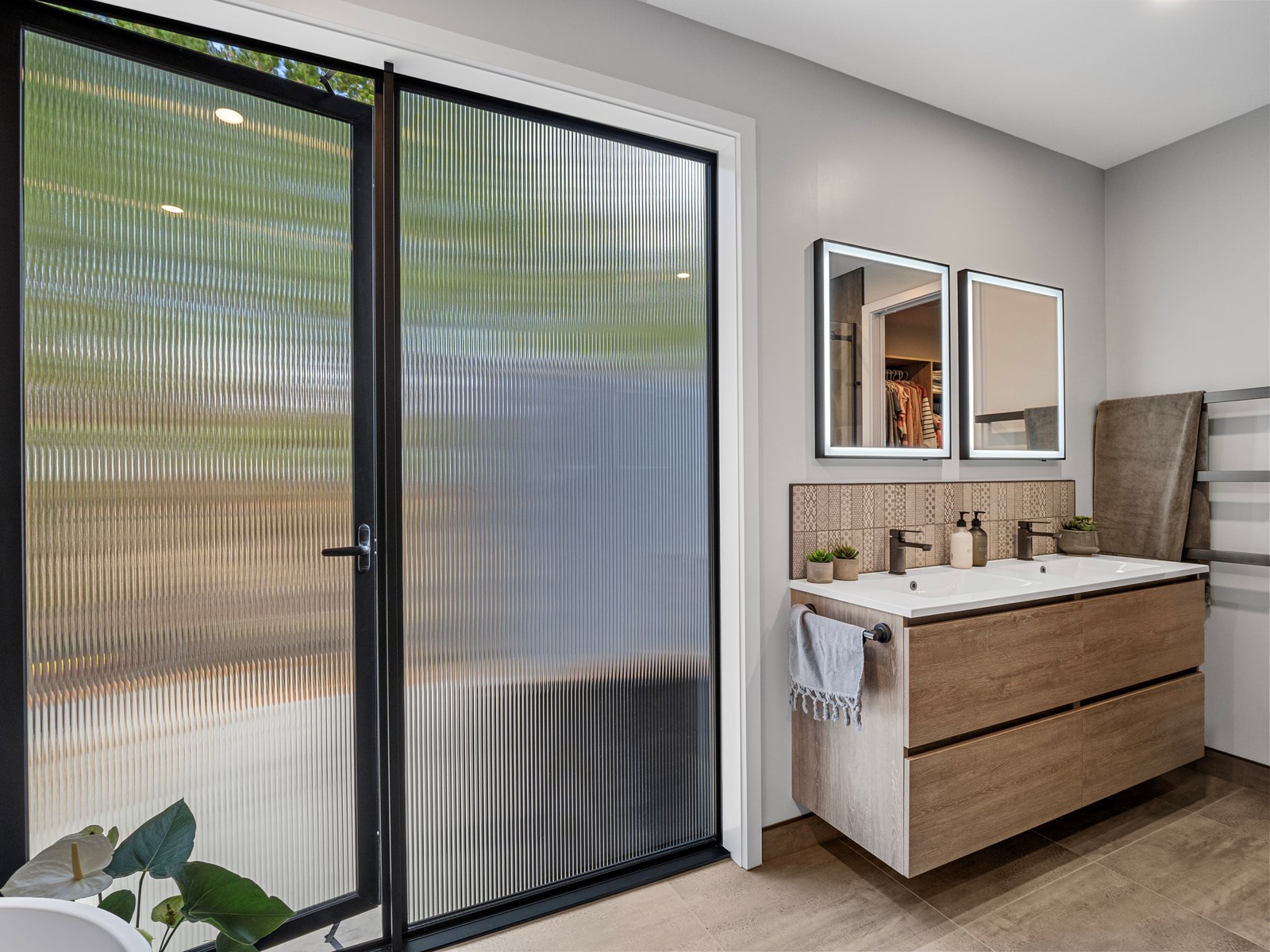 You’ll find many reasons to admire this 319sqm house, and three of them are its handsomely linked pavilion forms. The trio, in vertical Eurowood cladding, draw the eye, but they also have supremely practical functions. The middle pavilion, for instance, is family central with two floors, three bedrooms, three ensuite bathrooms, an office, separate toilet and a kids’ lounge. In the north-west wing are the open-plan communal living zones, which flow from the kitchen –with scullery – to a dining space, living room and out into a portico and swathe of Outdure decking. From there you can step down to the spa pool, lawn and barbecue. It’s entertaining bliss. The final pavilion has a double garage, plus a one-bedroom apartment with its own bathroom, kitchen, sitting room and deck. As a result, the welcome mat is always out for friends and family.