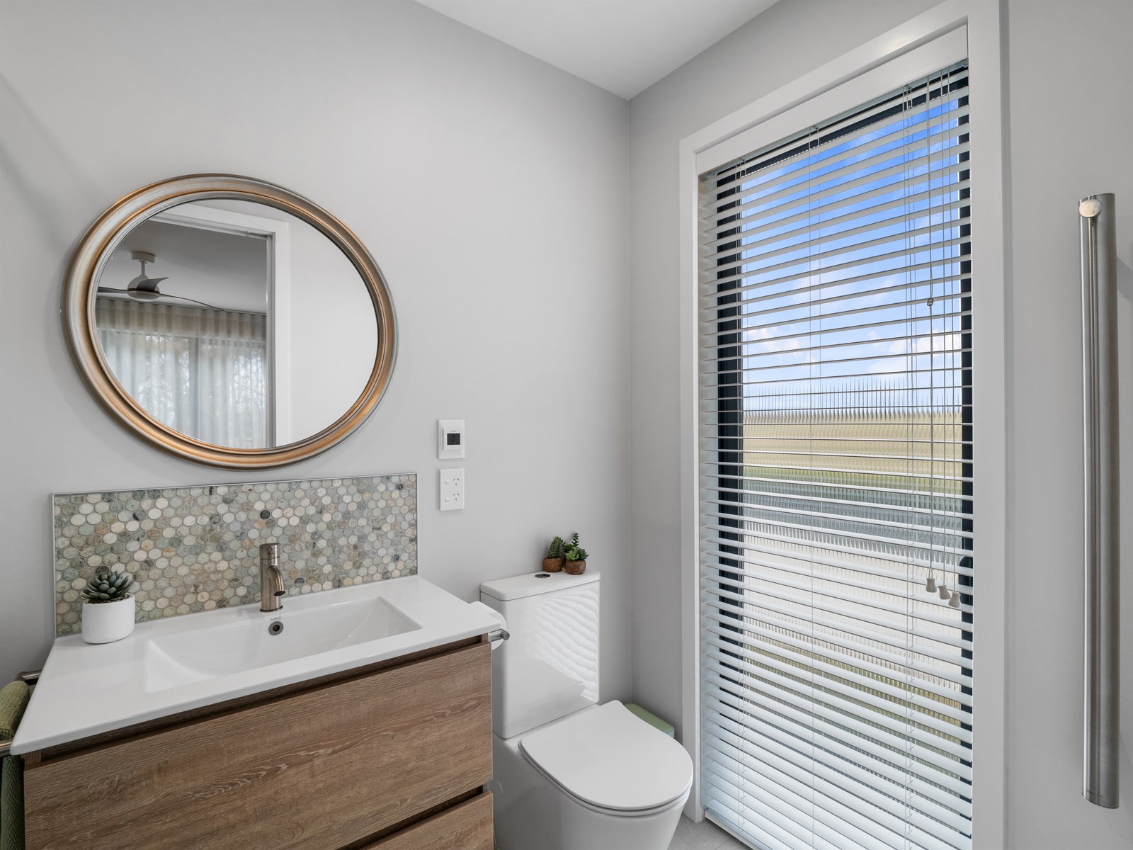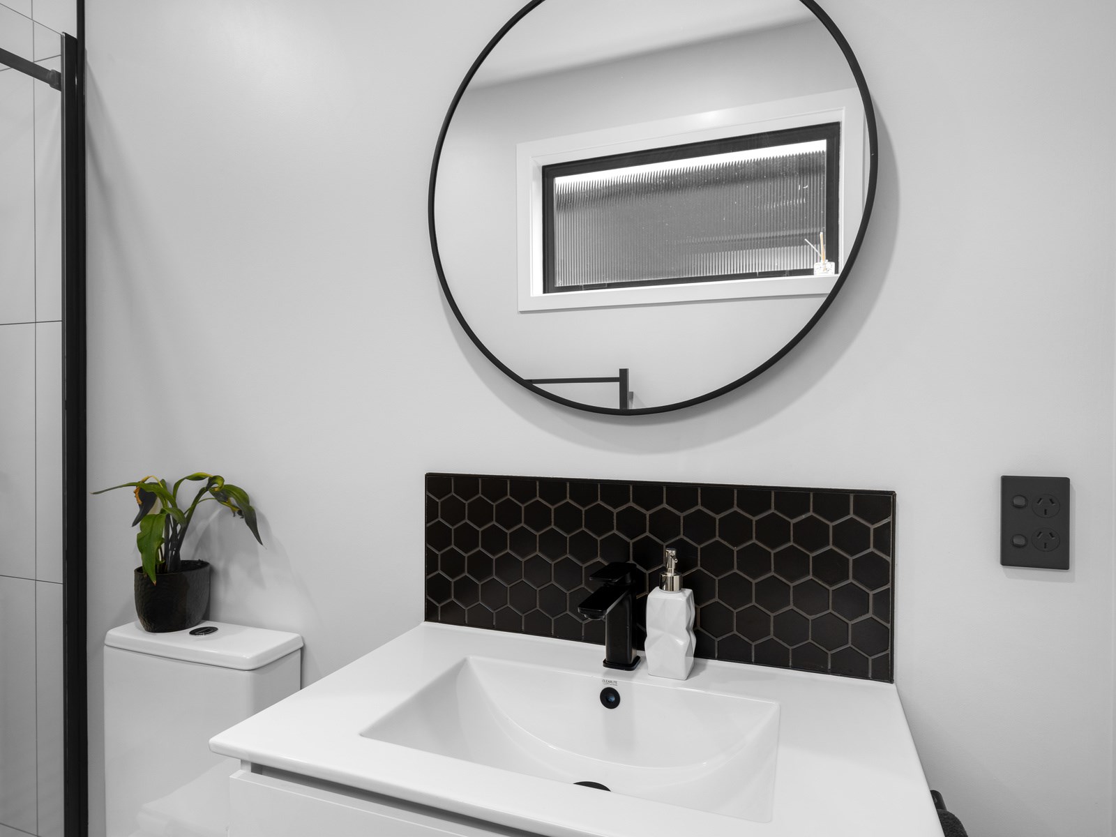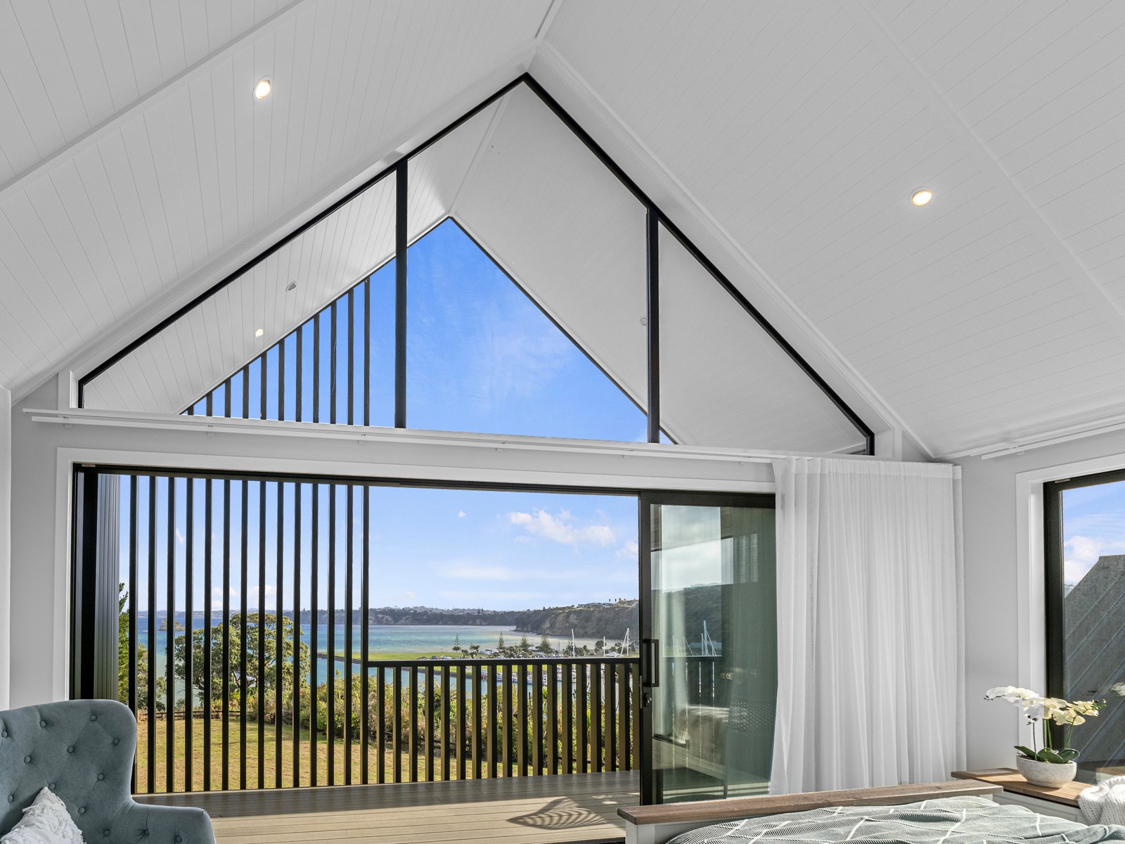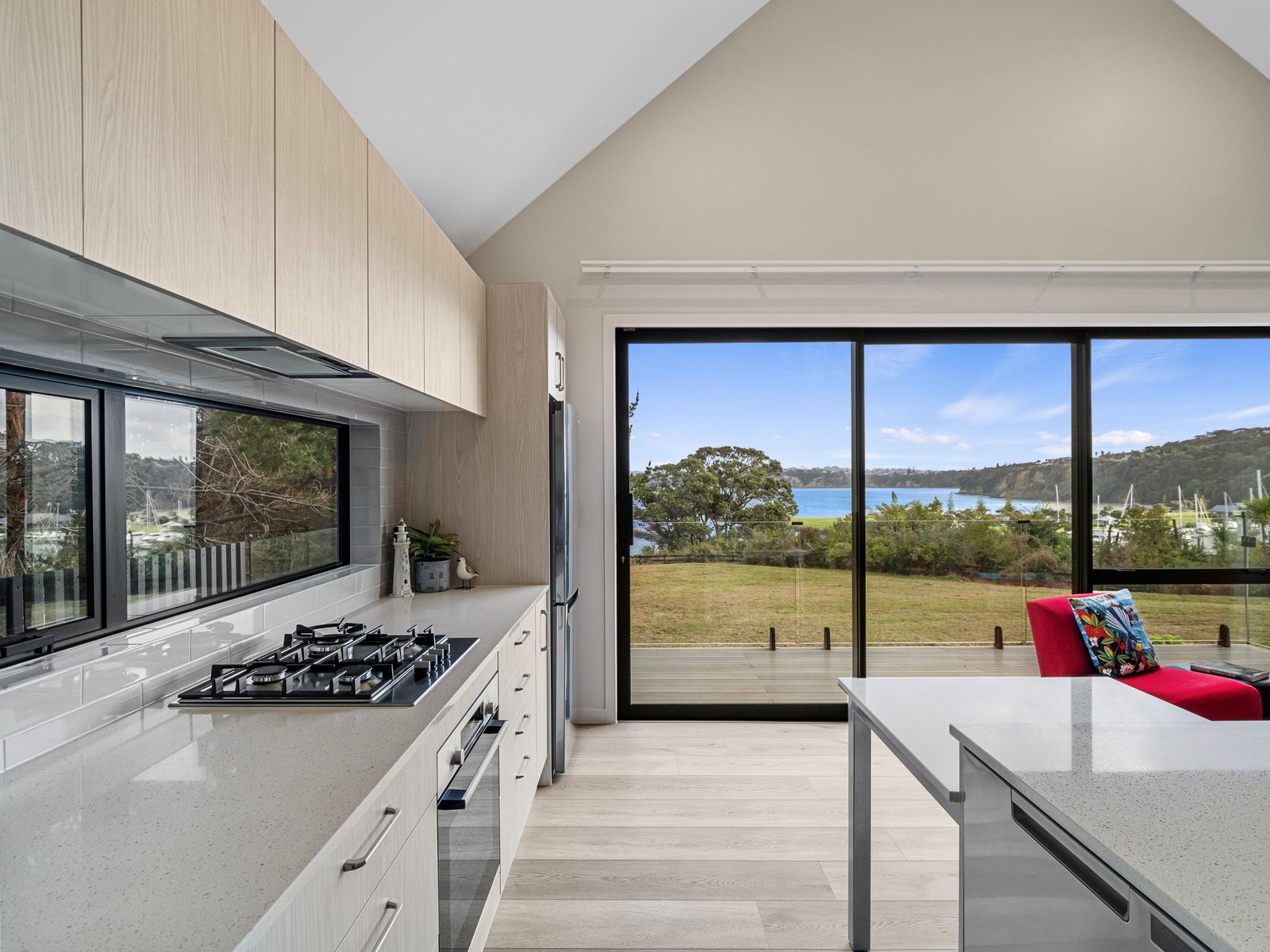 You’ll find many reasons to admire this 319sqm house, and three of them are its handsomely linked pavilion forms. The trio, in vertical Eurowood cladding, draw the eye, but they also have supremely practical functions. The middle pavilion, for instance, is family central with two floors, three bedrooms, three ensuite bathrooms, an office, separate toilet and a kids’ lounge. In the north-west wing are the open-plan communal living zones, which flow from the kitchen –with scullery – to a dining space, living room and out into a portico and swathe of Outdure decking. From there you can step down to the spa pool, lawn and barbecue. It’s entertaining bliss. The final pavilion has a double garage, plus a one-bedroom apartment with its own bathroom, kitchen, sitting room and deck. As a result, the welcome mat is always out for friends and family.