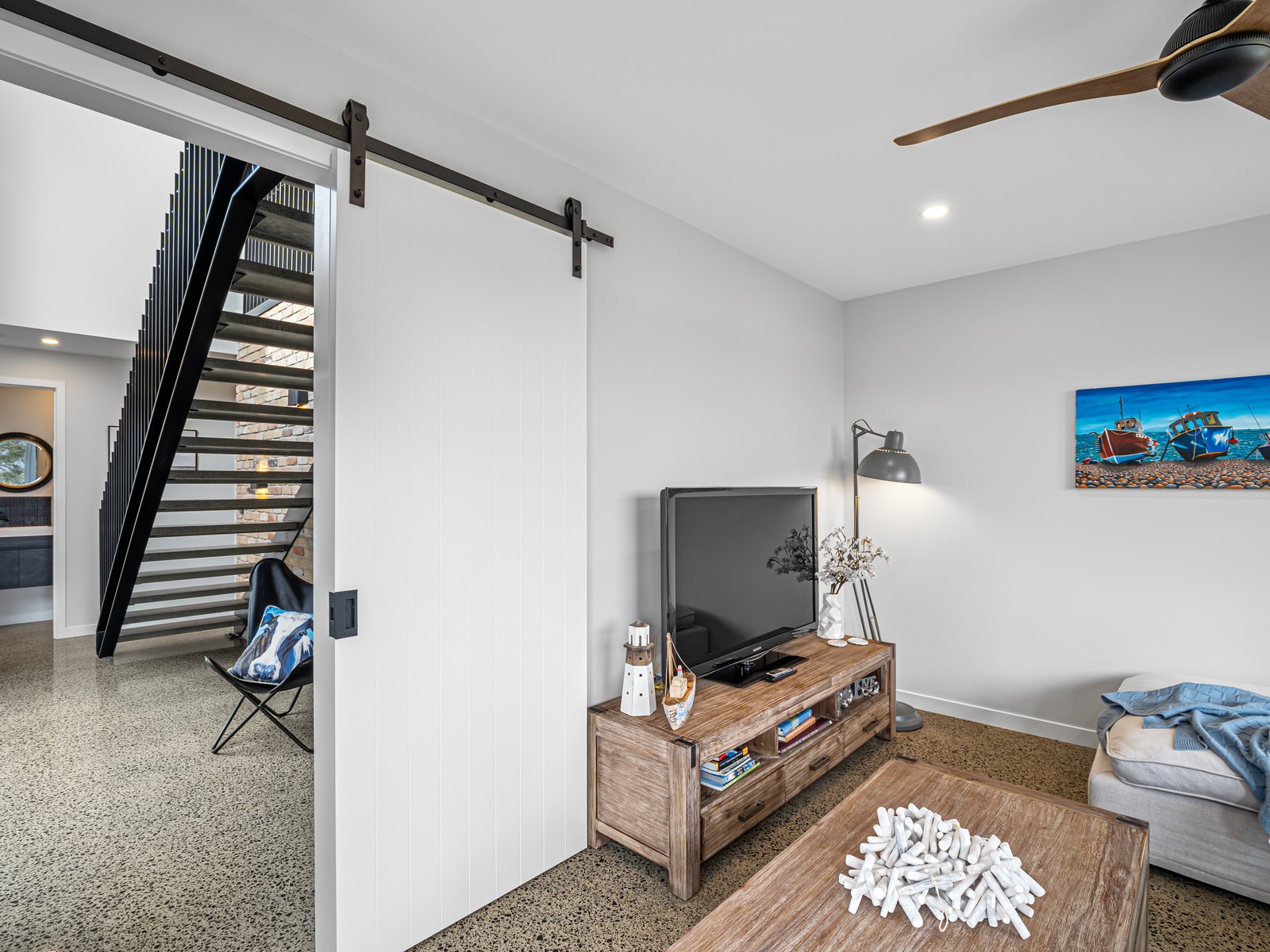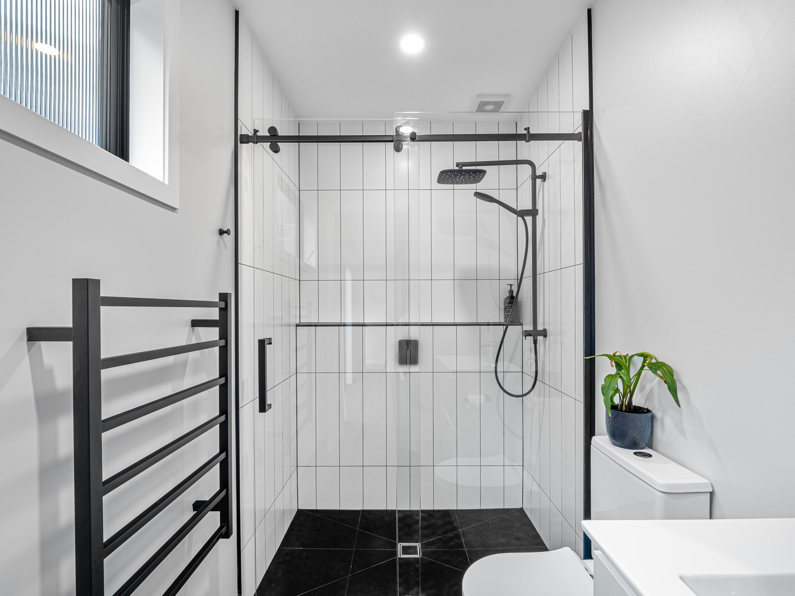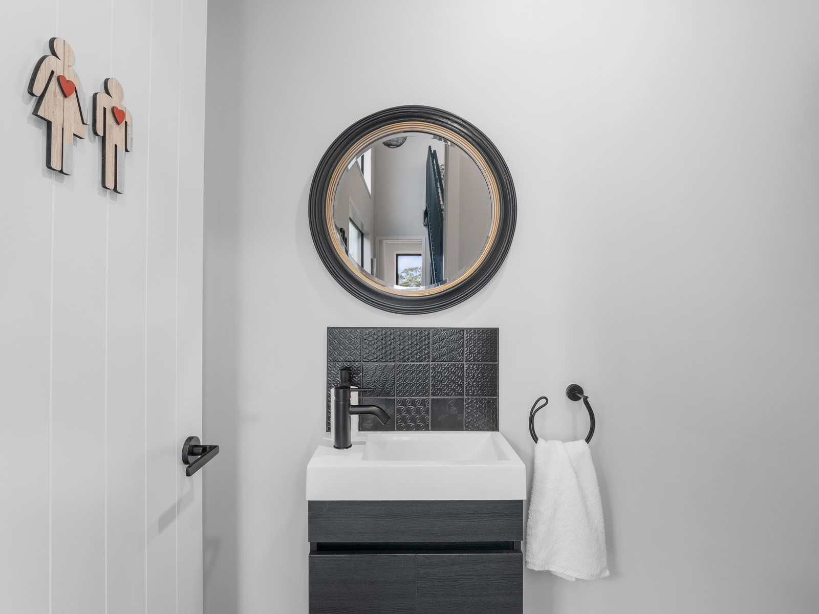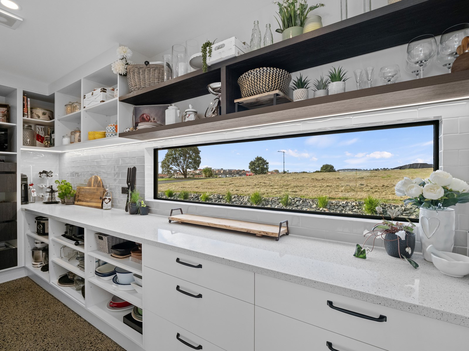 This home has been meticulously designed for a family with young adult children and it shows. There’s plenty of room for being together, but also private spaces for each person. The house also maximises panoramic views, which the owners can enjoy knowing their home is low maintenance. The interior aesthetic leans towards the industrial, and the staircase made of concrete and steel with a brick backdrop is just one example of this edgy elegance. It’s also proof of a great collaboration between visionary clients, designers and builders.