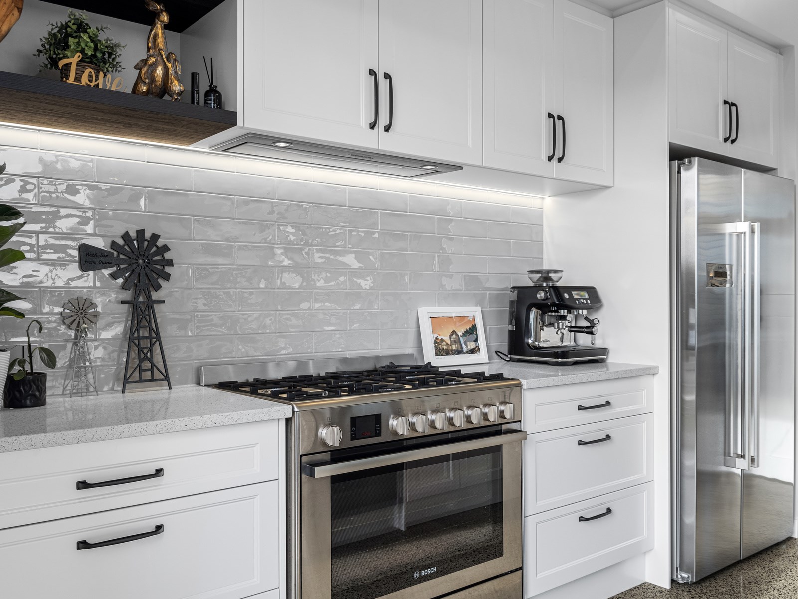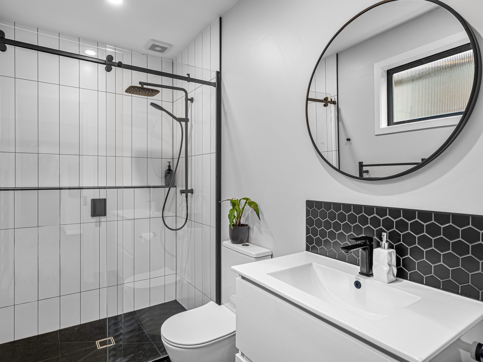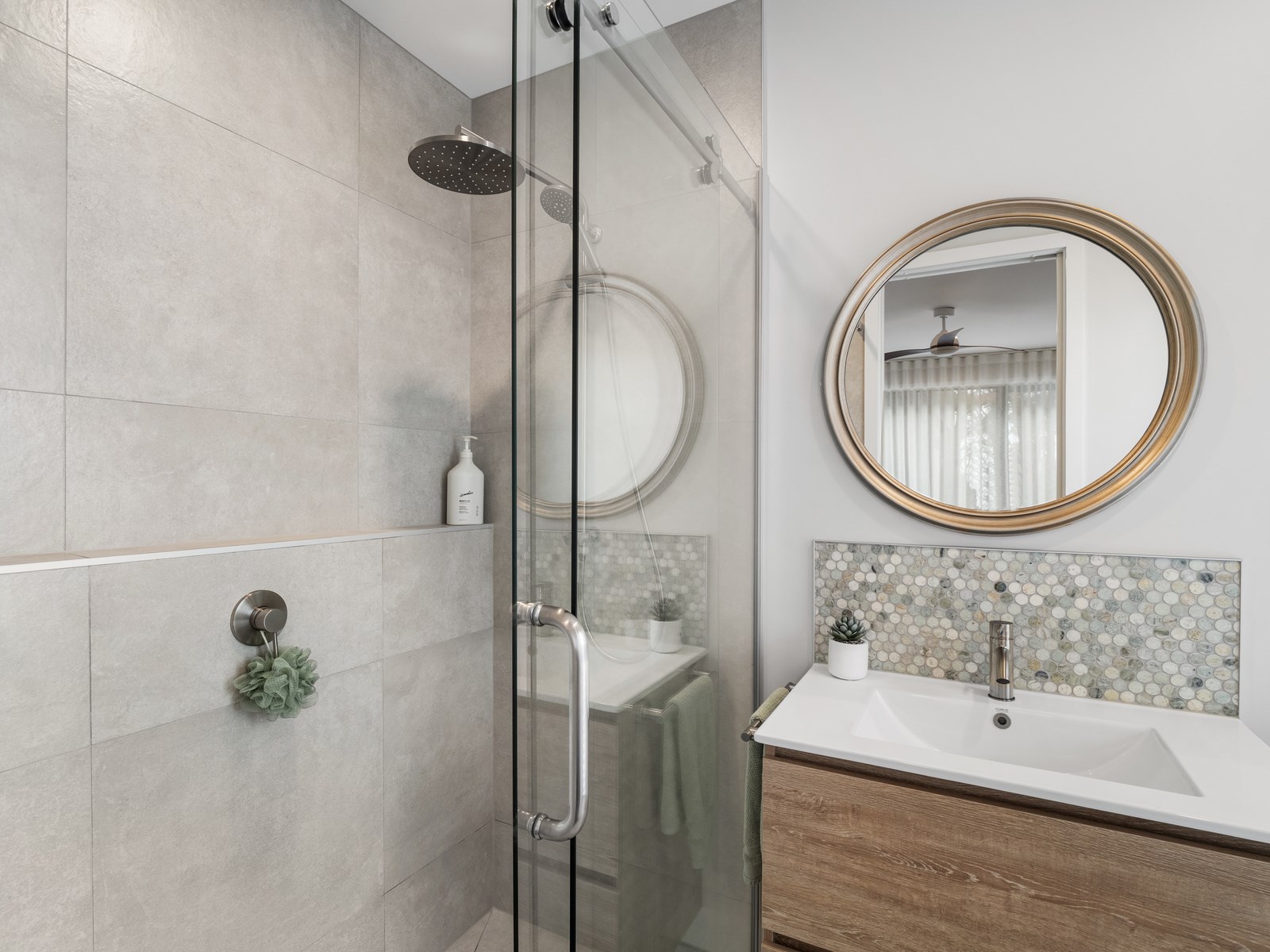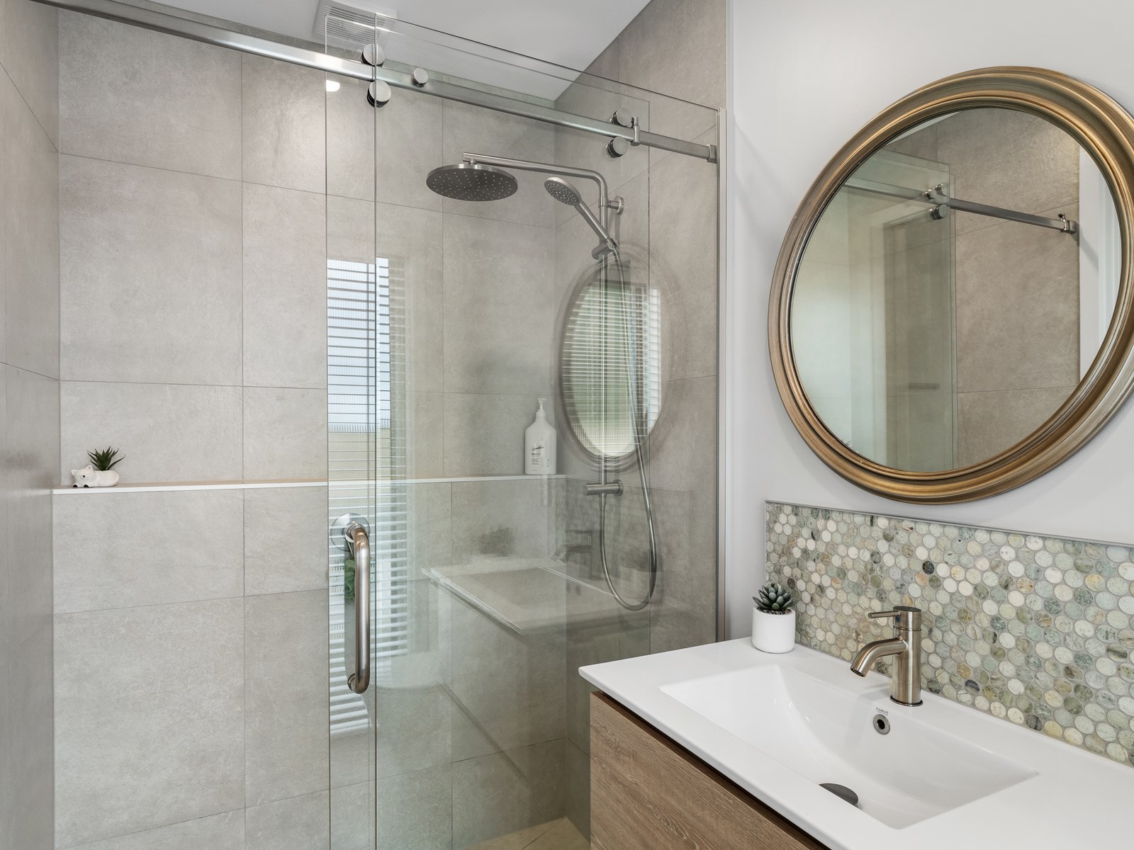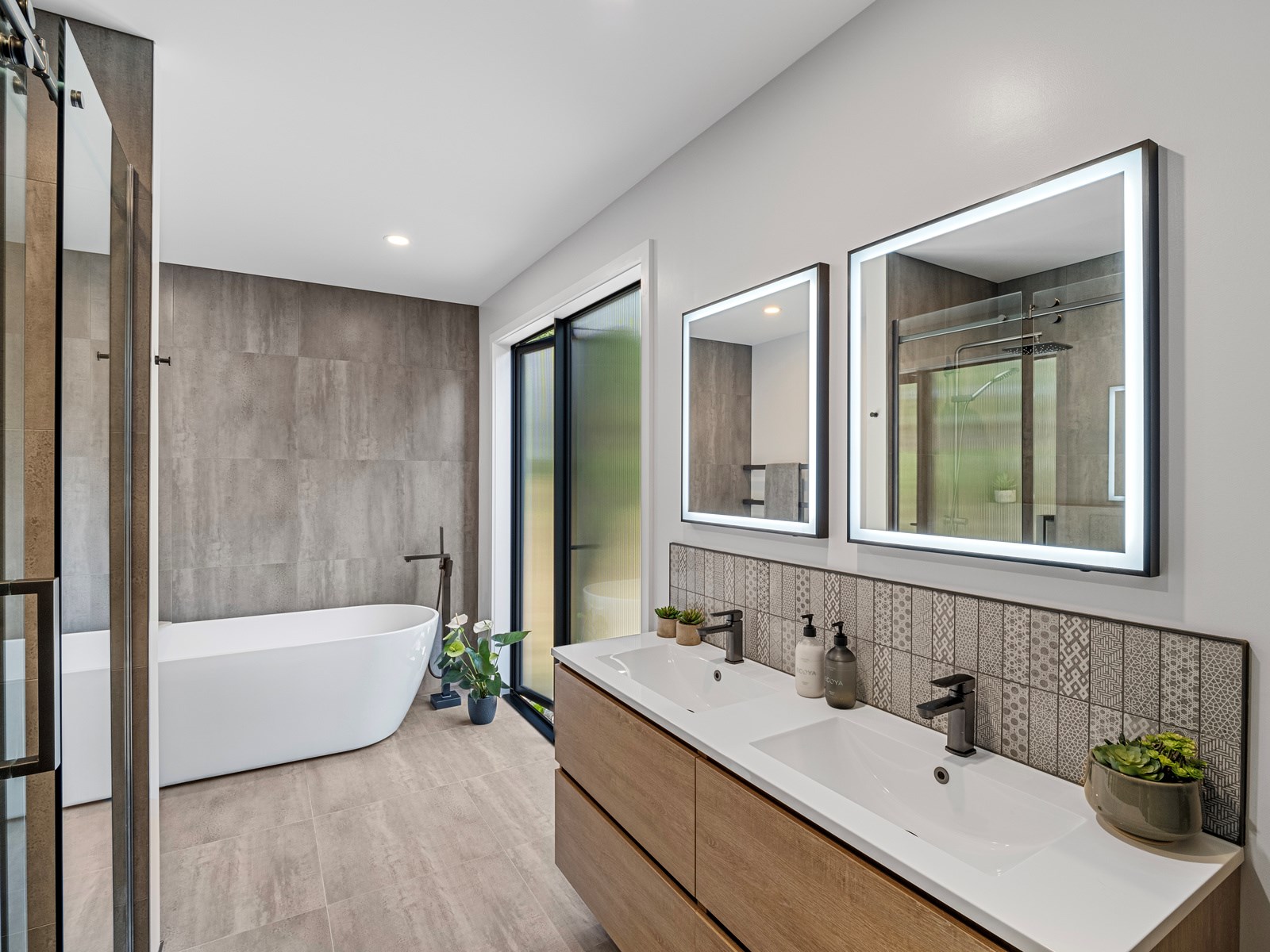 This home has been meticulously designed for a family with young adult children and it shows. There’s plenty of room for being together, but also private spaces for each person. The house also maximises panoramic views, which the owners can enjoy knowing their home is low maintenance. The interior aesthetic leans towards the industrial, and the staircase made of concrete and steel with a brick backdrop is just one example of this edgy elegance. It’s also proof of a great collaboration between visionary clients, designers and builders.