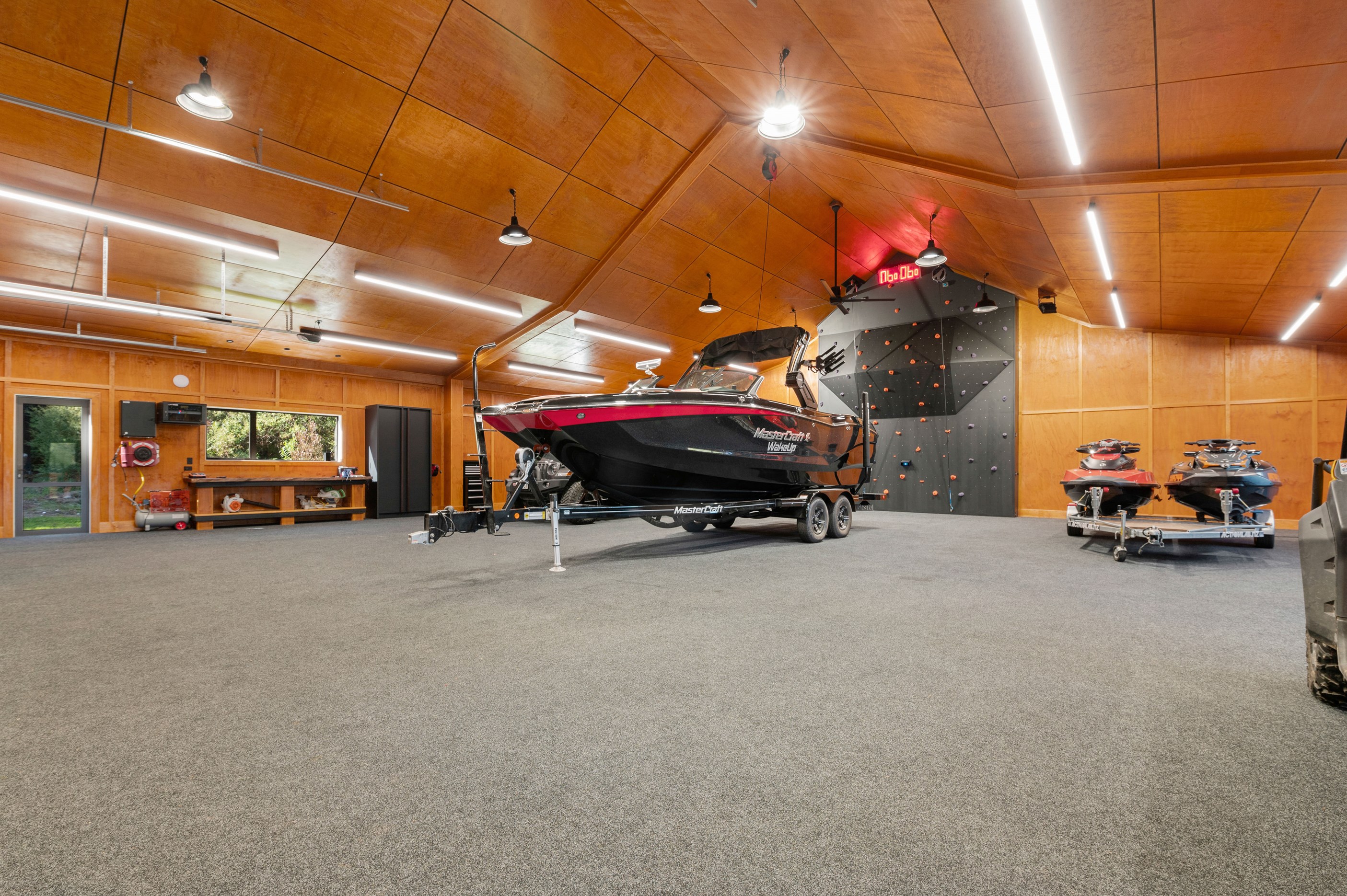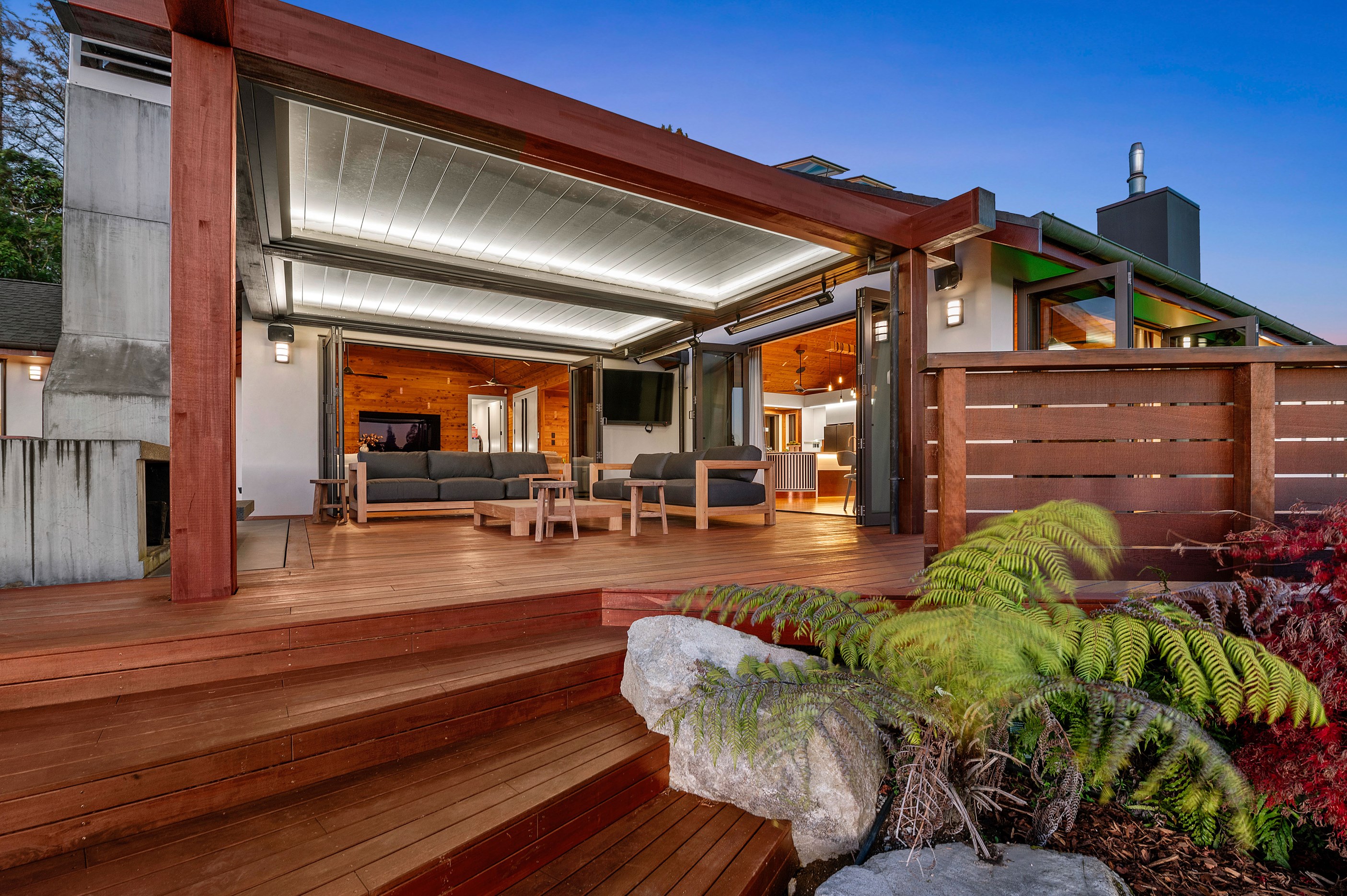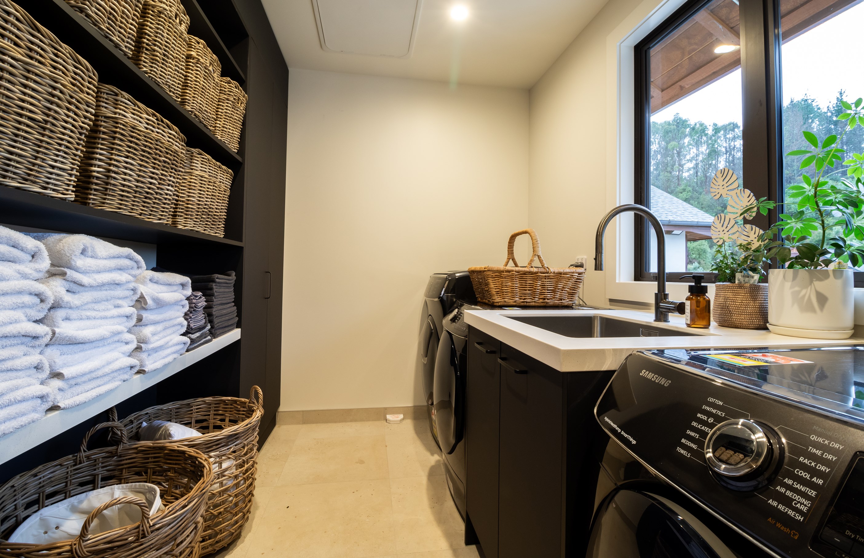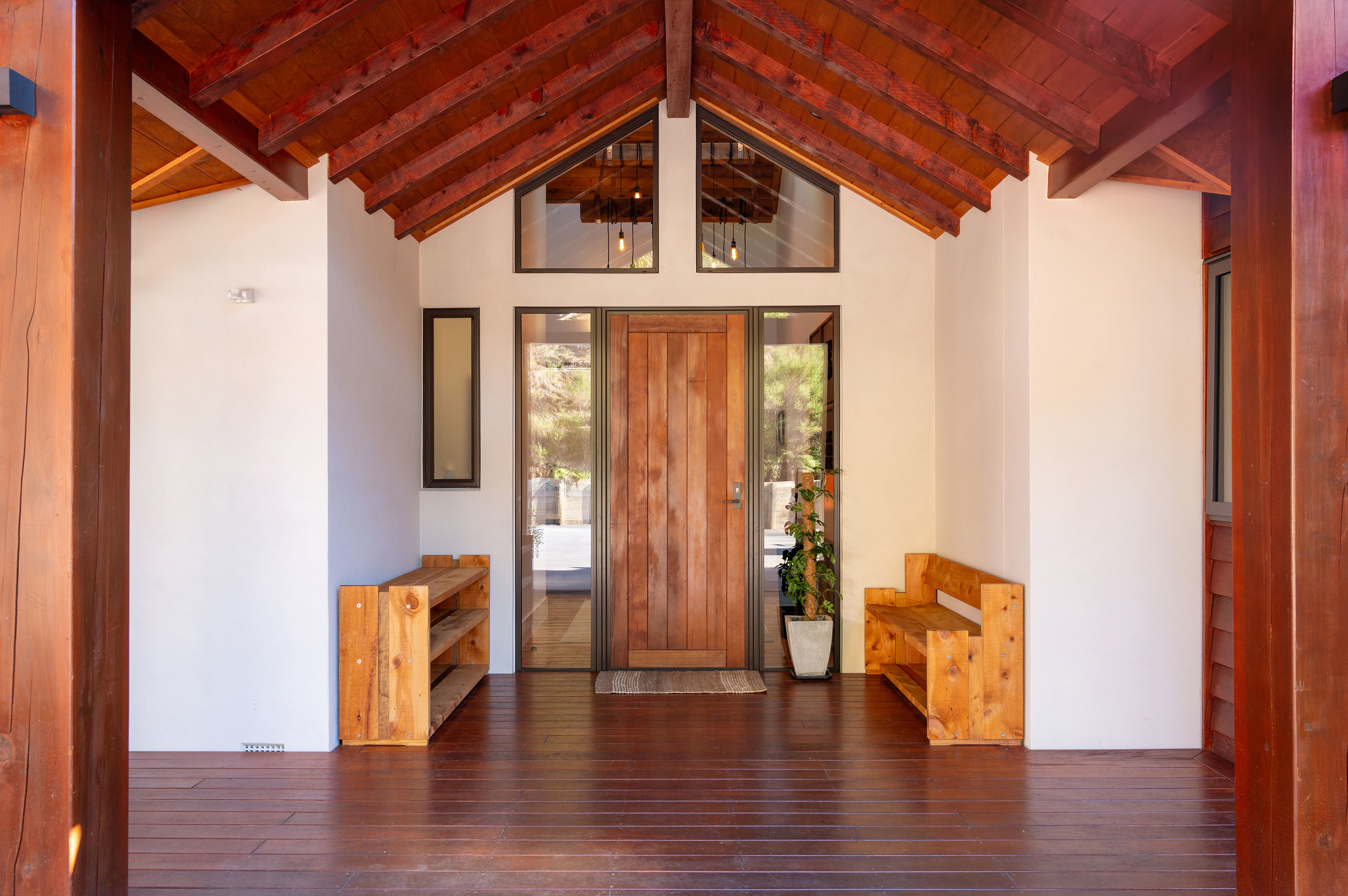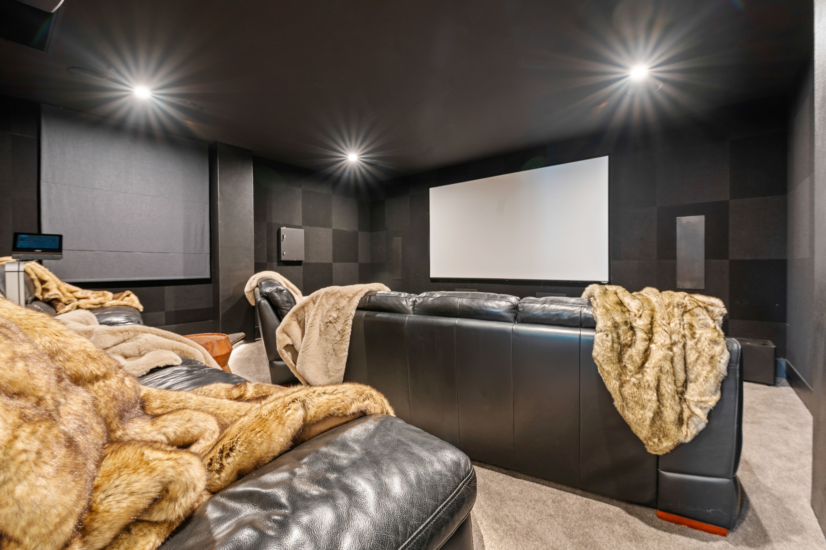 The words “substantial renovation” take on new meaning once you’ve seen this large-scale project. It’s not unusual for builders to be to hired to revamp and enlarge holiday homes for extended families, but this one had to cater to more than 40 people. As a result, this remarkable Lake Rotoiti family treasure now has 10 bedrooms, including two bunkrooms with 24 handmade bunk beds; 10 private bathrooms and 450sqm of decking. The cantilevered round deck is a sight to behold. In the 1184sqm lodge-style luxury bolthole and its environs you’ll find a cinema, wine cellar, barn with climbing walls, garage, playground and tennis court. Louvre-roof alfresco areas ensure that life can be enjoyed outside in any weather – with views of the lake, lawn and bush. The kitchen was also extended, not that you can discern which parts of the lodge are original and which parts are new.