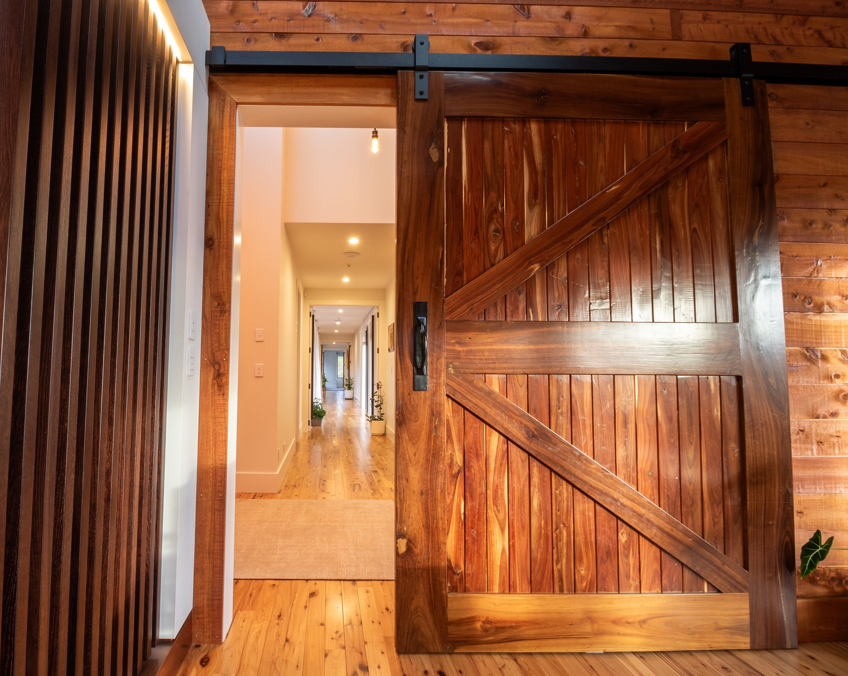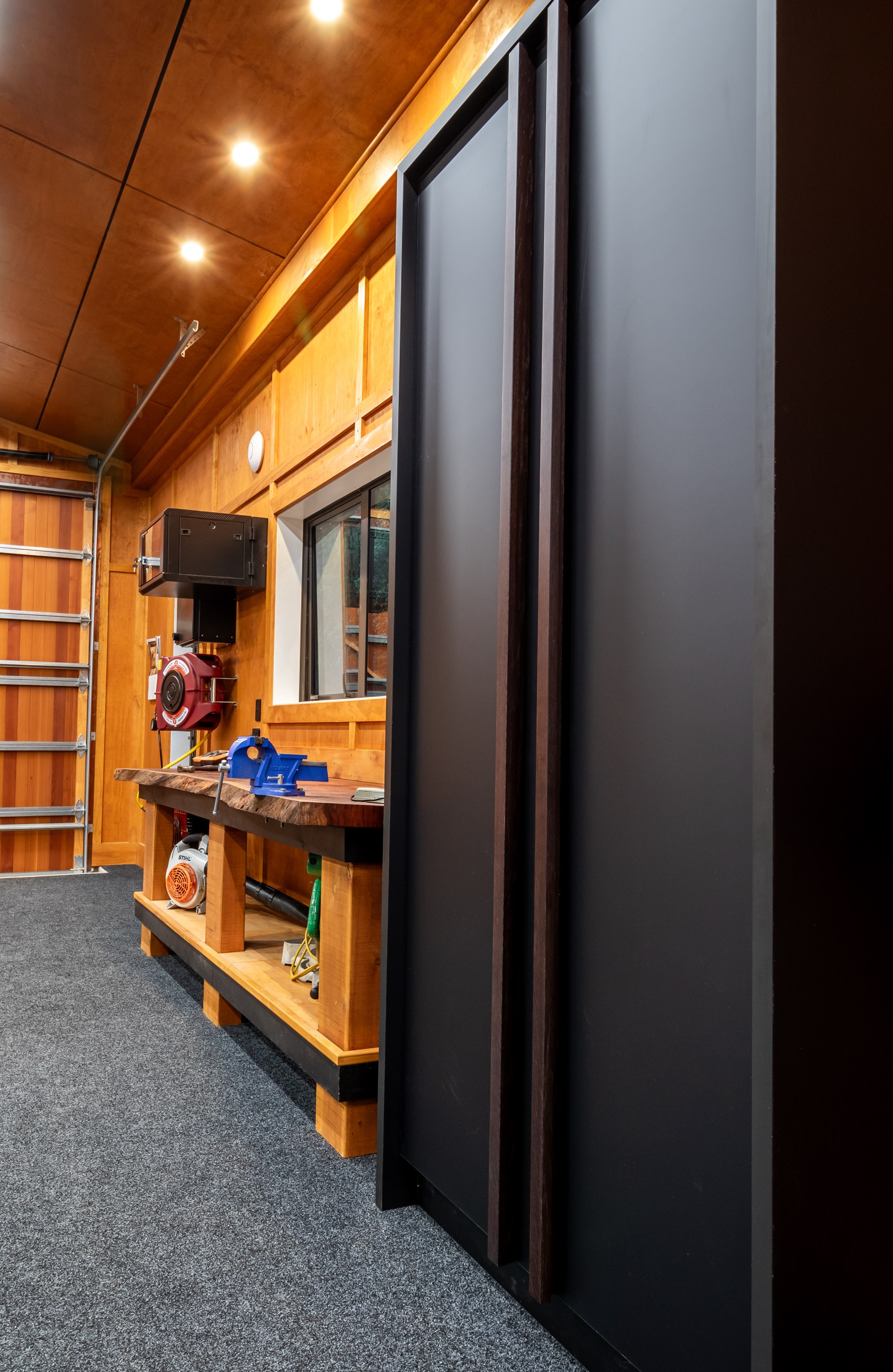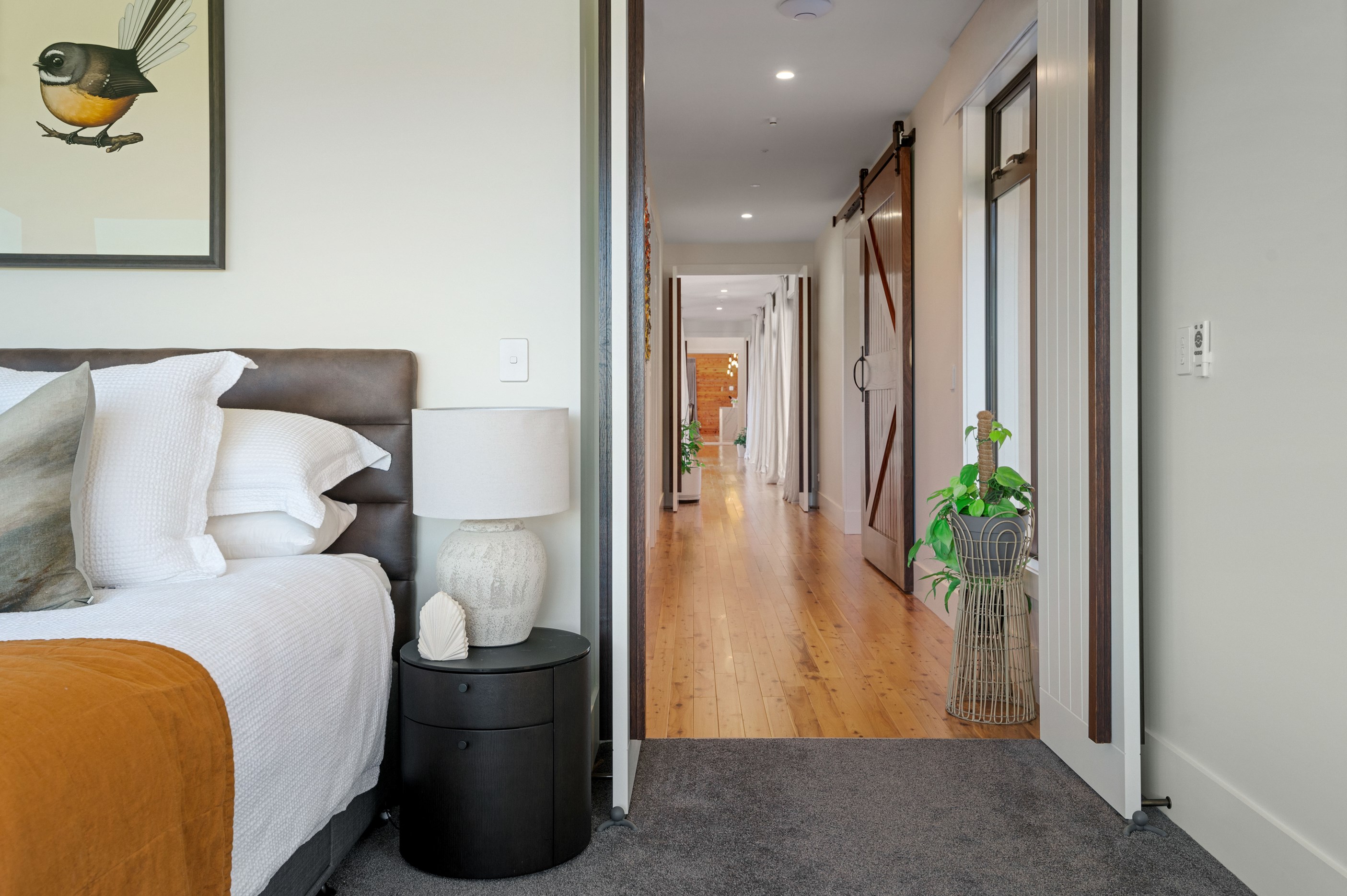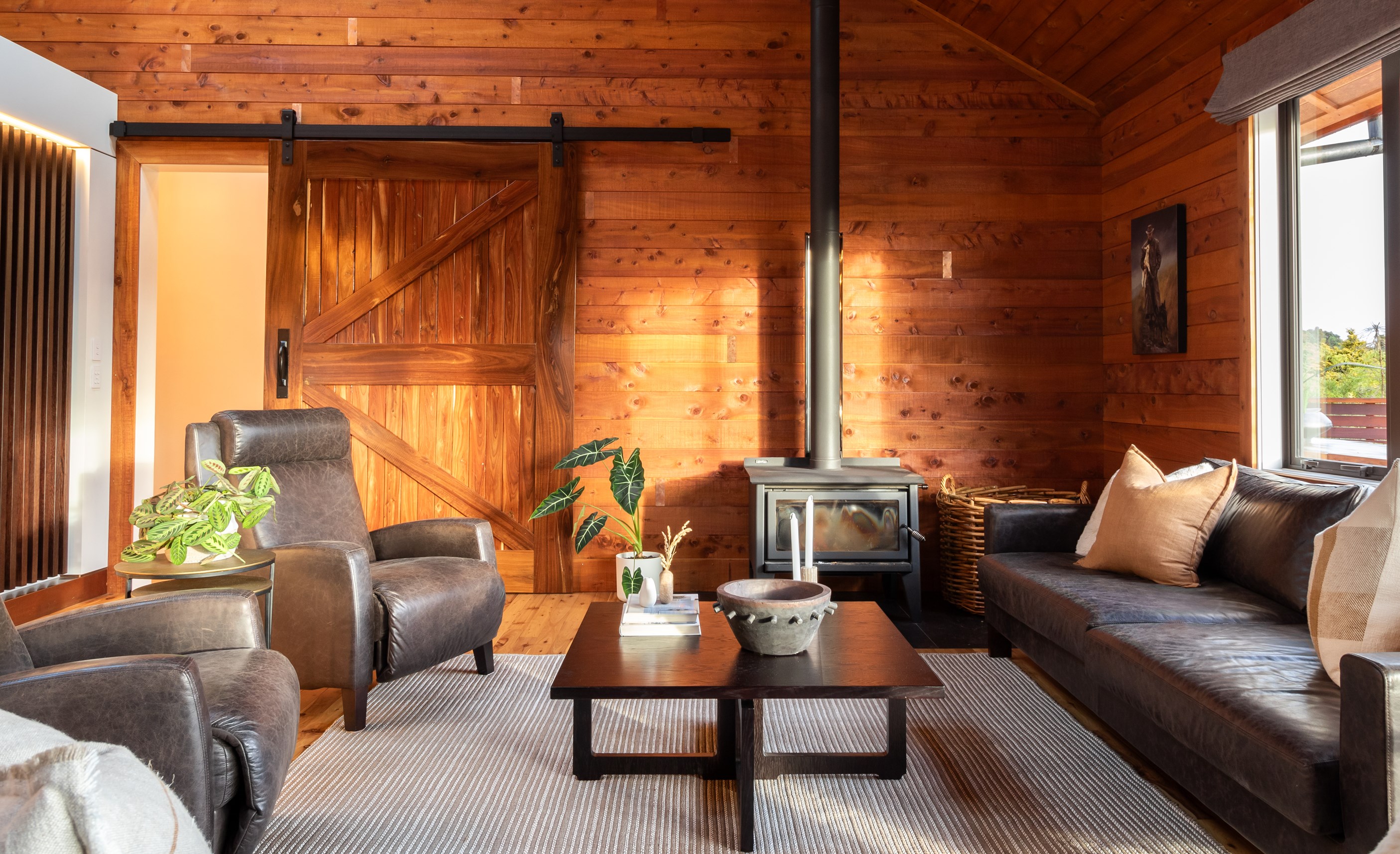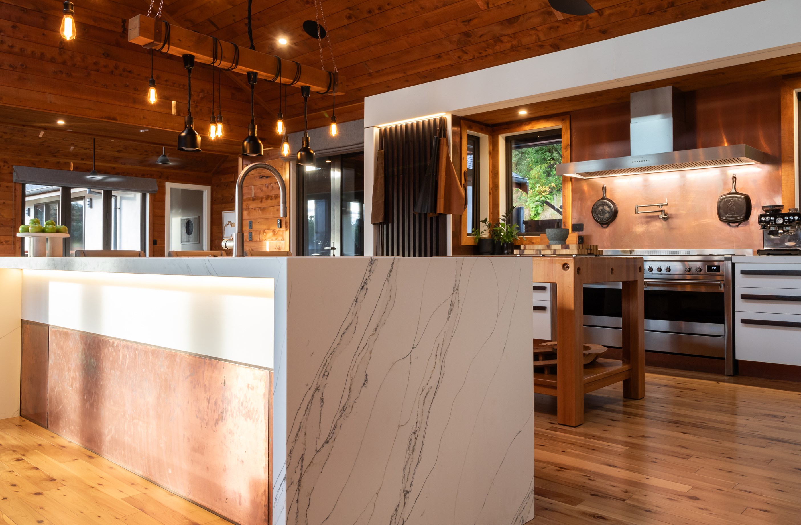 Given the scale, this project was completed in two stages over three years. It’s now a meticulous showcase of natural timber. As well as the bunks, you’ll see columns, beams, features and finishes in rustic macrocarpa and dark oak. Cedar and copper features add warmth and earthiness. Fireplaces provide a different kind of warmth. When you approach the 3.8ha property down its private driveway, you’re struck by it scale, but also by how unpretentious it is and how well the lakeside haven fits into its stunning landscape.