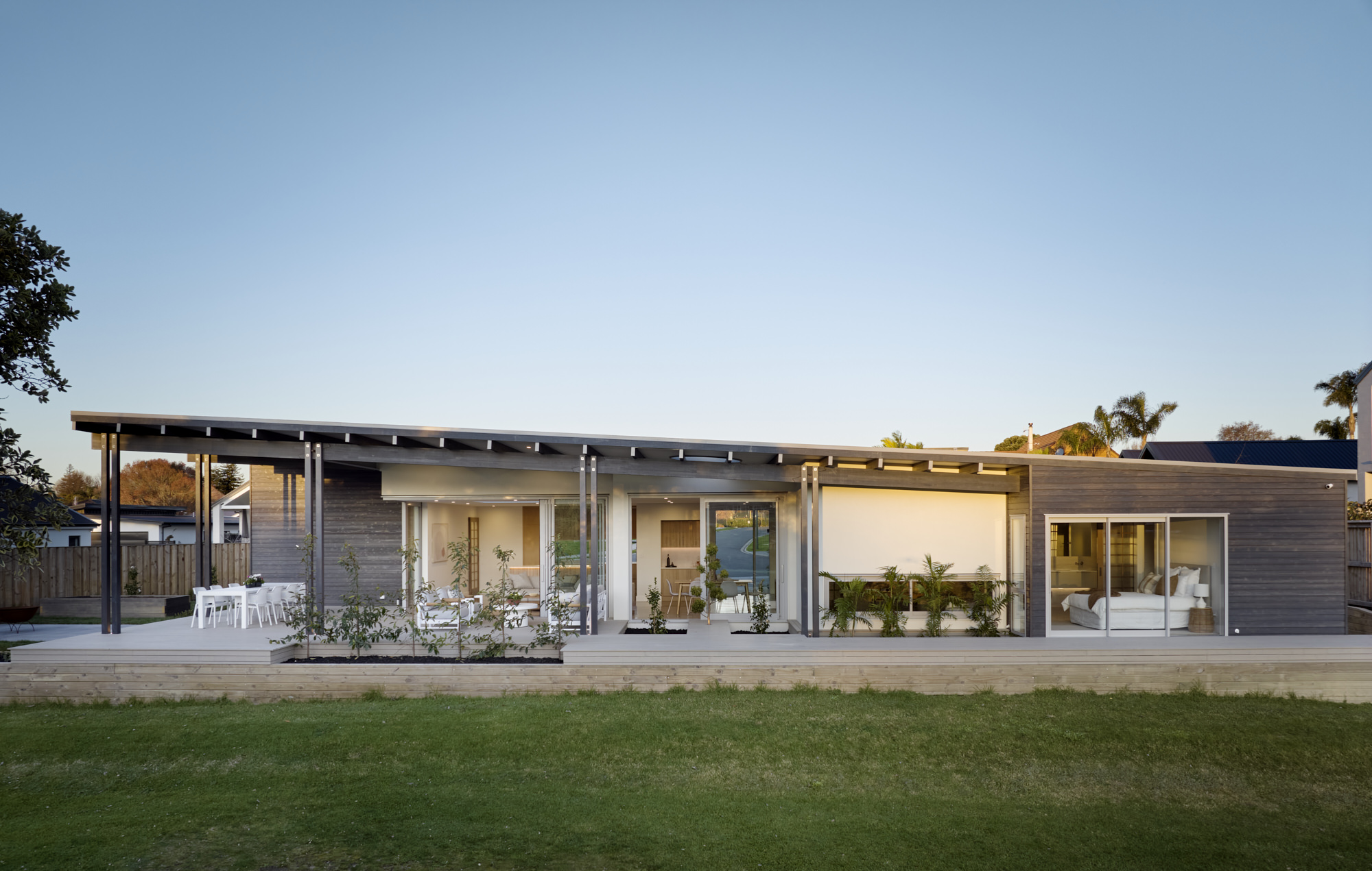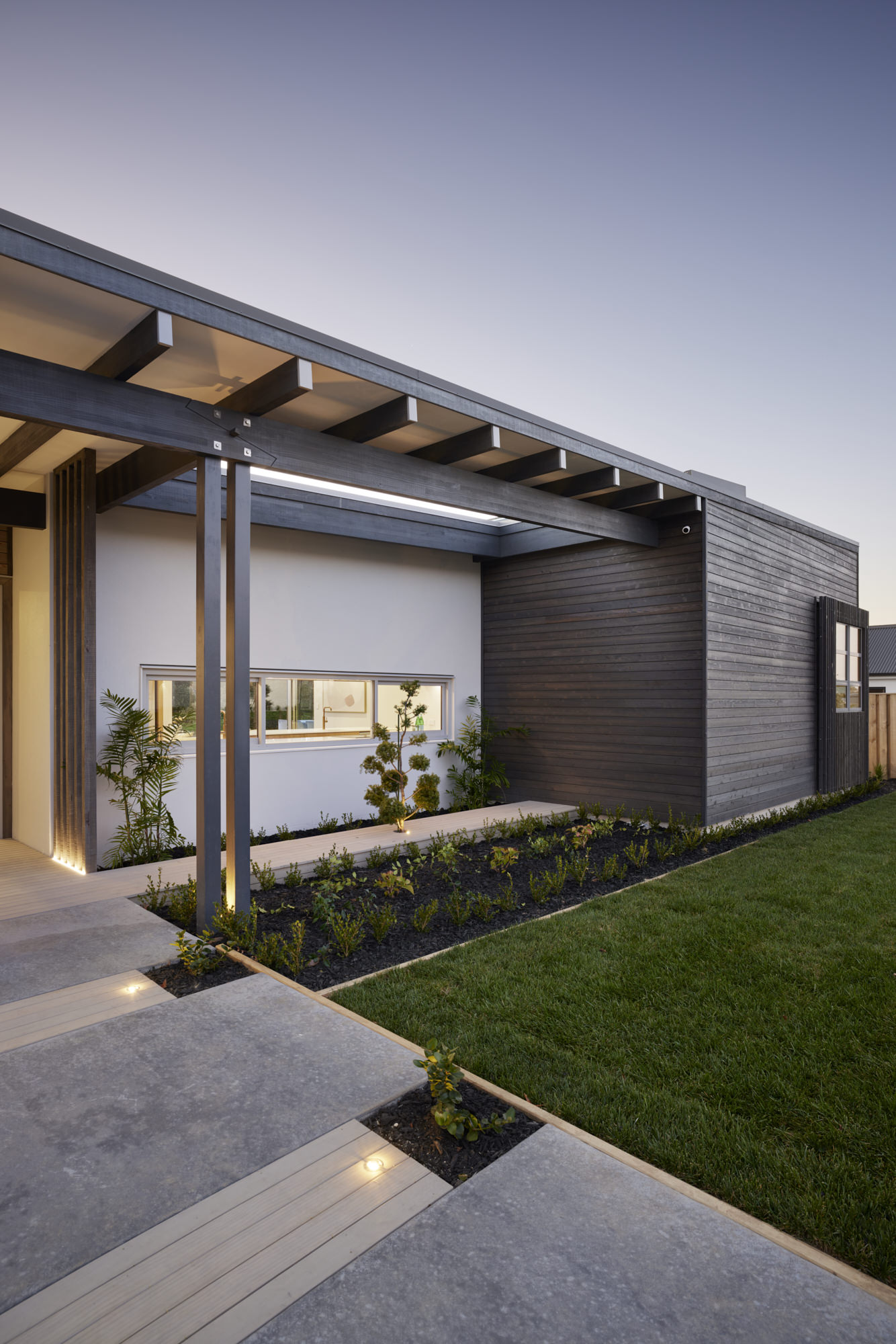 Utsukushii Uchi, which translates to ‘beautiful home’ in English, is the name of this Japanese inspired oasis of refined luxury that seamlessly blends form and function. Traditional Japanese materials and building practices have been used throughout and are clearly referenced from the outset with a garage door framed to look like a shoji screen. Sustainably grown yakisugi cedar cladding beautifies the facade that has a modern, mono-pitched roof and deep eaves with exposed rafters. Formal landscaping completes the Eastern aesthetic.