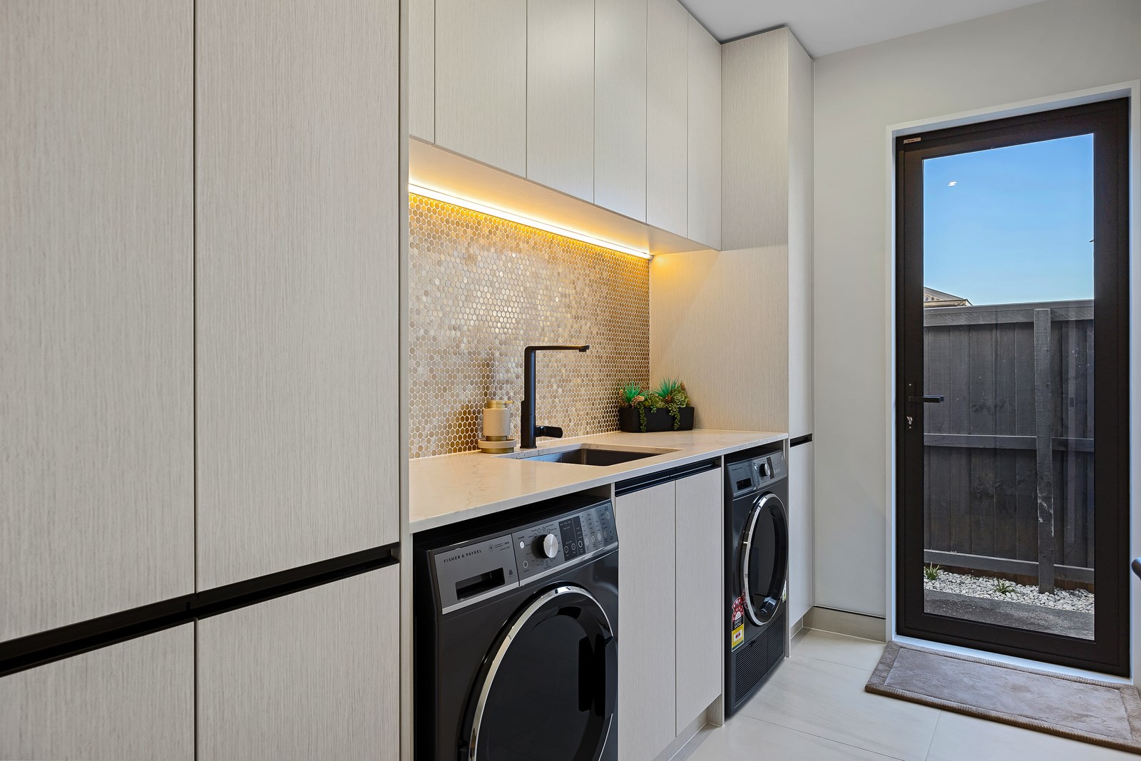 This contemporary designed, five-bedroom family home from Limelite Construction combines sleek aesthetics with cutting-edge smart features. From wifi-controlled toilets to remotely managed underfloor heating in the bathrooms, every detail is crafted for convenience. The heat recovery system can be controlled via smartphone, ensuring optimal climate control at your fingertips. Security is paramount, with a smart lock on the front door that enables communication from anywhere in the world. The garage door opens remotely, and the gas fire’s settings can be adjusted through a smartphone app for ultimate comfort. Additionally, a sophisticated camera system lets you monitor and record visitors via an app. Constructed with robust LVL frames for enhanced strength, this home epitomises modern living.