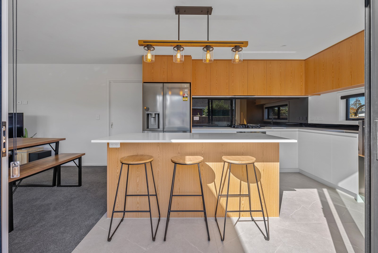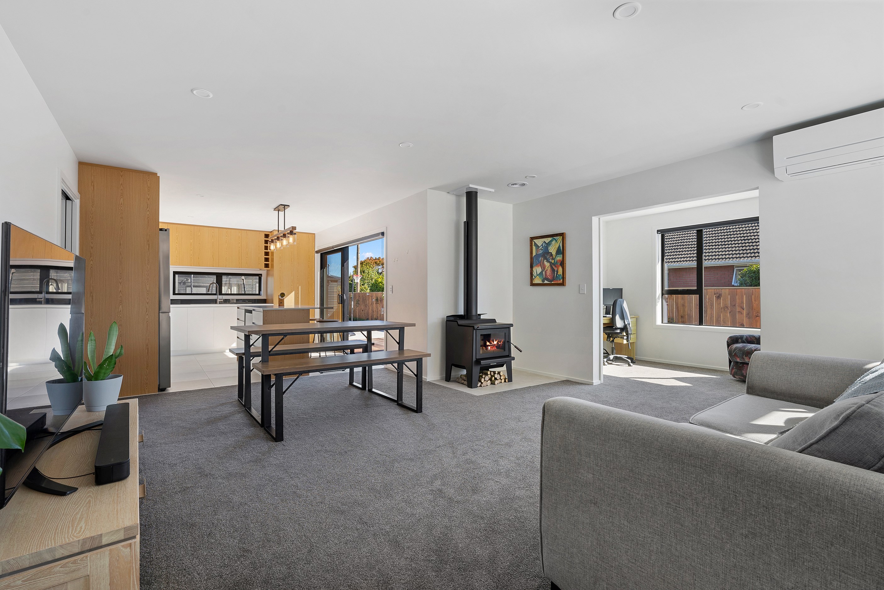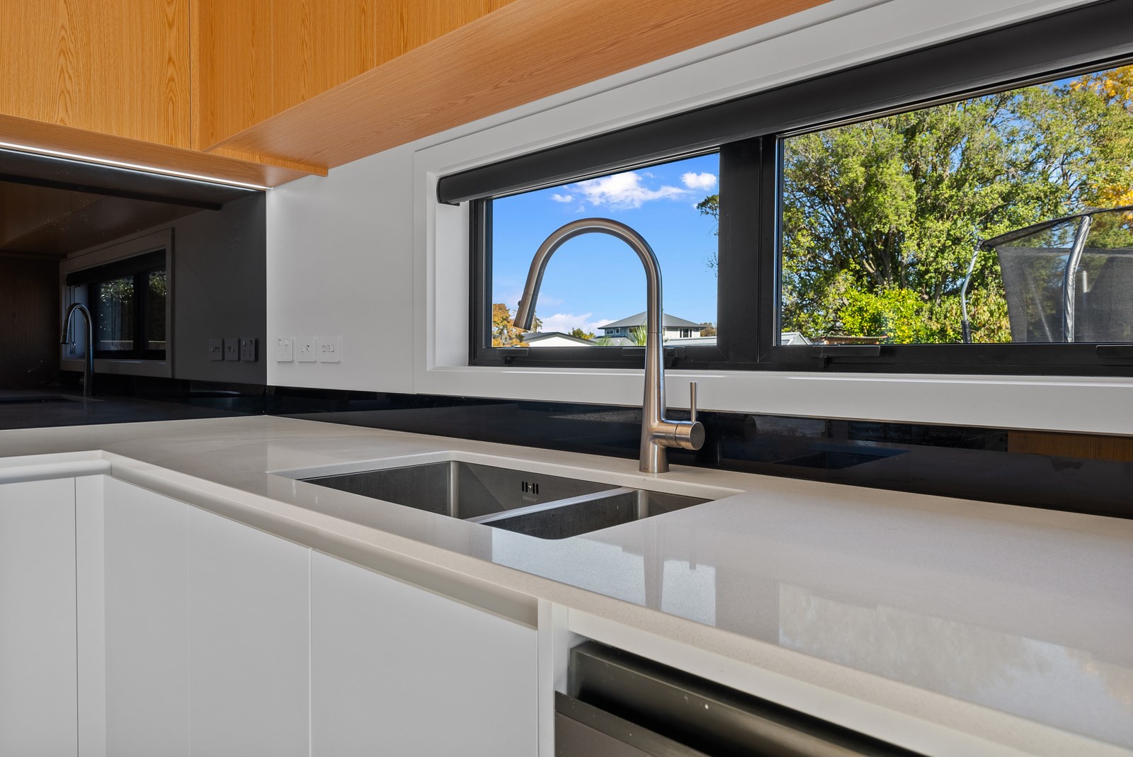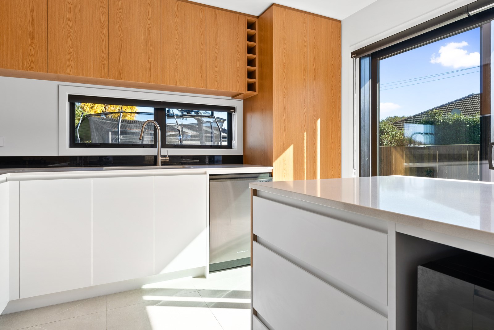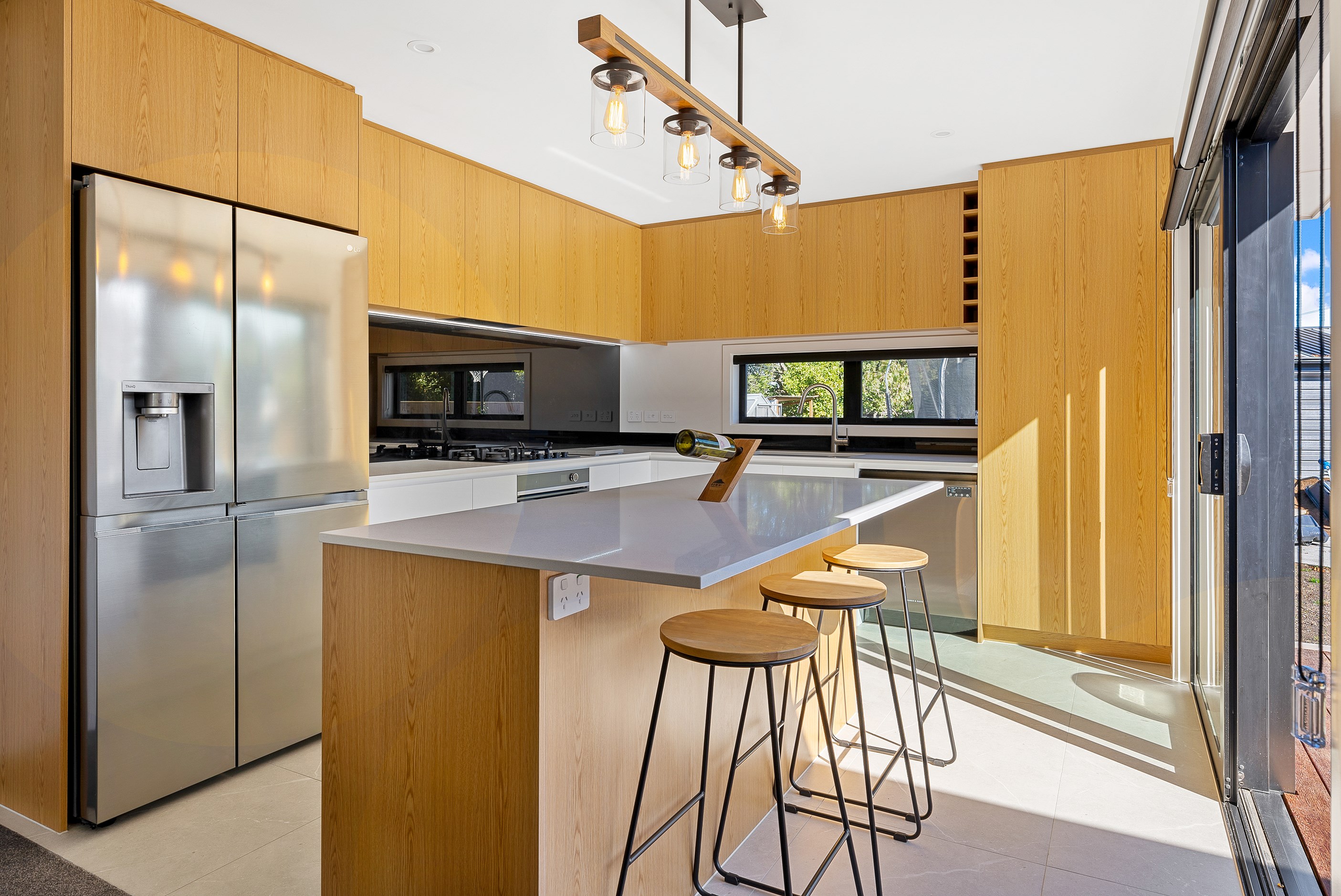 The clean lines of the kitchen joinery, bathroom fixtures and lighting create a bright, welcoming interior while on the exterior, a new dark colour scheme encompassing the roof, windows and cladding is an attractive contrast to the lighter exterior plastering and timber deck. With a large stacker slider from the open-plan kitchen/living providing connection to the north-west facing deck, and then to the garden, the house is now perfect for entertaining. We know the owners are going to enjoy it for years to come.