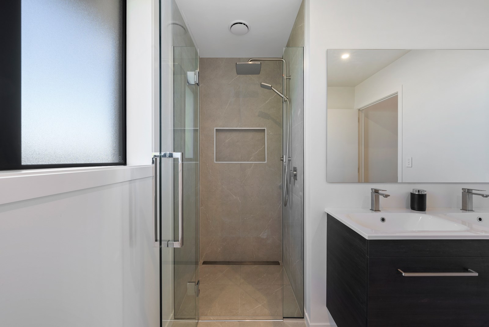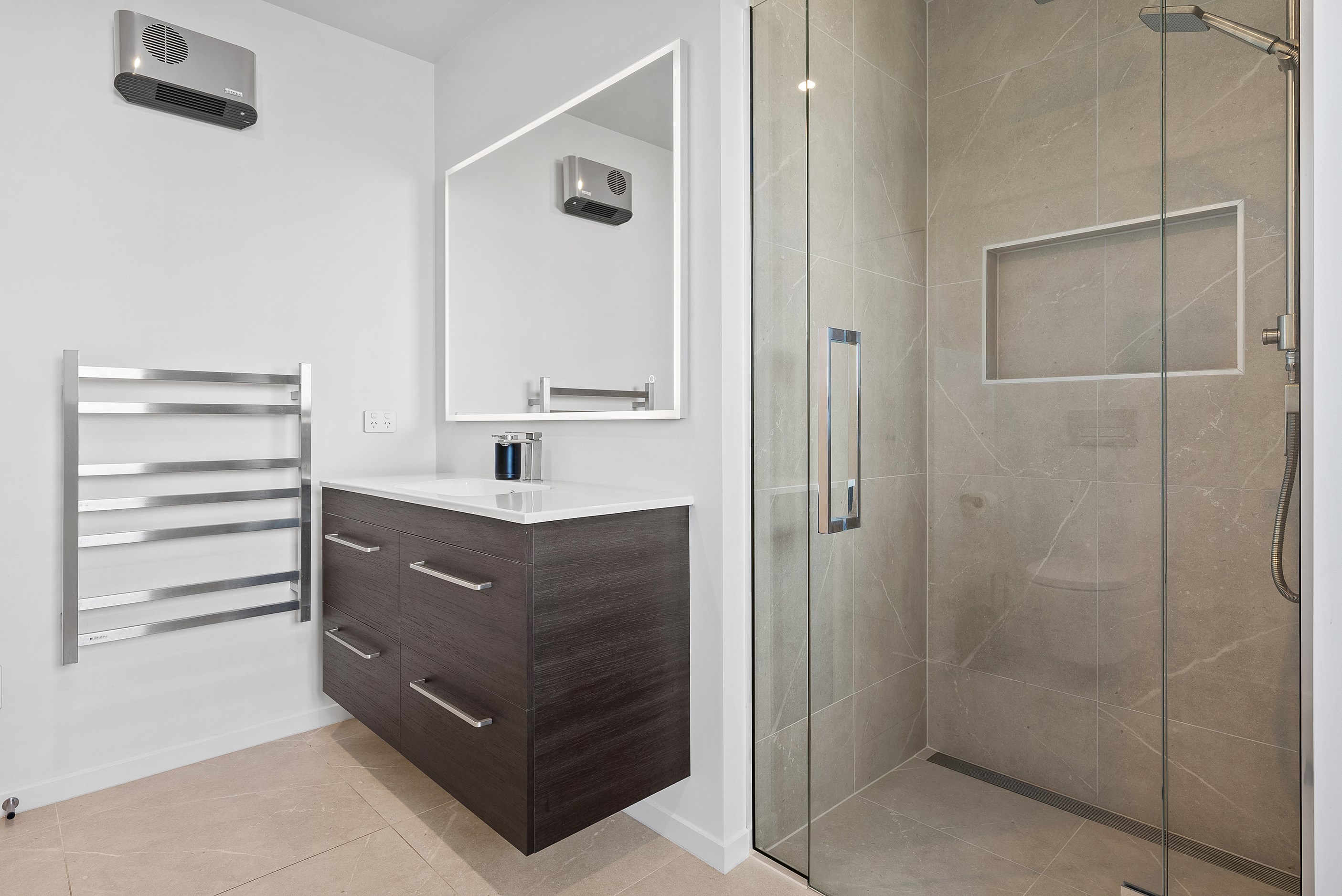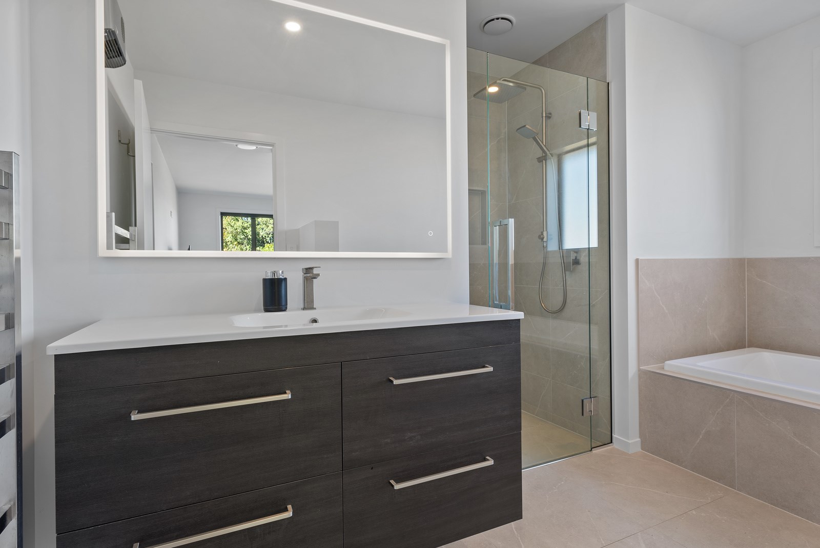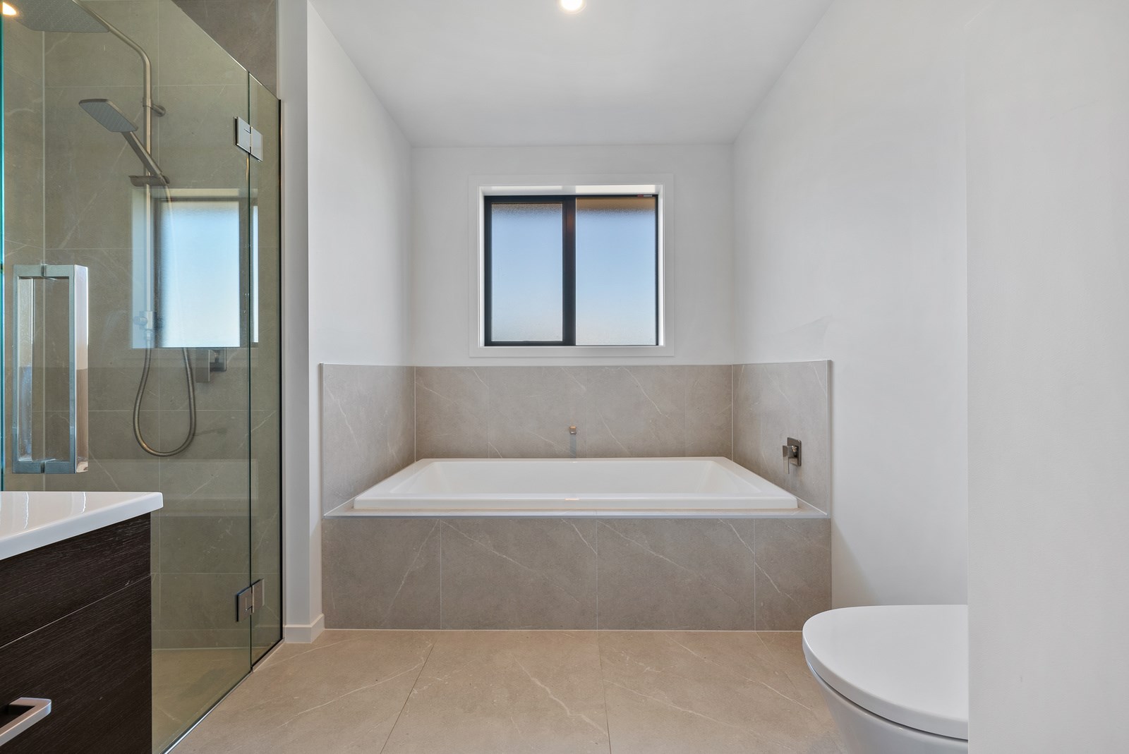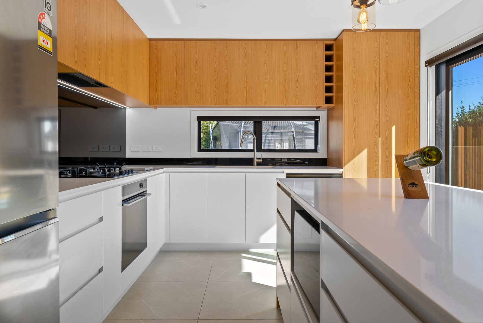 The clean lines of the kitchen joinery, bathroom fixtures and lighting create a bright, welcoming interior while on the exterior, a new dark colour scheme encompassing the roof, windows and cladding is an attractive contrast to the lighter exterior plastering and timber deck. With a large stacker slider from the open-plan kitchen/living providing connection to the north-west facing deck, and then to the garden, the house is now perfect for entertaining. We know the owners are going to enjoy it for years to come.