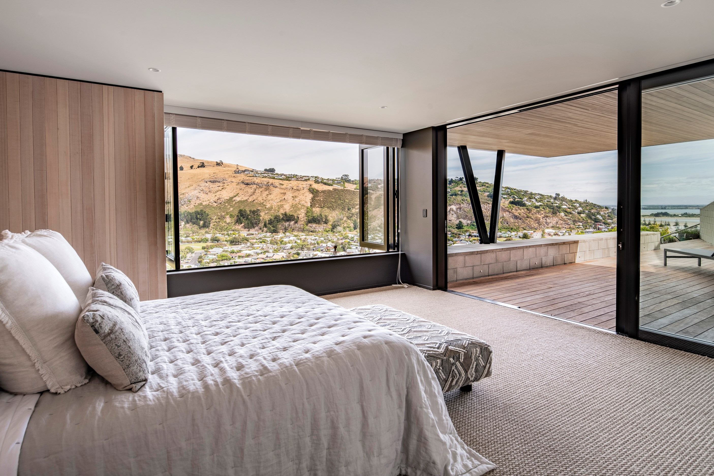 A clifftop build seems the perfect project for a company called Hillview Construction – and the results of this match made in heaven don’t disappoint. In fact, the technically complex three-bedroom beauty delights with its form and spectacular views. This daring architectural 264sqm home high above Sumner stretches along a ledge and makes the most of its grandstand position. Given the dearth of flat land, provision of relaxing outdoor space was always going to be challenging, but the MAP Architects-designed house has plenty – two decks, two terraces and an outdoor room. On a practical note, there’s also a level-entry garage.
