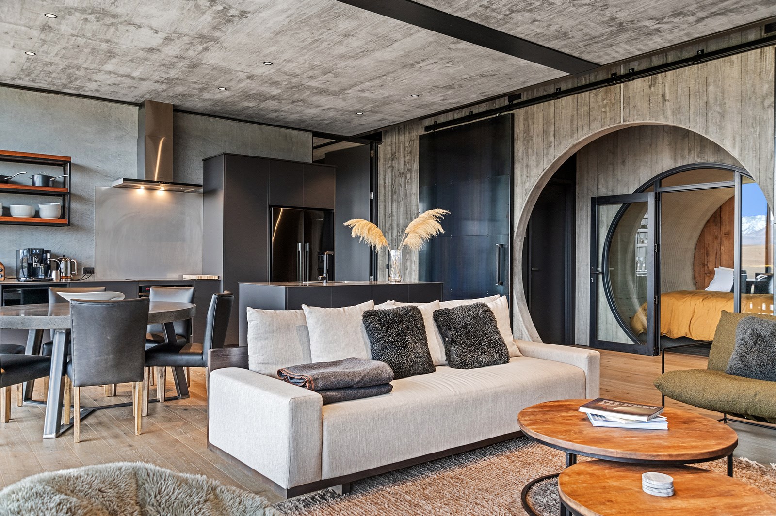 The name of this property near Lake Tekapo is the ‘Bunker House’, but that hardly does it justice. Yes, it’s partly underground and, yes, it has hallmarks of a bunker, but the moniker doesn’t hint at the laidback luxury and the extent of the pared-back style within. The owner wanted to create something that would last for centuries, blend into the landscape and provide a sense of splendid isolation. Wilson Building Timaru expertly ticked off all three, and produced a lot more besides. It’s extraordinary.