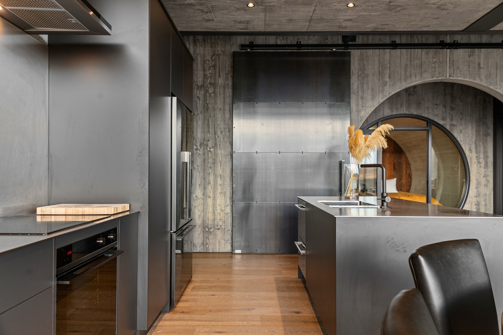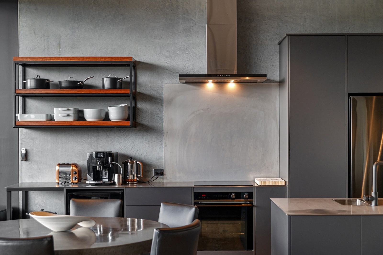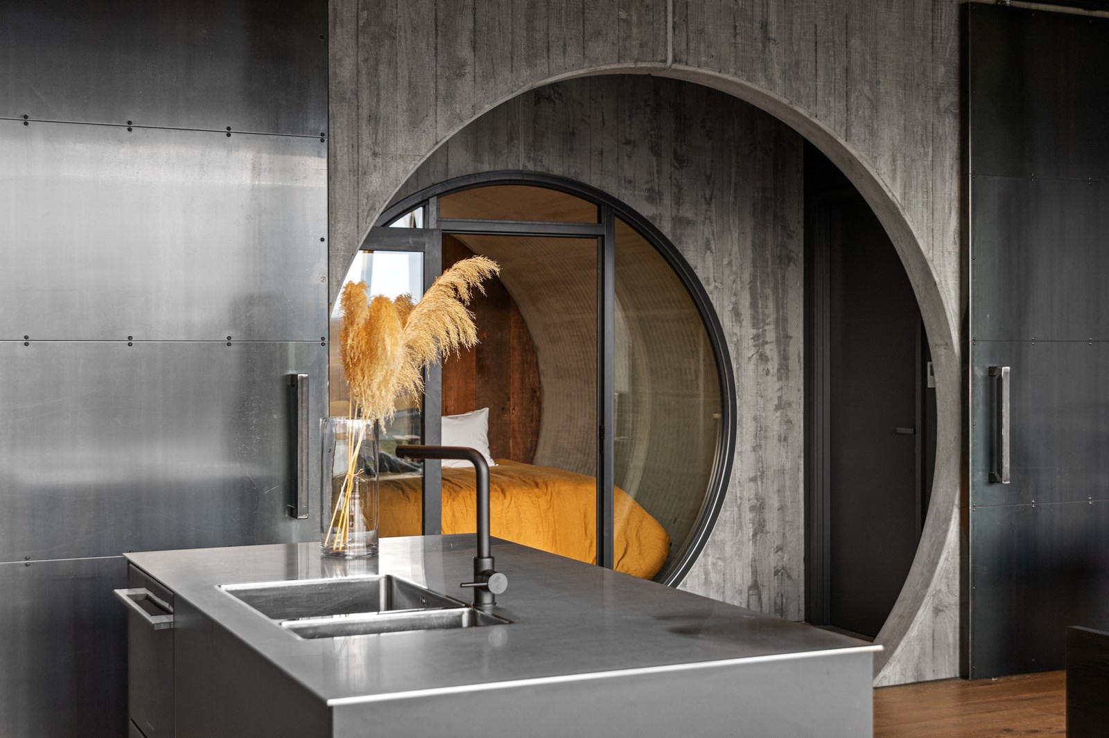 There’s only one large, glazed facade in the 200sqm two-bedroom house cocooned in the earth. It ushers in light and warmth, but faces away from Mt John Observatory to reduce light impact. The Mackenzie region is, after all, part of an internationally recognised dark sky reserve that draws star-gazers from all over the world. The glass-covered frontage lets the owner feel part of the stunning landscape and enjoy the star-studded night sky without interfering with it. Concrete panels make up the tussock-covered rectangle and are exposed in the interior. The palette echoes the rugged environs with concrete, steel and recycled timber – although the design still manages to be cutting-edge contemporary. The two-ensuite home is warm in winter and cool in summer. On the drawing board is a tunnel to an underground plane hangar. This unique home truly stands out for its clever connection with the natural environment.