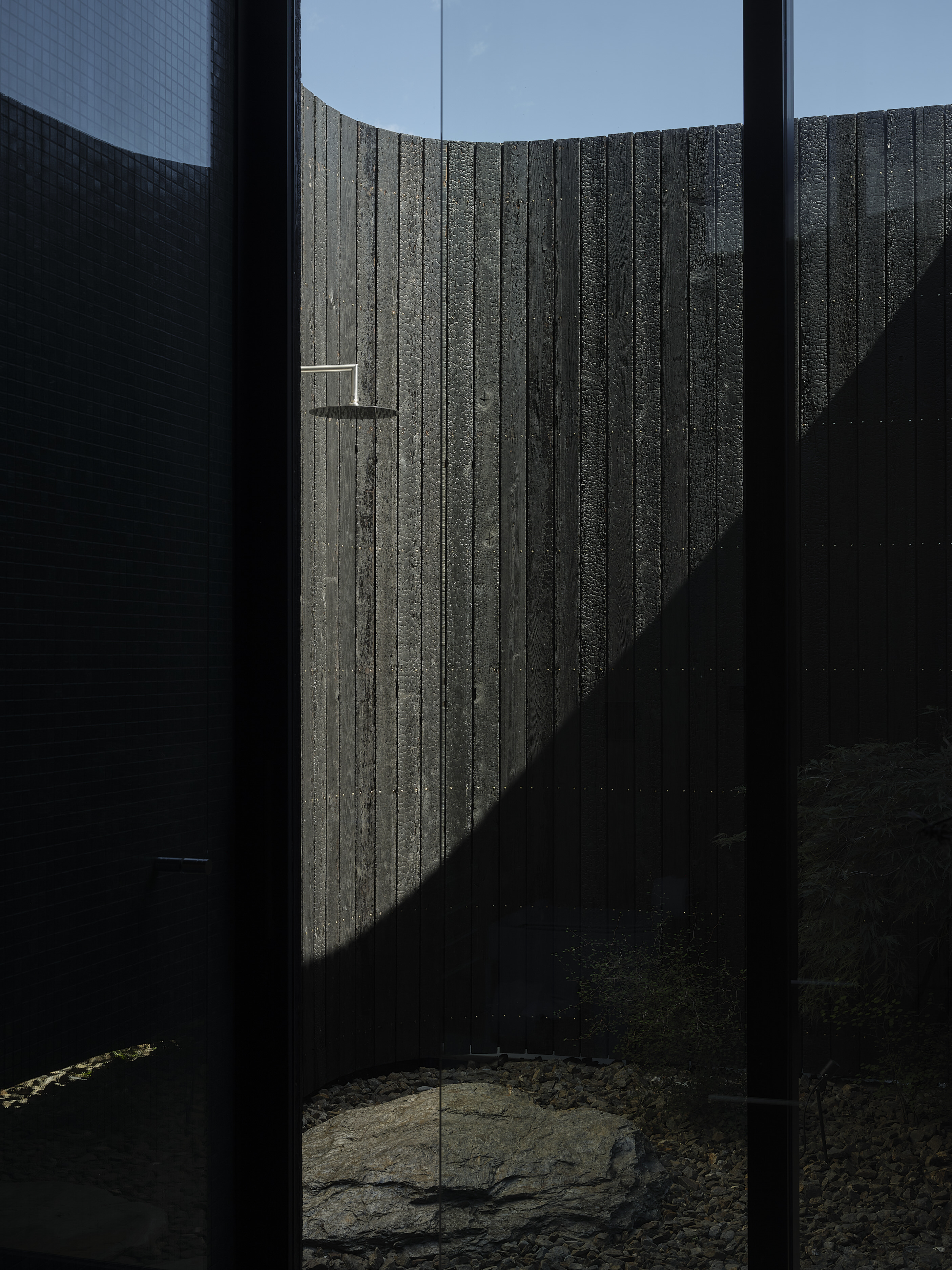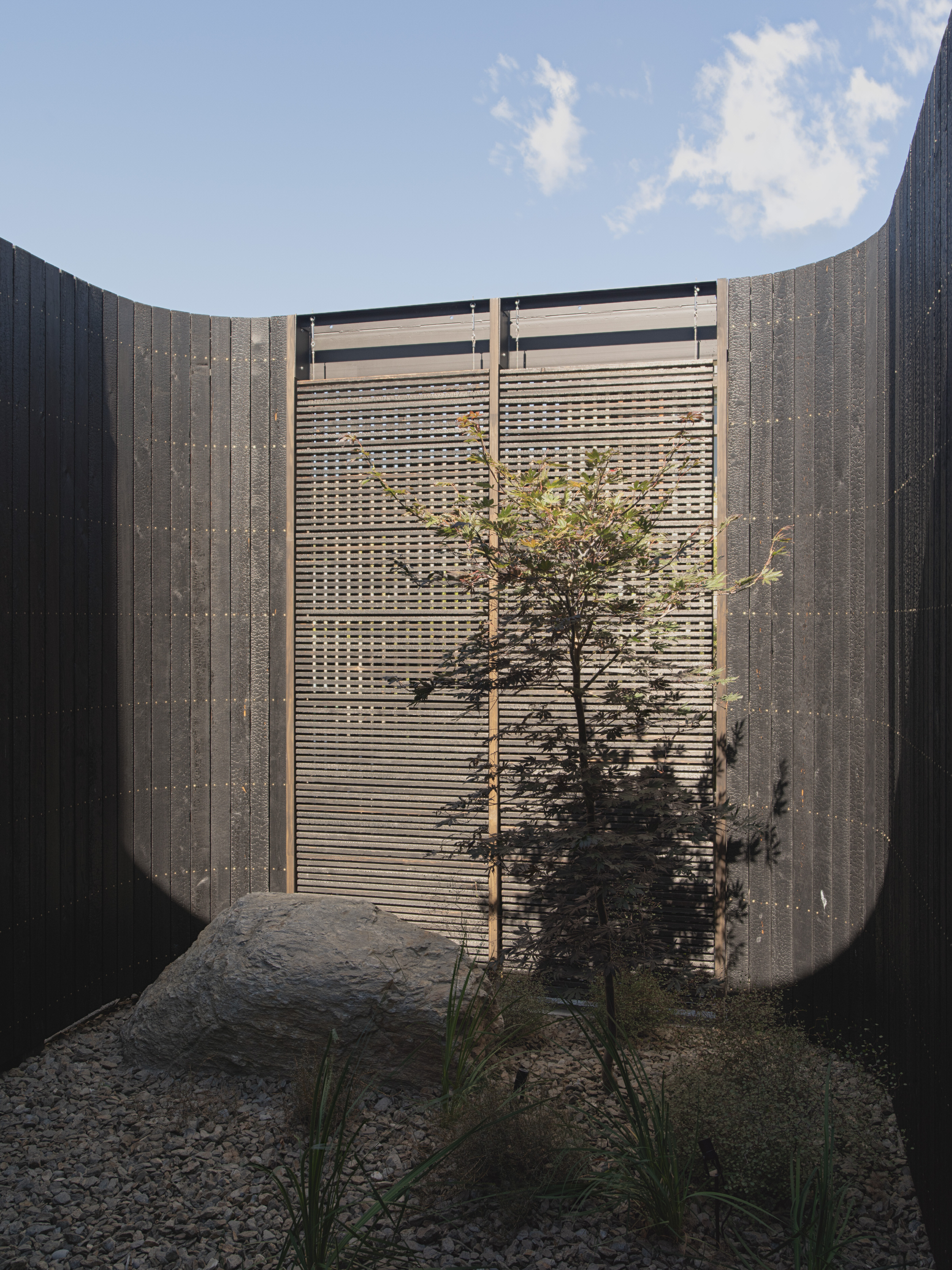 Inside, the three-bedroom retreat presents as both formal and relaxed, and has no fewer than four garden courtyards, plus a terrace and arrival court. Flow doesn’t come close to describing the way the interior transitions to the outdoor zones. A mudroom leads to a light-filled interior with framed views of the mountains. Stone steps link the sequence of interconnected gardens to a spacious central courtyard at the heart of the house. The relationship between the components of the house and the sanctuary as a whole is emblematic of the collaboration between Level Construction and architects Roberts Gray. Part of the brief was also a raft of environmental and sustainable features. These include double- skin construction, durable Japanese charred cedar, thermally broken joinery and solar panels.