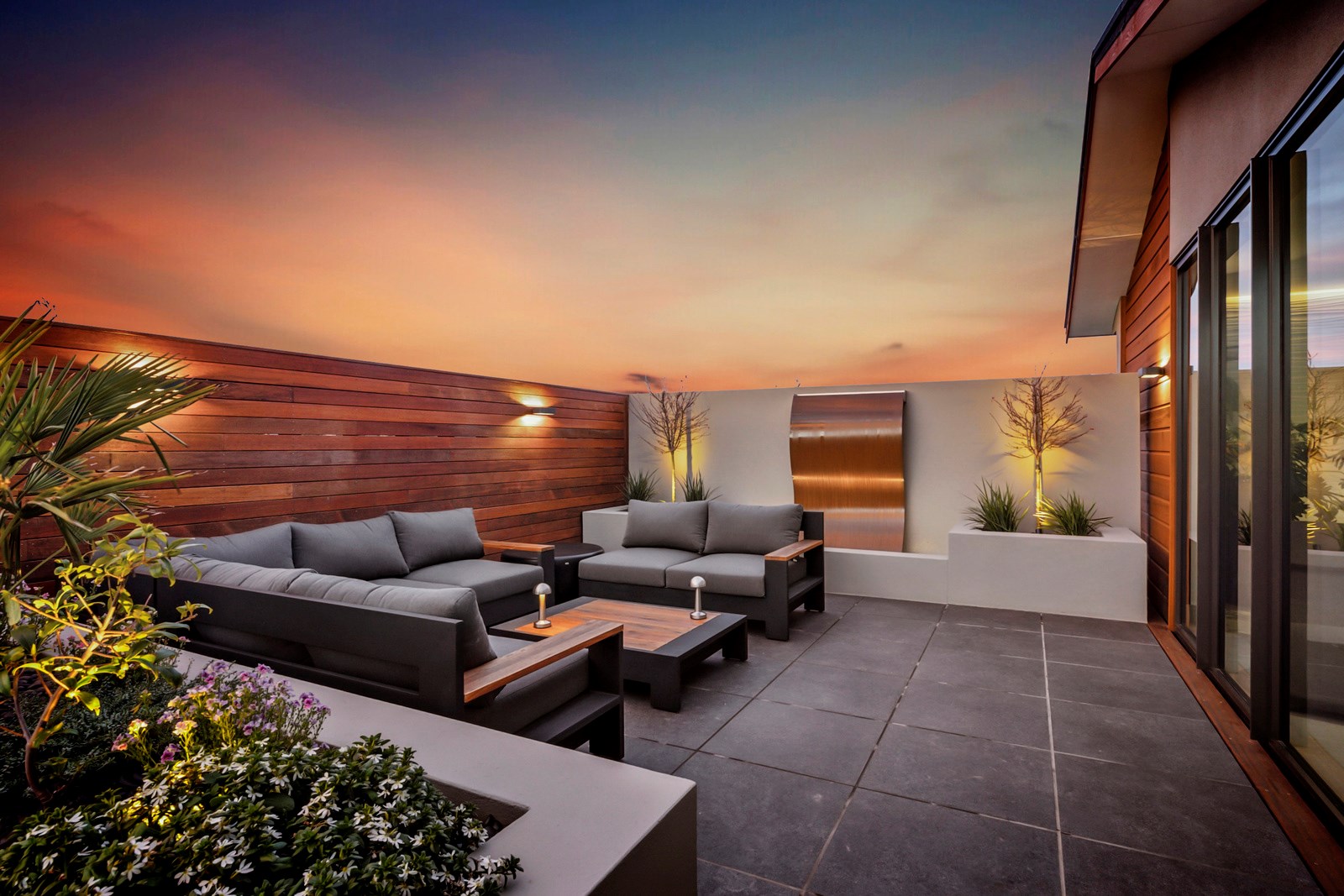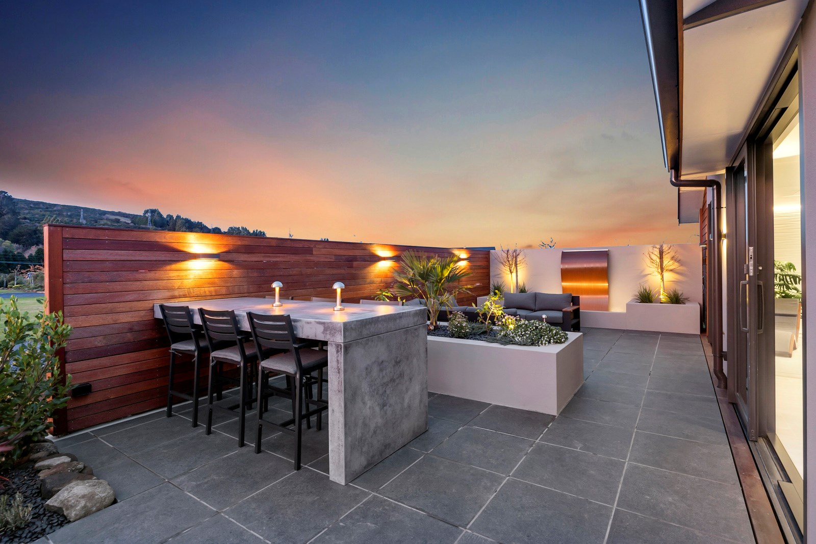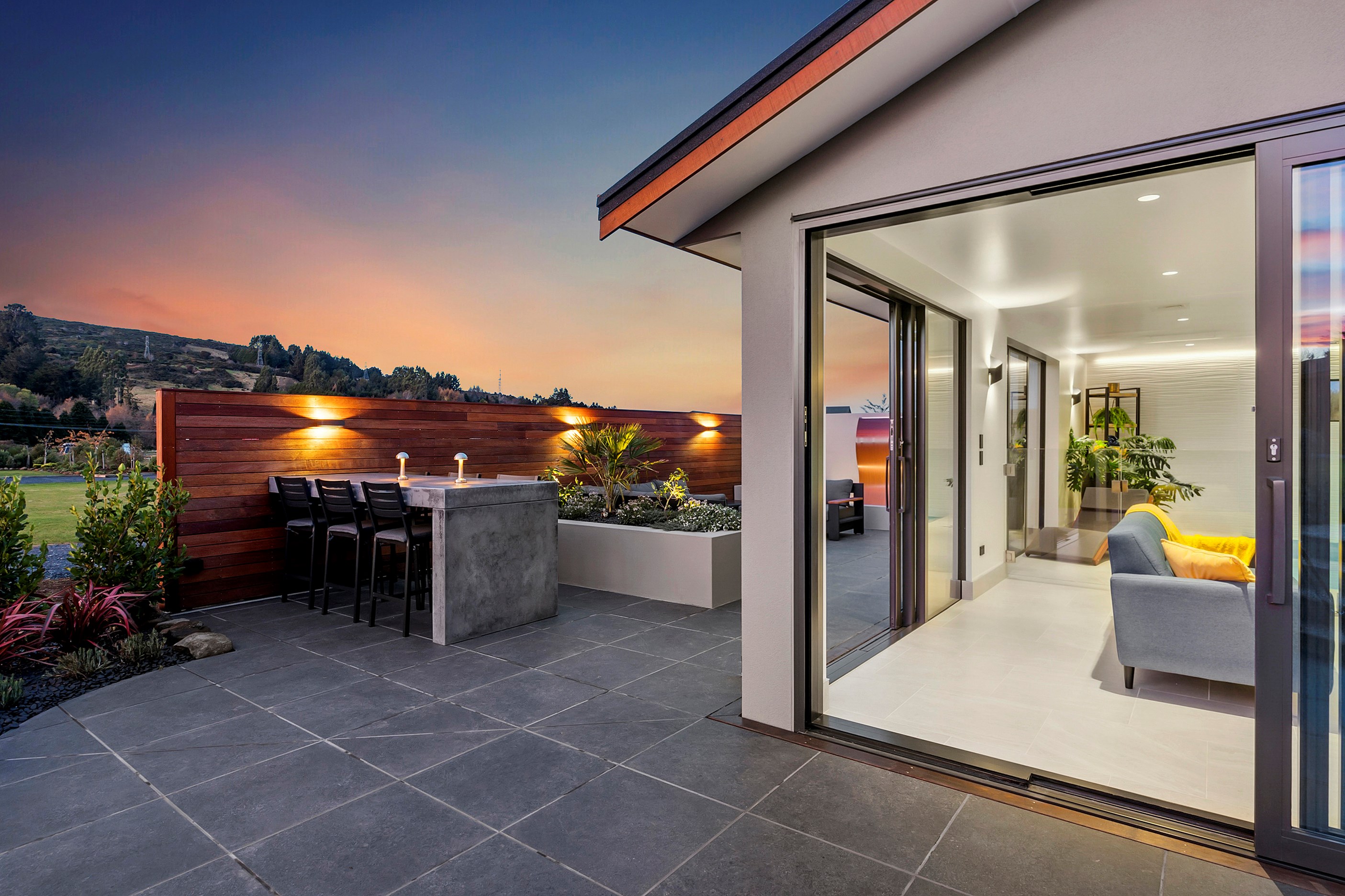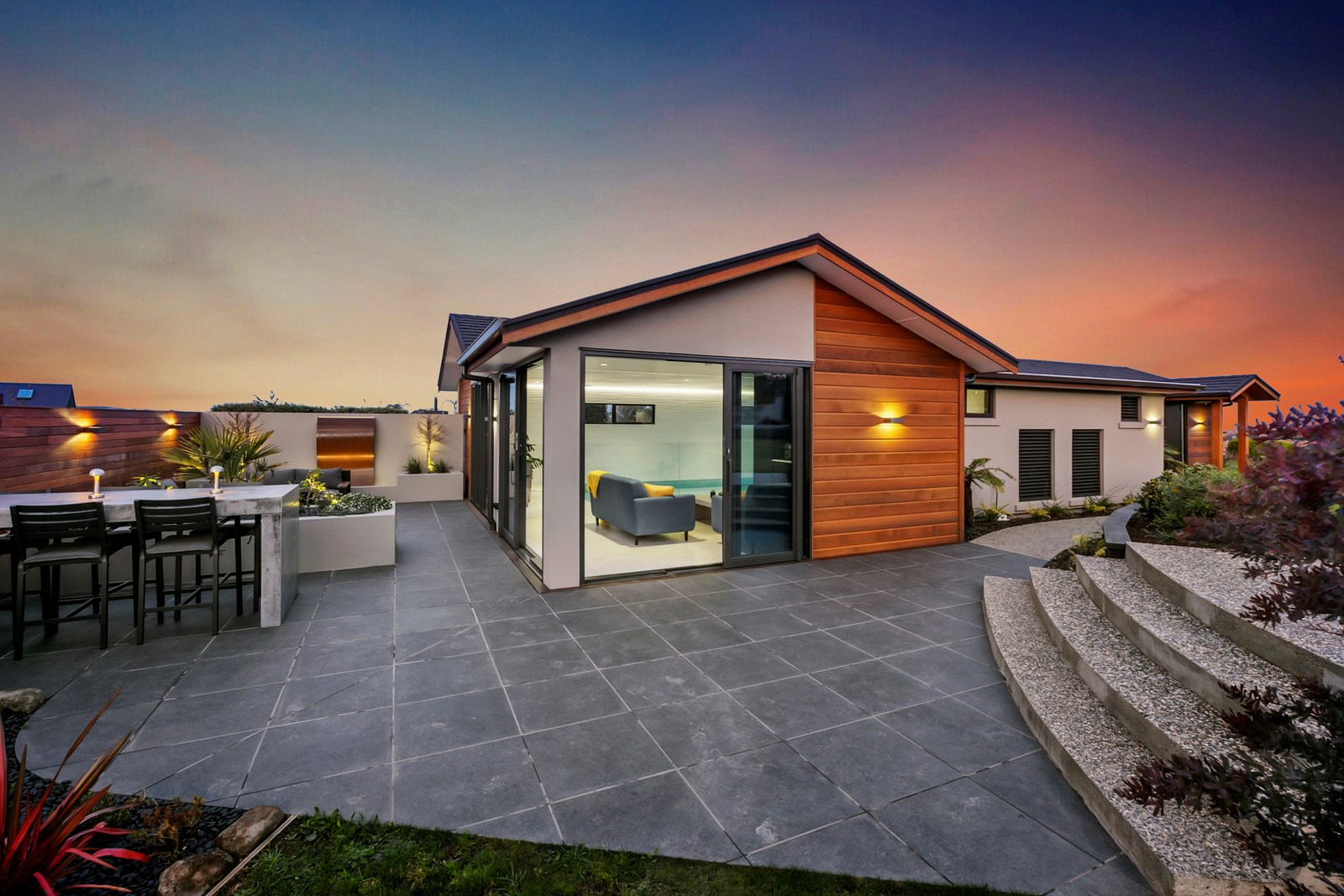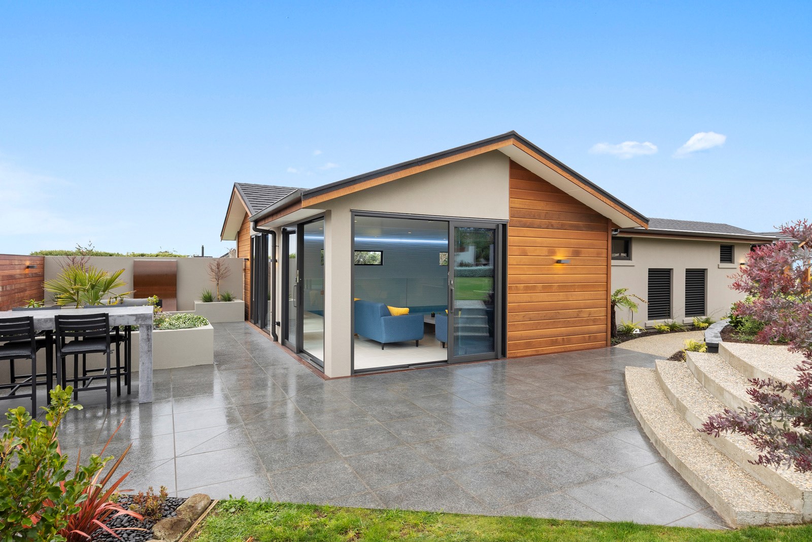 Special doesn’t come close to describing this project. Yes, it’s a pool house, but it does much more than housing the 18m-long in-ground heated swimming pool. The 163sqm building, clad in lightweight concrete panels and horizontal cedar, is like a private health club on the same property as the owners’ house. Designed to match the home’s exterior, the pool house also has a lounge that opens onto a sheltered, private, landscaped terrace. In the relaxing space next to the pool, you’ll find a TV, sound bar and speaker that can be operated by smartphone. If views of the cool blue pool are not enough, feature lighting in neon shades can change the ambience instantly. The building also has a changing room, tiled shower, toilet and plant room.