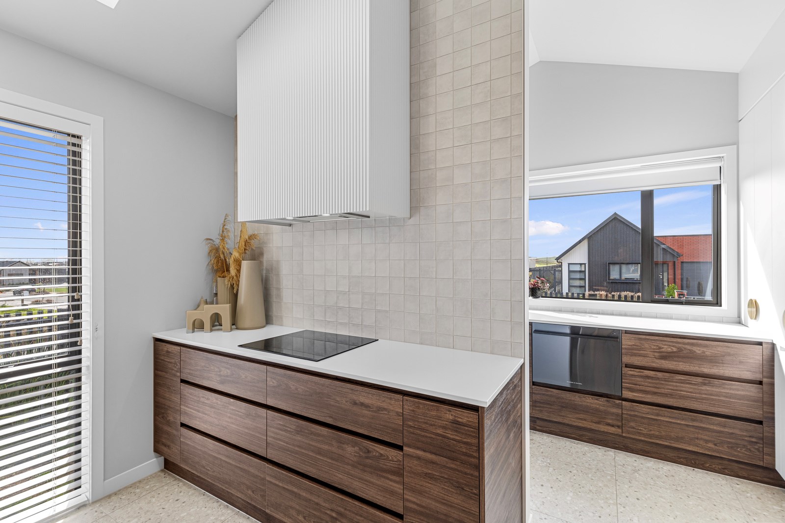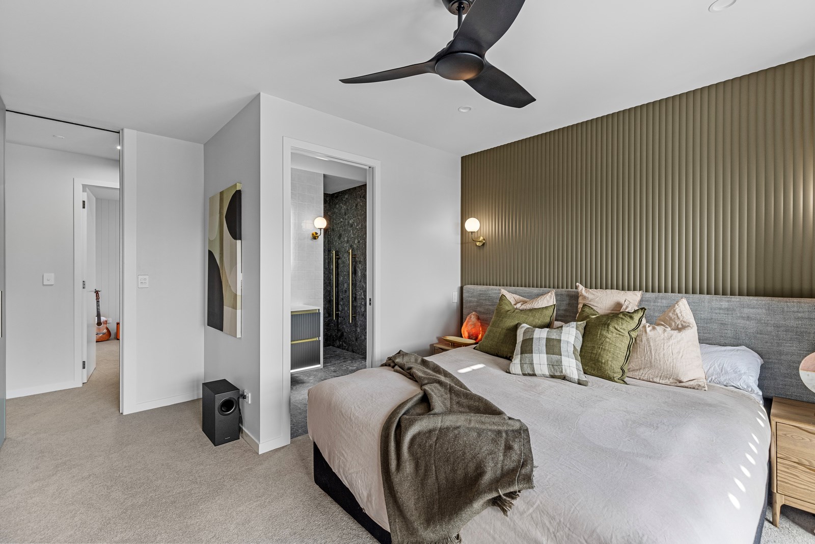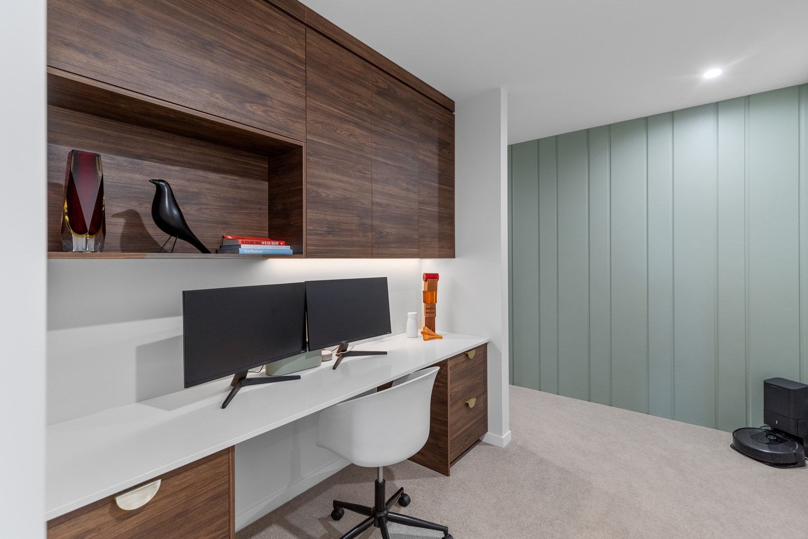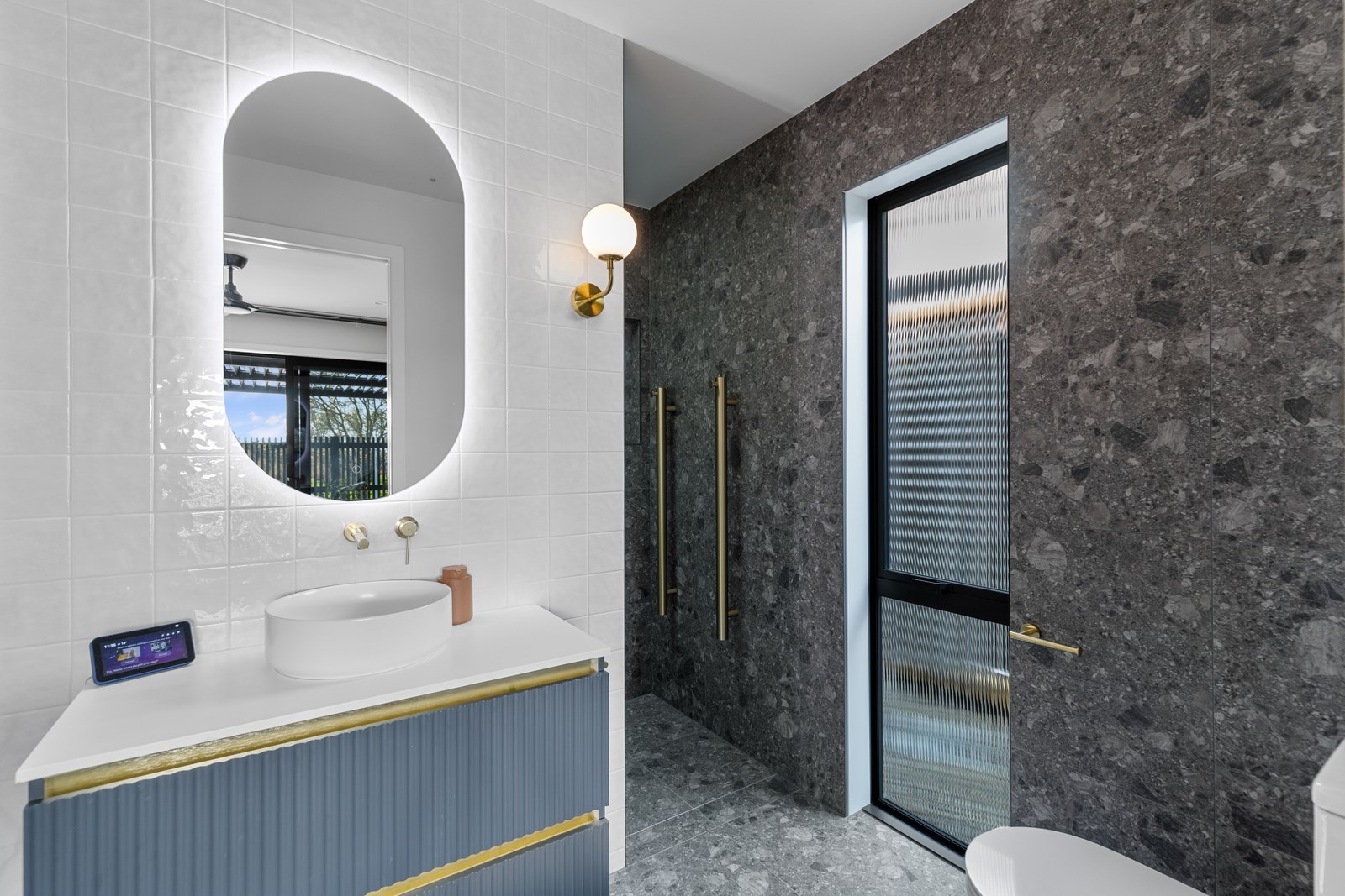 From intricately designing the smart-home interface to seamlessly integrating technology into every aspect of the build, the team persevered, turning obstacles into opportunities for innovation. Interiors are pretty smart, too. Painted panel feature walls in most rooms break the otherwise white aesthetic with luxurious tiling and dark timber joinery in the kitchen that also boasts a hidden scullery. A two-way fire separates two sitting rooms which both open to outdoor living areas, and a barn-style door from the living area closes off the bedroom area for complete privacy. Street appeal is abundant with neutral brick and dark vertical timber cladding setting this 230sqm home into its corner site in the heart of Hamilton’s vibrant community.