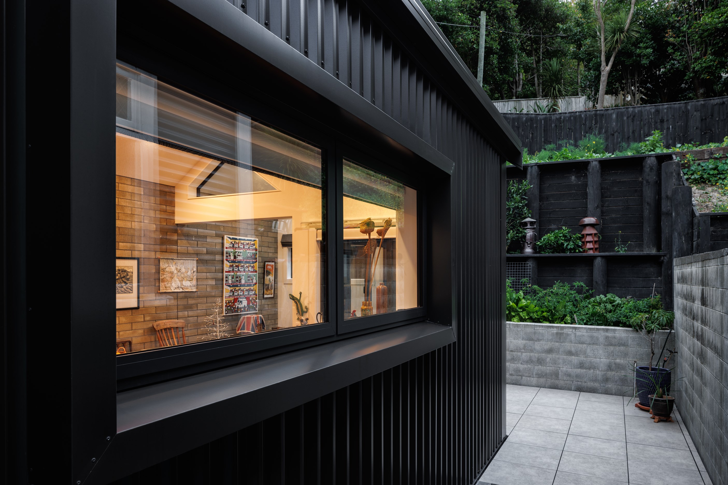 This has been handled with great skill. Towards the street frontage are a roomy main-bedroom suite and a bathroom. At the private back portion of the house are the kitchen, dining and living space as well as a conservatory. Doors open straight onto a private patio with terraced garden. Off the main entrance at the side of the house is a hallway off which you’ll find another good-sized bedroom. The main bathroom is tiled and boasts a standalone bath. Concrete-slab underfloor heating ensures the home is cosy. It’s just one of the future-proofing measures employed. This is also a house that manages to cleverly balance function with a style that’s in keeping with Aro Valley’s distinctive charm and character.