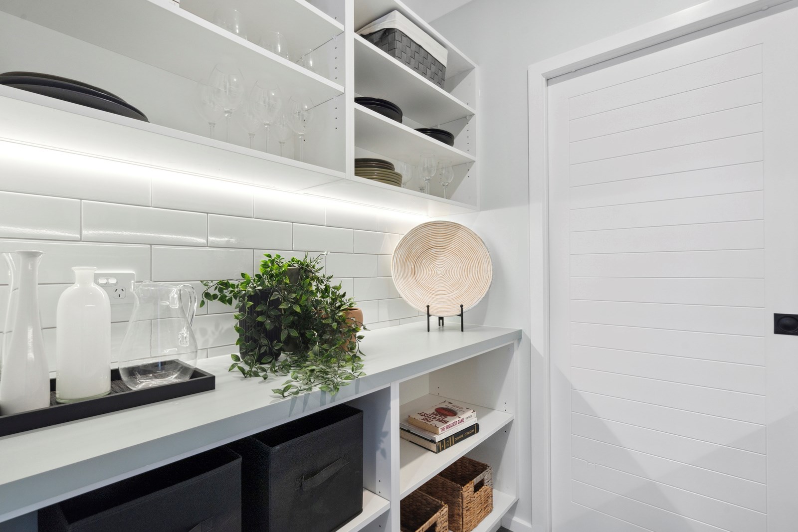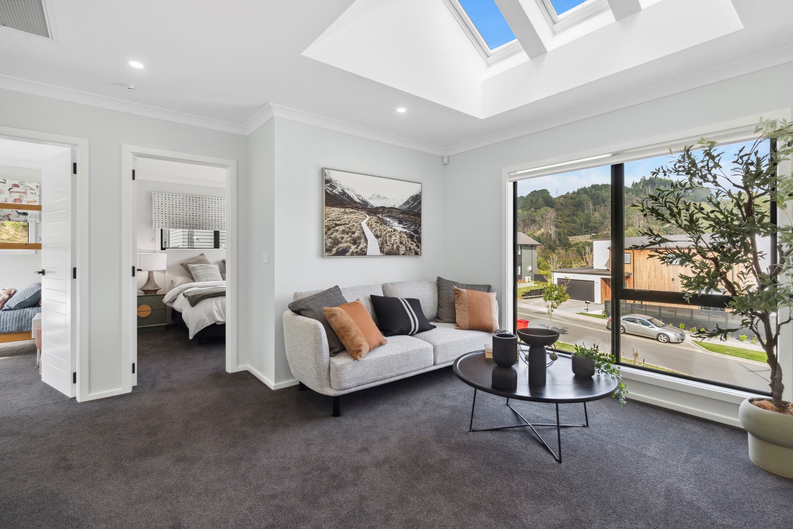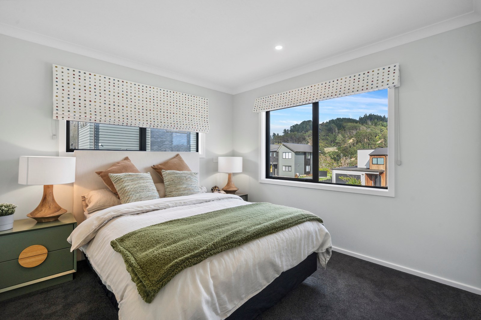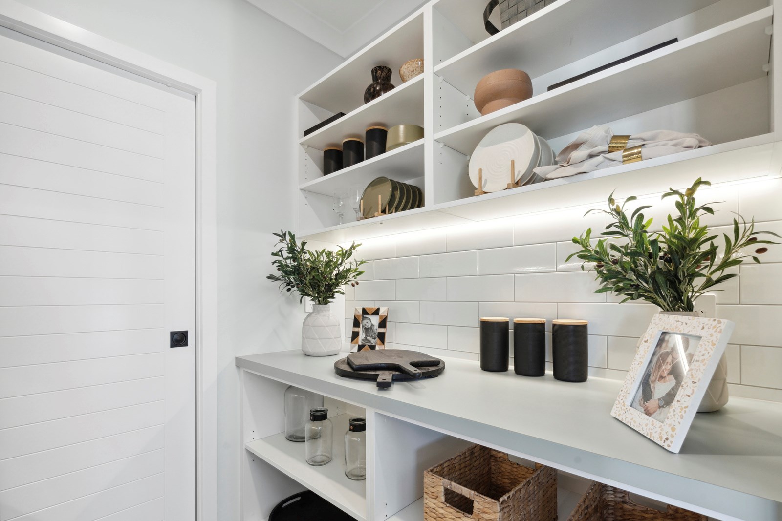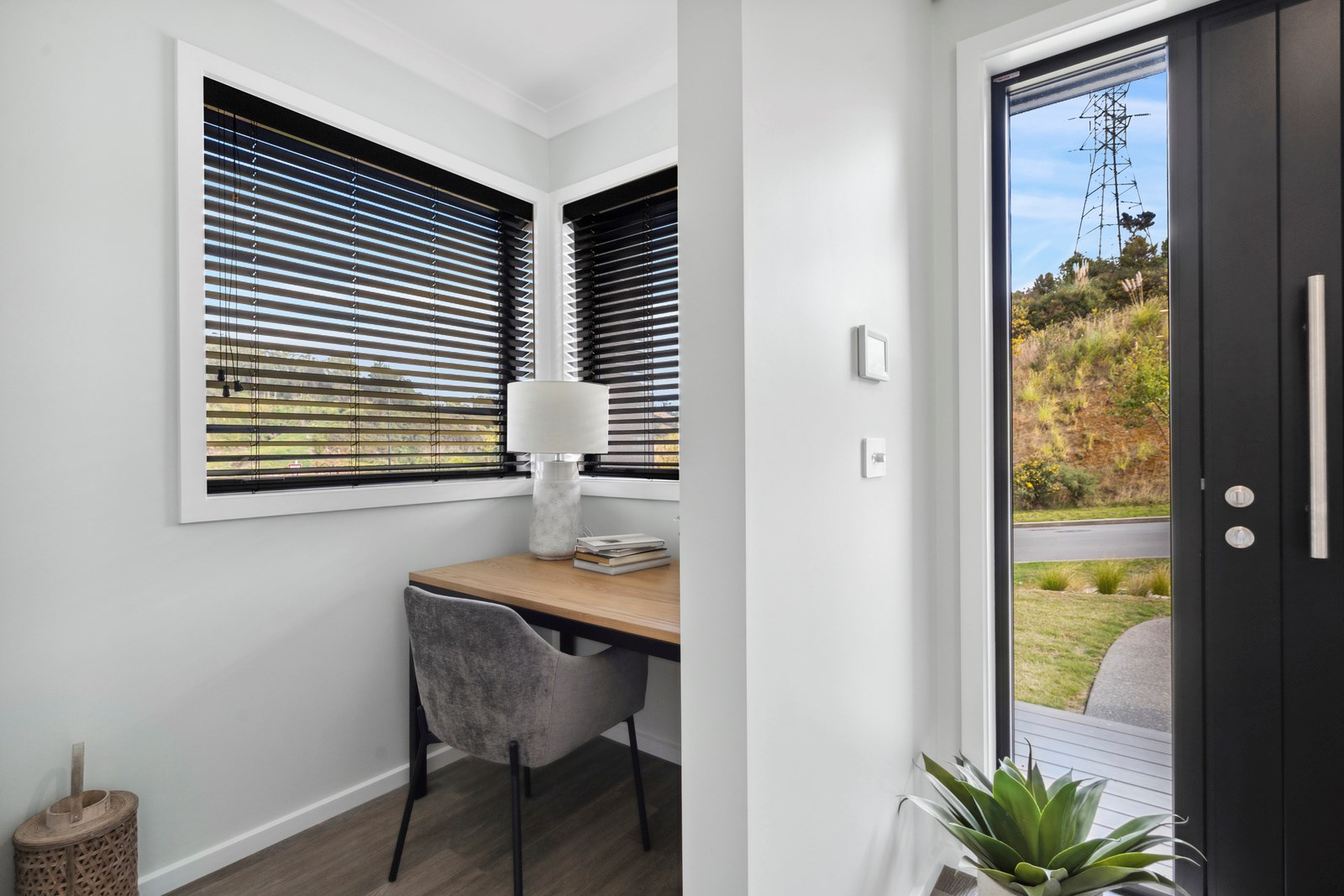 The generous spaces in this two-storey Whitby home cleverly flow into each other without the need for hallways. Groceries go from the car in the double garage straight into the walk-through pantry – a design feature that makes the occupants wonder how they ever lived without it. Spacious living and dining areas spread out from the kitchen’s large island bench. The ample use of glass sliding doors ensures plenty of indoor / outdoor flow to the timber decks on both sides of the house located to catch either morning or afternoon sun.