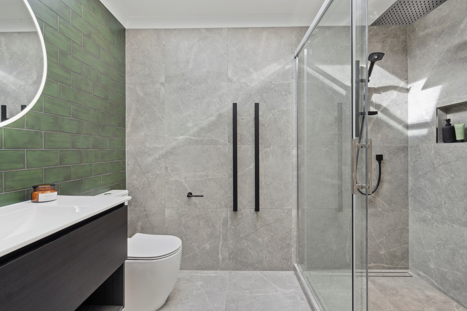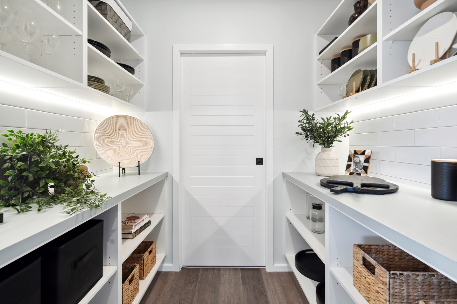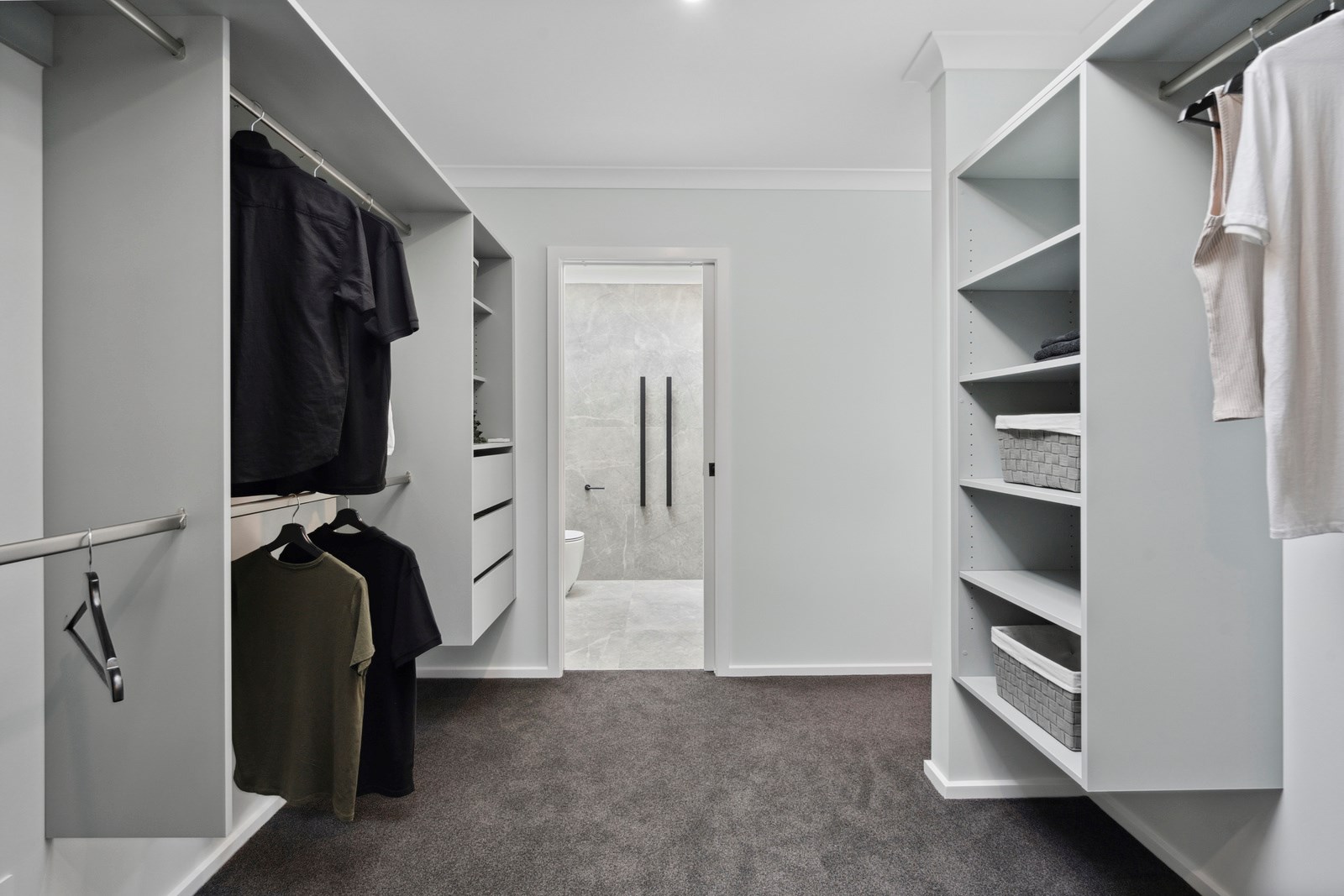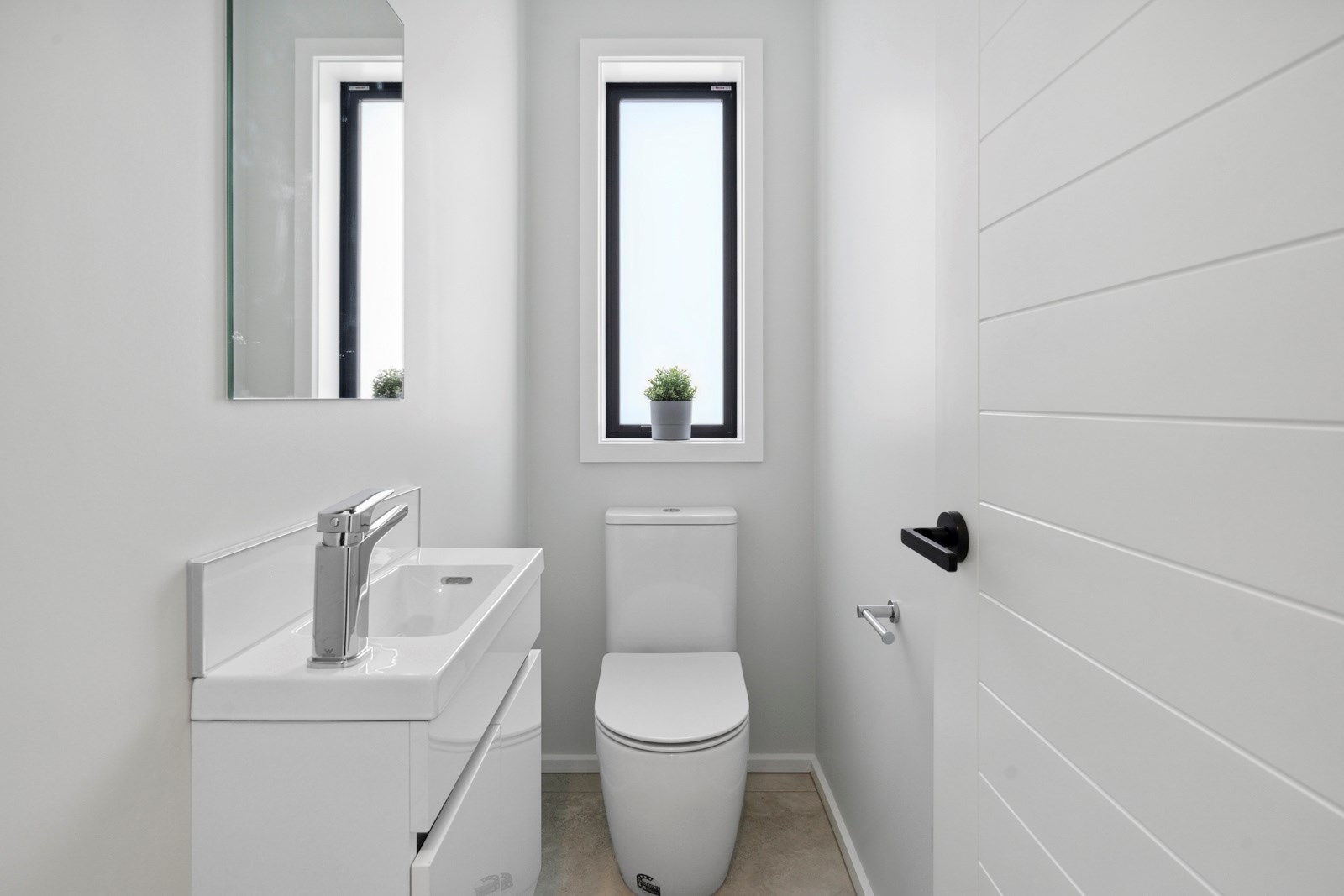 The generous spaces in this two-storey Whitby home cleverly flow into each other without the need for hallways. Groceries go from the car in the double garage straight into the walk-through pantry – a design feature that makes the occupants wonder how they ever lived without it. Spacious living and dining areas spread out from the kitchen’s large island bench. The ample use of glass sliding doors ensures plenty of indoor / outdoor flow to the timber decks on both sides of the house located to catch either morning or afternoon sun.
