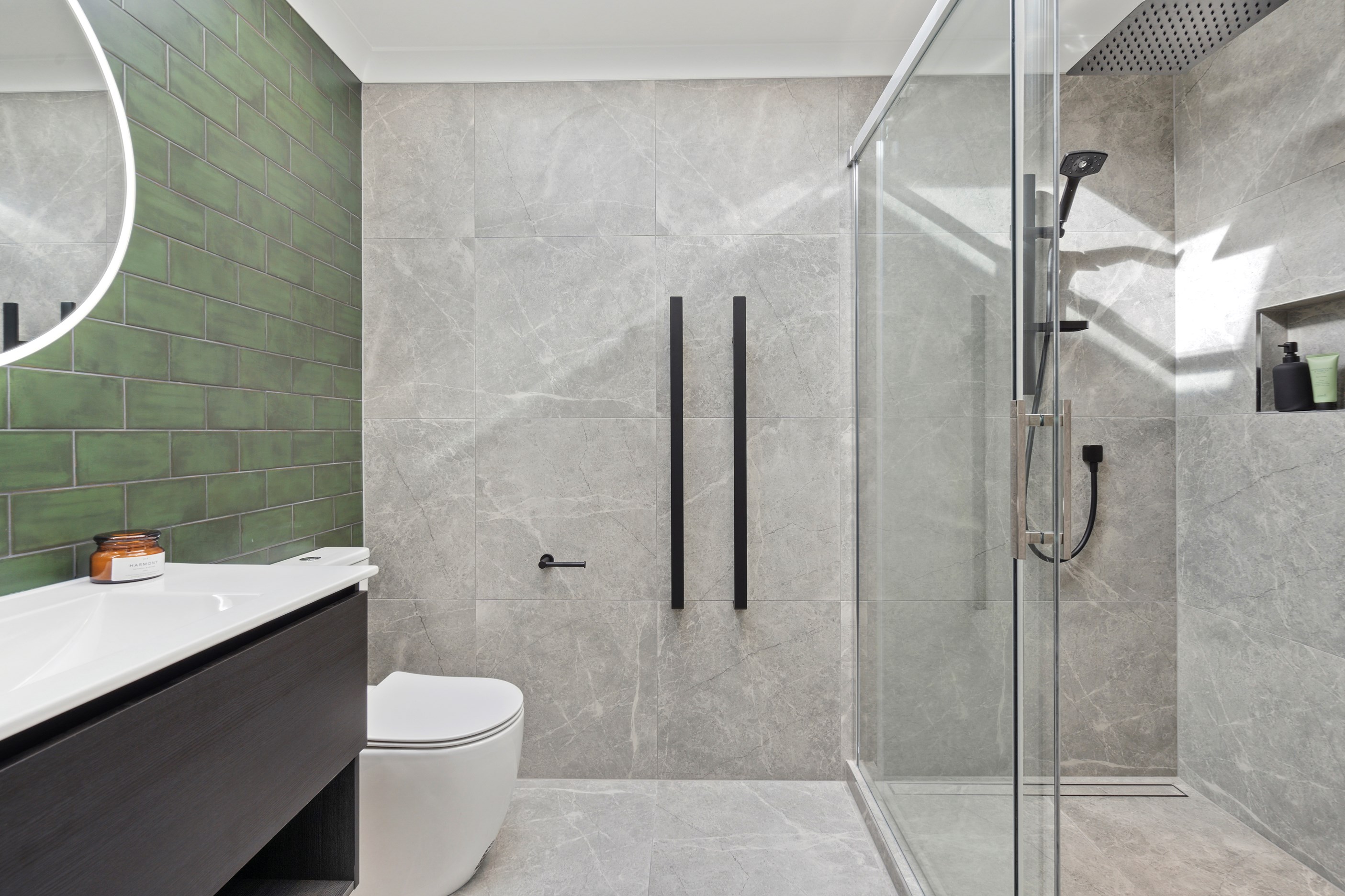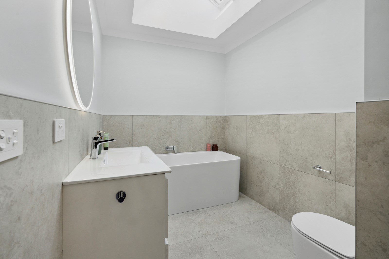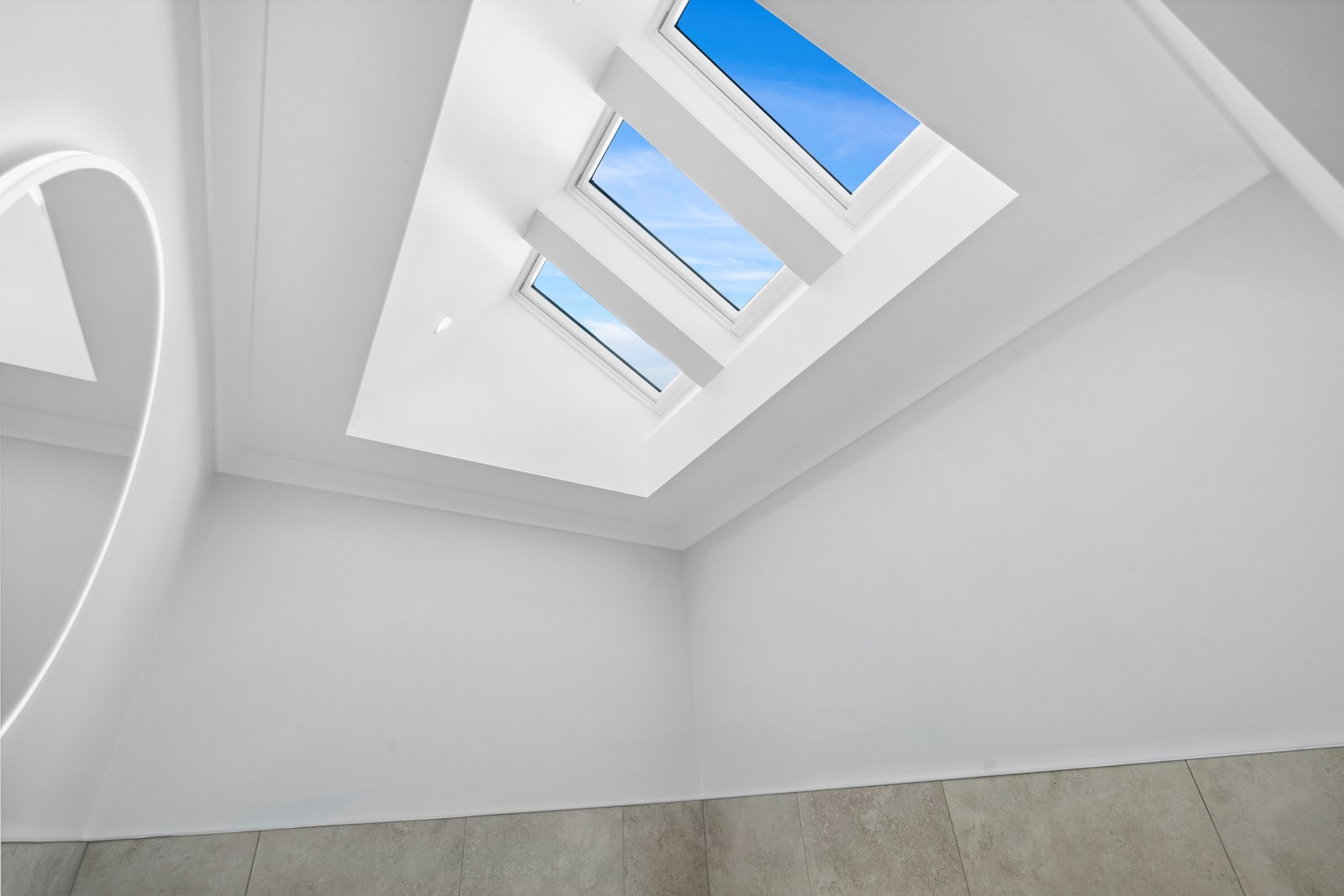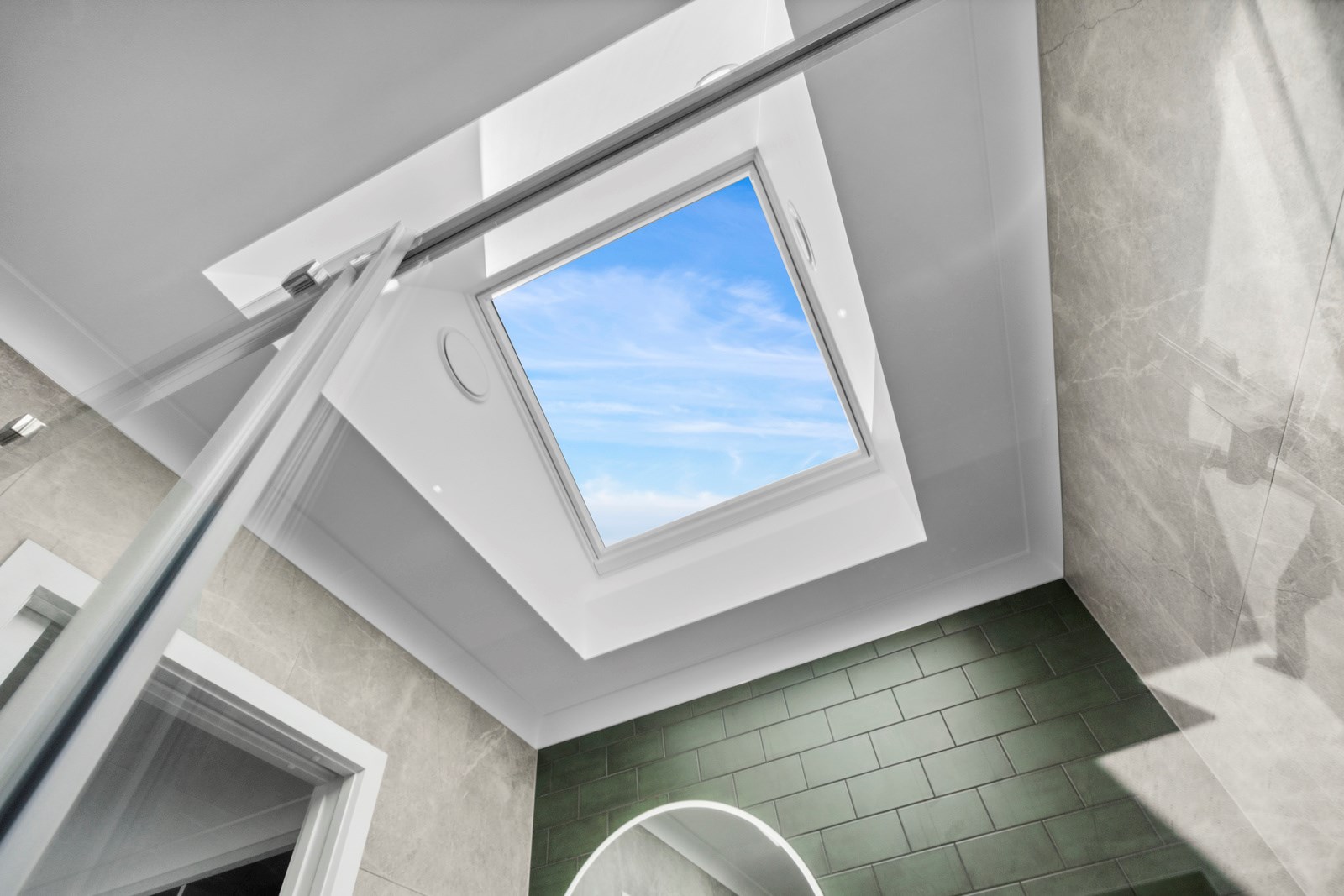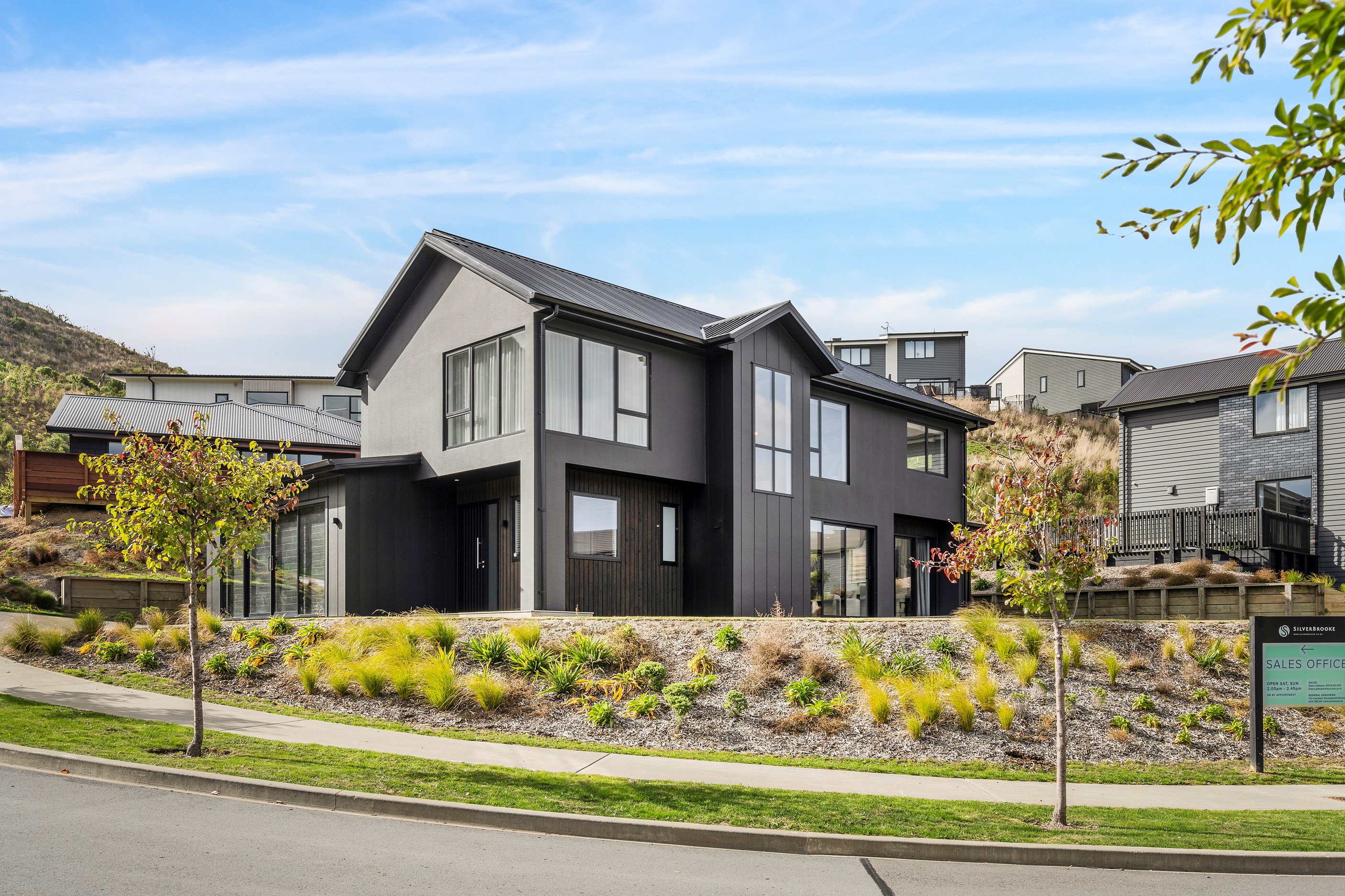 Light streaming down the glass-balustraded staircase leads you up to a second living area – a landing pad for three double bedrooms, including main with, you guessed it, a luxuriously sized walk-in wardrobe and ensuite. While not short of windows, glorious amounts of light flood the second level thanks to an impressive set of skylights – eight in total, four of which are operable. The exterior of the home is clad in stylish Iron coloured Rockcote, along with vertical Dark Brown timber weatherboard and vertical James Hardie Stria in Blackjack – a modern shade of deep, dark grey. This works to enhance the sense of grandeur of the house which stands proud on its corner site, graciously defying its 212sqm size.