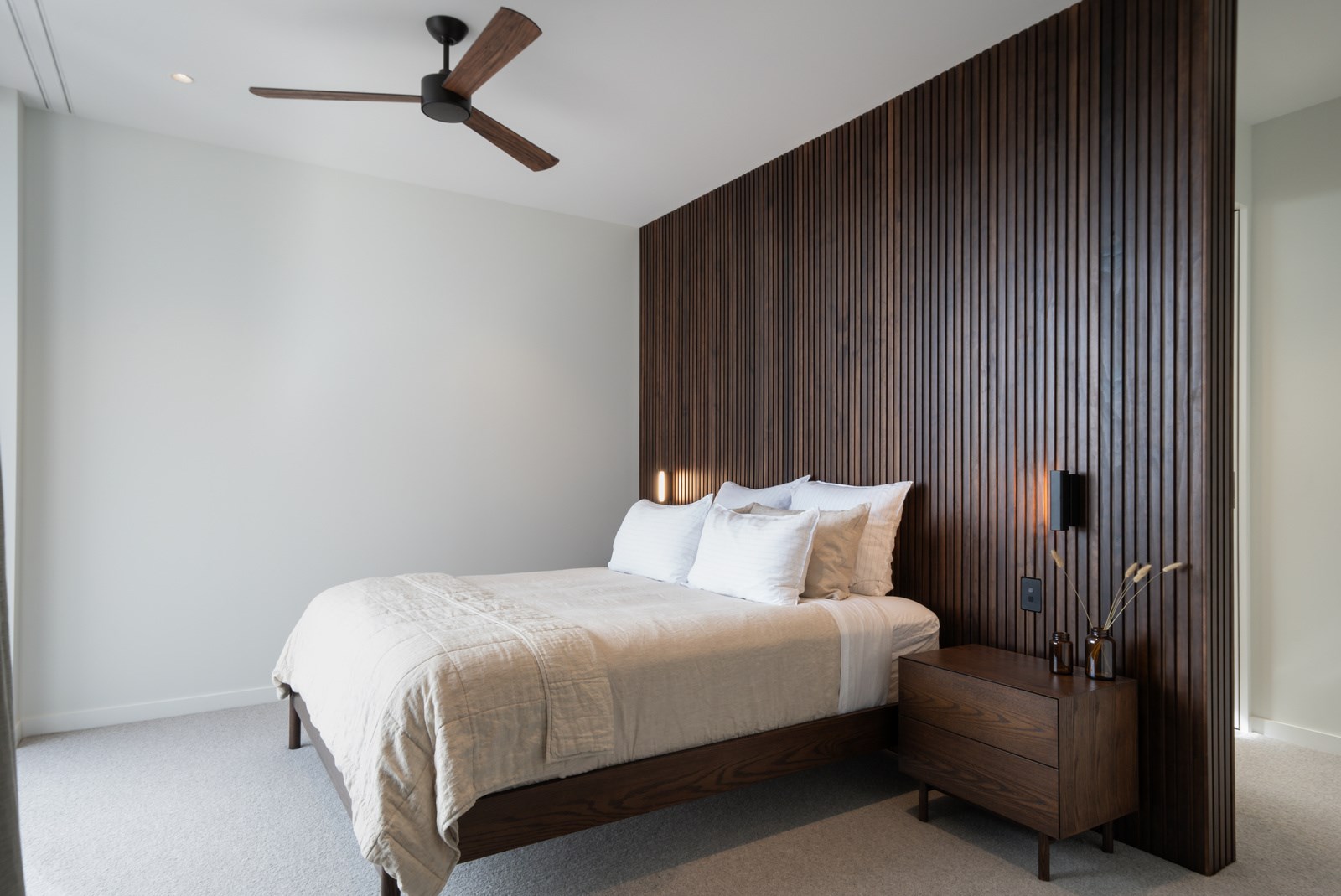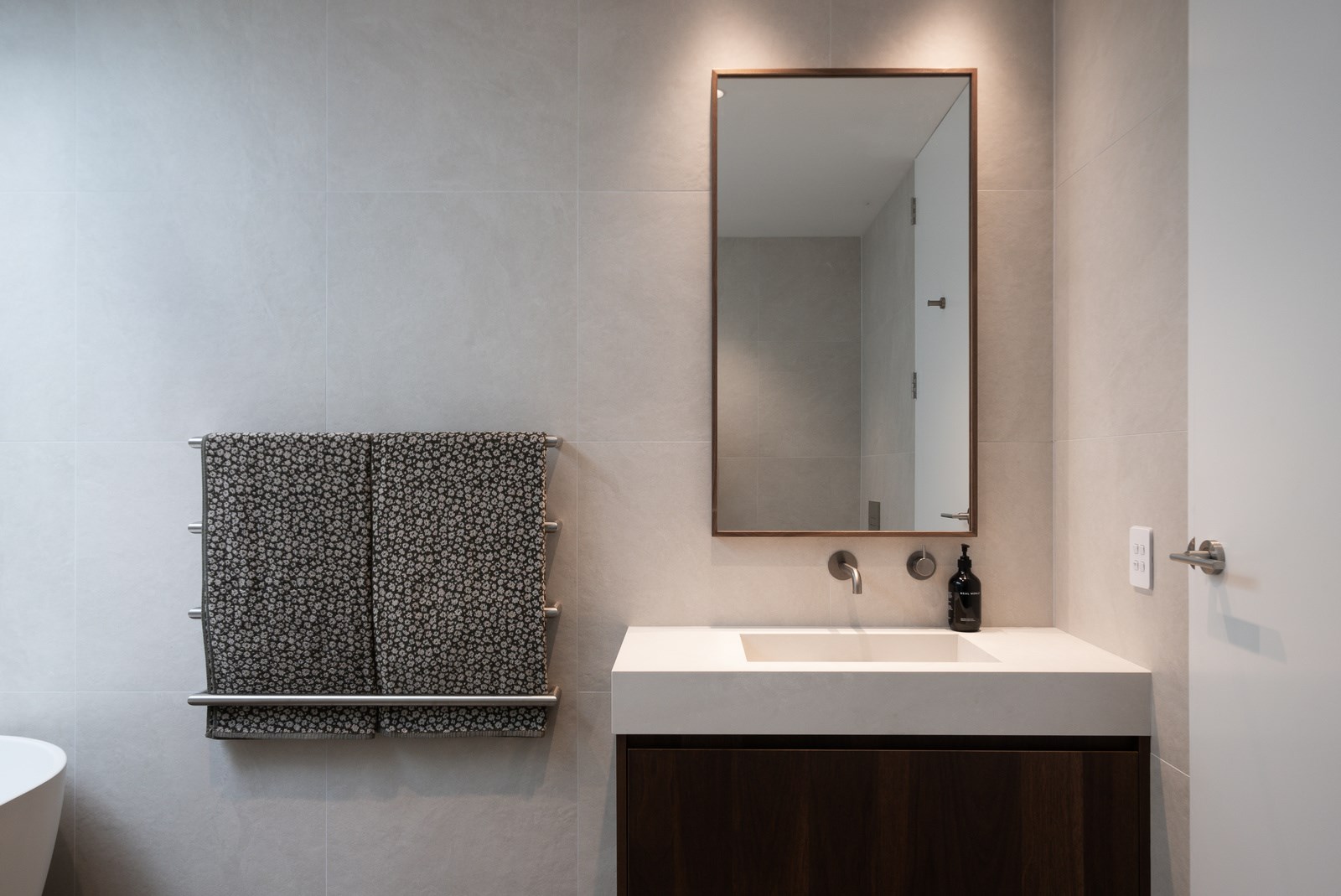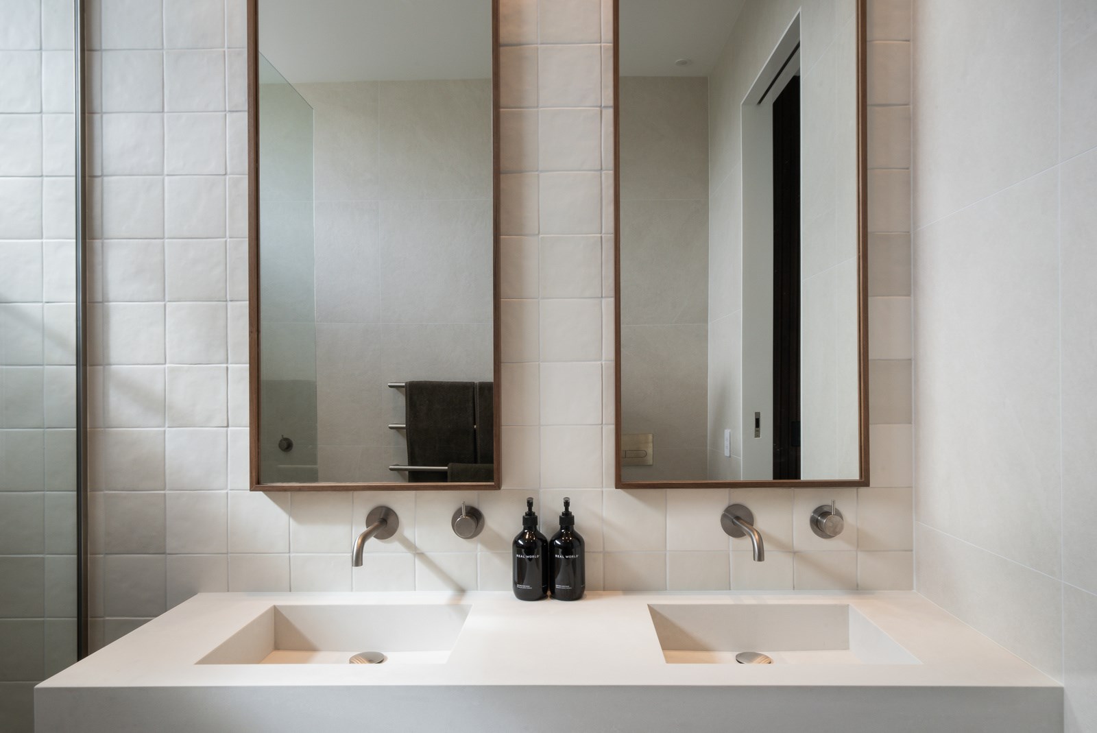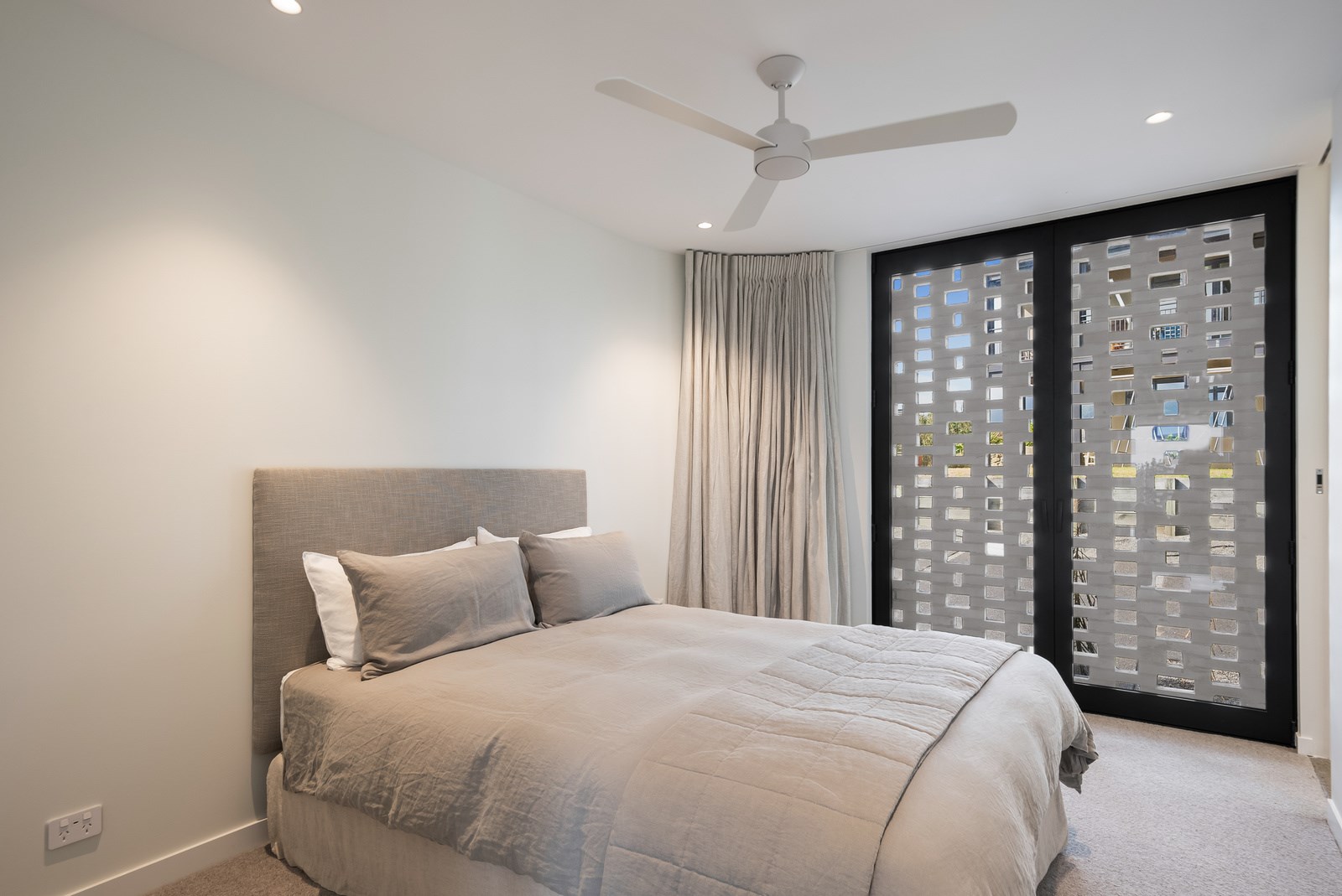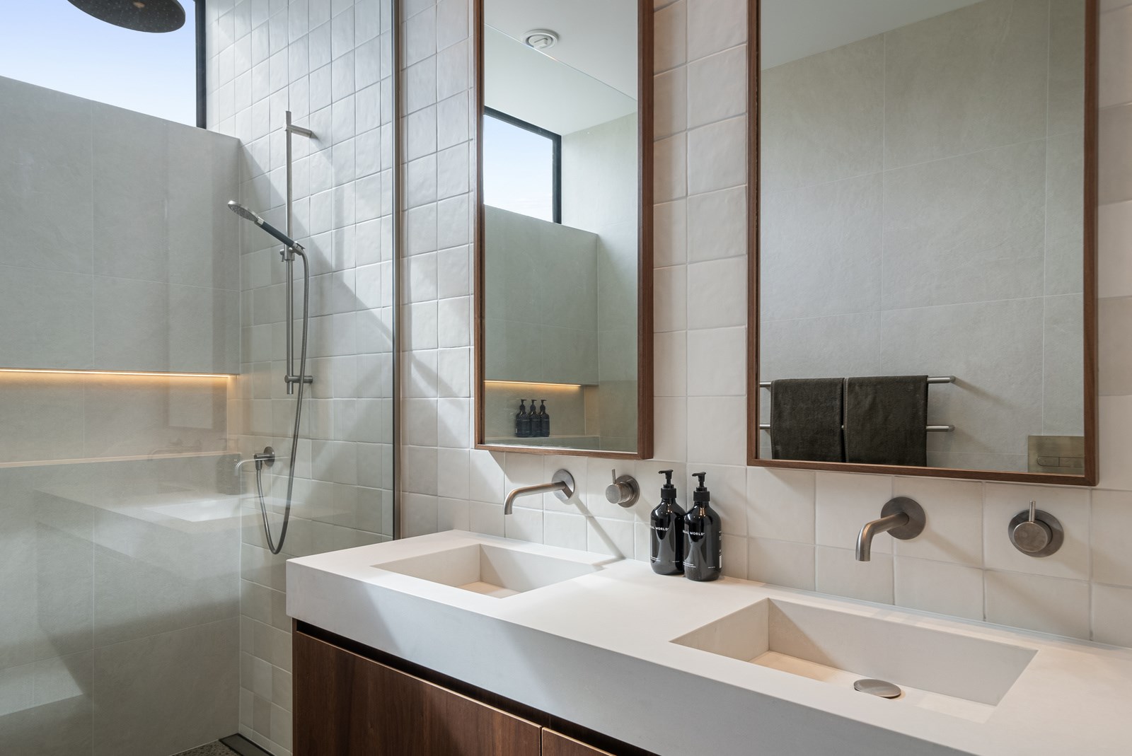 Sometimes, true beauty is low-key, relaxed and understated. Here’s a stellar example a stone’s throw from the sea on the Kāpiti Coast. Although the entrance to this tulipwood- and brick-clad beachside home has detailing and an intriguing curve, they do not overpower. Instead, they whet the appetite for what’s inside. Step into the entrance between the brick and vertical timber that disguises a double garage and you’re in a hallway stretching through the 240sqm U-shaped beach house, culminating in the open-plan living zone with dining space, kitchen and scullery. Polished-concrete floors are both stylish and practical, a walnut feature wall draws the eye and the fire keeps things toasty in winter.
