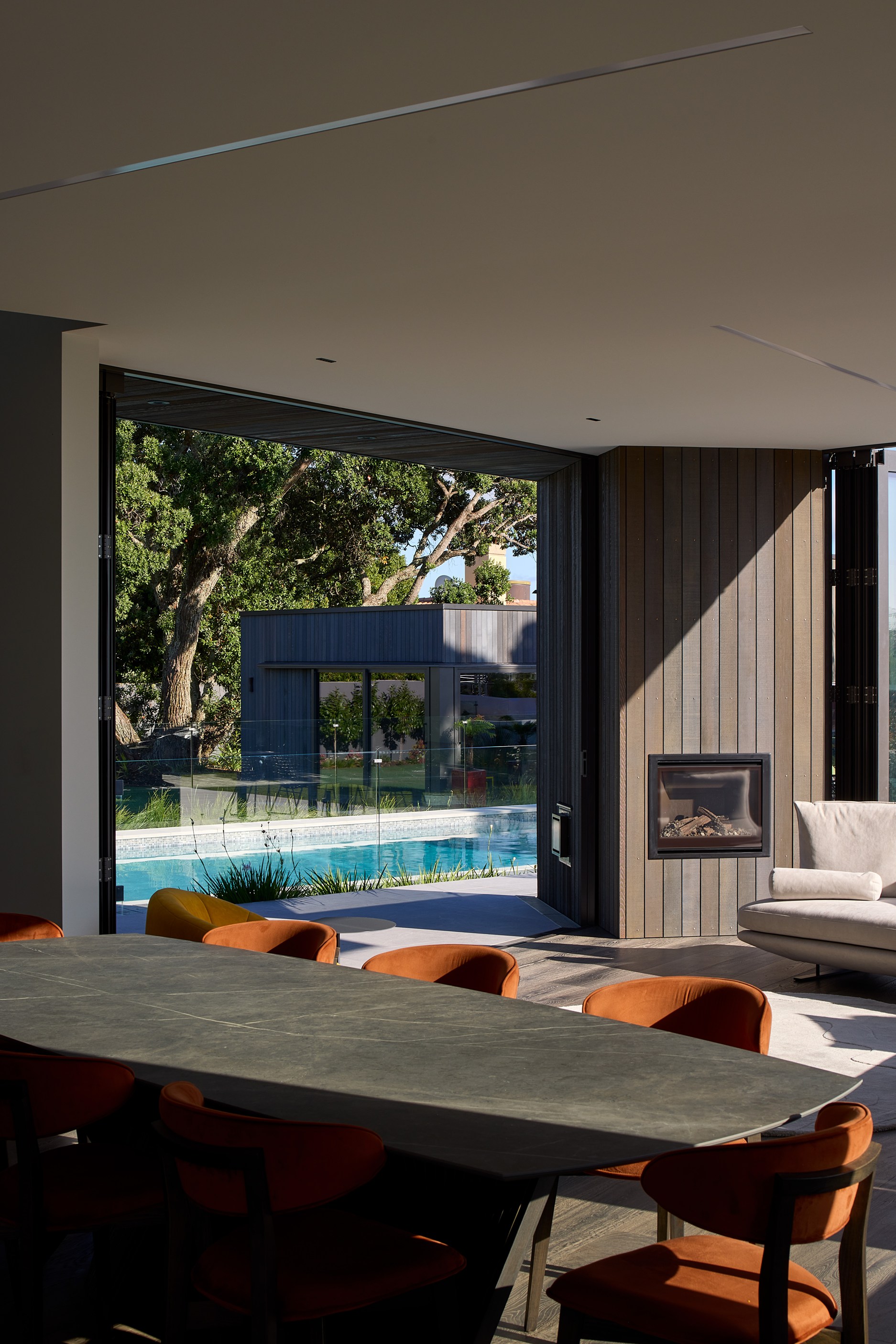 How to describe this sculptural resort-like property with every luxury feature imaginable? With words such as grand, light-flooded, beautiful and meticulous. Ultimately, however, it is a family home. With 450sqm of floorspace spread over two levels, and with four bedrooms, four bathrooms and four living zones (including a den and conservatory), space is never a problem. Add in multiple outdoor spaces spilling from them, an in-ground pool, pool house/yoga room, tennis court and triple garage — along with stunning views across to Rangitoto — and this home delivers on every level.