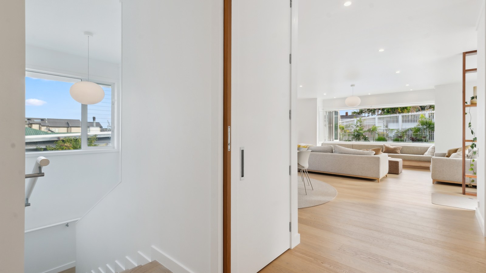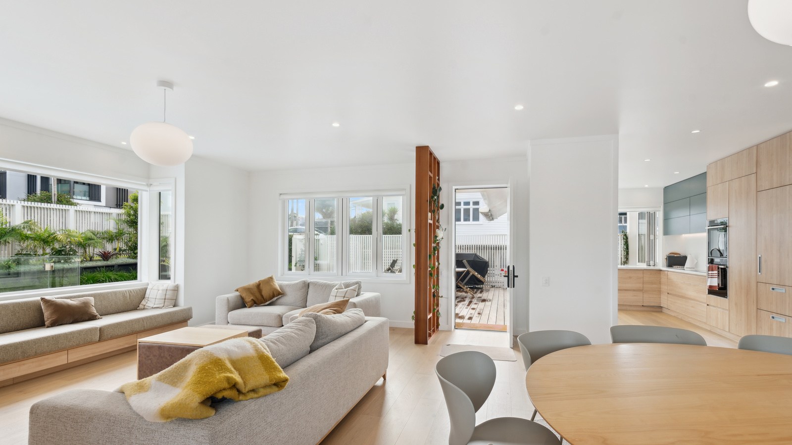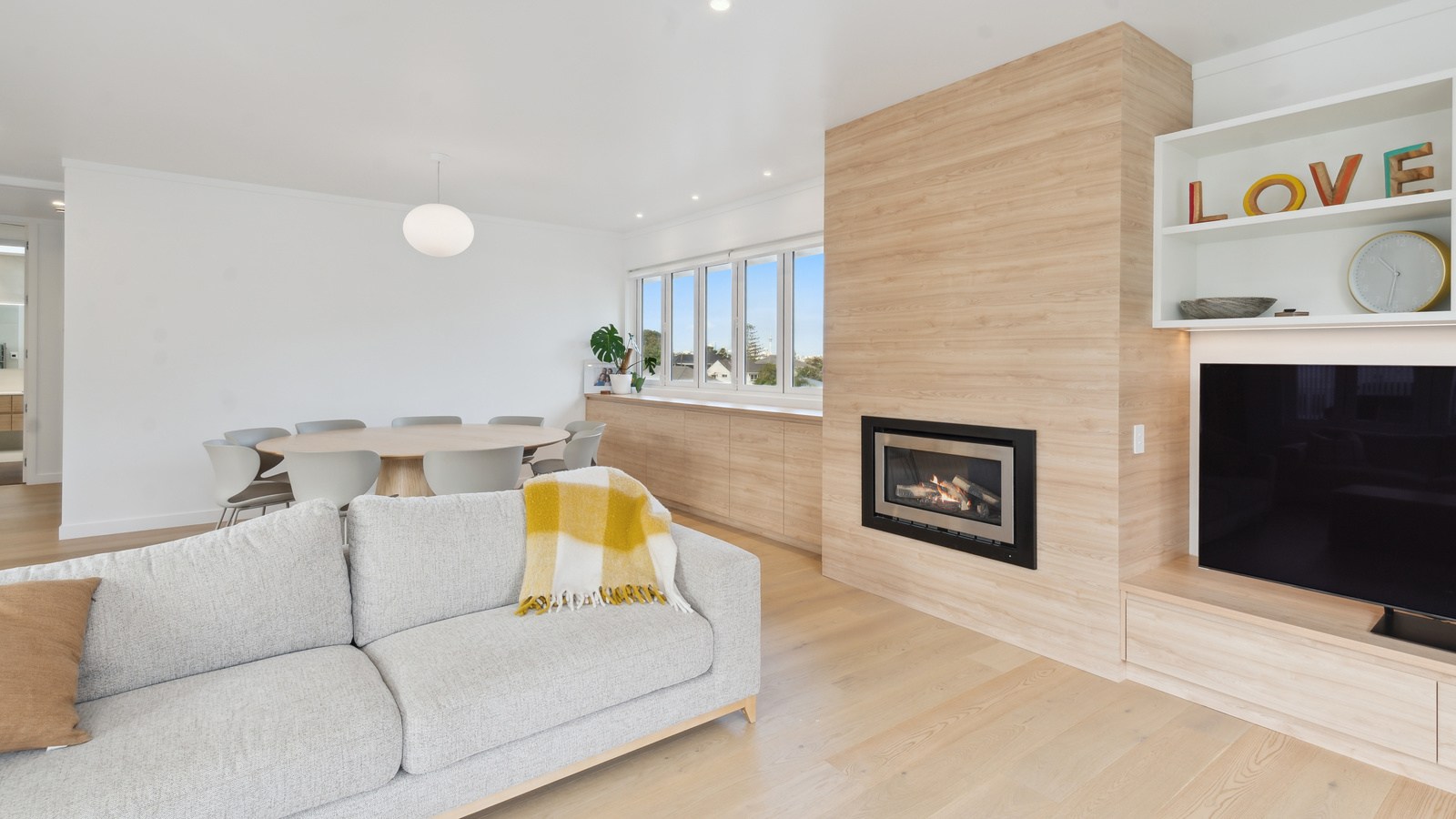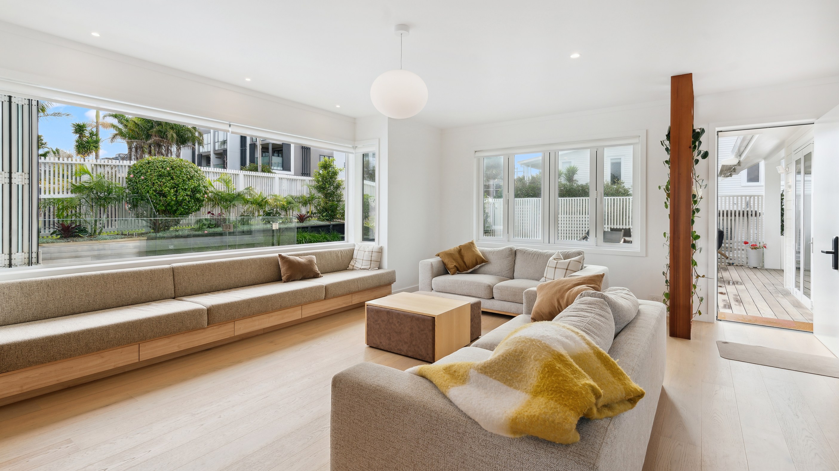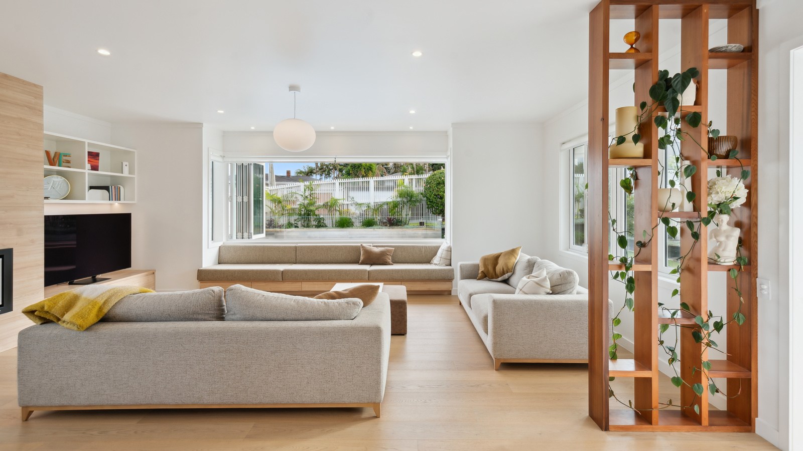 Meanwhile, downstairs, expansive timber floors provide the base for open-plan living and dining areas that flow naturally into the stylish kitchen. Sliding windows open onto a covered breakfast bar area, enhanced by glazed louvres and a retractable umbrella — a space ideal for a family barbecue or Friday evening drinks with friends. Downstairs, the thoughtful design aims to provide younger family members with their own domain — comprising bedrooms, bathroom and a dedicated lounge. Step outside to discover a pristine back garden complemented by a sparkling pool that anchors the inviting outdoor spaces of a home built with just about everything in mind.