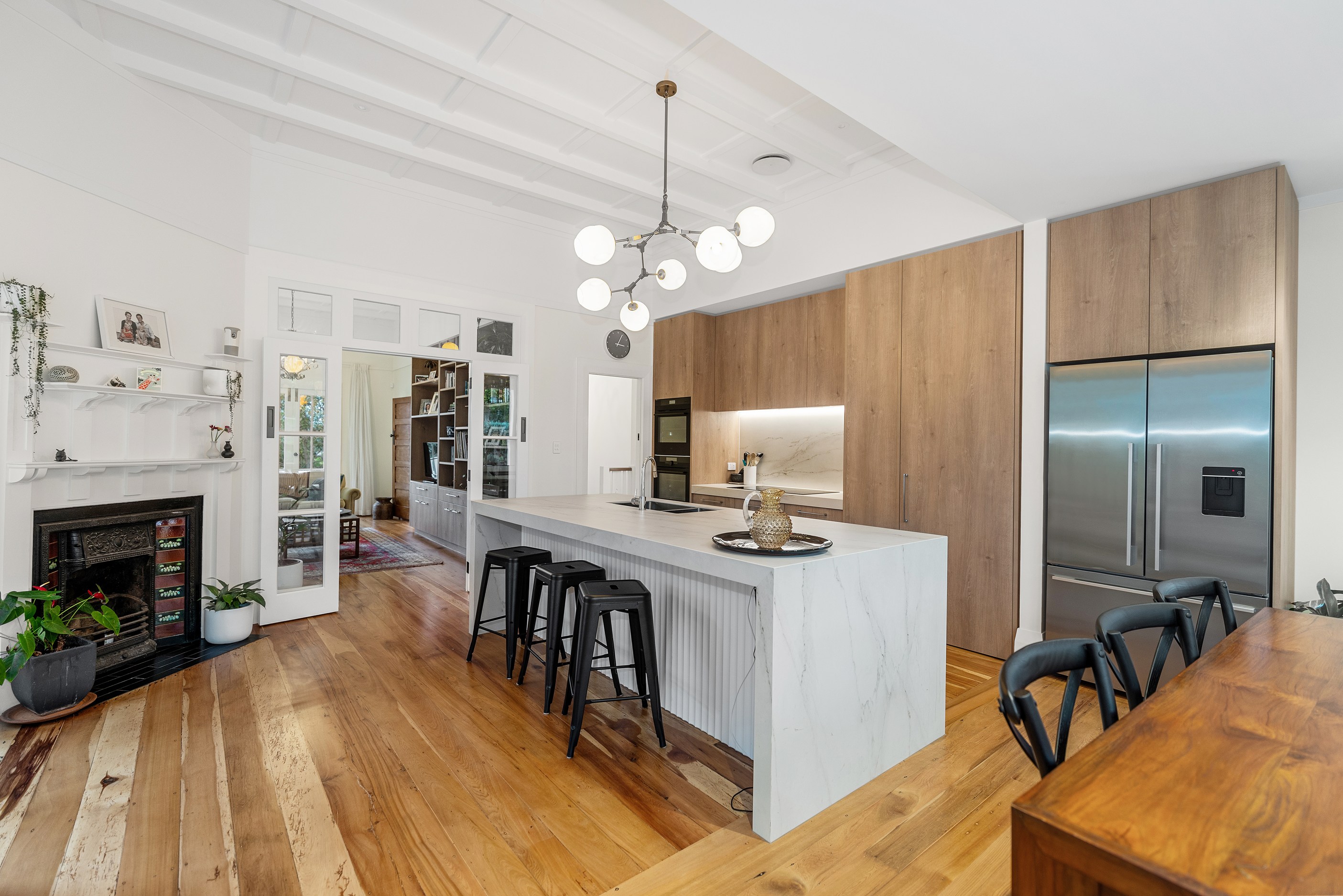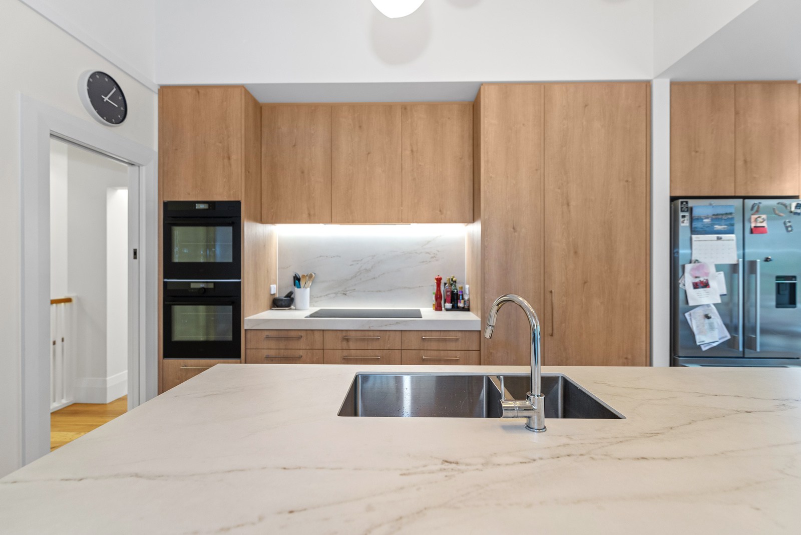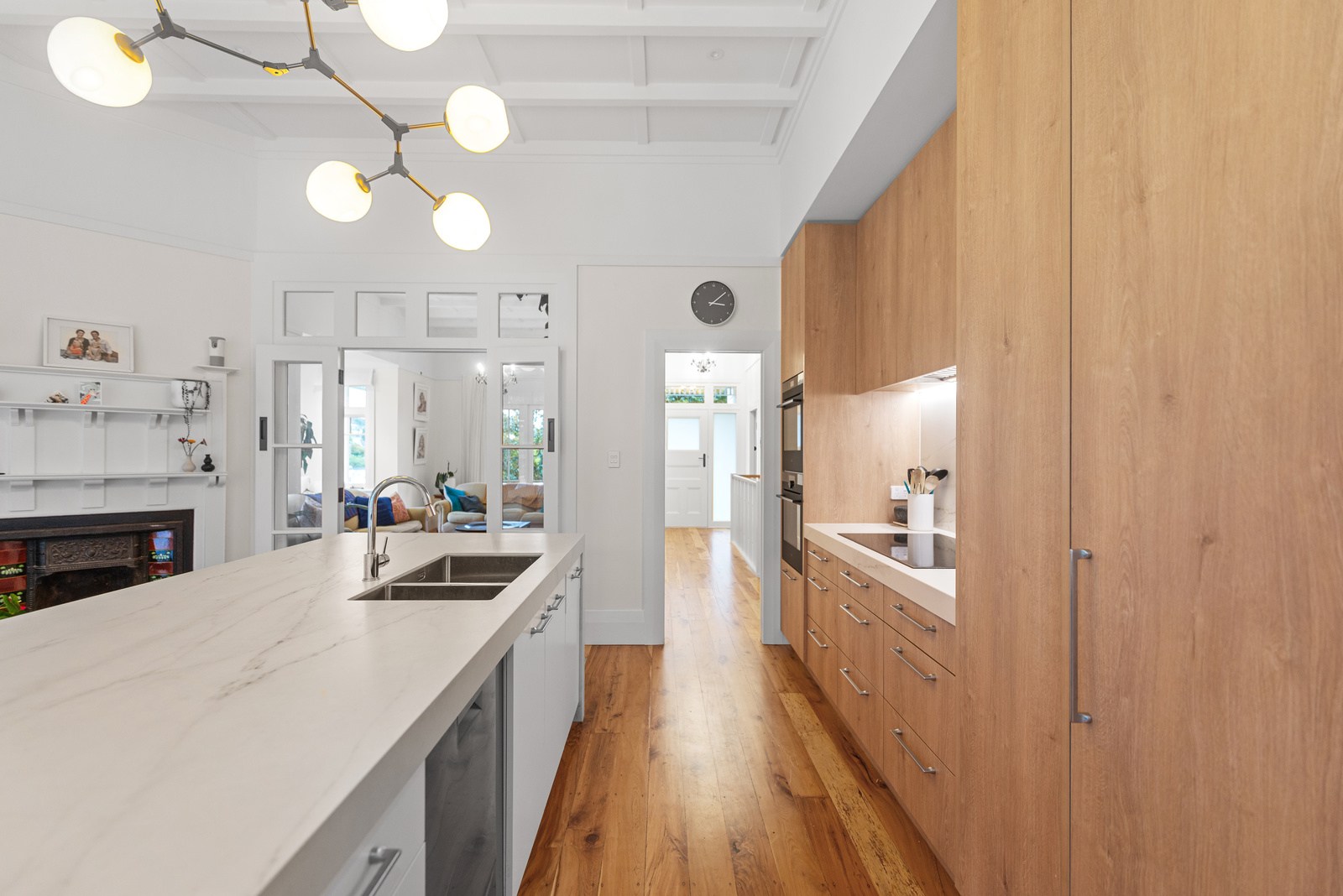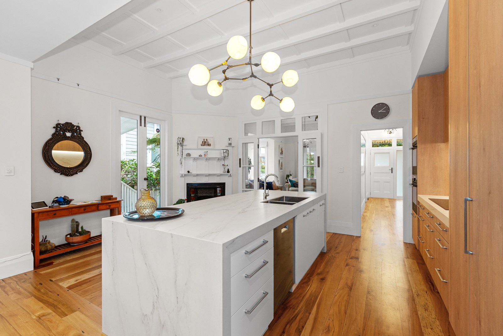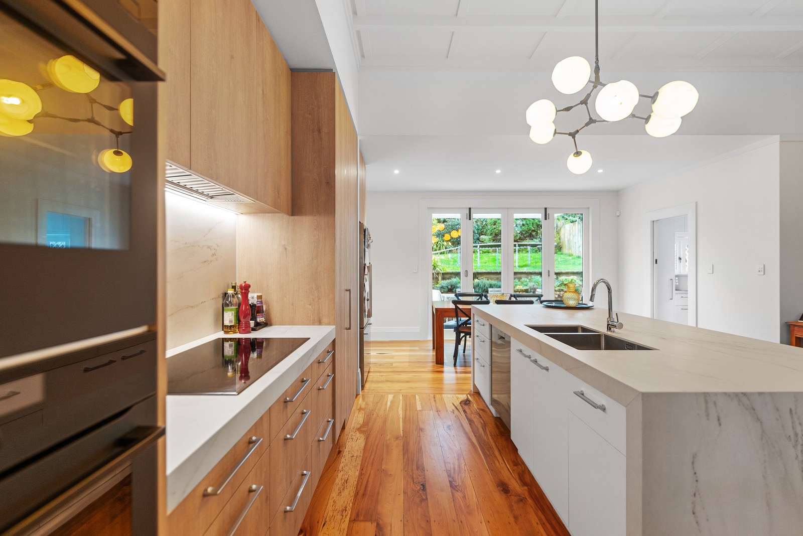 Mount Eden is known for its heritage charm and this elegant renovation proves that old and new can coexist in harmony. Breathing fresh life into a well-loved villa, the 206sqm project has transformed the upper floor into a refined yet functional home for modern living. Carefully brought to life by the build team, the home now offers a layout with new open-plan kitchen, living and dining spaces — all tied together by beautifully restored matai floors. The result is an inviting, light-filled area designed for connection and comfort.