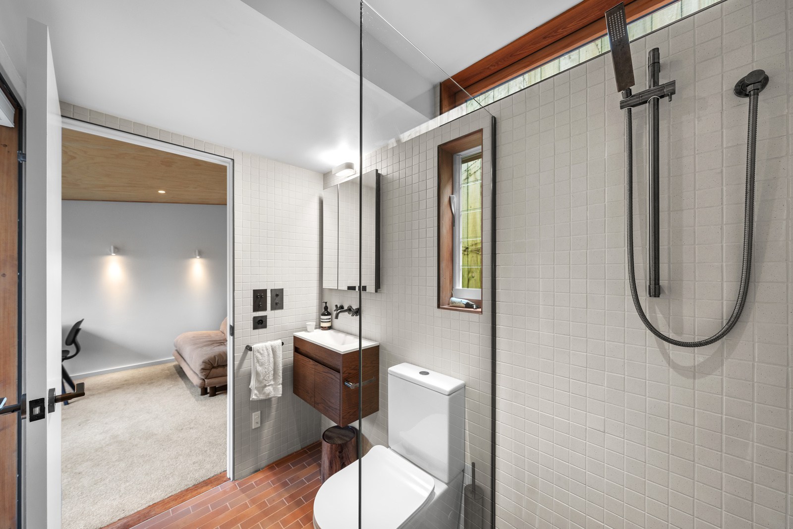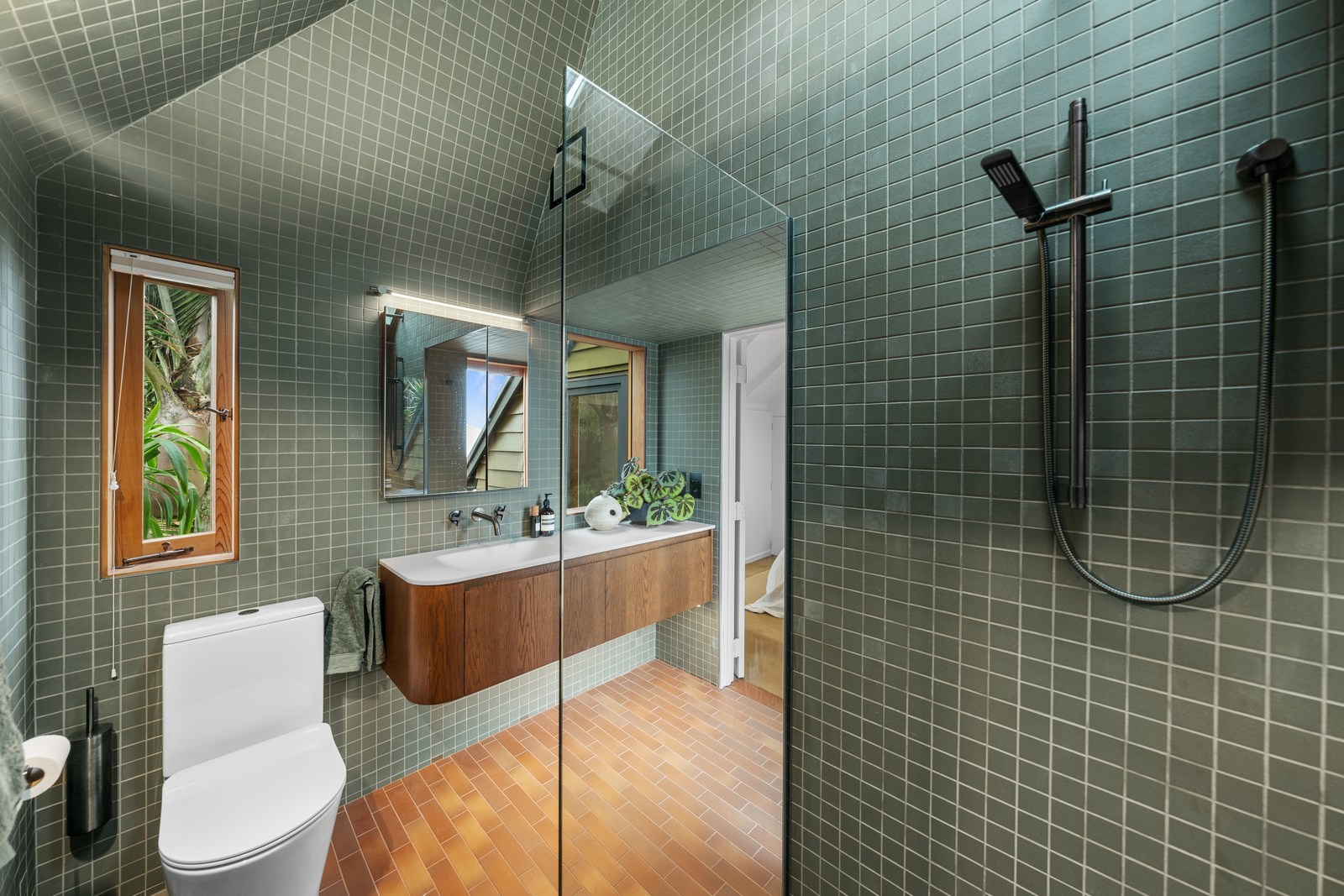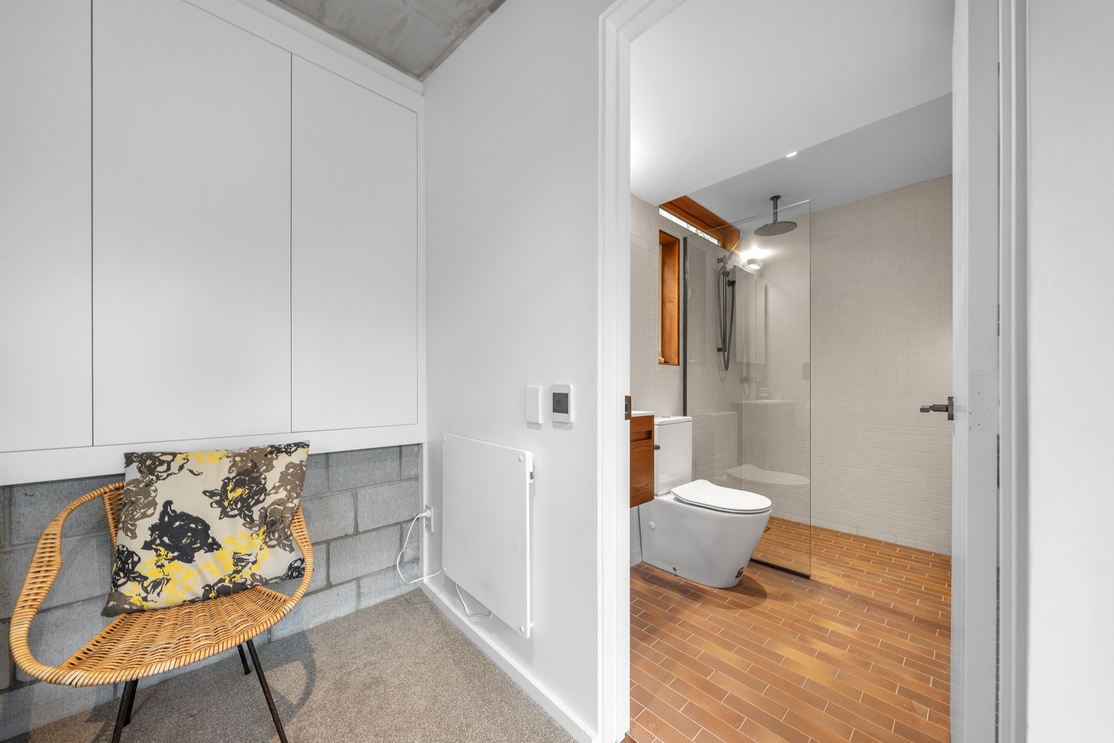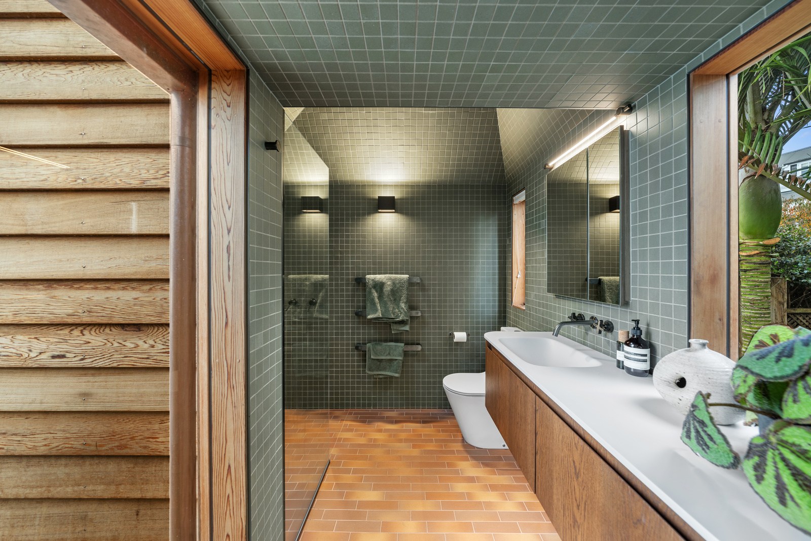 When architect Julian Mitchell was asked to design an addition to his late father David Mitchell’s first home, the result was destined to be personal. The design is a respectful evolution of the 1970s original that David designed and built — one that enhances its function while preserving its architectural spirit. Working with a compact central-city site presented logistical and technical hurdles from the outset. Access was so restricted that all excavation had to be done using the smallest of diggers, with spoil and materials carried by hand or wheelbarrow. The resulting two-storey ‘bathroom tower’ is a triumph of craft and planning. The new vertical addition sits gently alongside the existing structure, clad in timber weatherboards that mirror its materiality.