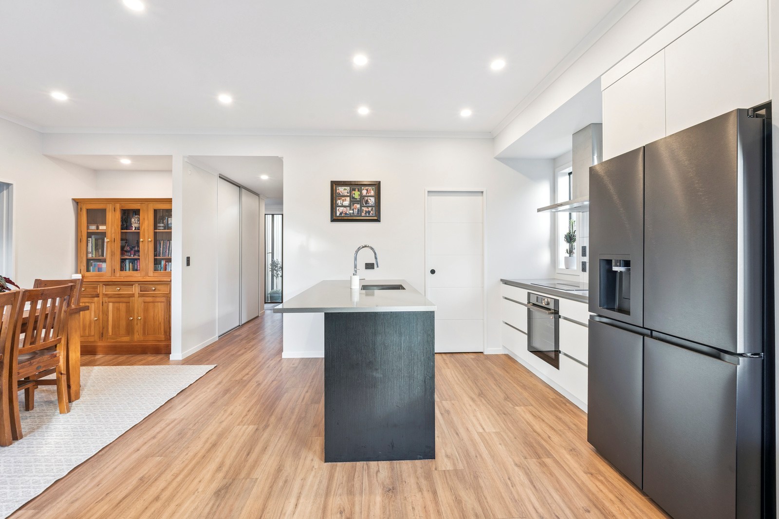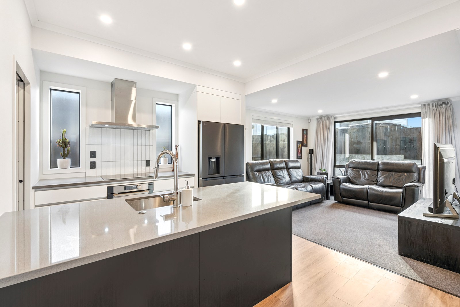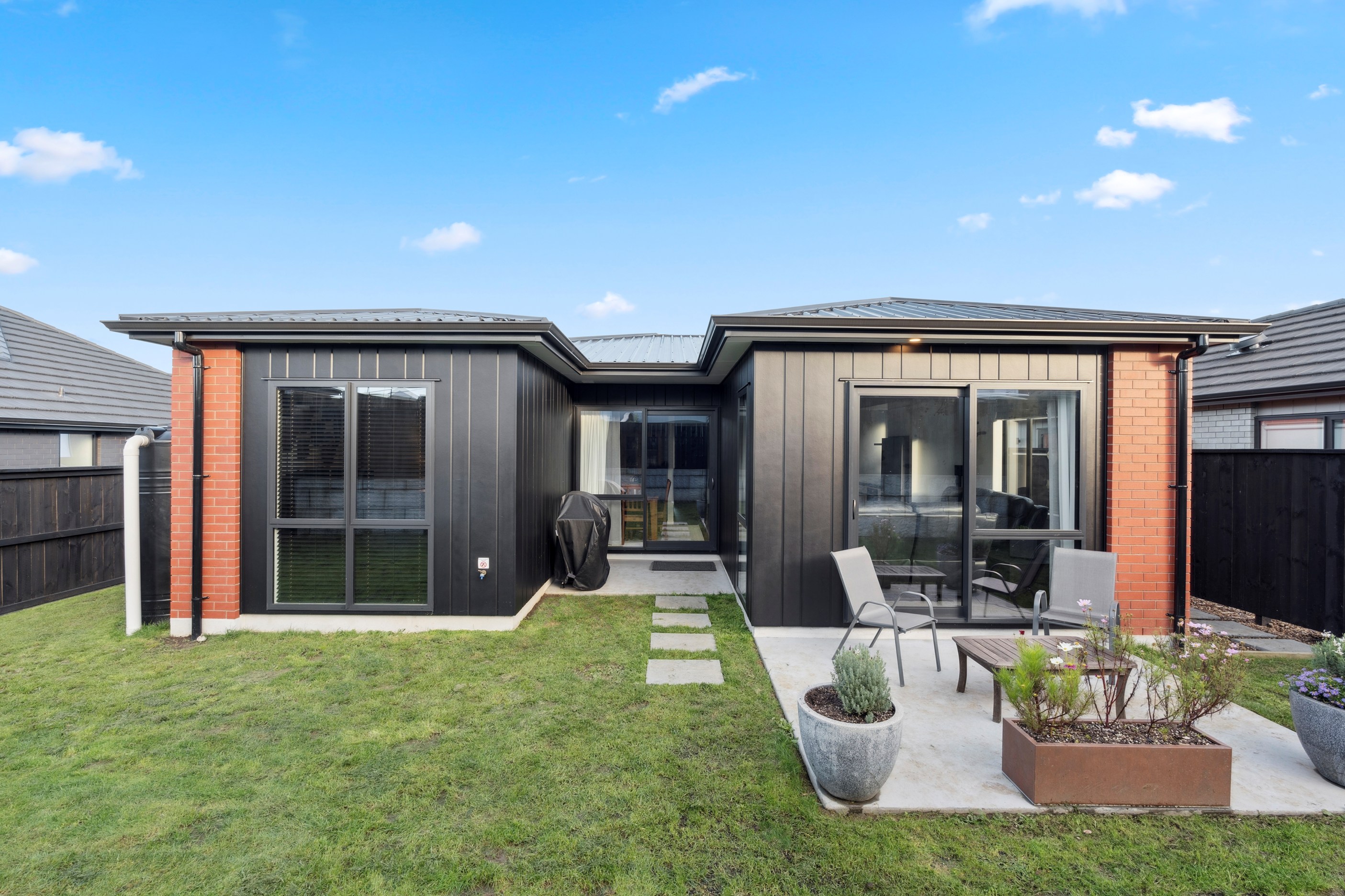 The home’s compact footprint is put to excellent use, with two further bedrooms, a bathroom and separate powder room housed in a wing that can be closed off when required. The main suite enjoys privacy with a walk-in robe and ensuite. The open-plan kitchen — with a scullery to absorb any clutter — living and dining area connects seamlessly to the private, sun-soaked patio, establishing an inviting outdoor zone. Natural light floods this central living space, enhancing the warm, practical feel throughout. Carefully considered design and specification ensured this build delivers at a sharp price point. It’s easy to imagine the homeowners feeling right at home from day one — everything is here, and it all works.